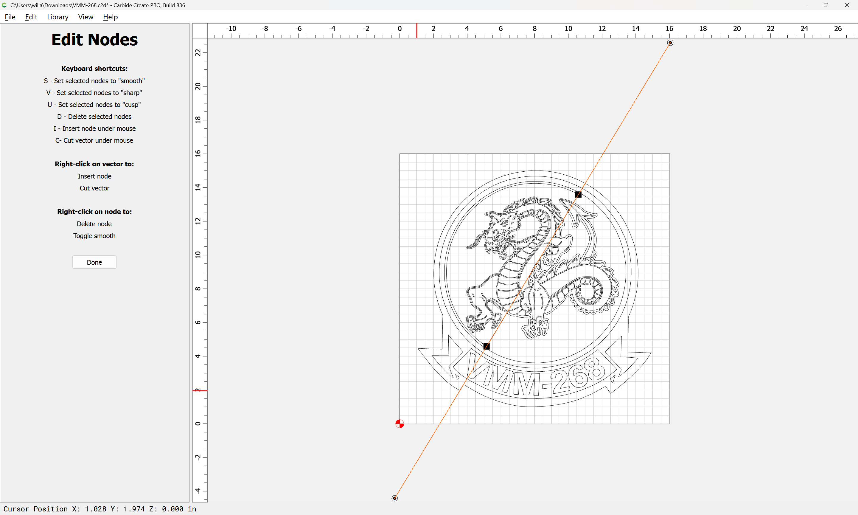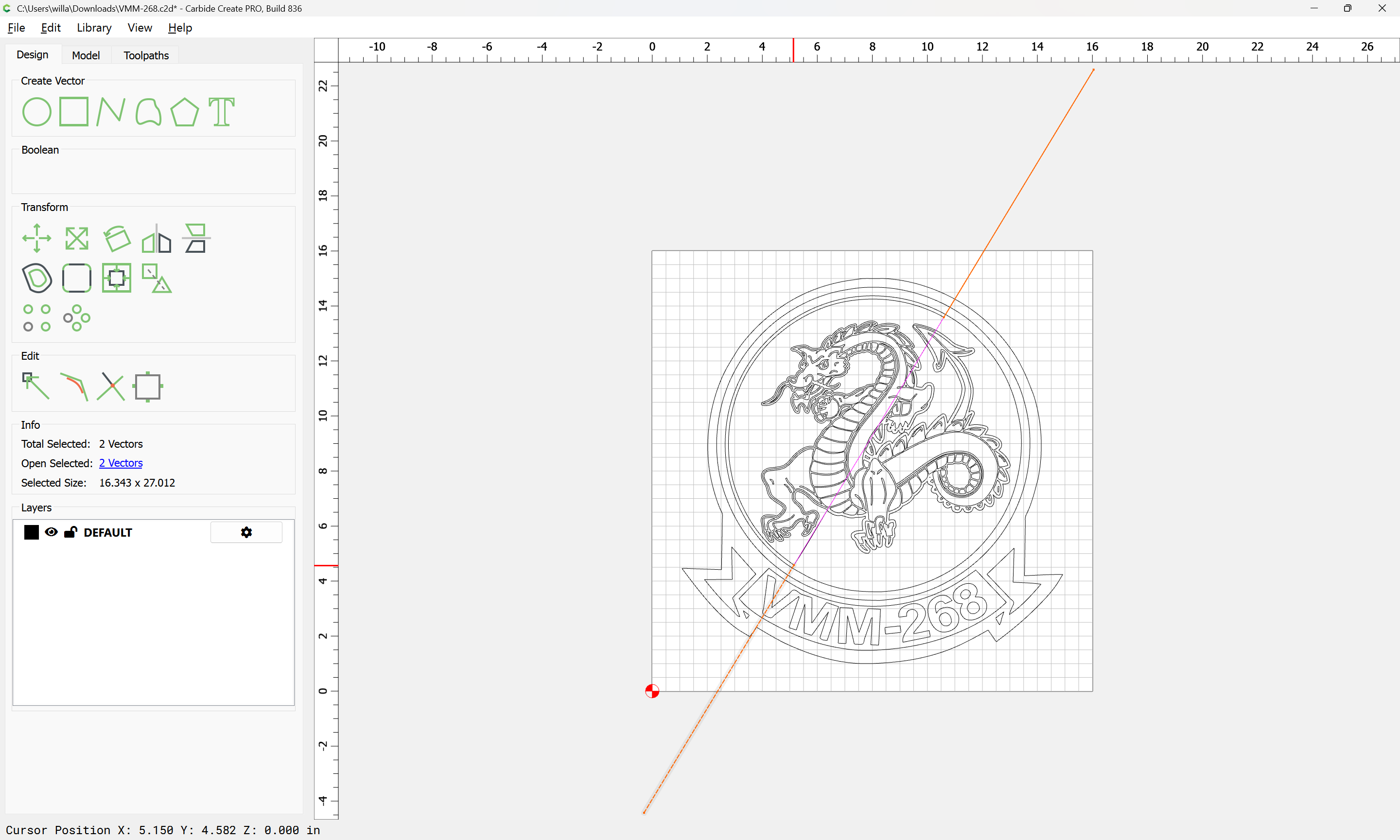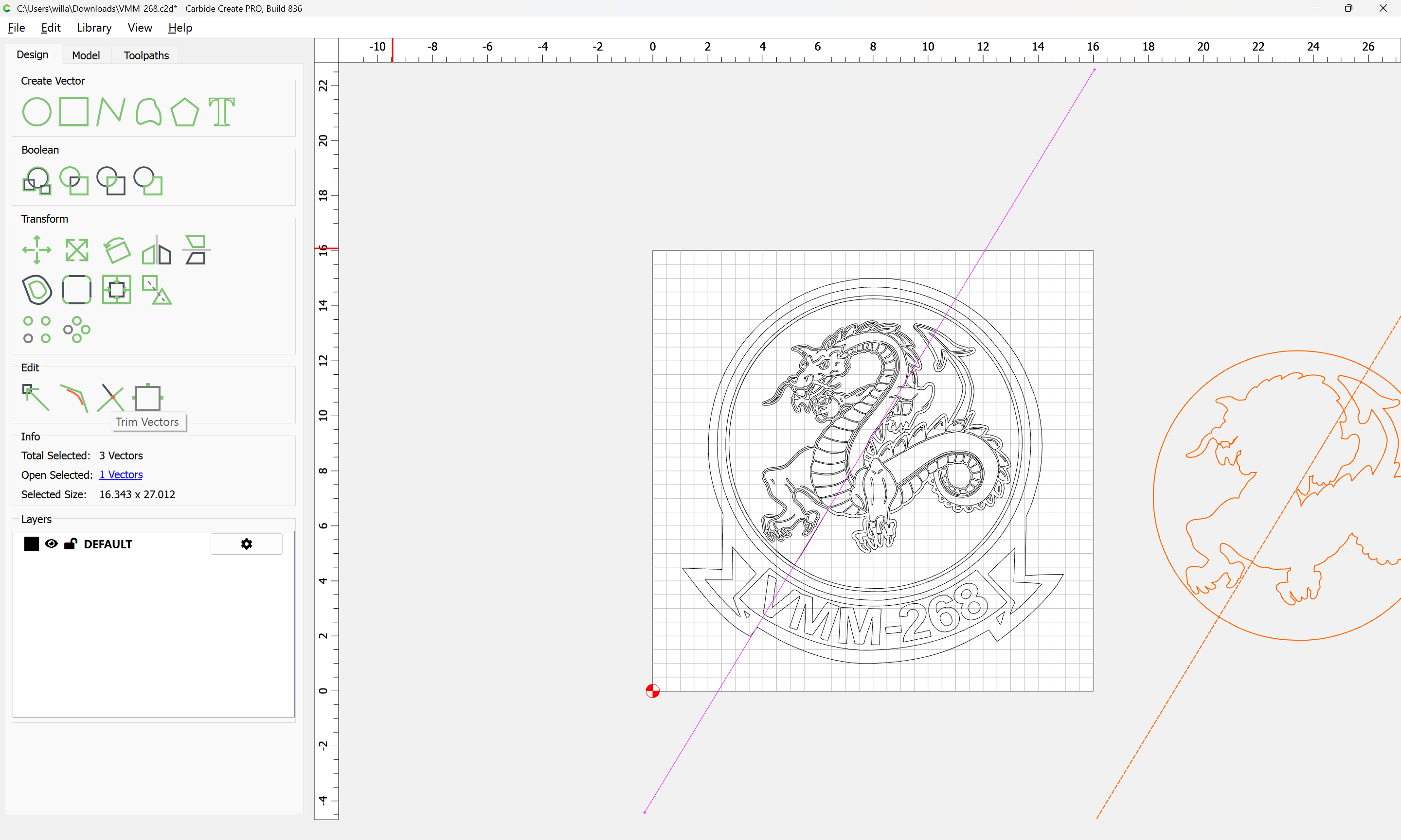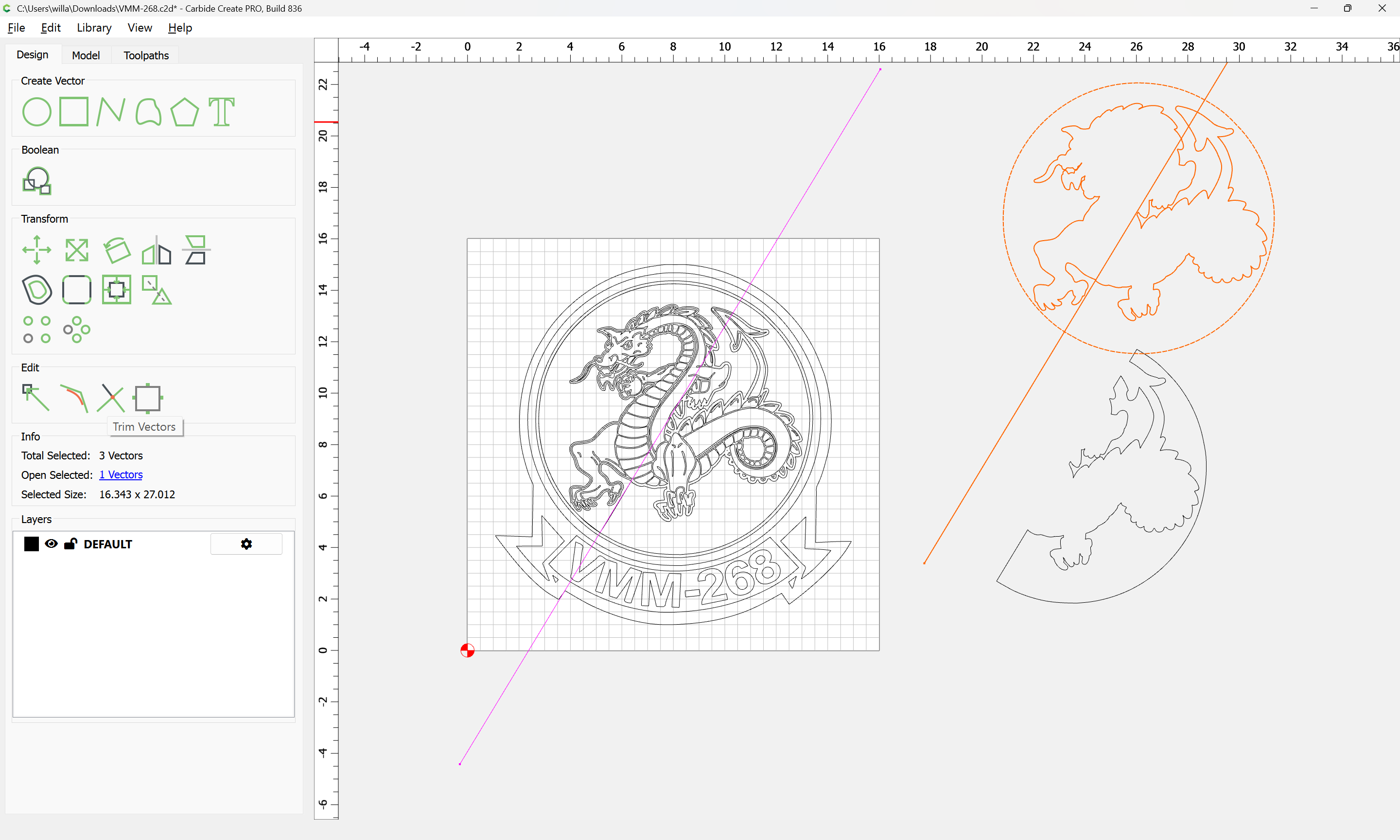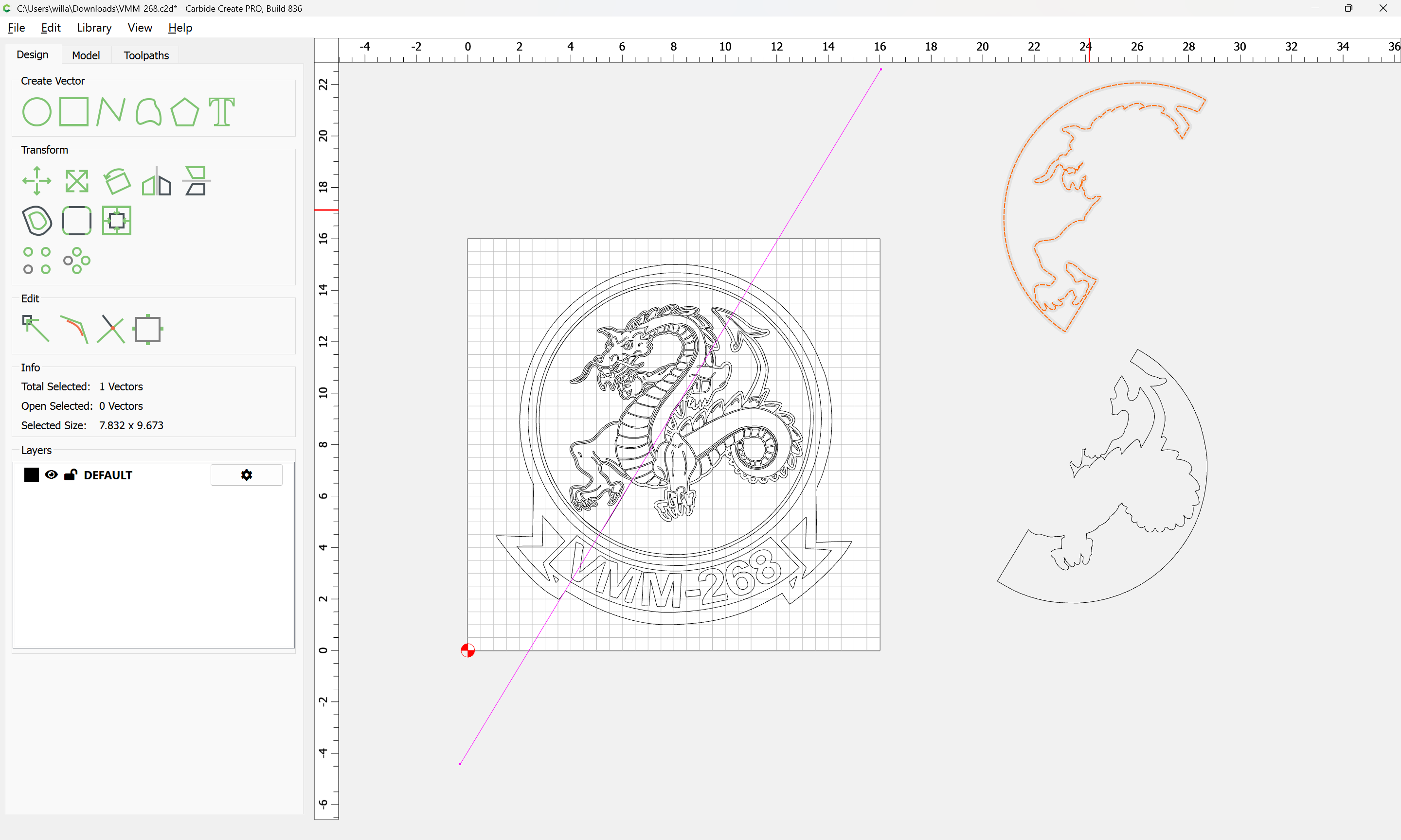 I am looking for help in carving this Logo for my brothers Military unit. Dimensions will be approximately 16x16 carved in 1" thick poplar. I would like to do something similar to what Cornbread Customs does. For those with more experience, how would you go about setting this up? Do you use a separate software to break everything up by color? What would be your painting process? I have a CC file drawn up, but I just feel that there has to be a better way.