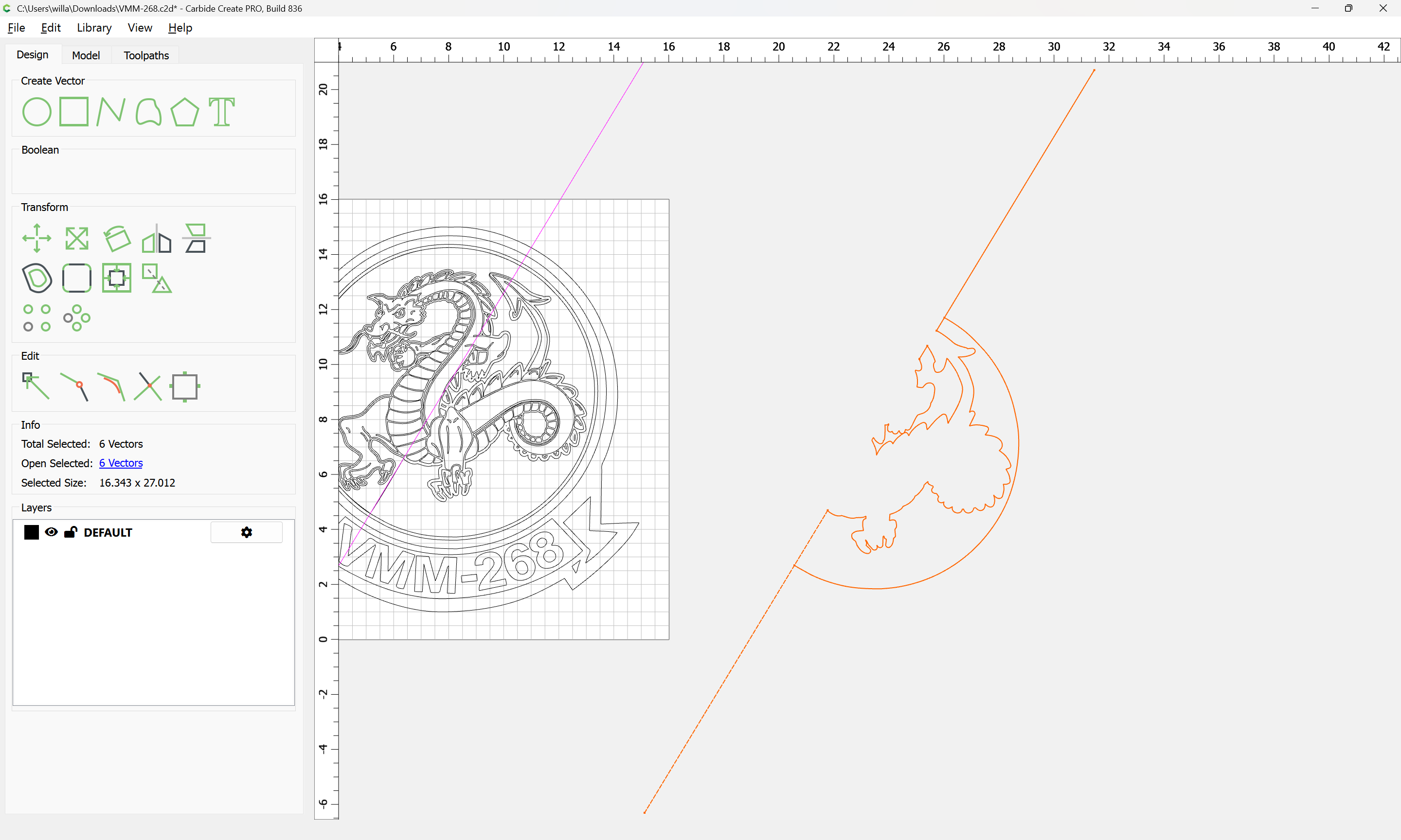 This is the exact issue I am having. CC combines the blue with part of the dragon. If you fixed this in CC, how would you do it? If you fixed this with a 3rd party software, what would you use? I don’t have illustrator. My attempt at fixing it was cutting vector at the corners of the blue the doing an outside offset around the dragon and then joining half of the offset and half of the blue to essentially make an outline of the dragon. It just seems that there has to be a better way.