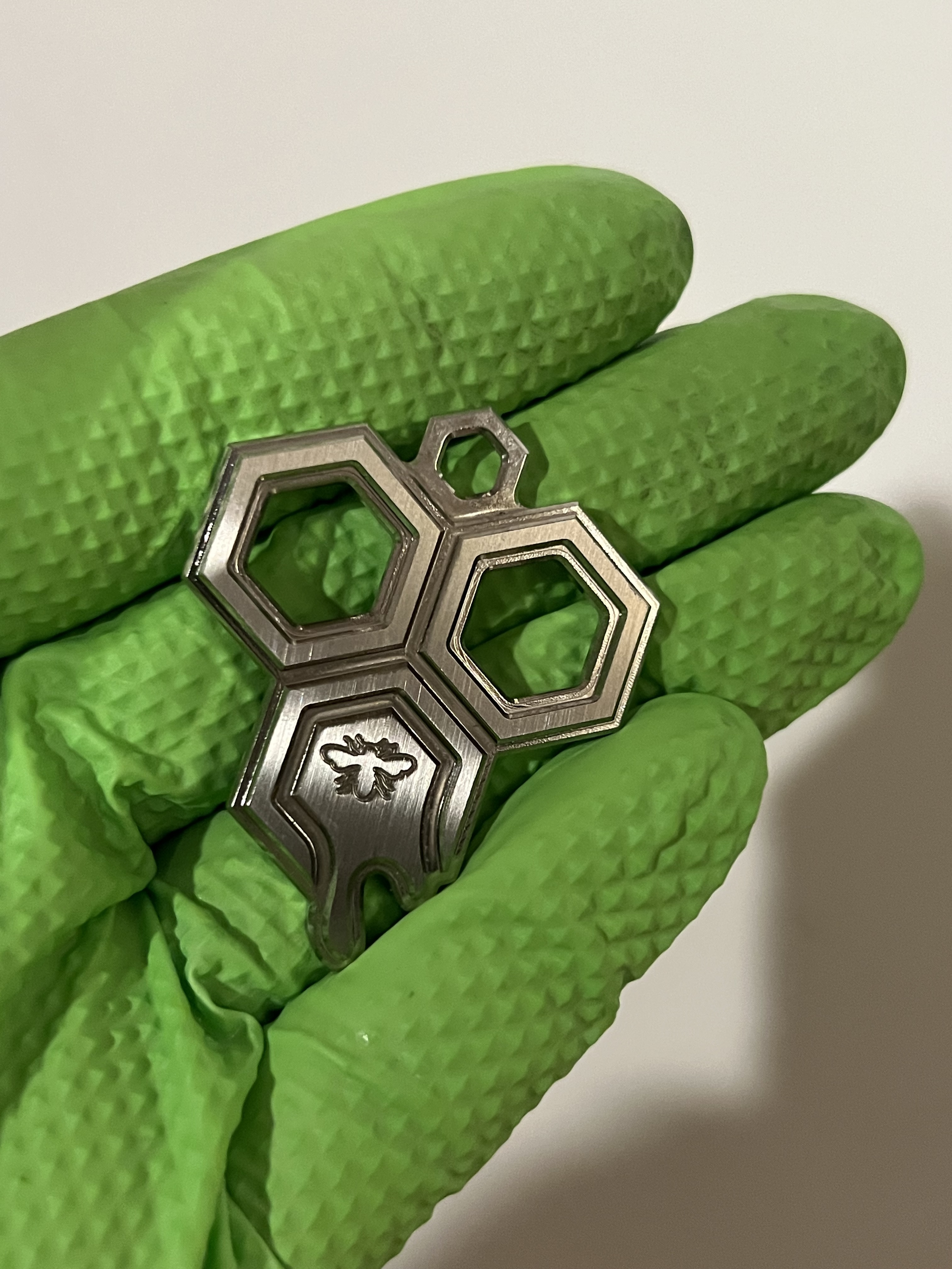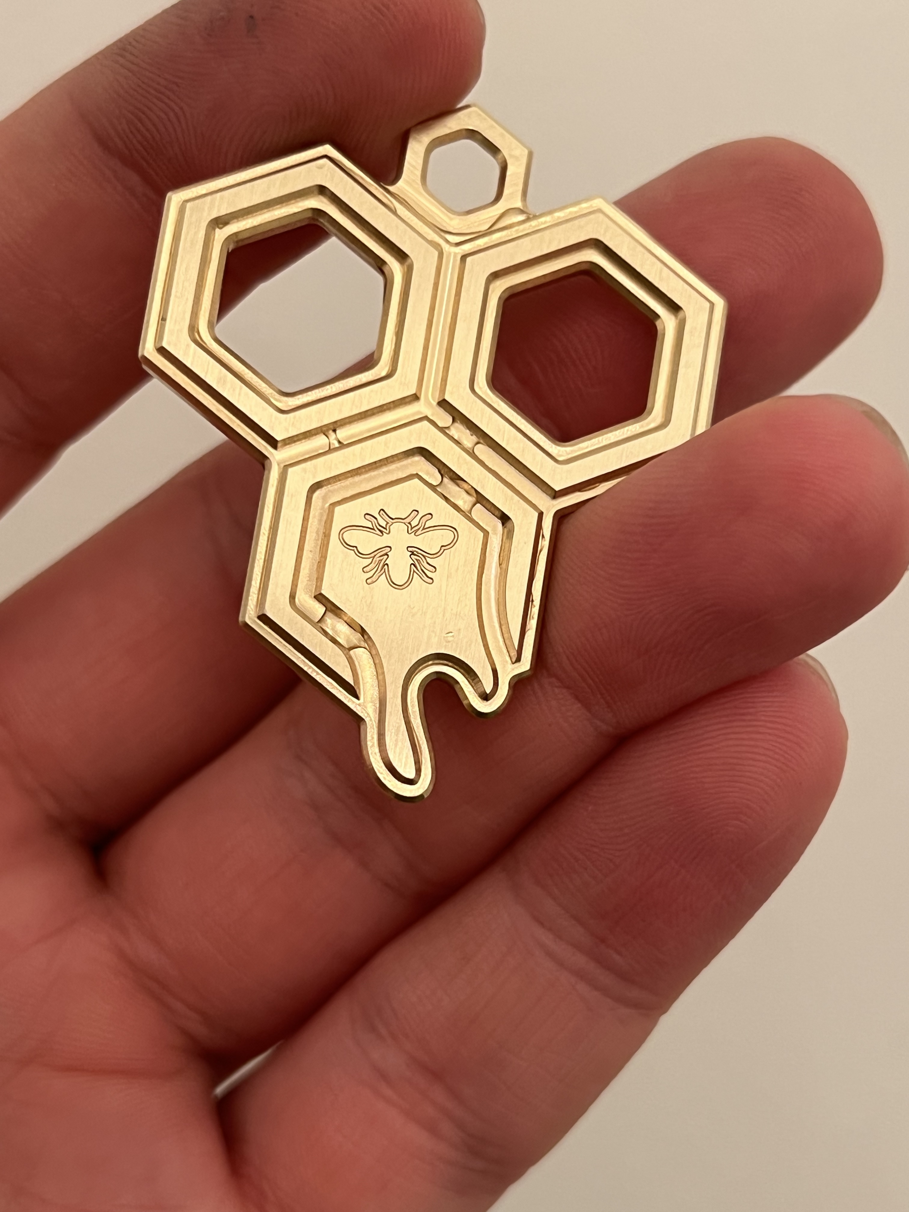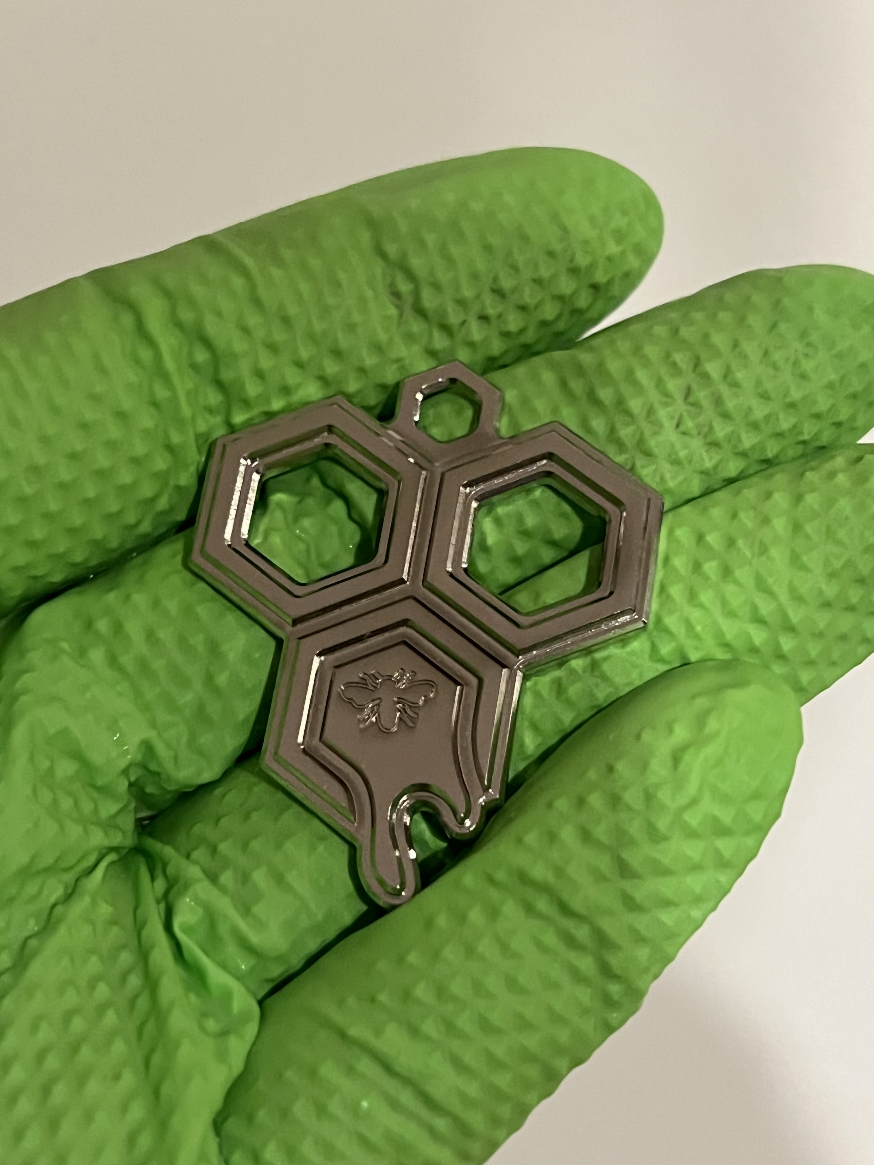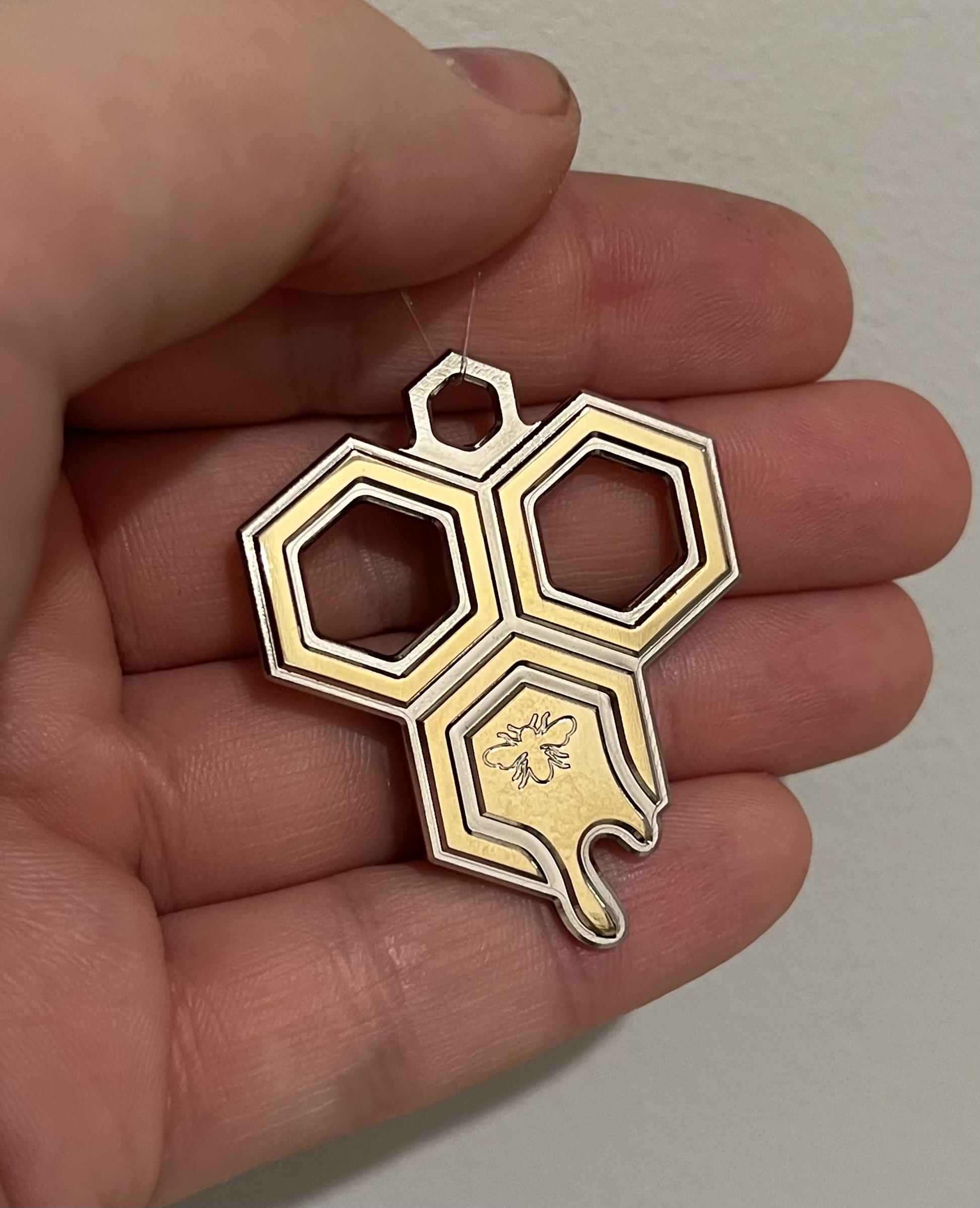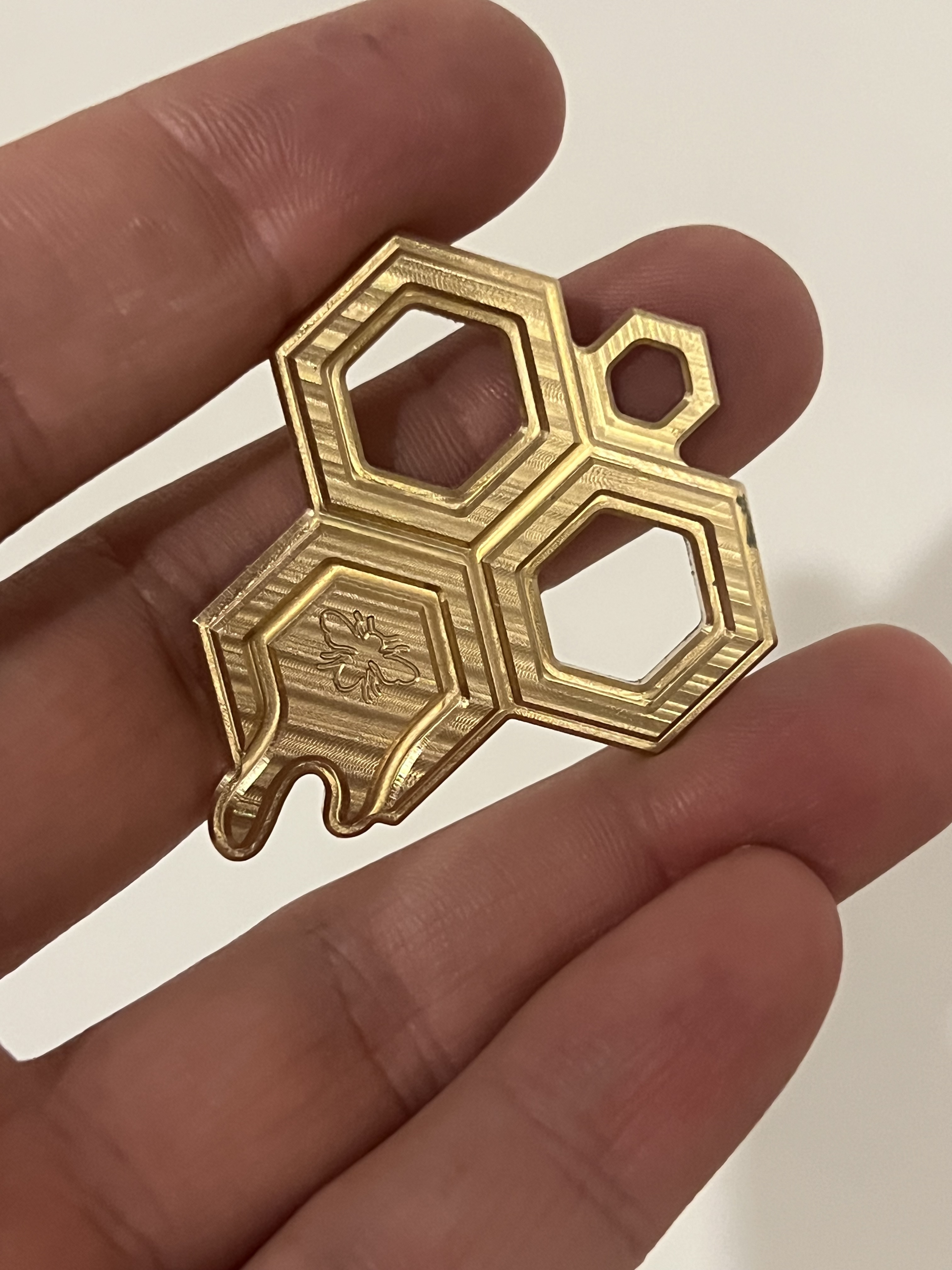 A fella I know gave me a jar of honey from his hive. I wanted to give back something interesting and unique but not particularly valuable. A keychain seemed appropriate.