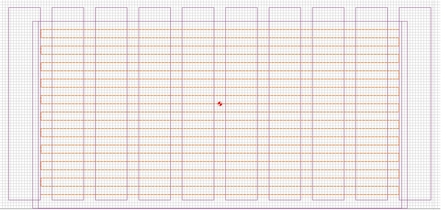 The MDF slats are kindo of beat up for lots of reasons. Decided to do the flattening thing using McFLy. I attempted to get an idea of how off-flat it was by using the jog function to try to find Z -0- on all the MDF slats. It appears that surface varies by as much as .02". Approach is to do a border pass, as shown in Outline.jpg, around as much of the base as the bit can reach. Then do a Left to Right and back pass partially overlapping that outline. That’s shown in Interior.jpg. The passes overlap by a 1/4". Depth of cut is .002". Feed rate is 125 - 150 IPM. I’ve set the router to its lowest speed, occasionally bumping it up to a “2”. I’m getting a visible furrow along every other row. That means that at 1.5" intervals I can take a clean sheet of paper and butt it up against the “X” path. When I run my finger along that paper-MDF line, I can barely feel it, which makes me thing that the router is tilted slightly toward the back. When I try using the Jog function on one of the slats to run similarly spaced passes front-to-back, I can barely feel the rows.