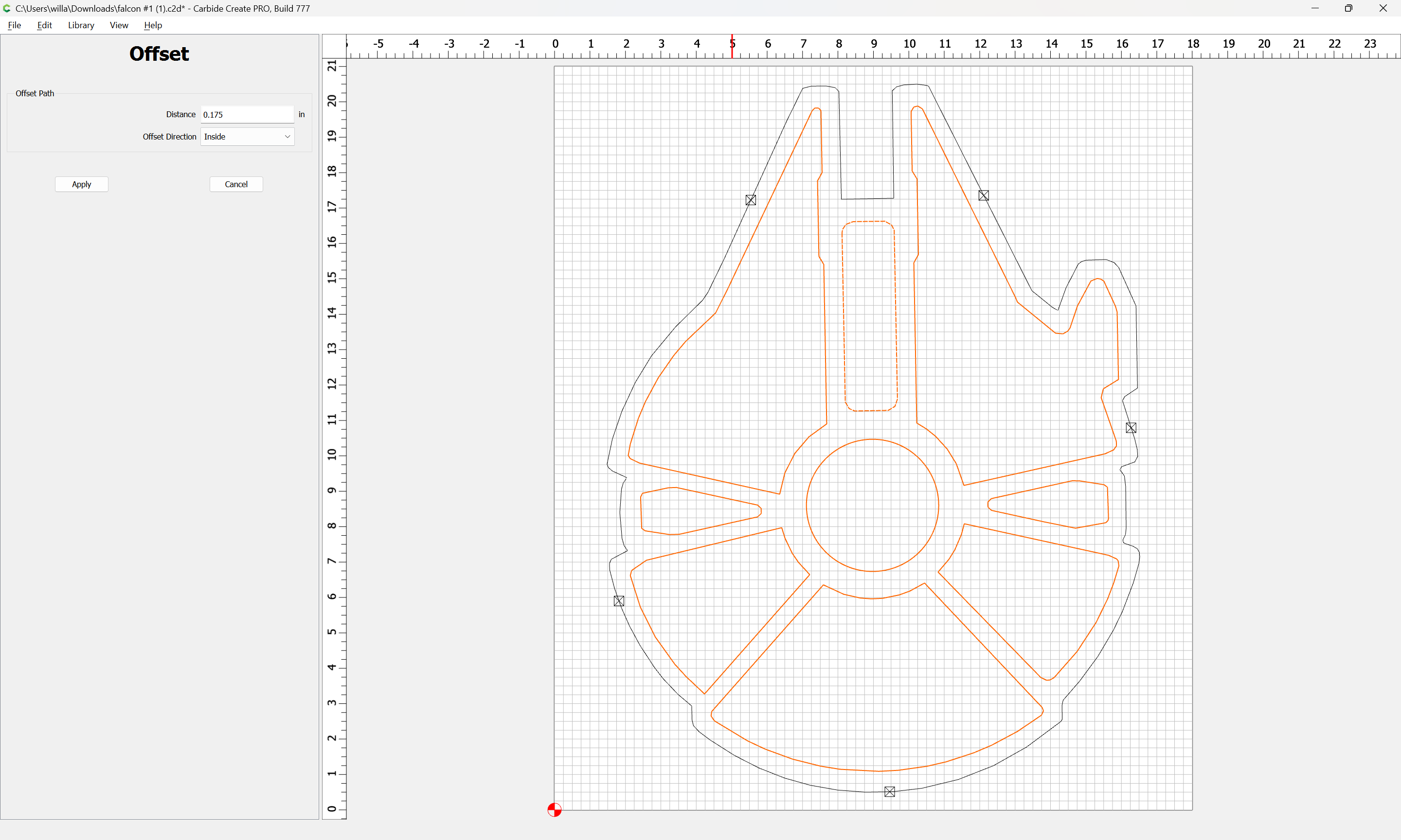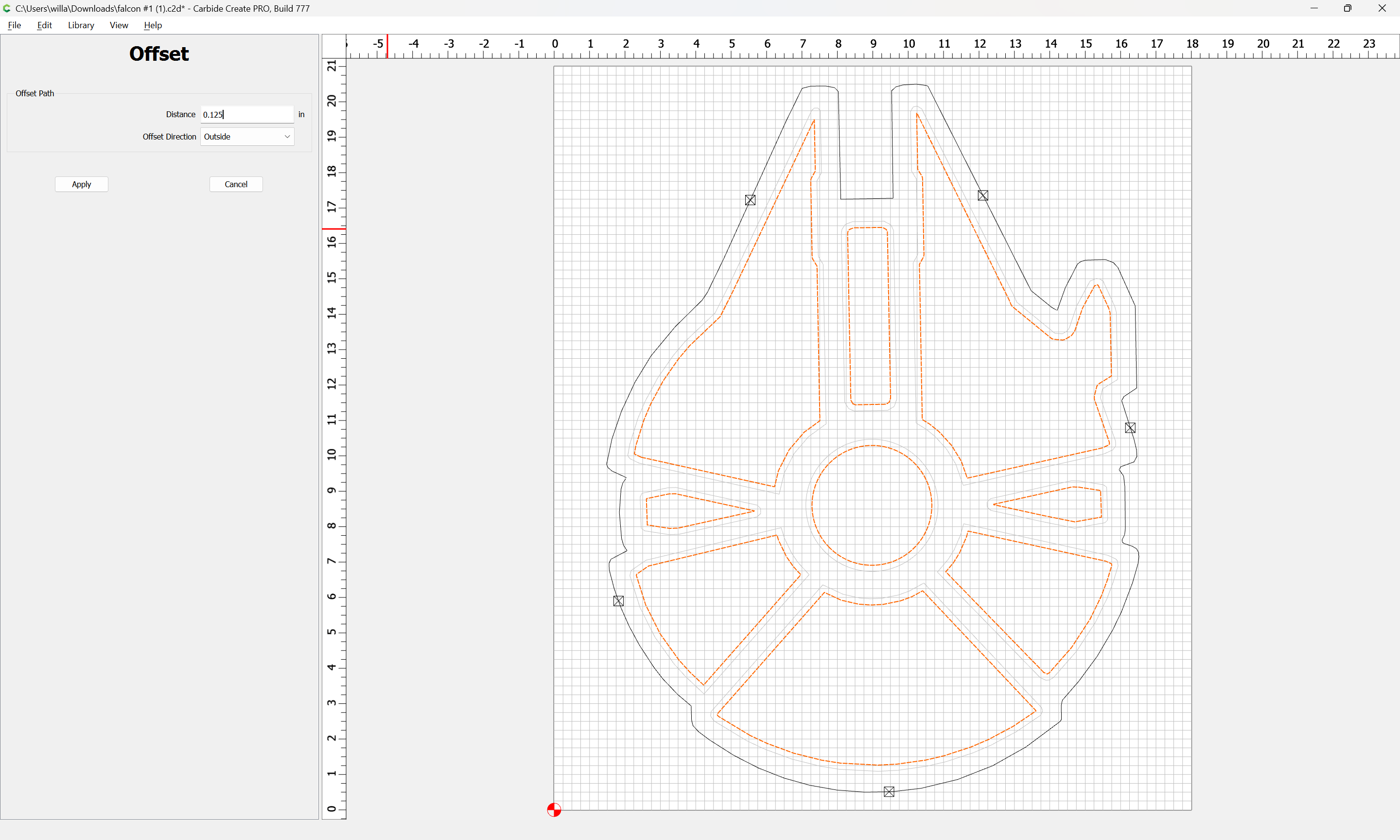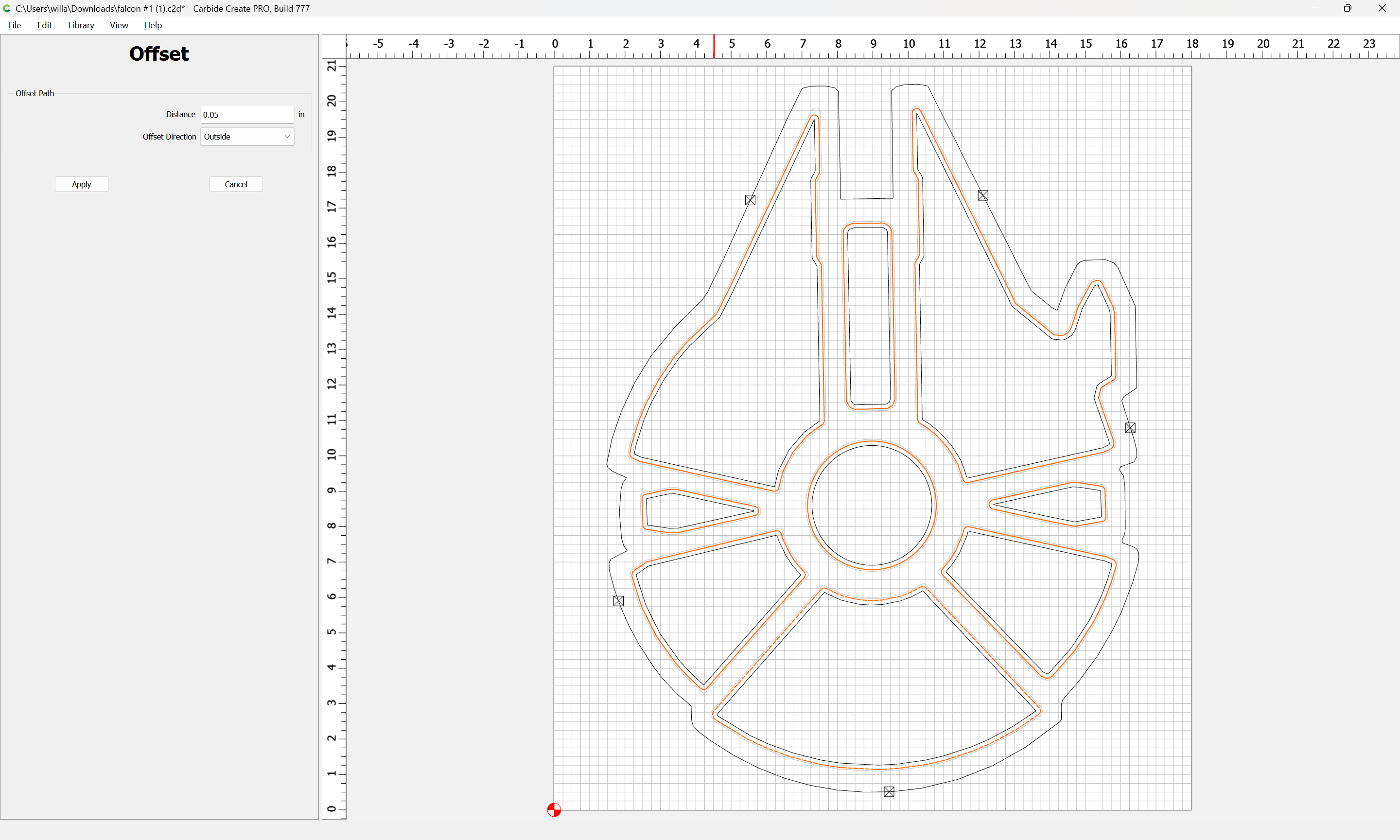 We then go back to the Design pane and offset to the outside by the radius of the tool: