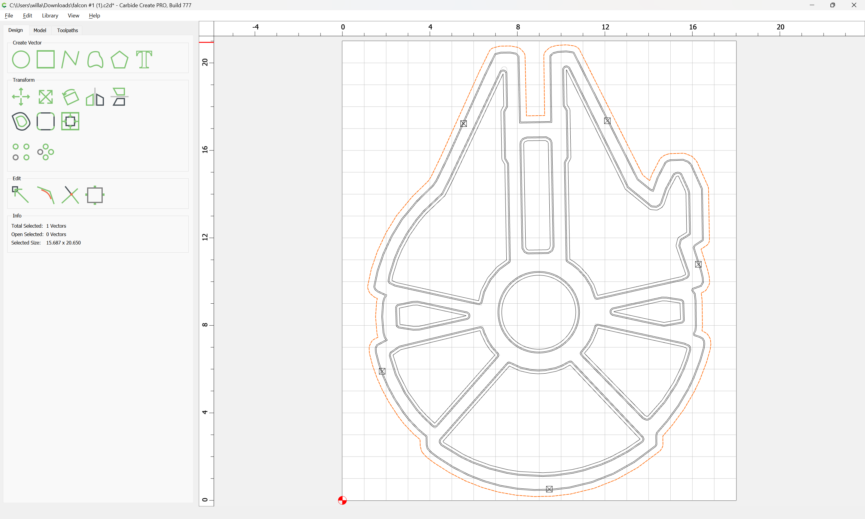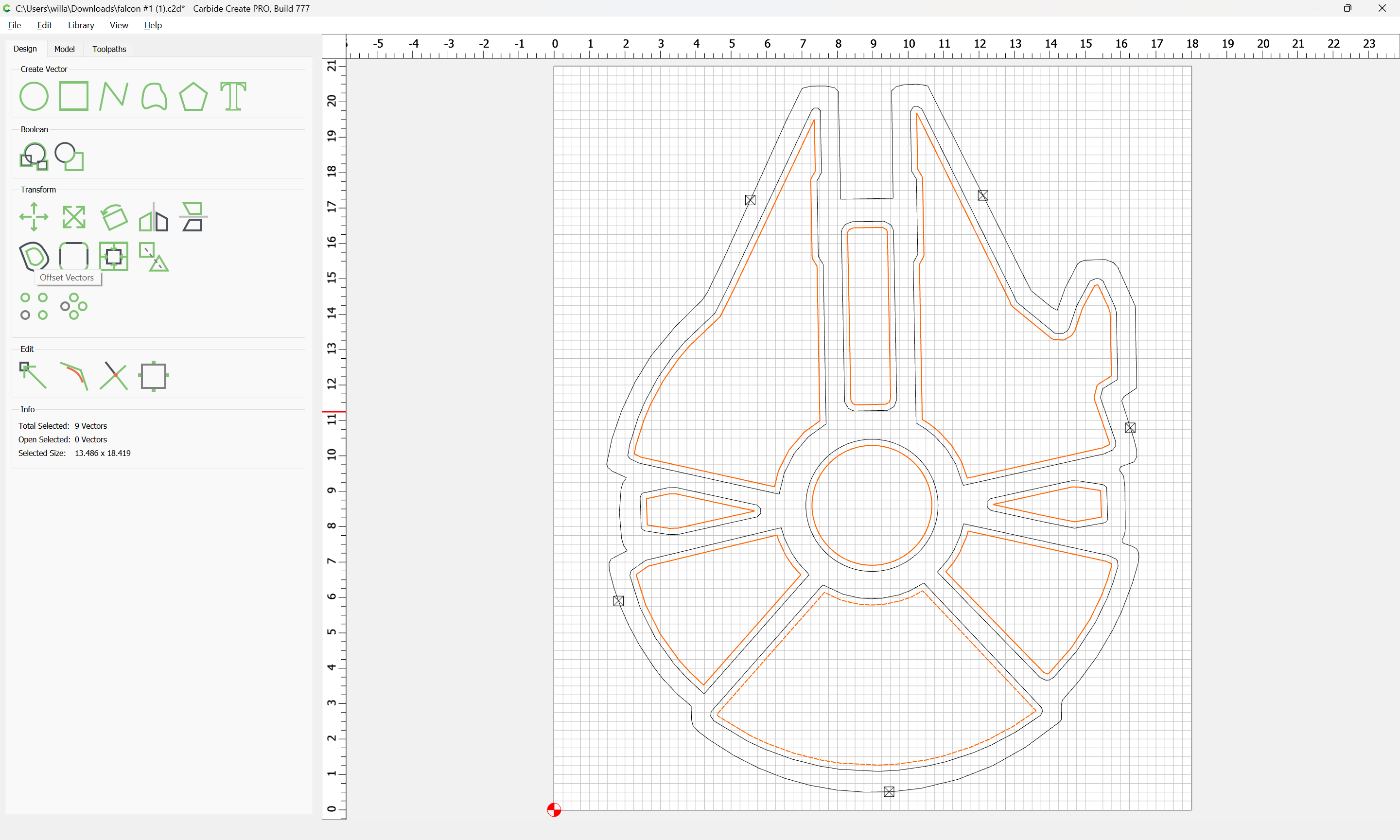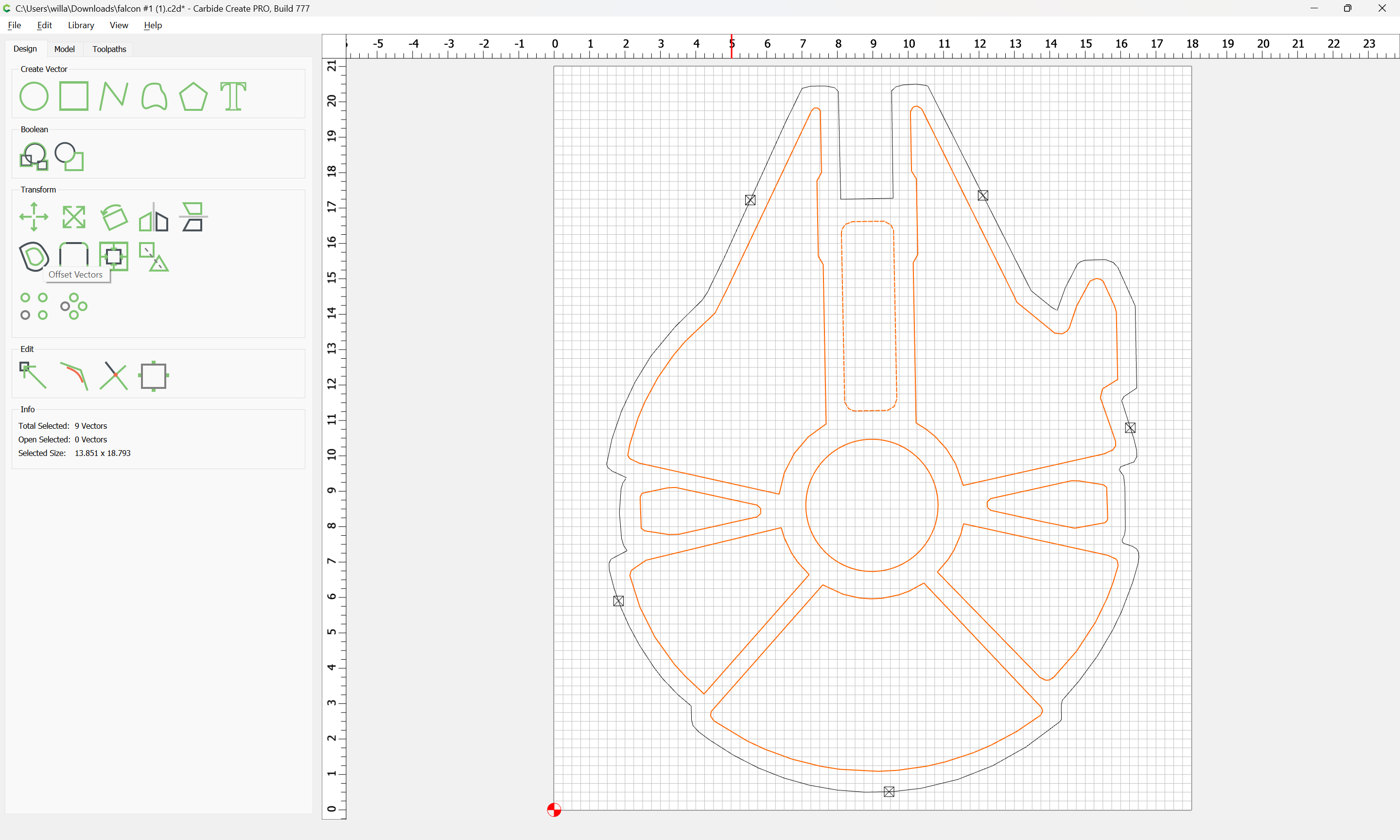 We then go back to the Design pane and offset to the outside by the radius of the tool: