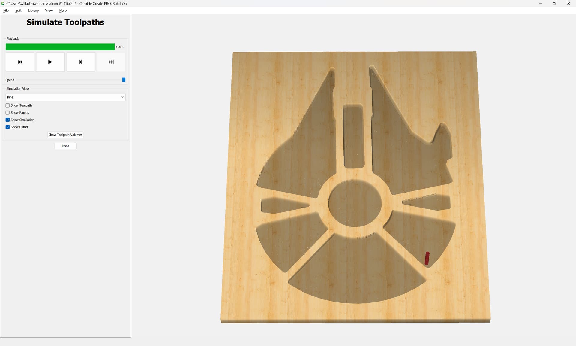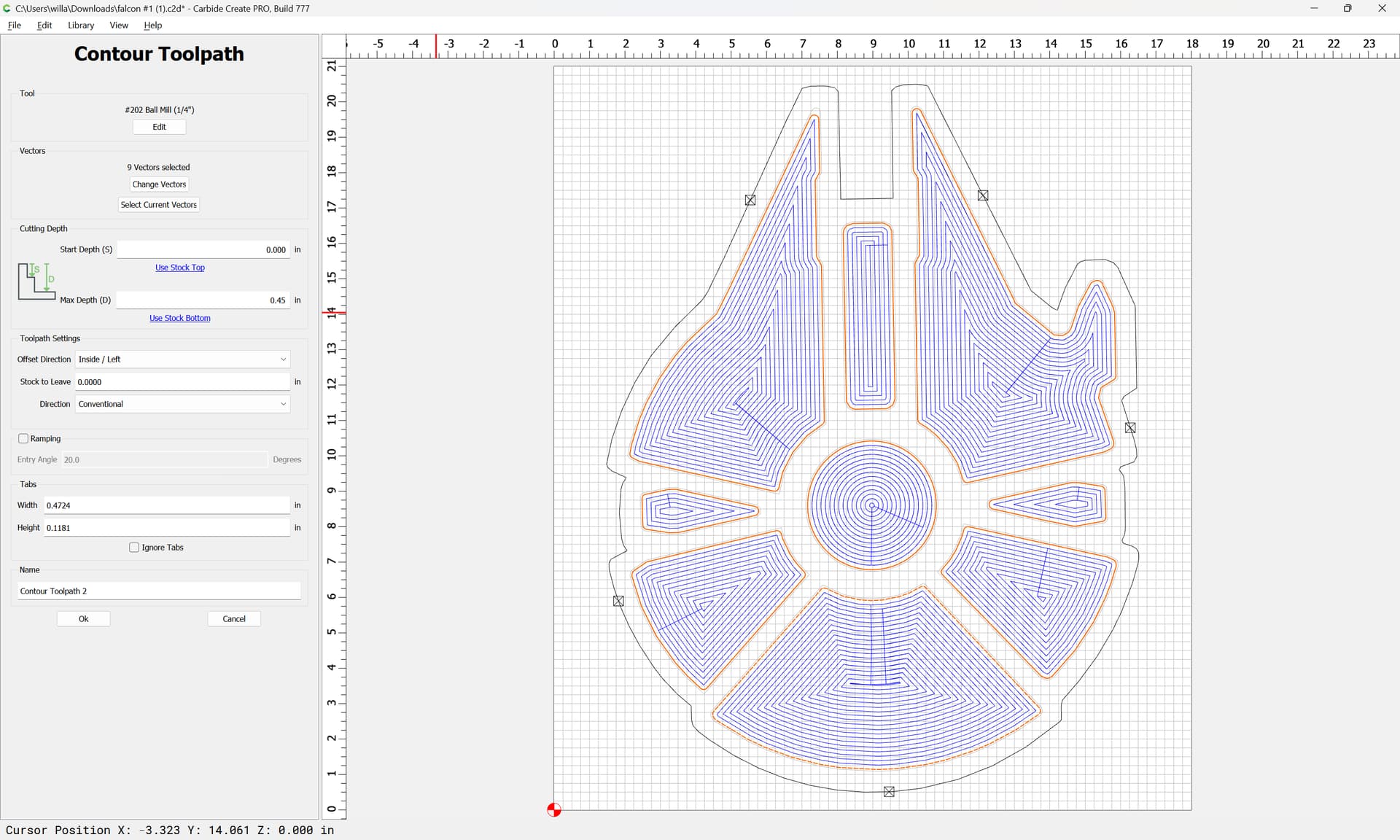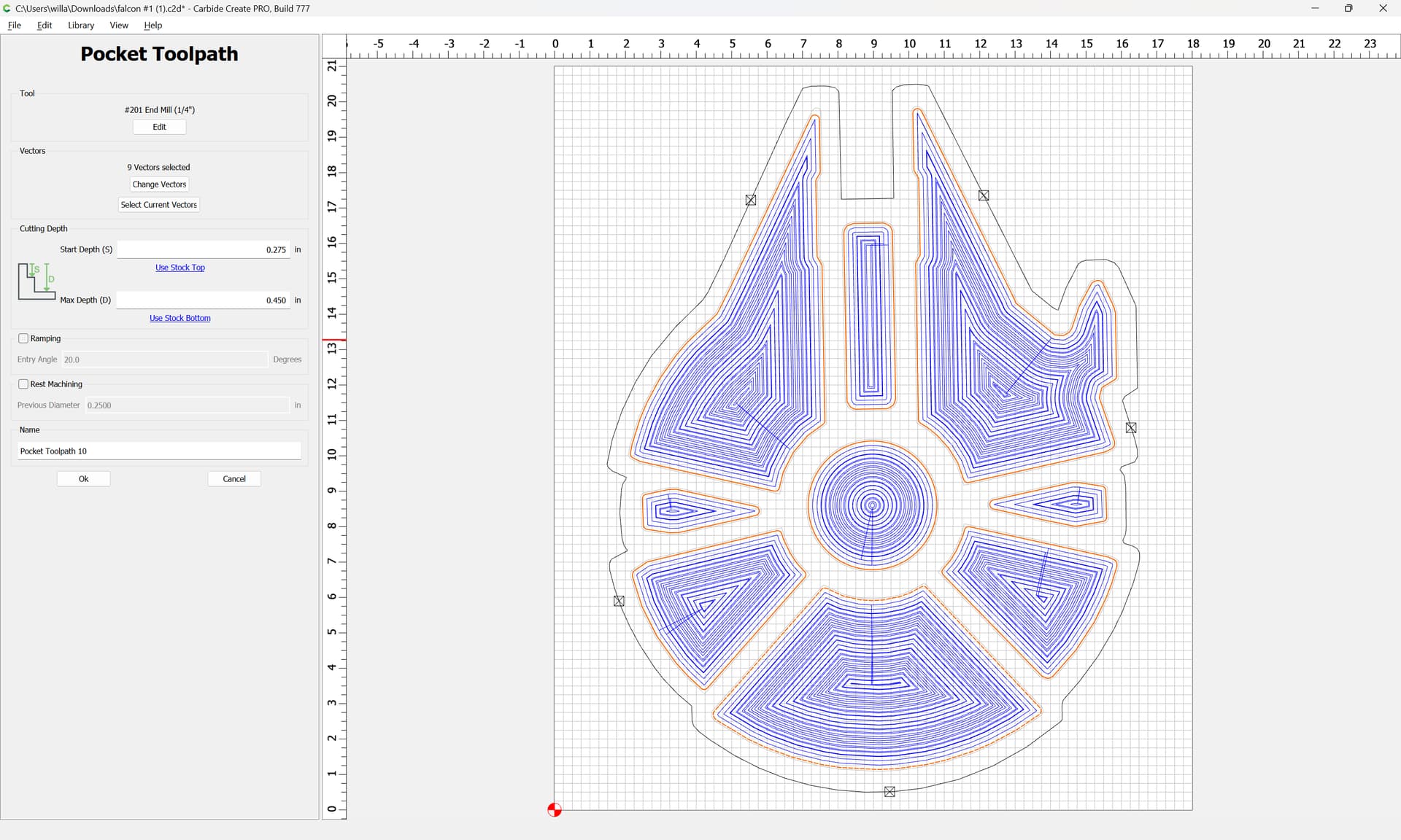 again, adjusting the Depth per Pass so as to ensure that the final pass removes a very thin thickness of material: