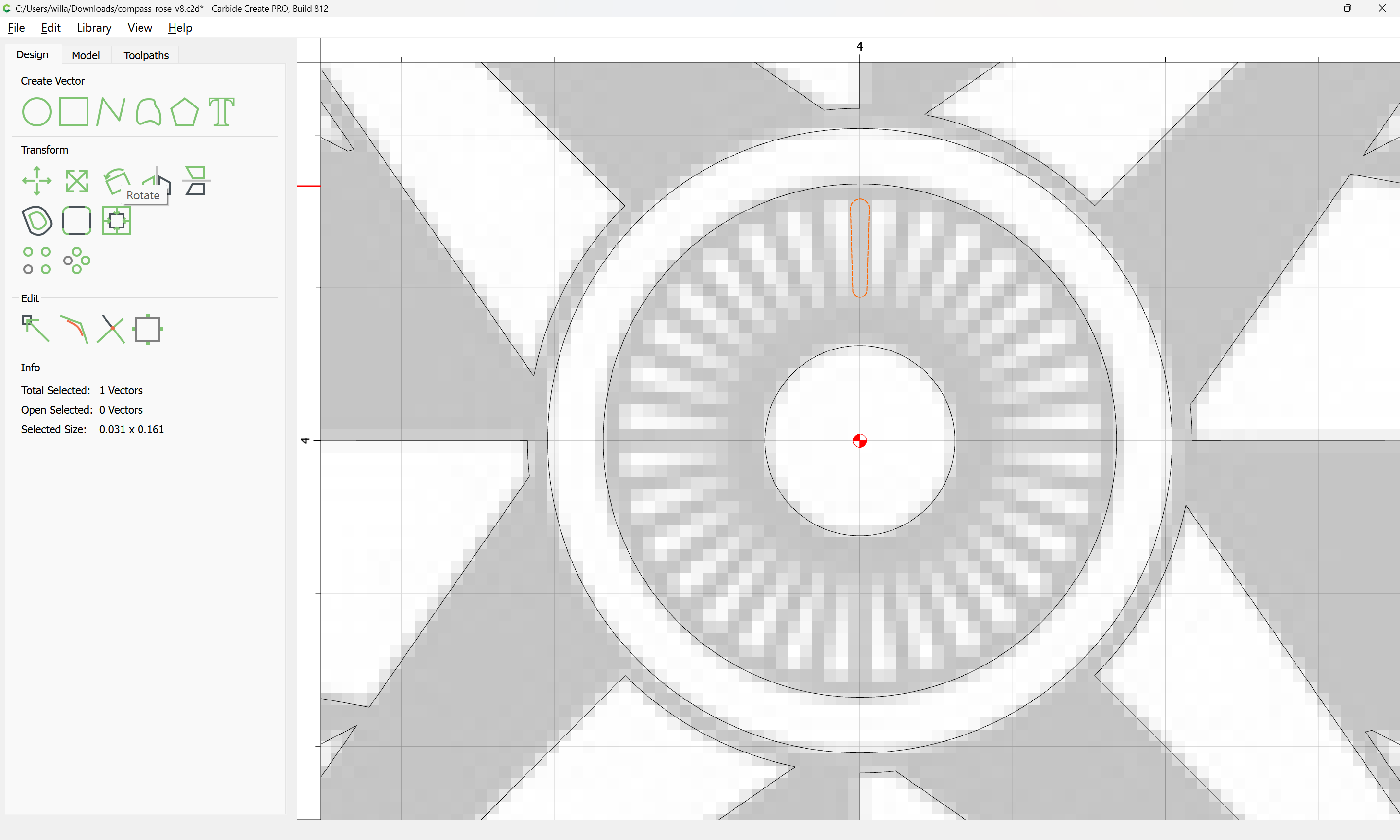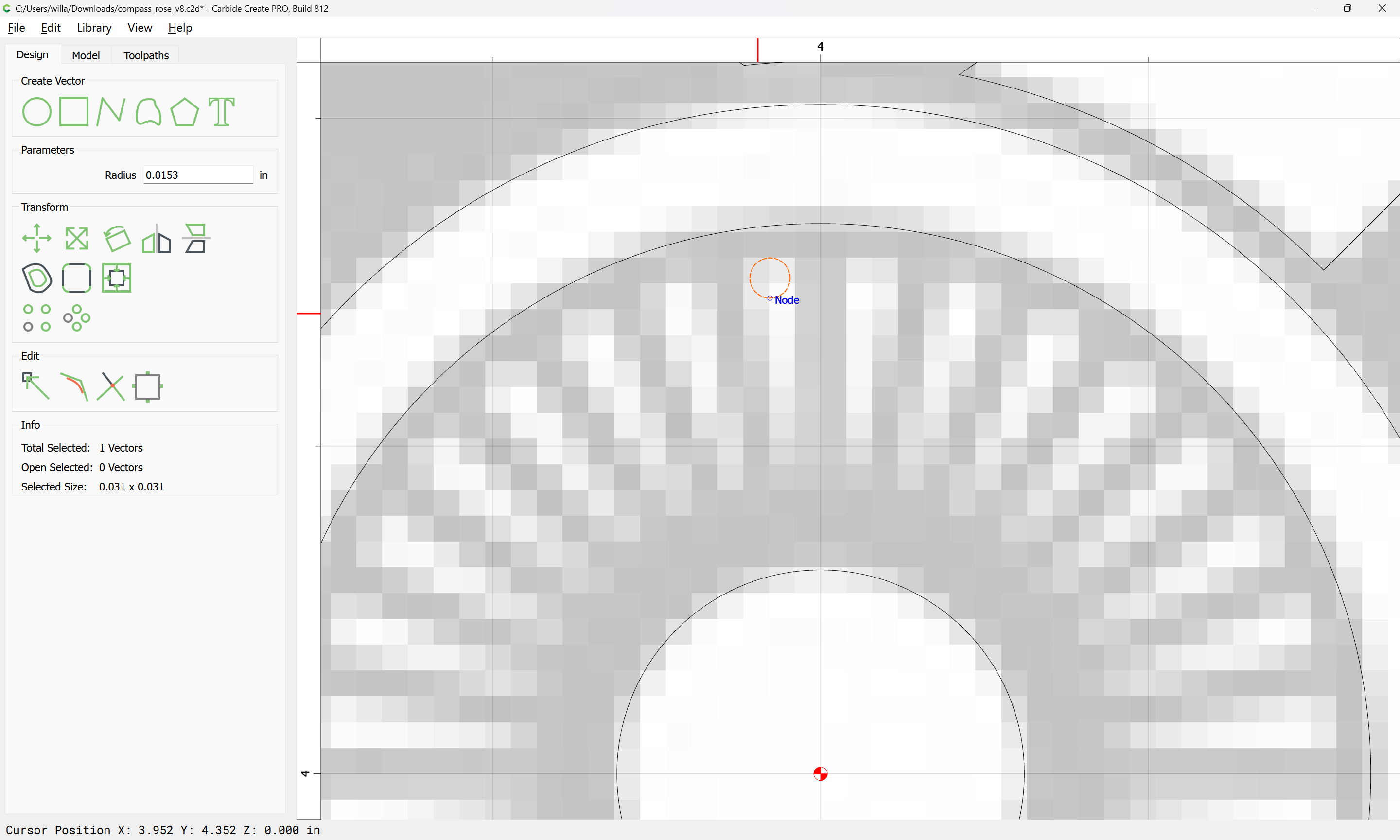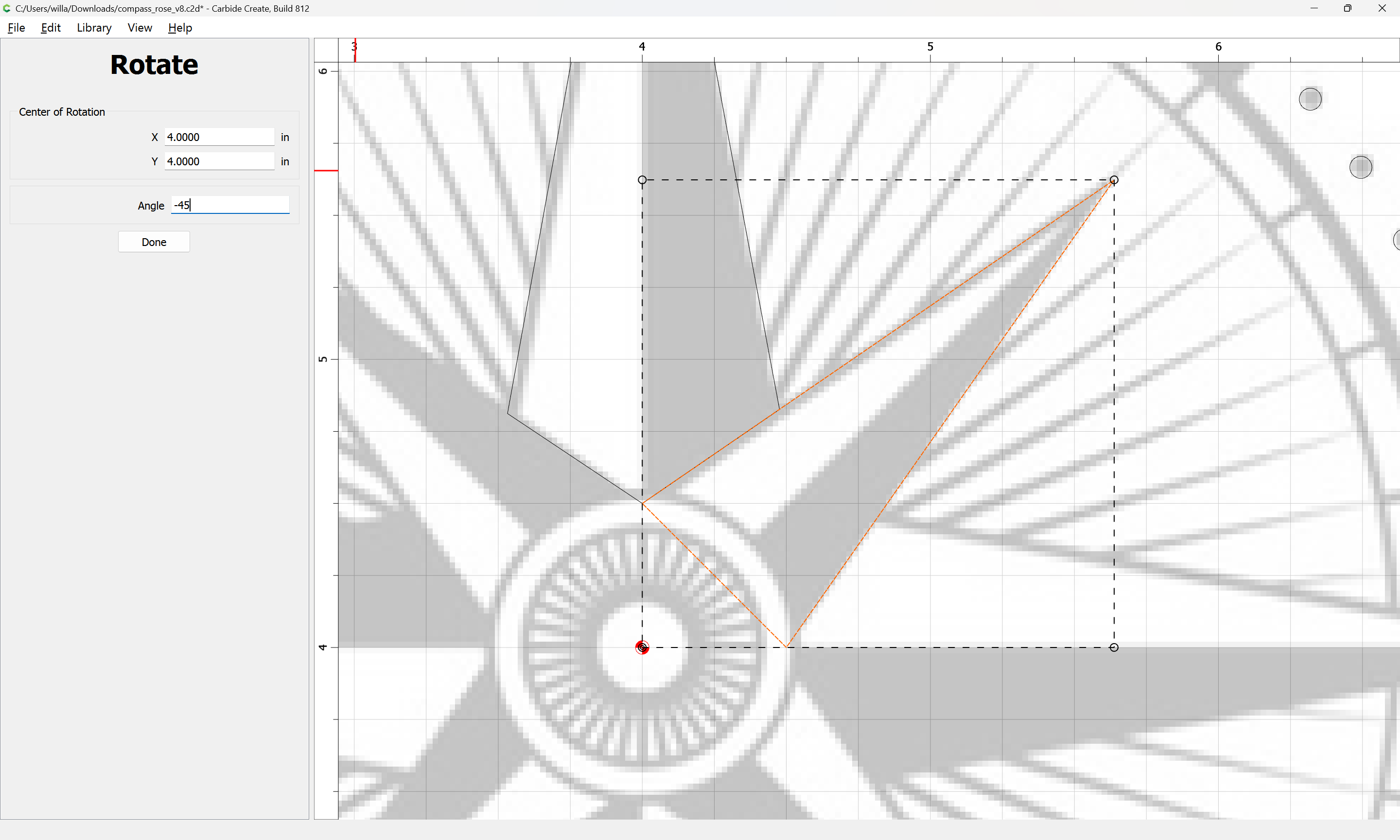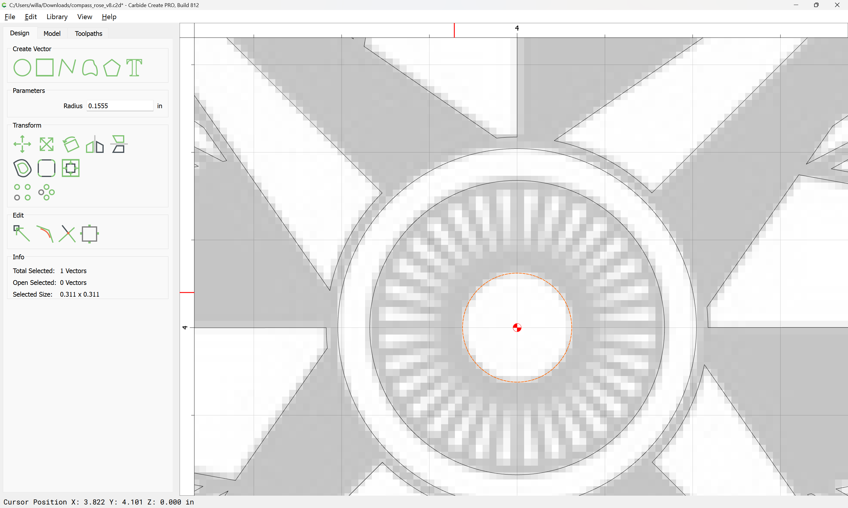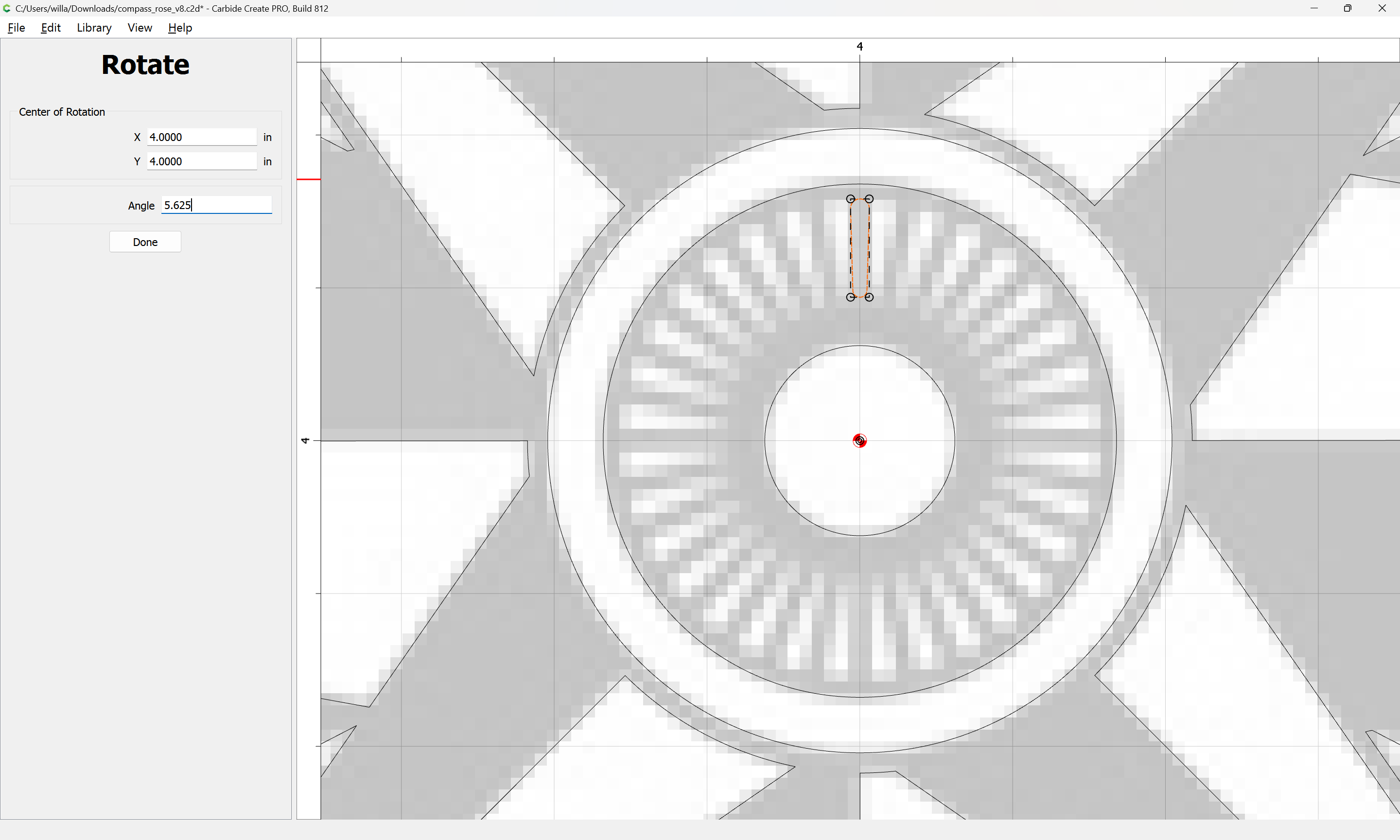 Lastly we draw in the indicators for the four quarters by selecting the central portion of the design: