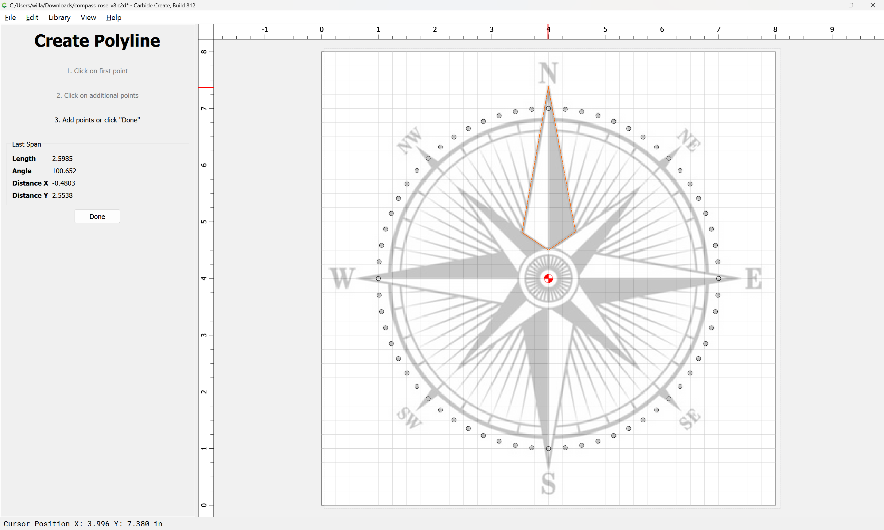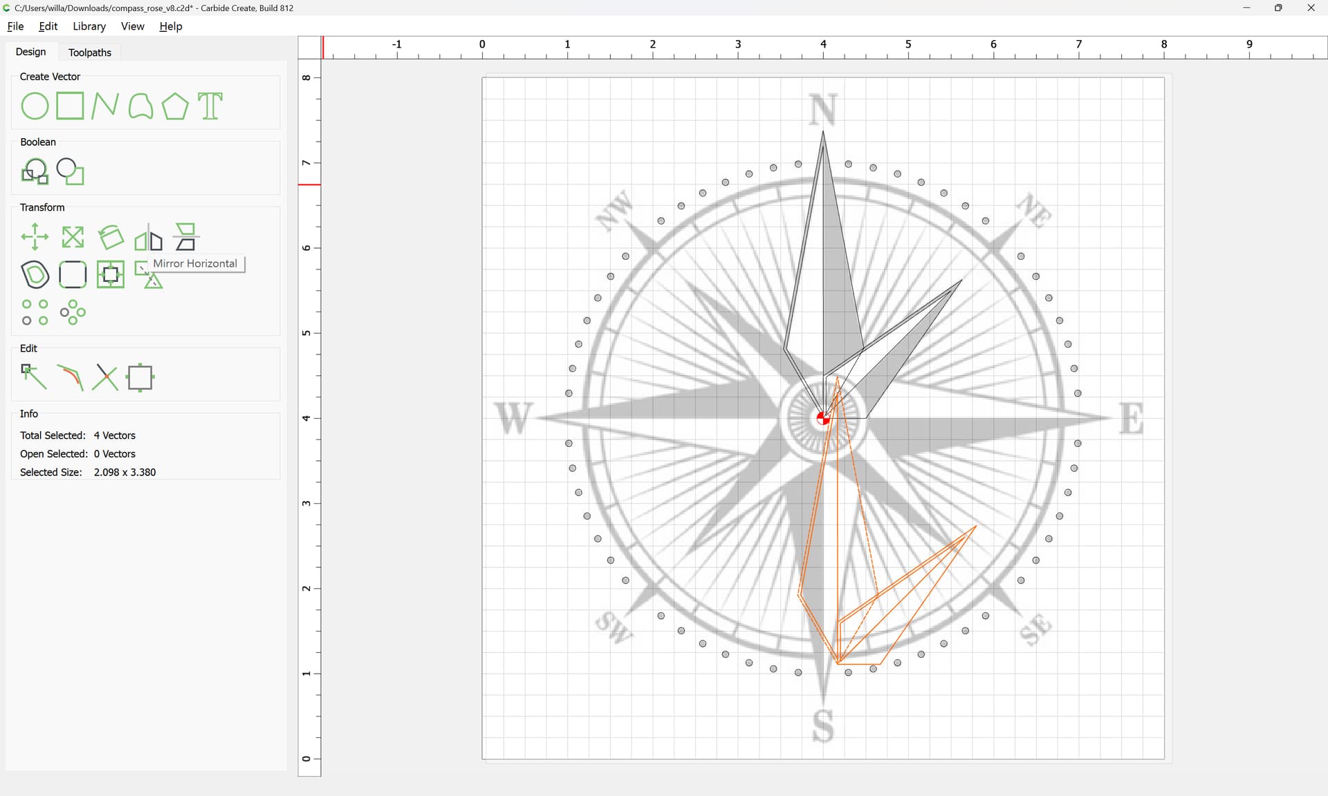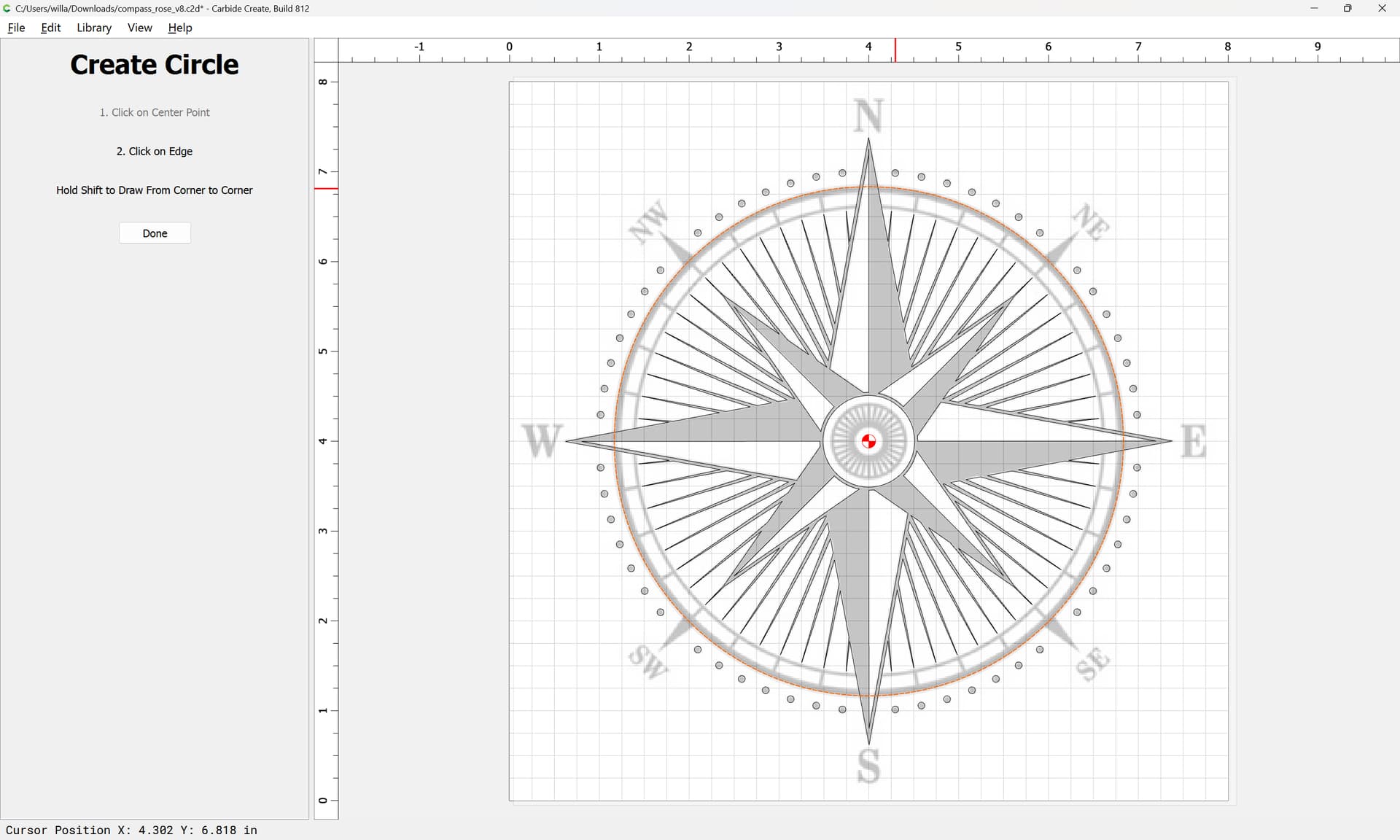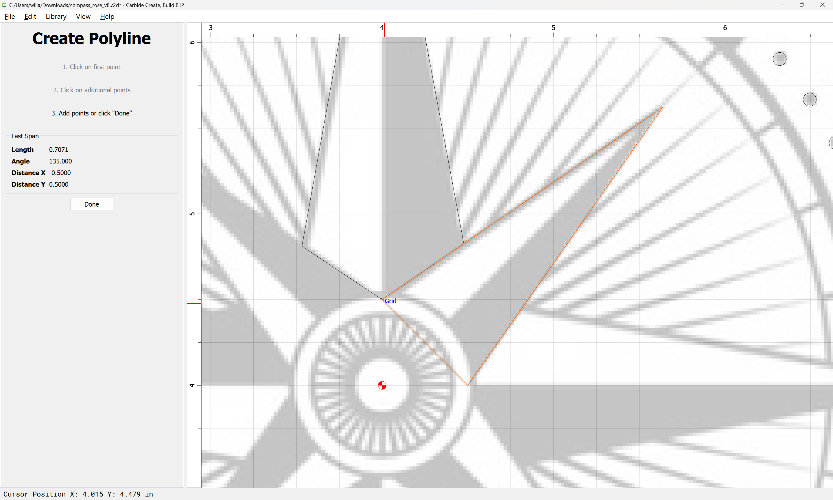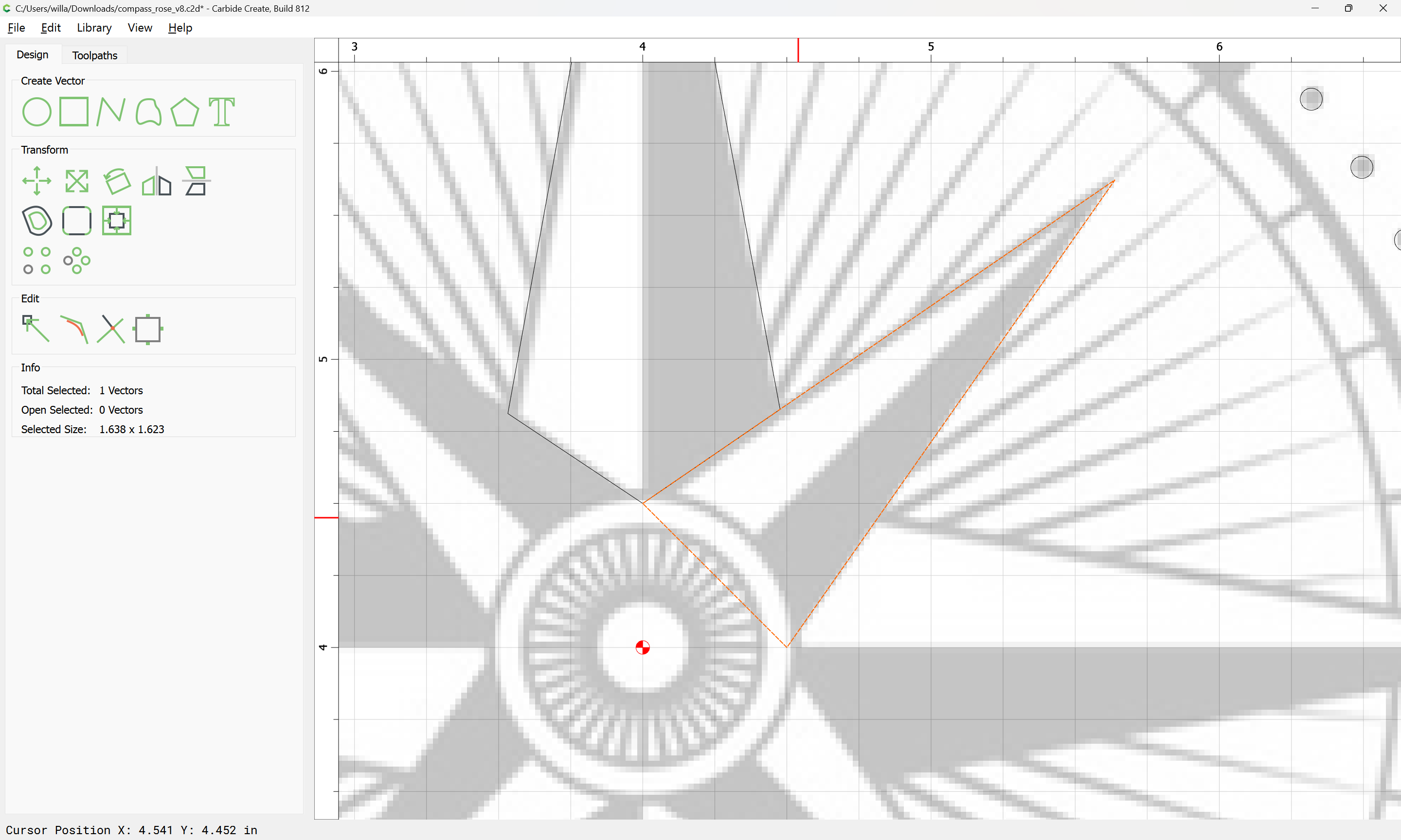 Lastly we draw in the indicators for the four quarters by selecting the central portion of the design: