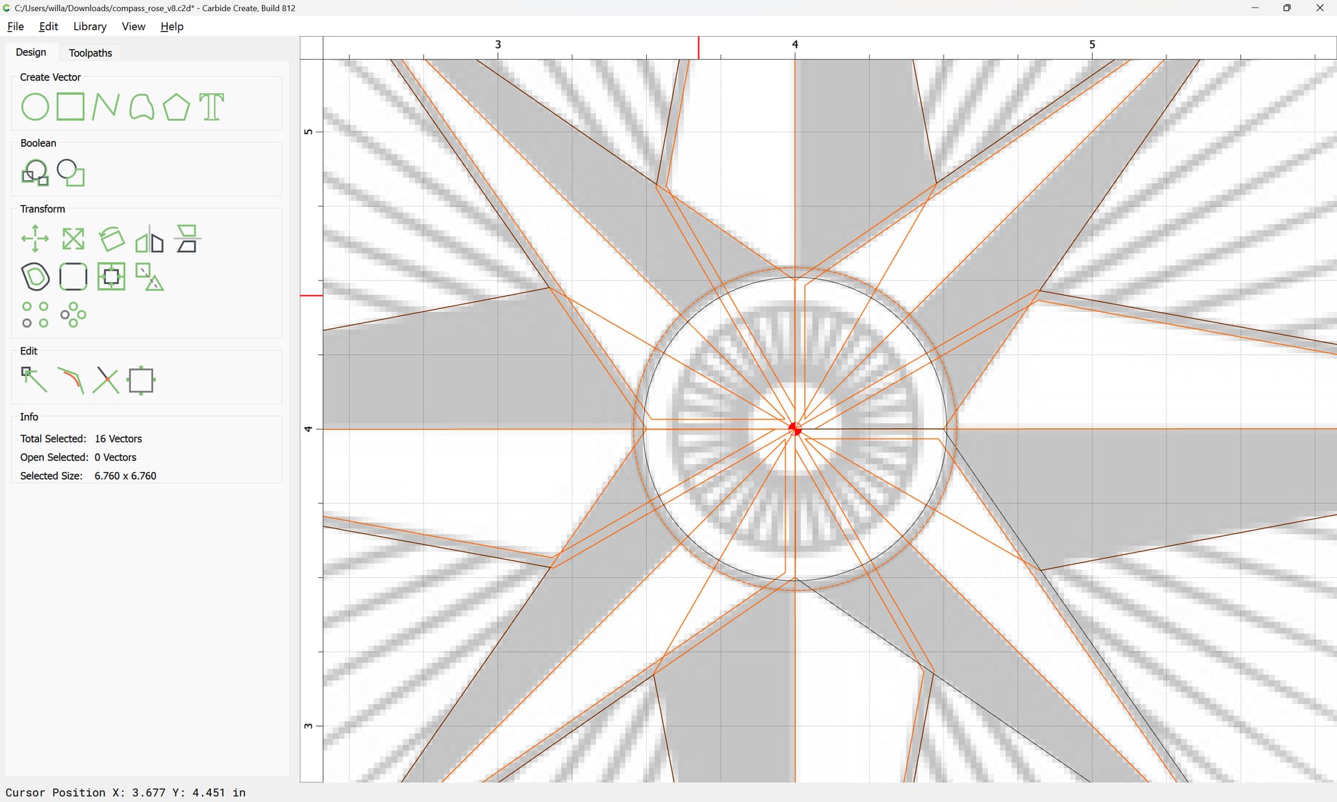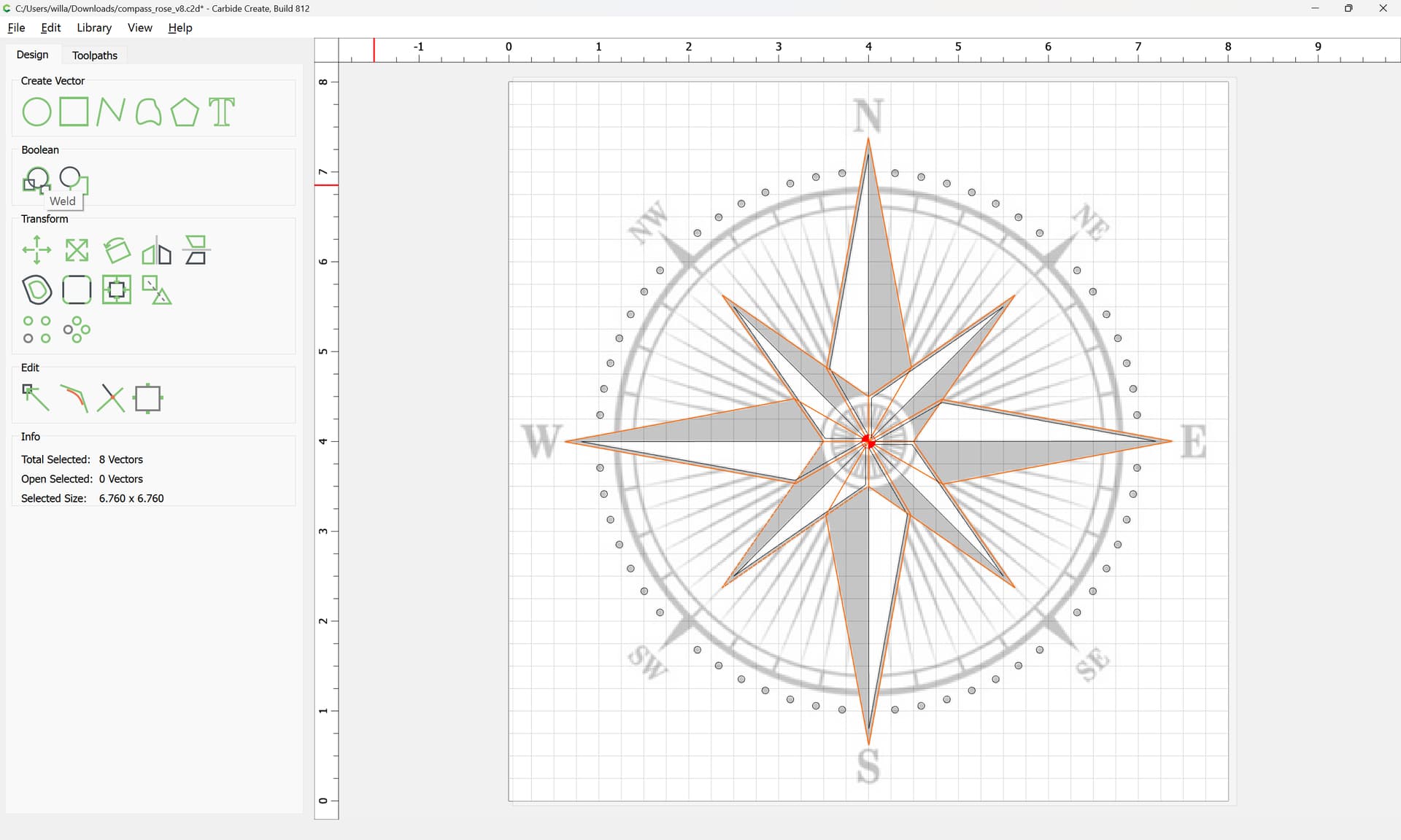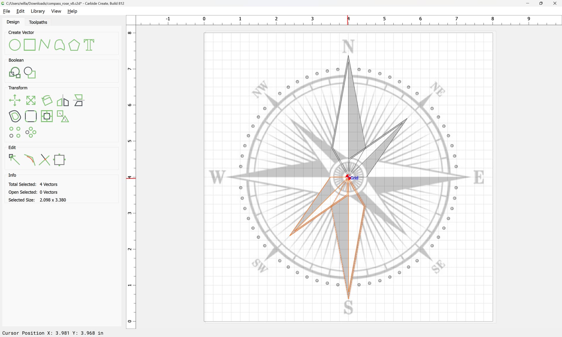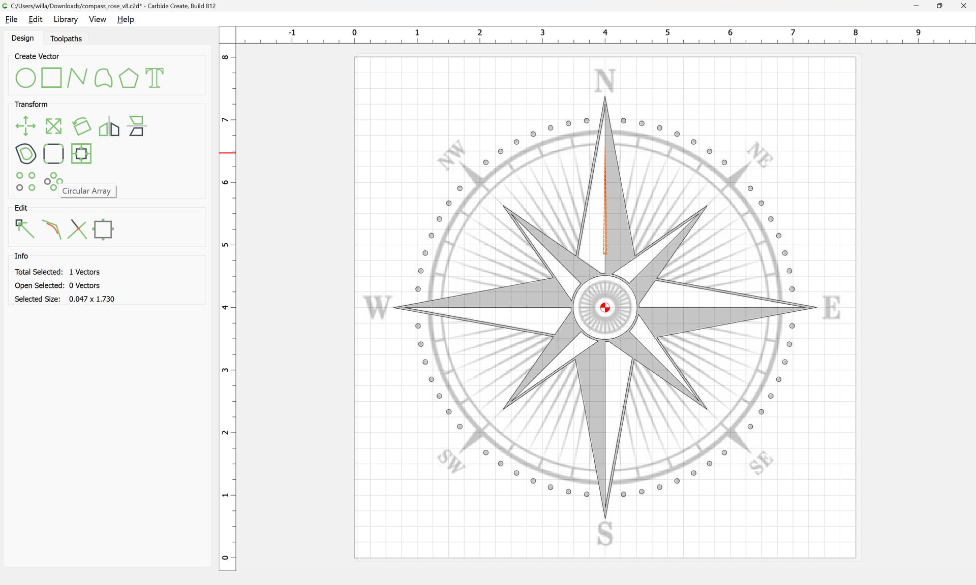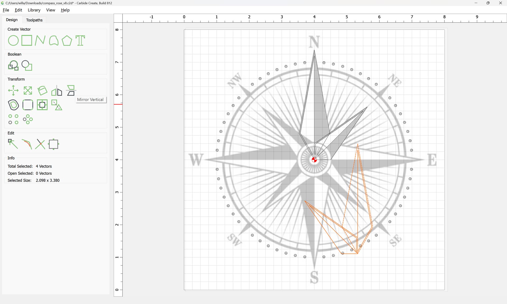 Lastly we draw in the indicators for the four quarters by selecting the central portion of the design: