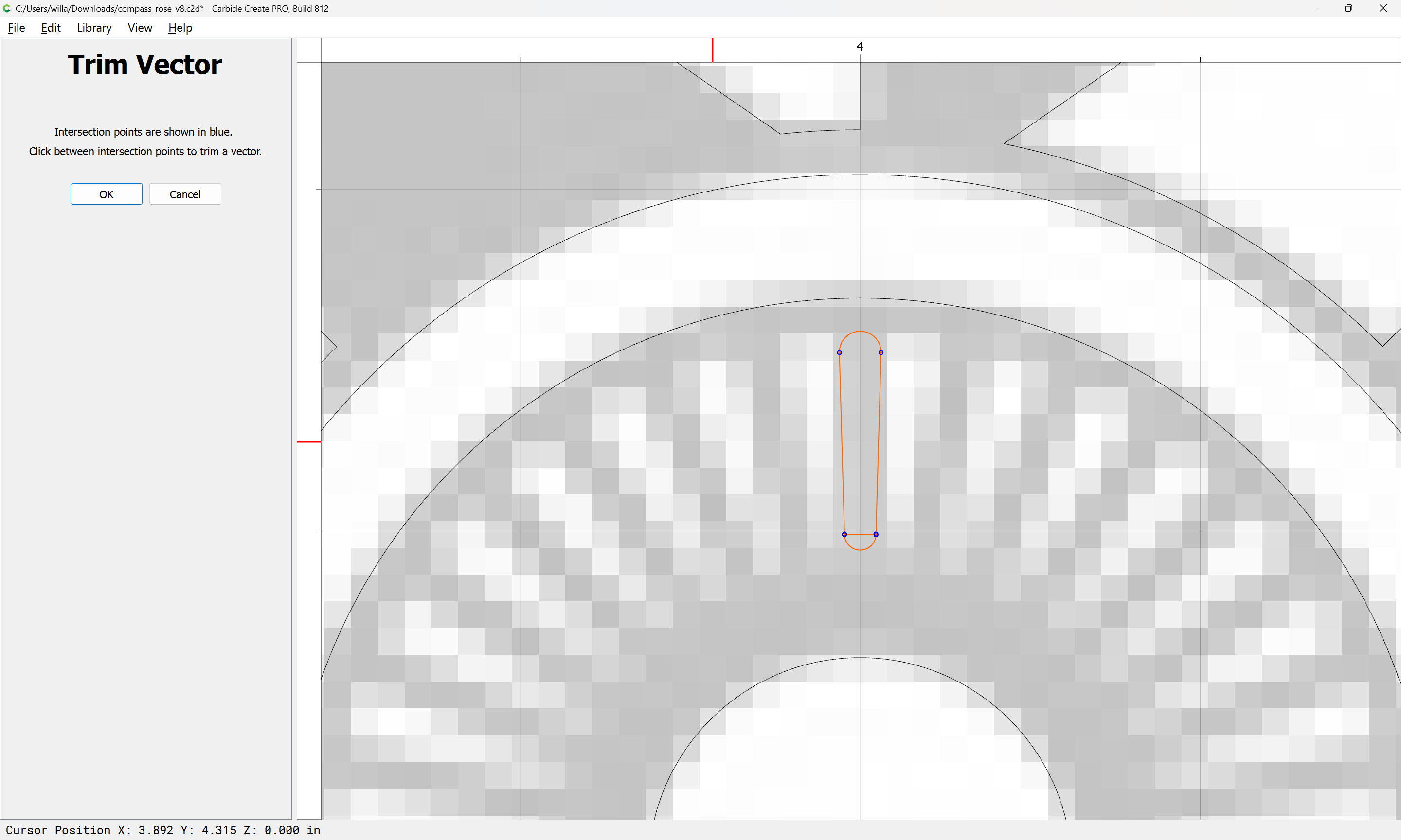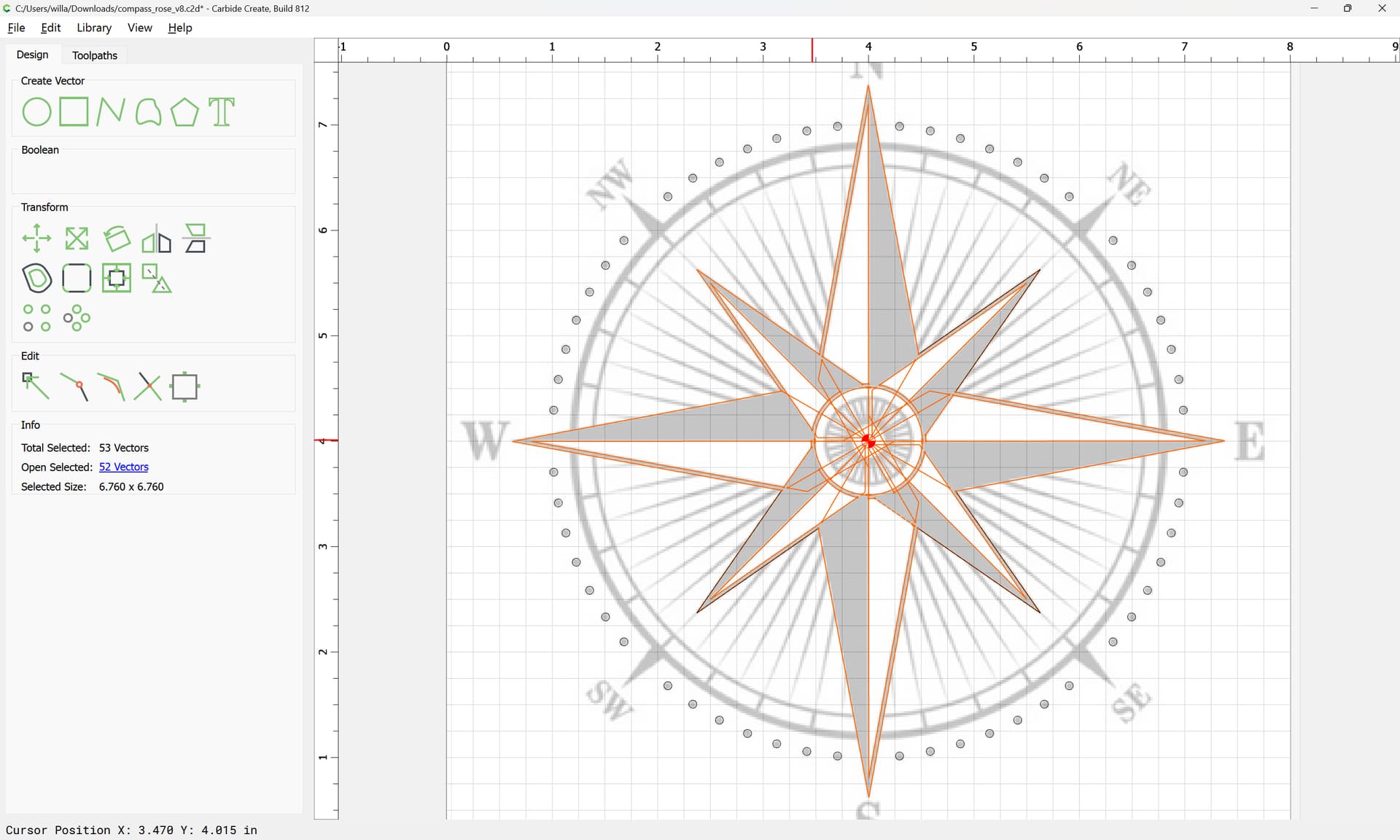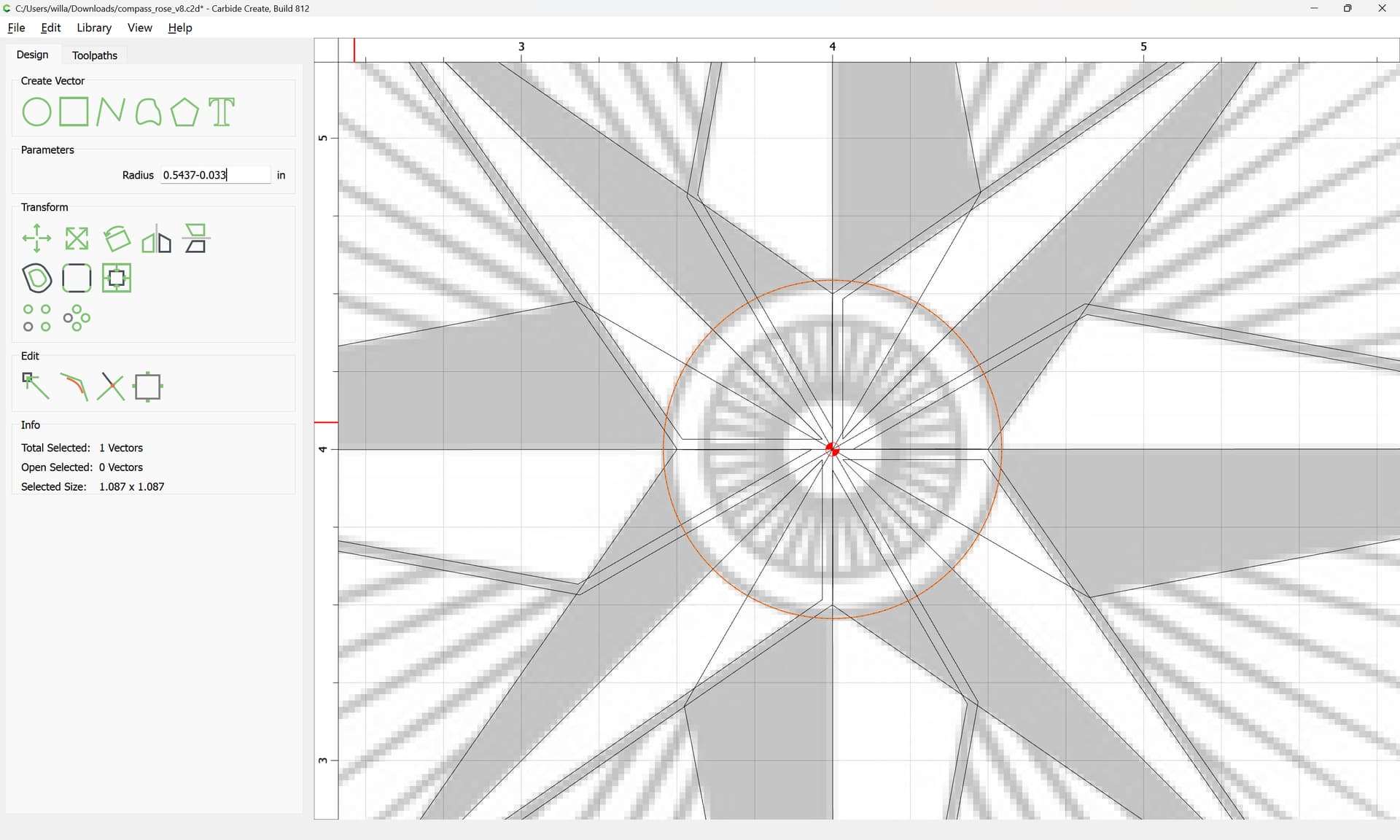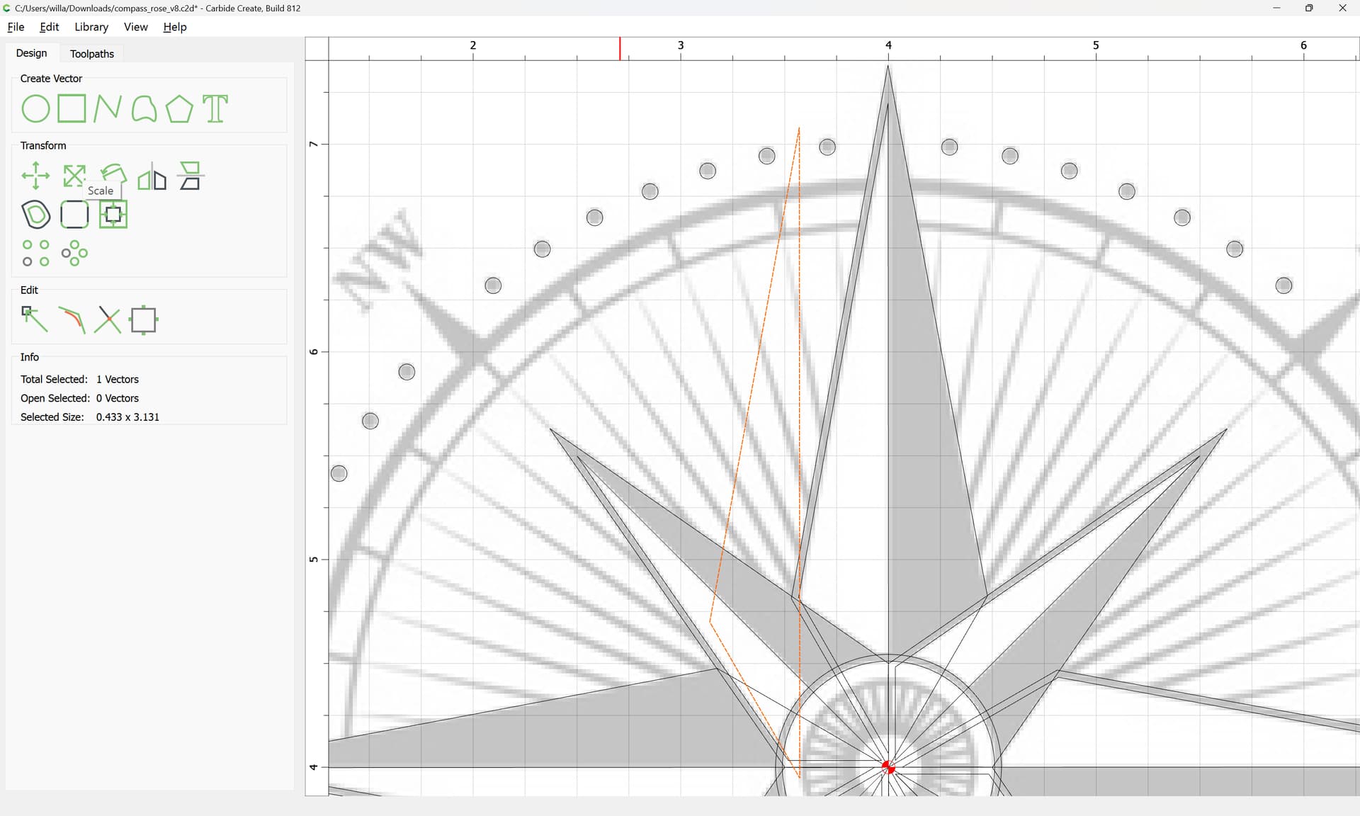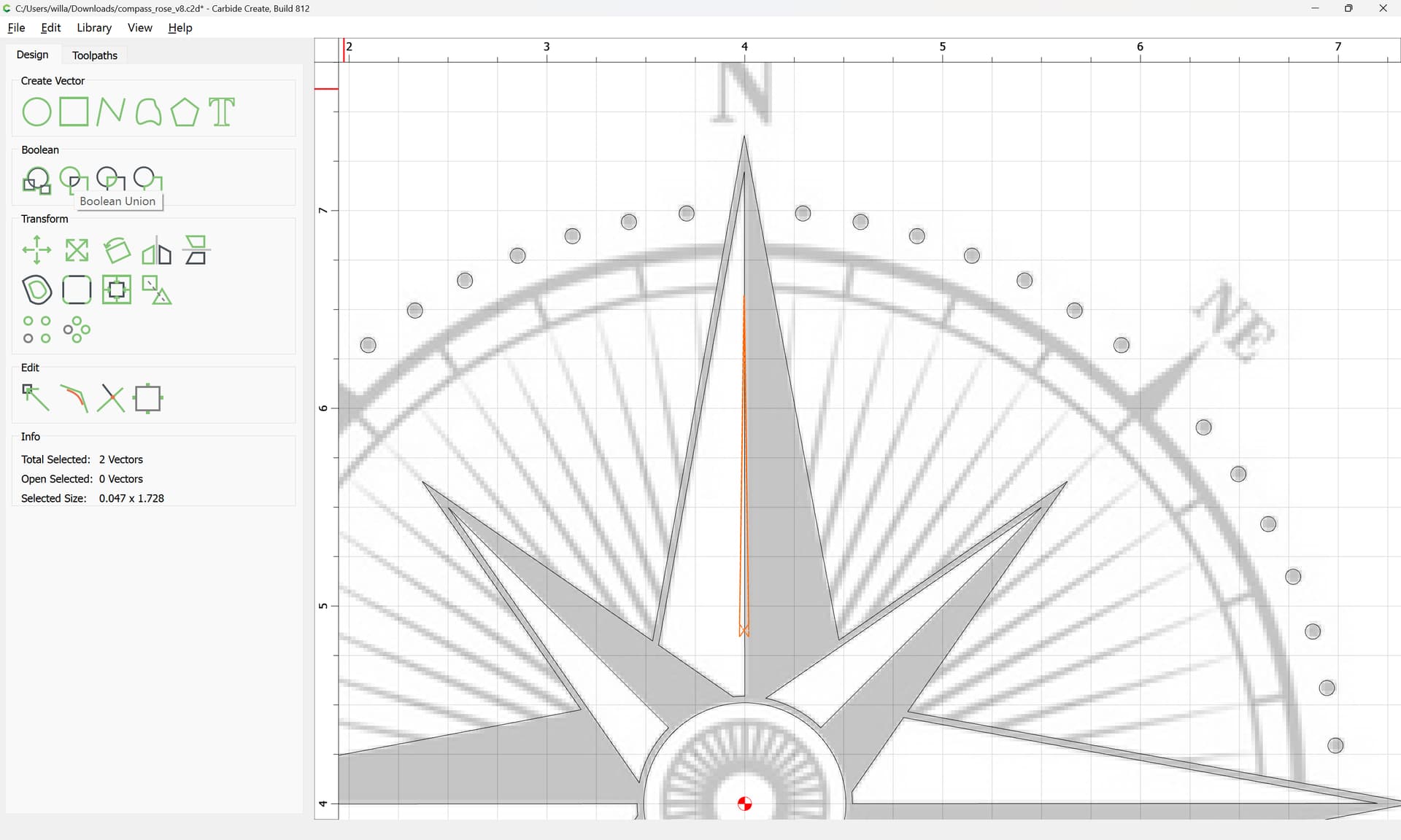 Lastly we draw in the indicators for the four quarters by selecting the central portion of the design: