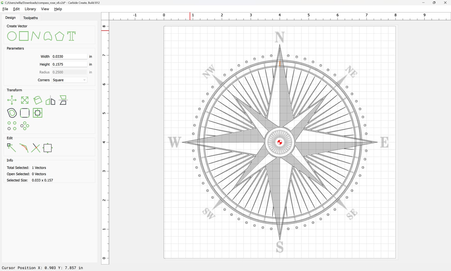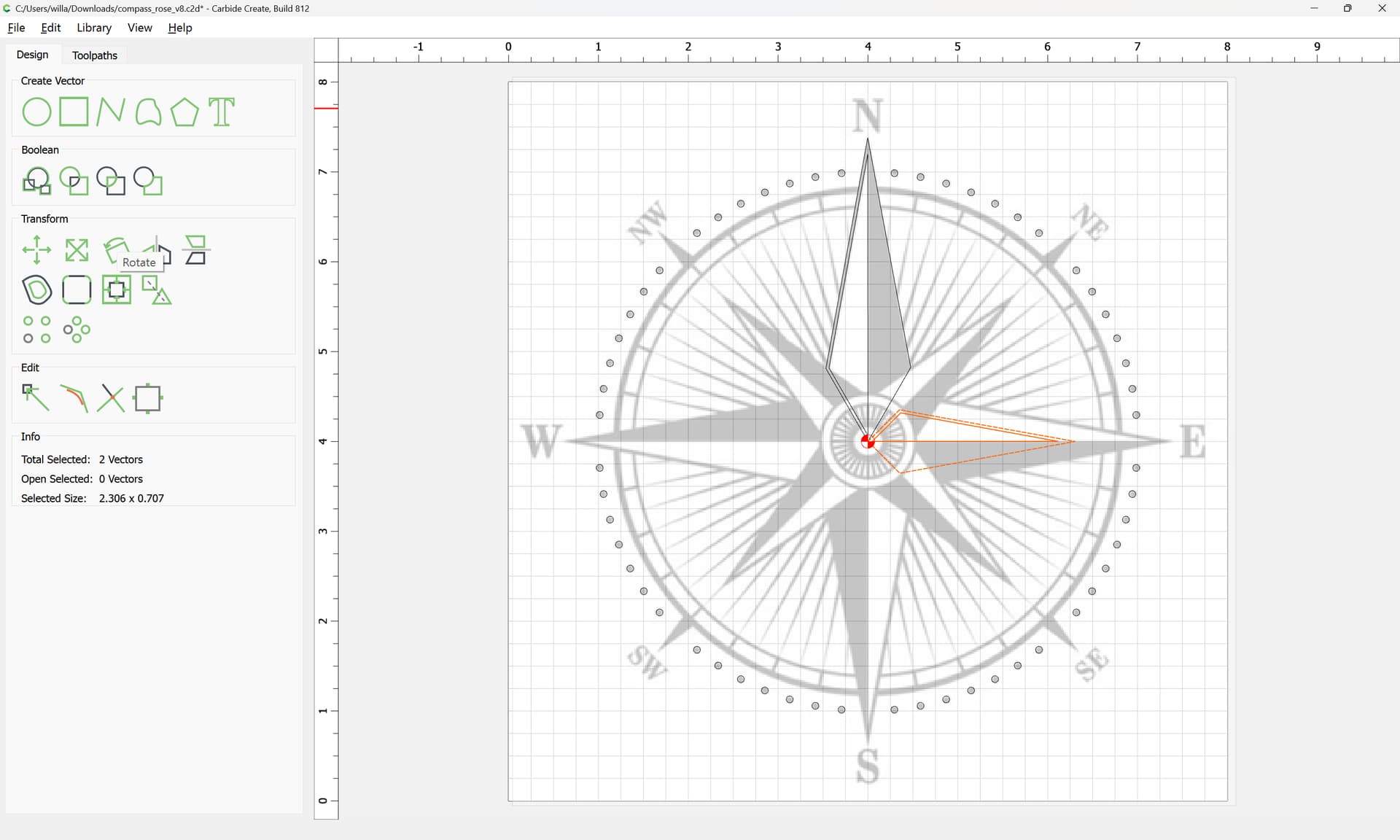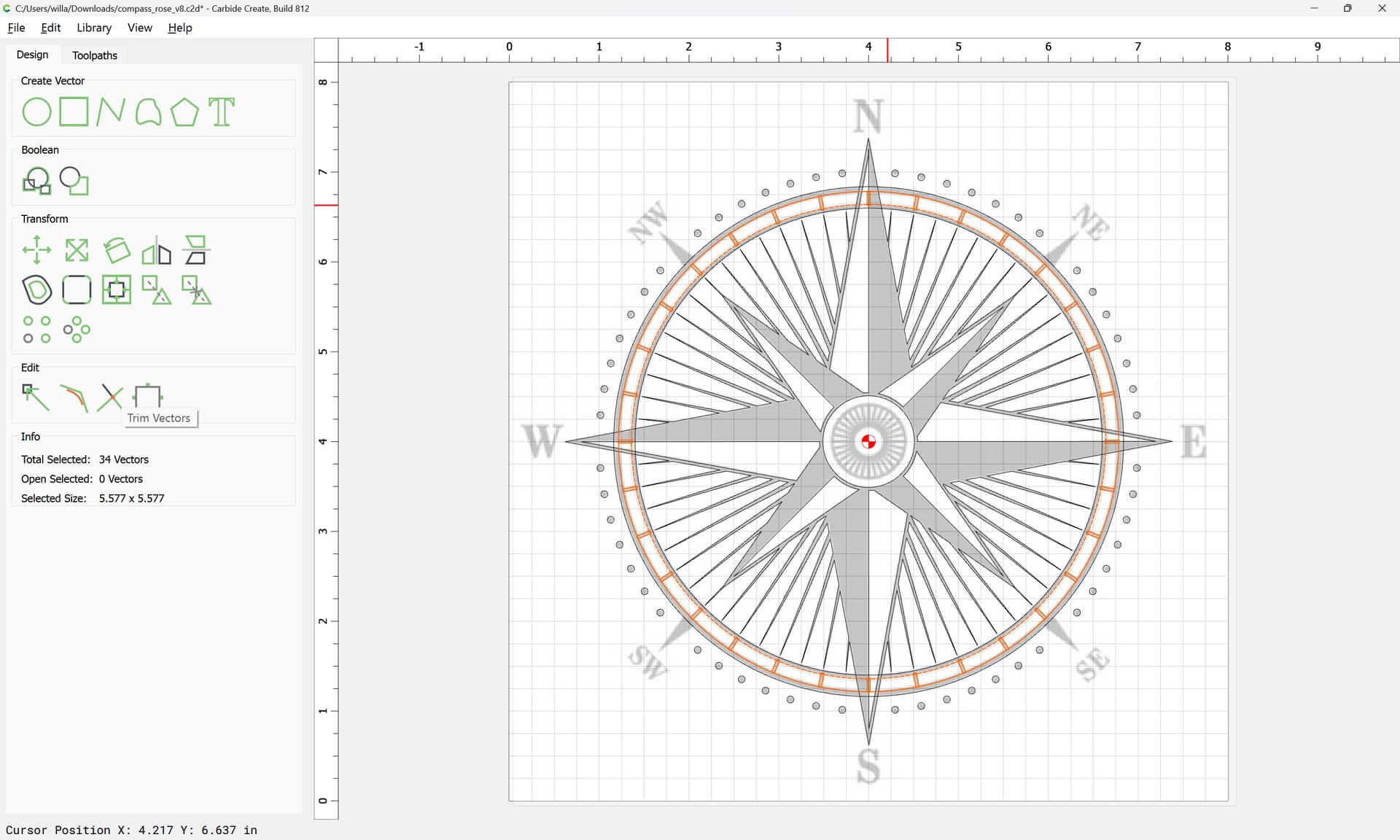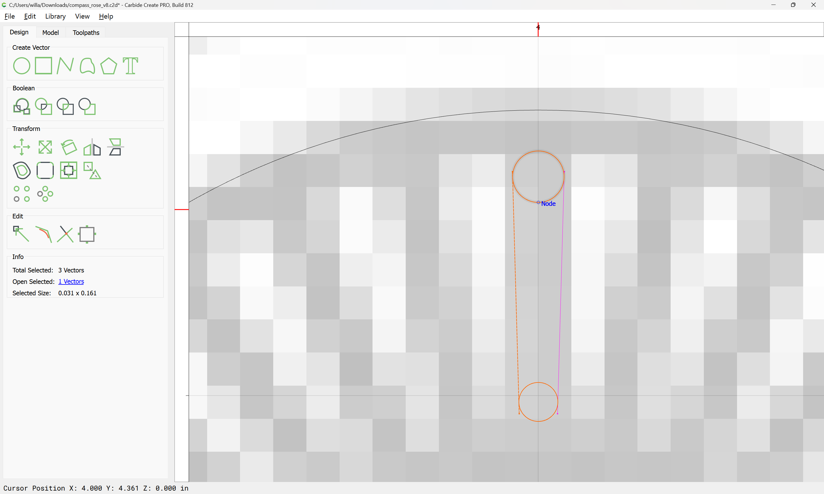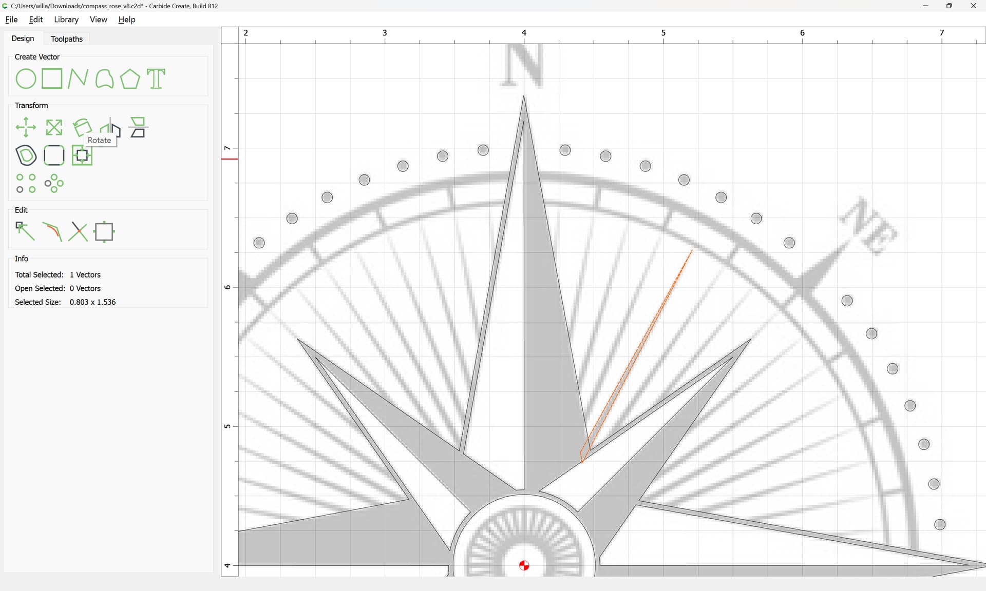 Lastly we draw in the indicators for the four quarters by selecting the central portion of the design: