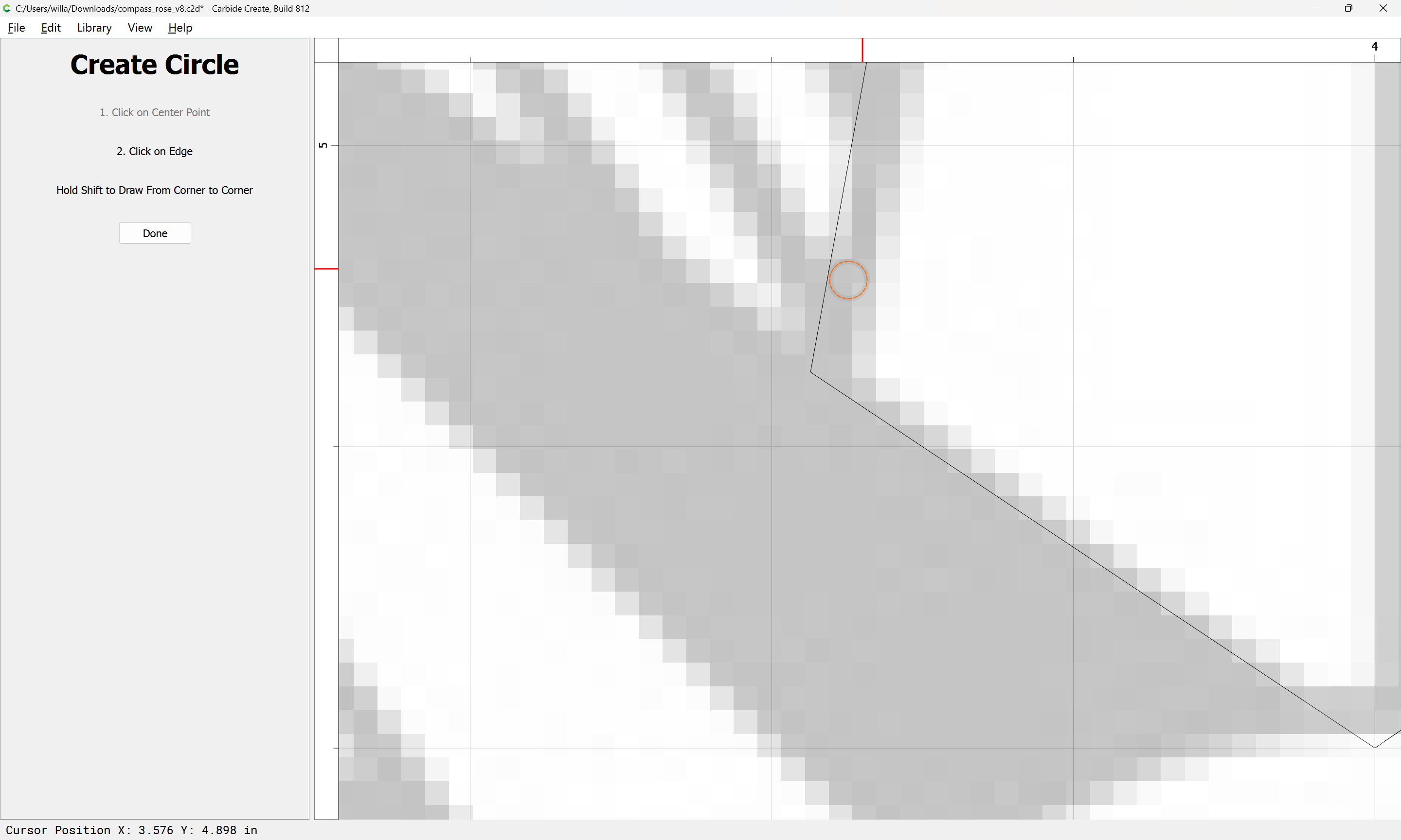Since an inset will be needed, draw in a circle to get a rough idea of the dimension for that: