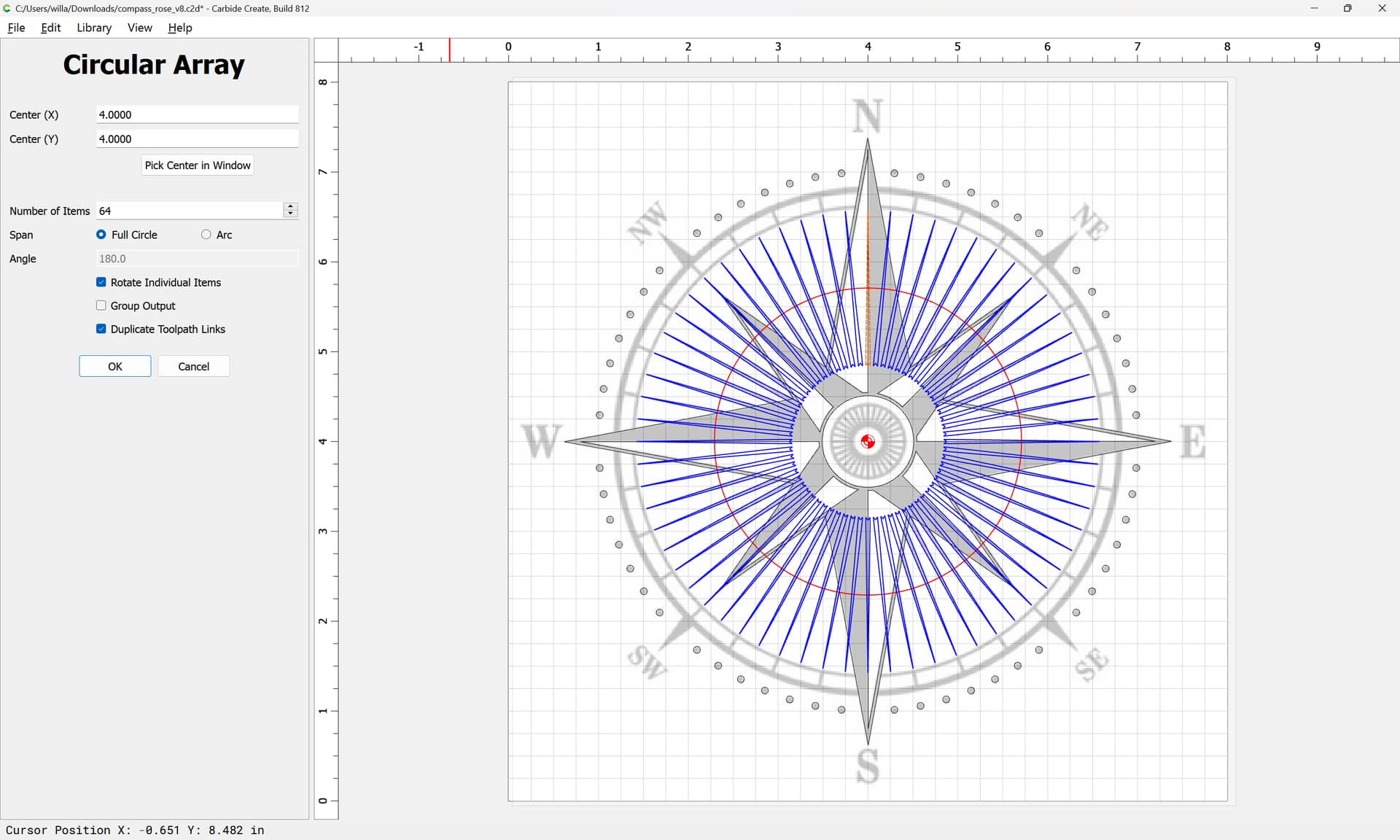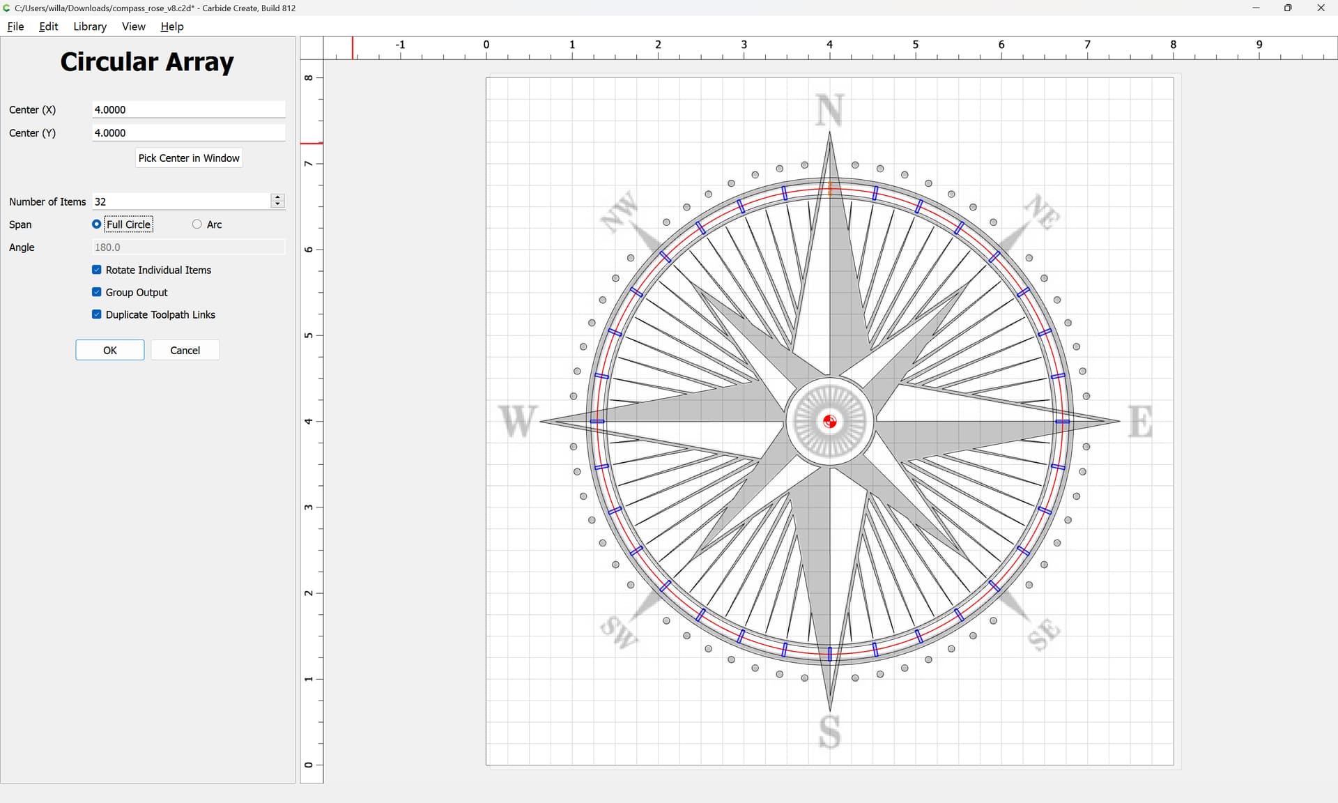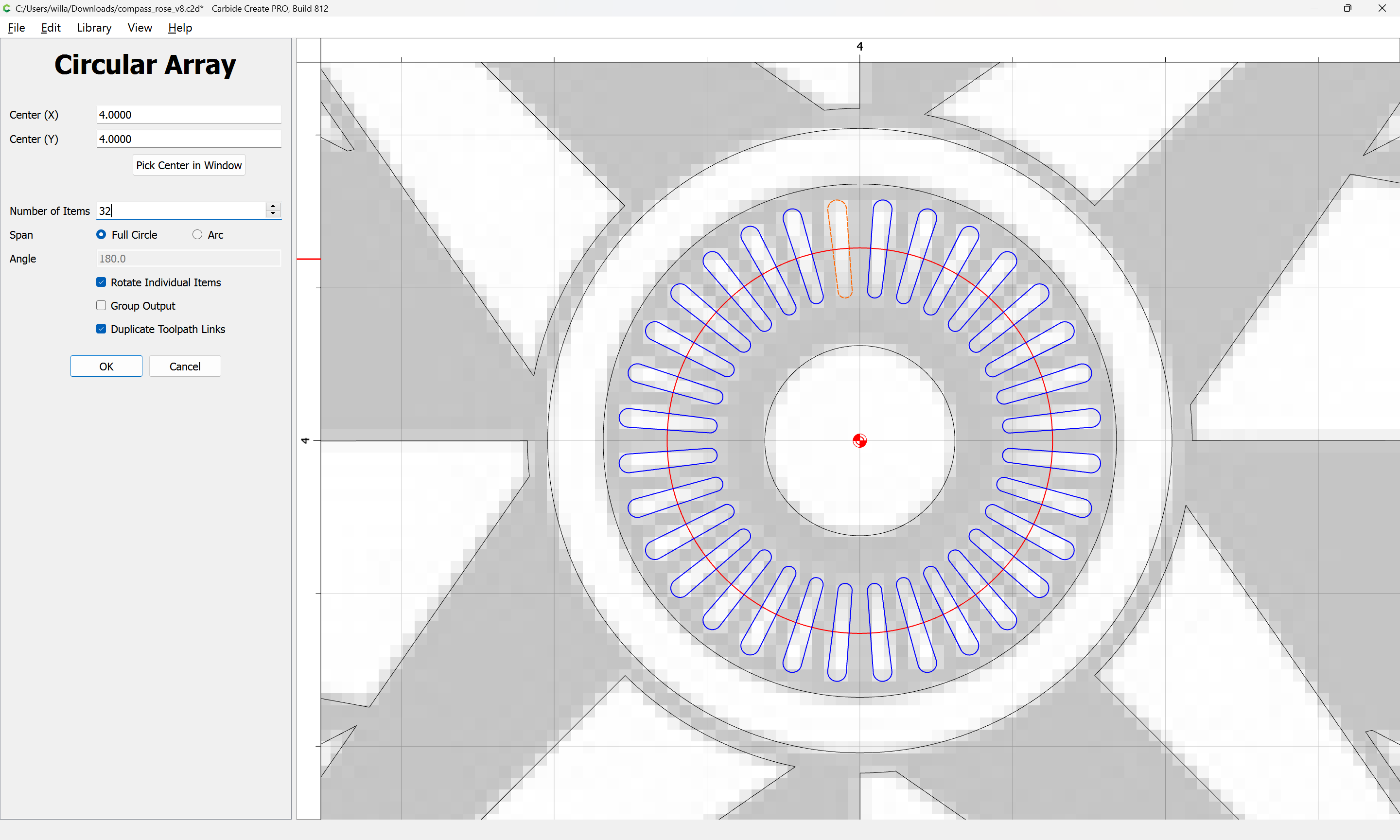 Since the above tutorial was posted, Carbide Create has gained a “Circular Array” tool: