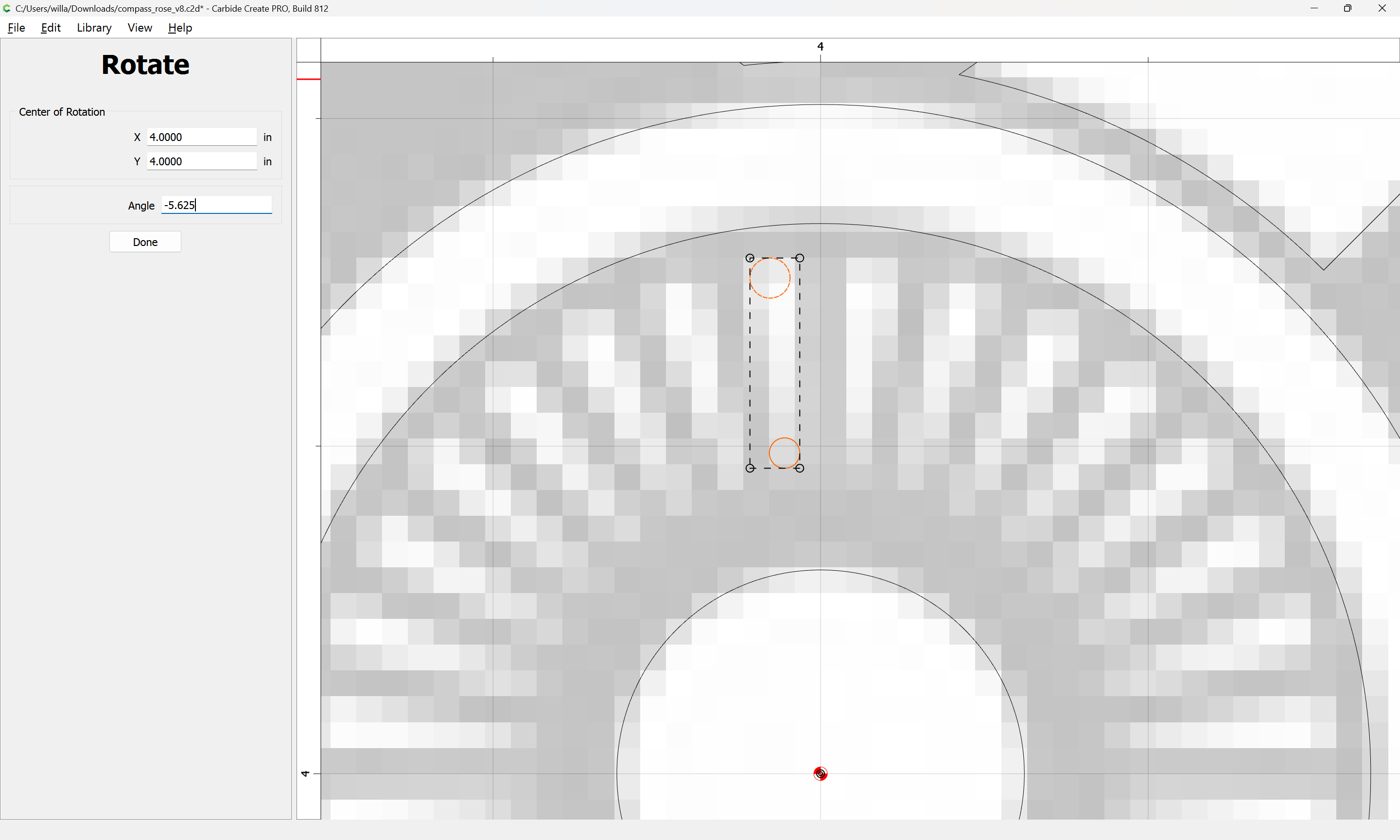 and as before, rotate it to fully vertical — since there are 64 dot positions around the perimeter this is obviously 22.5 + 5.625 degrees: