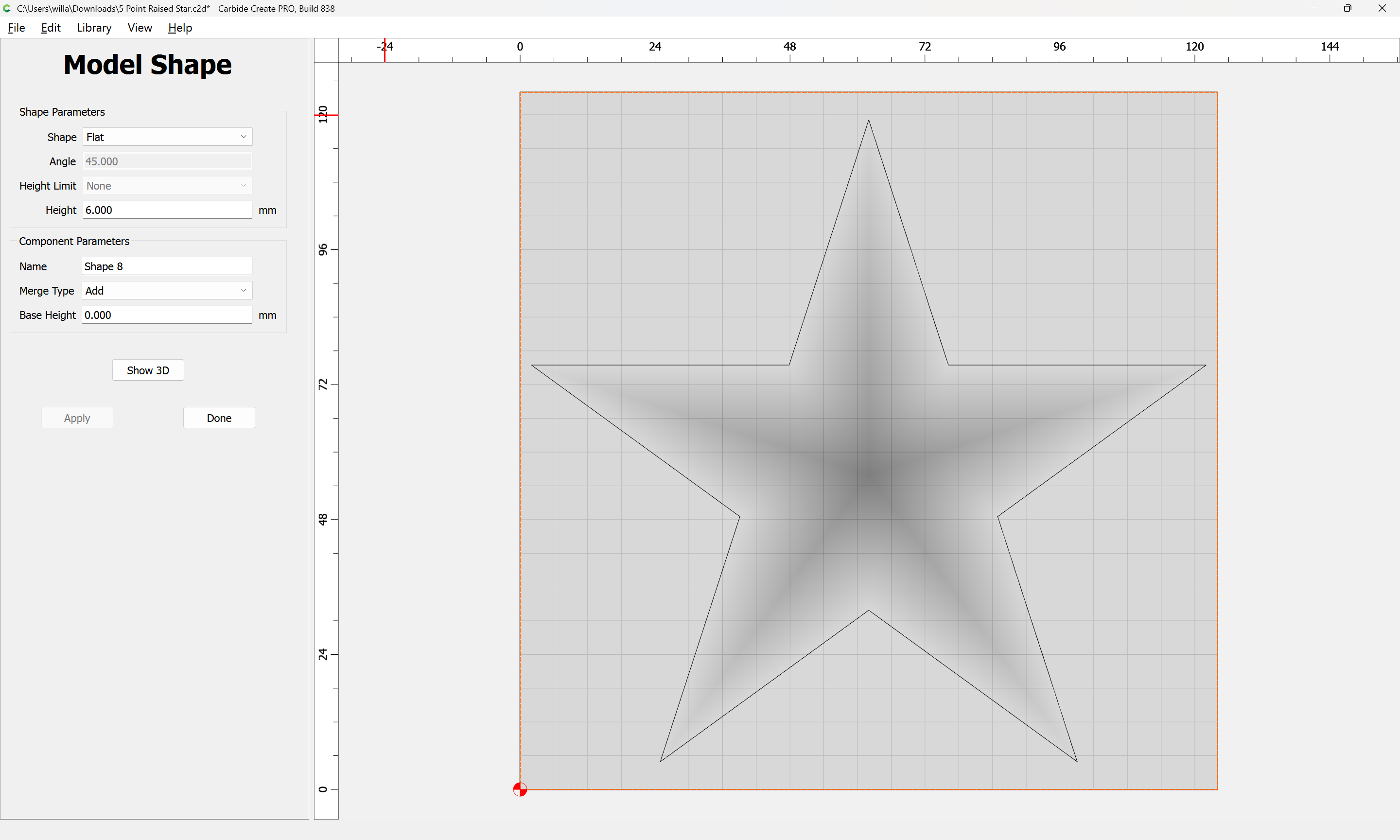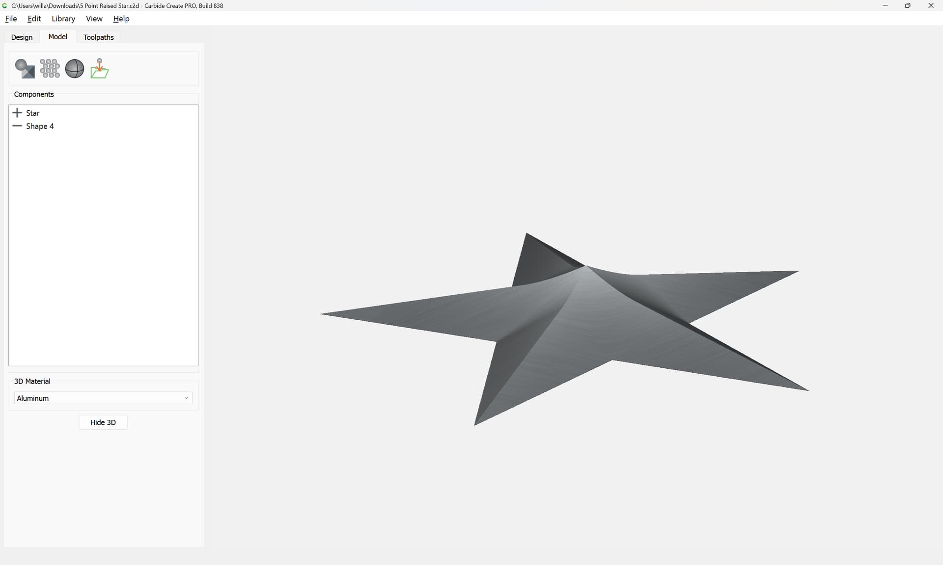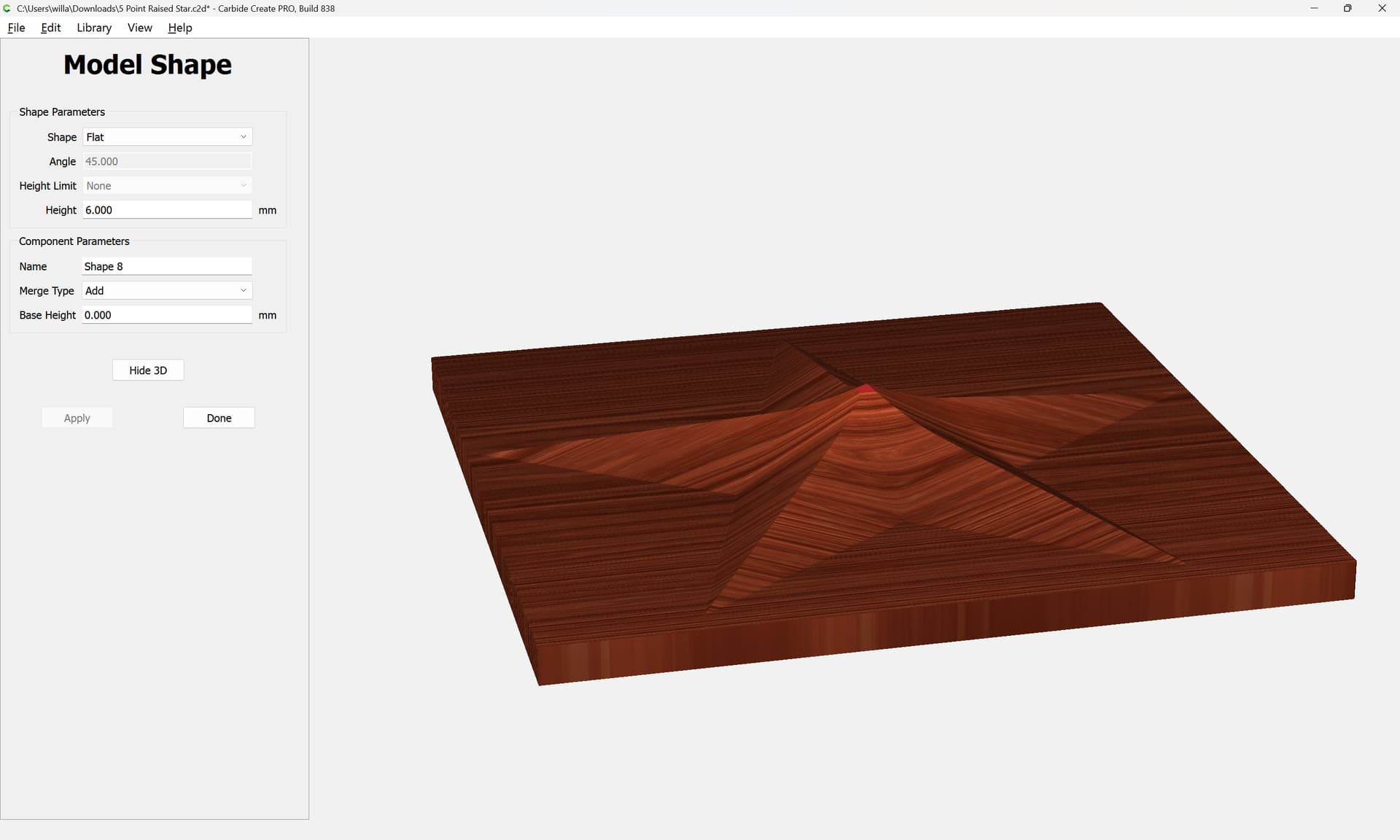 One further issue here is that the star has a raised center point due to how Carbide Create Pro calculates raising at an angle.