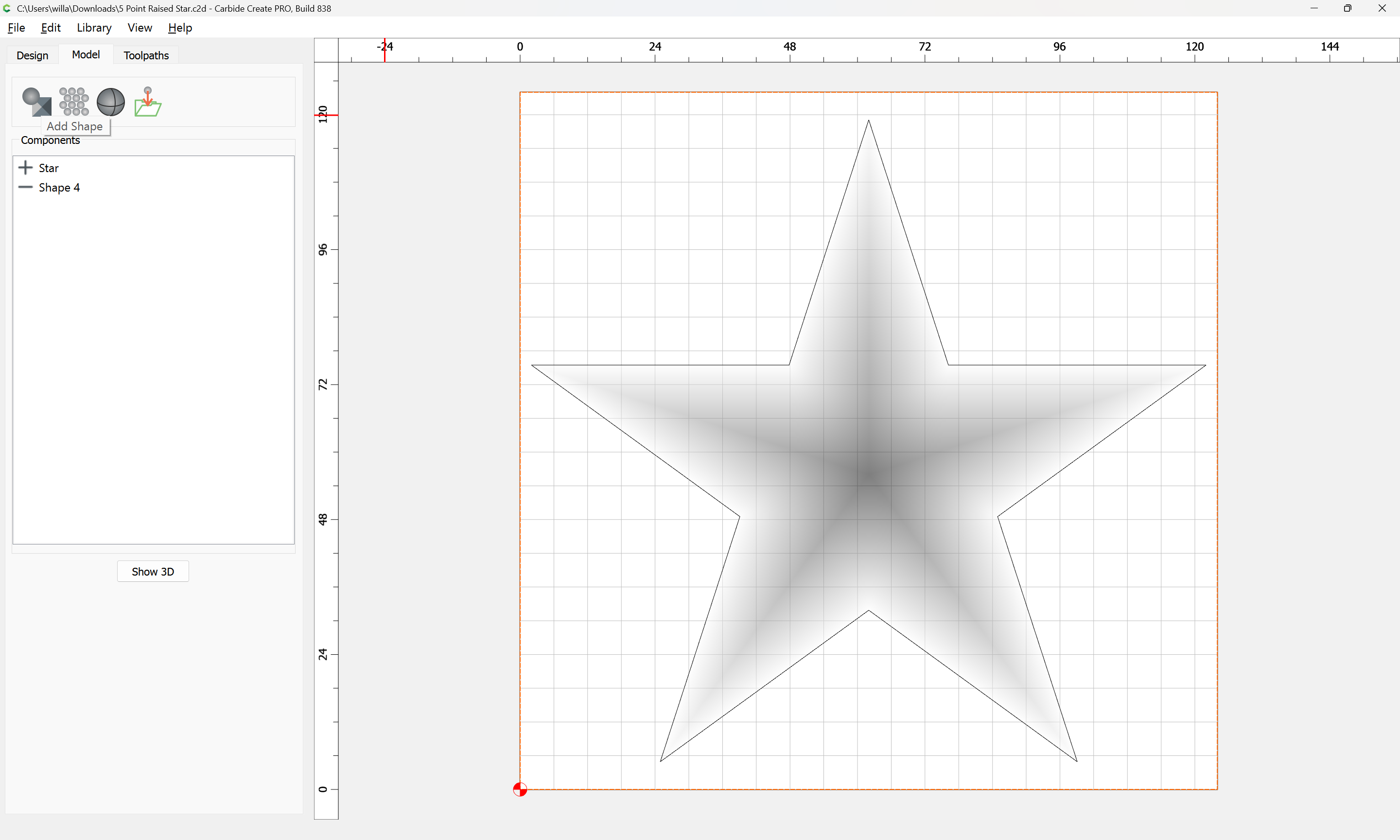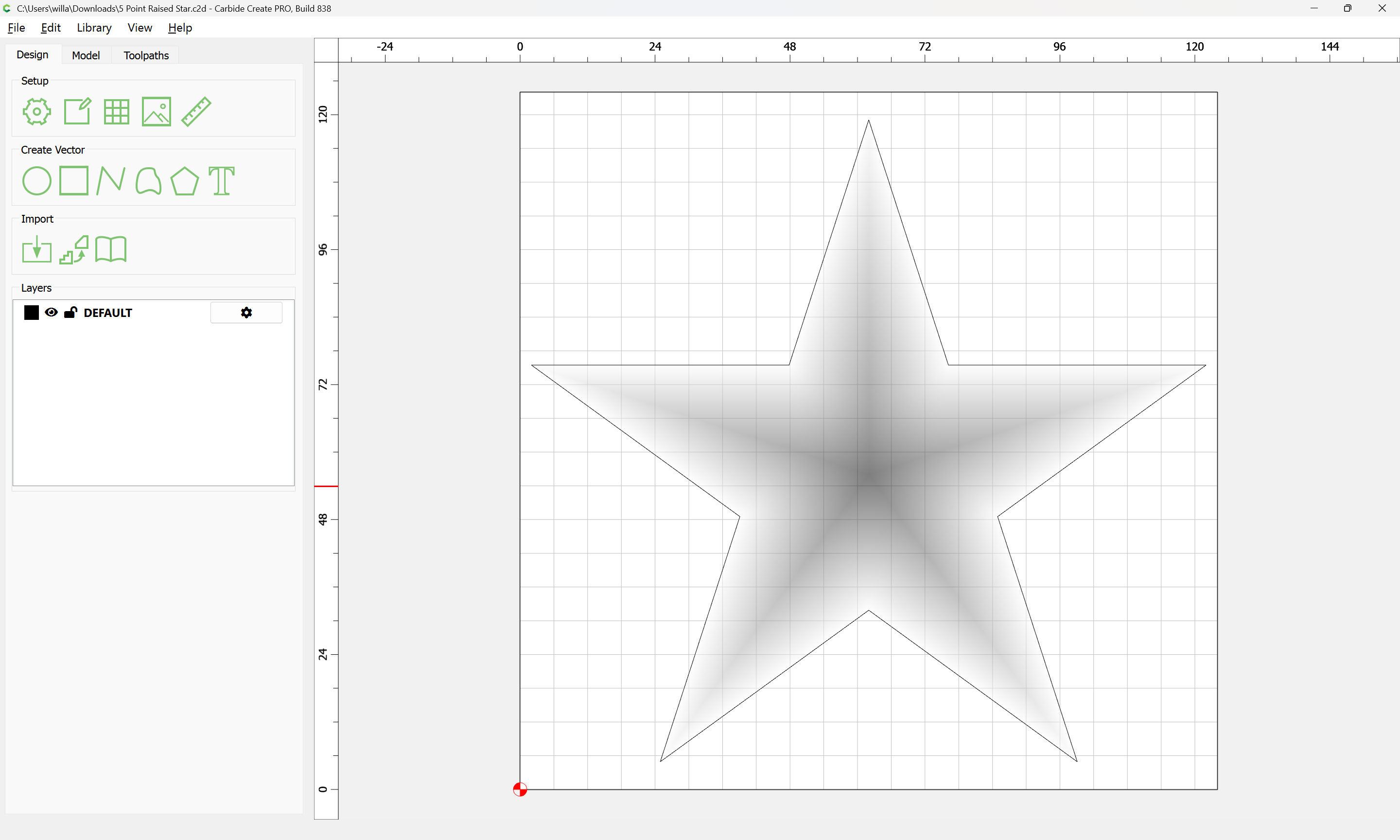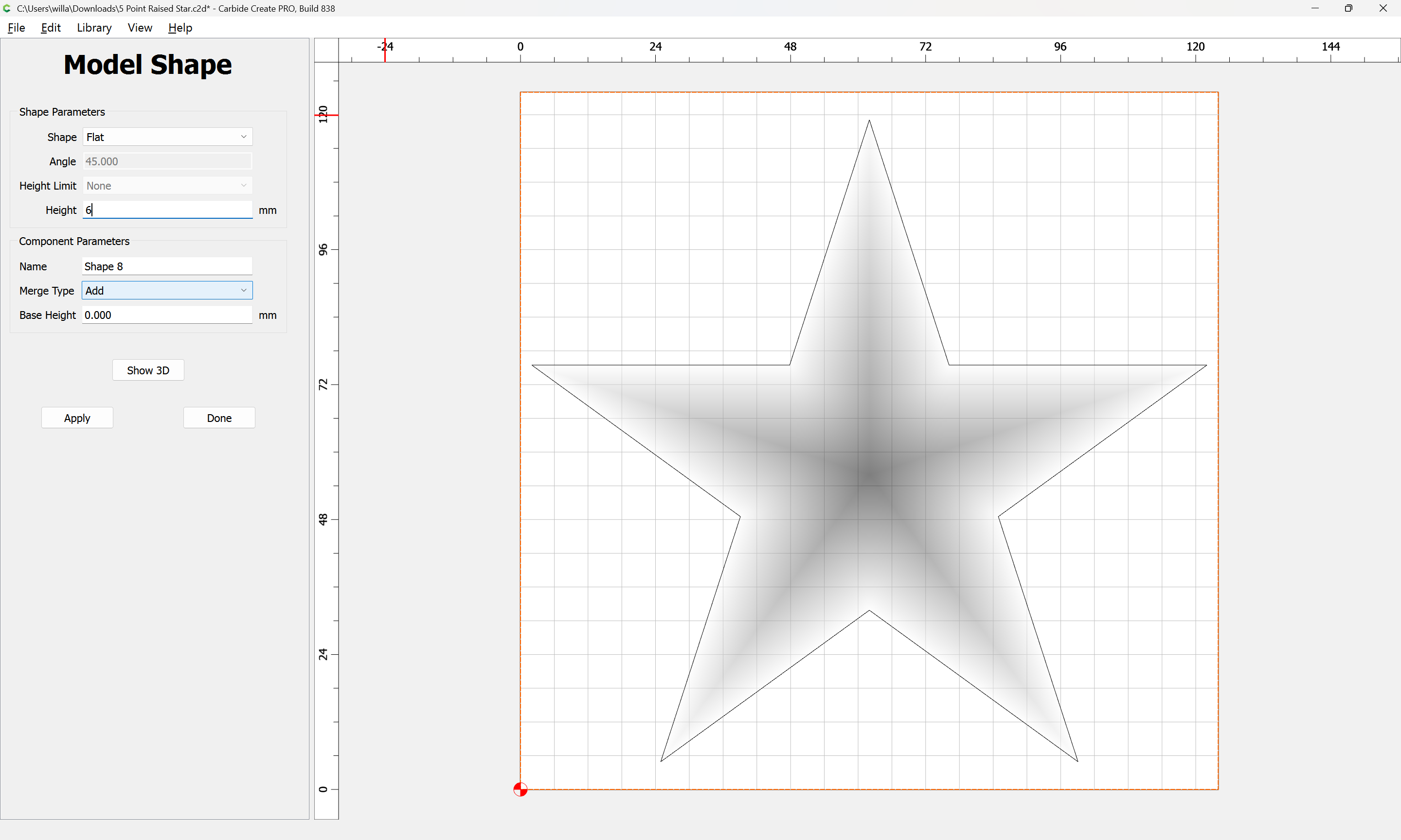 One further issue here is that the star has a raised center point due to how Carbide Create Pro calculates raising at an angle.