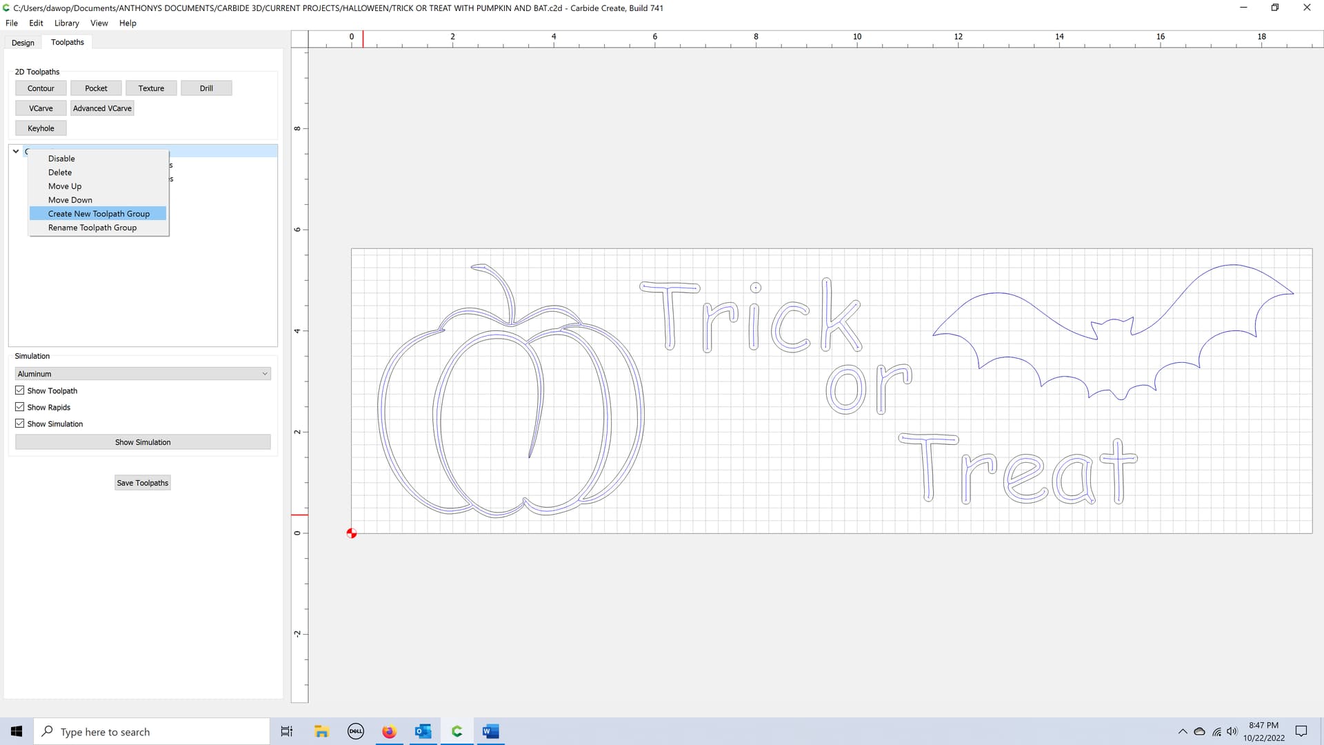 Ok. I have searched the group files and the tutorials, but can not find how to group toolpaths. Everything starts out under group 1, but can’t figure out how to split the various toolpaths into separate groups.