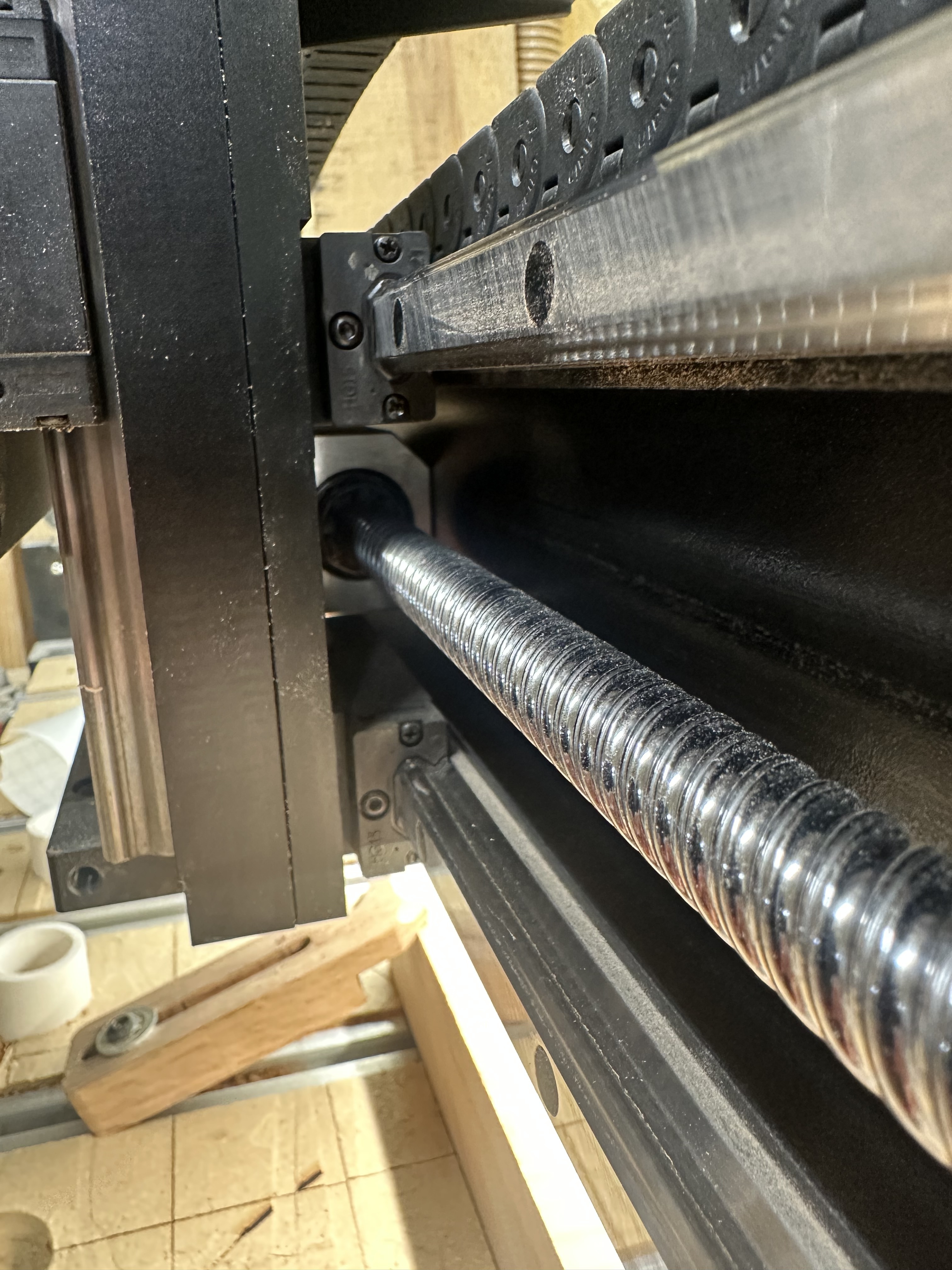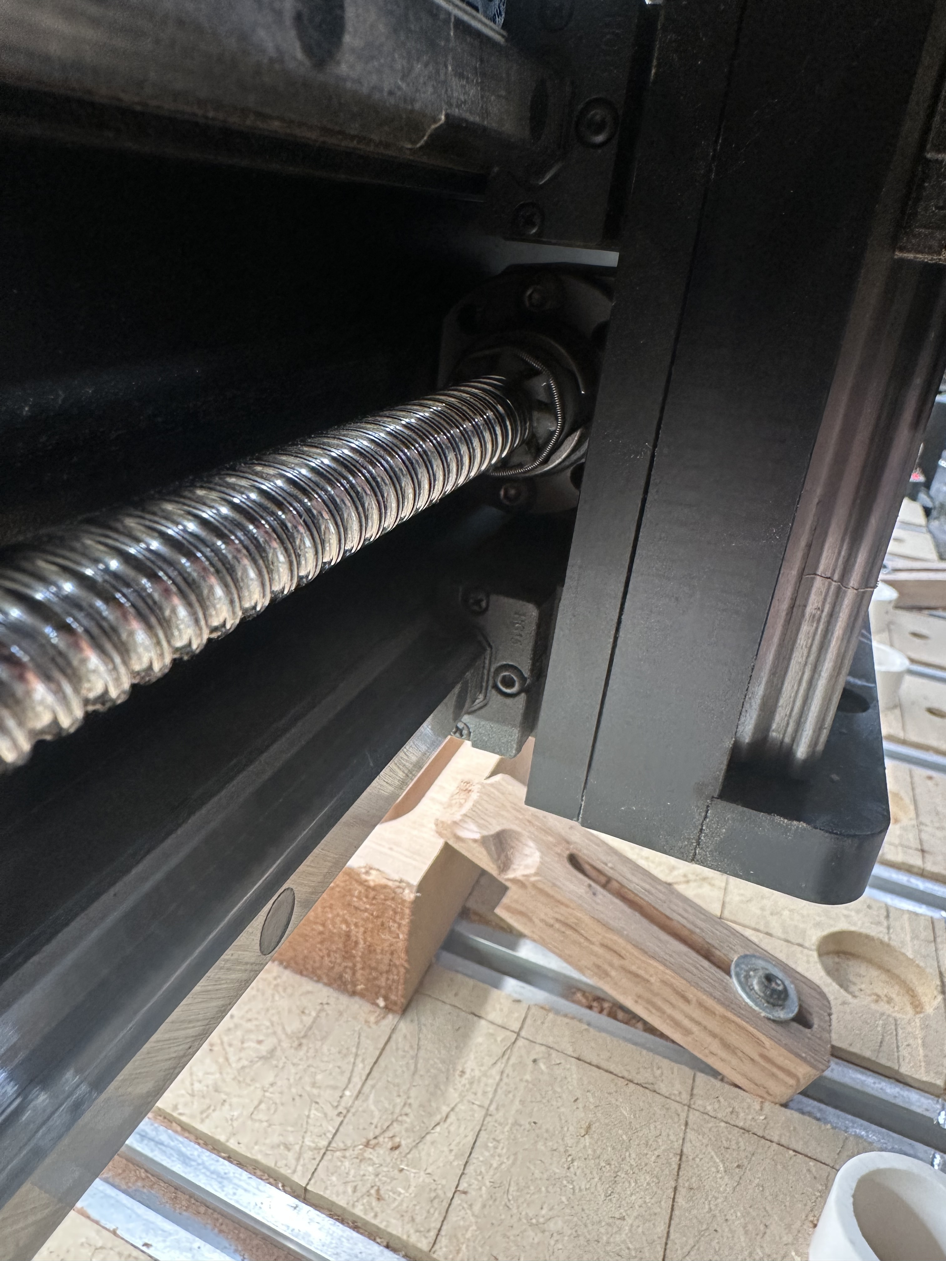 I was in the middle of a project, had already pocketed out a large section, ran a cleanup path with a different bit and then ran an end mill profile path. When I switched to by v bit to run the tool path at the bottom of the pocket it got stuck and stopped moving left and right. I shut the machine off and have tried to trouble shoot it but with no avail. I need some help!!! I cannot jog the machine manually to the left and right more than 3 mm but can front and back with the mdi override. I’ve attached a picture and have a video of what it is doing but it won’t let me upload it. Any ideas would be great!
