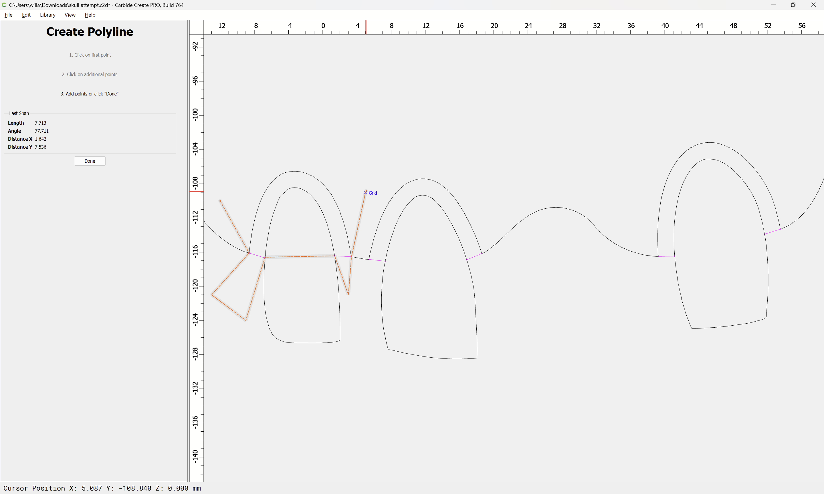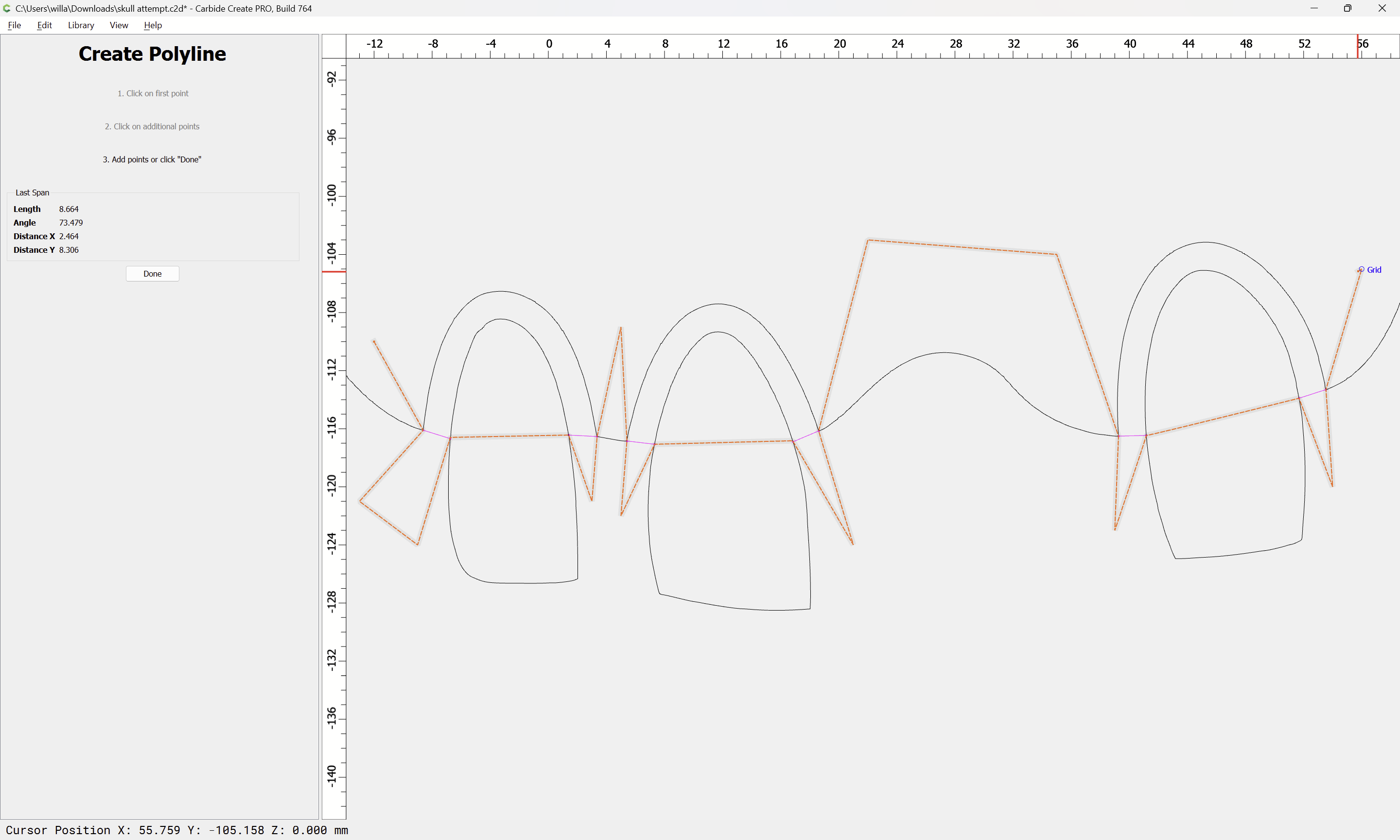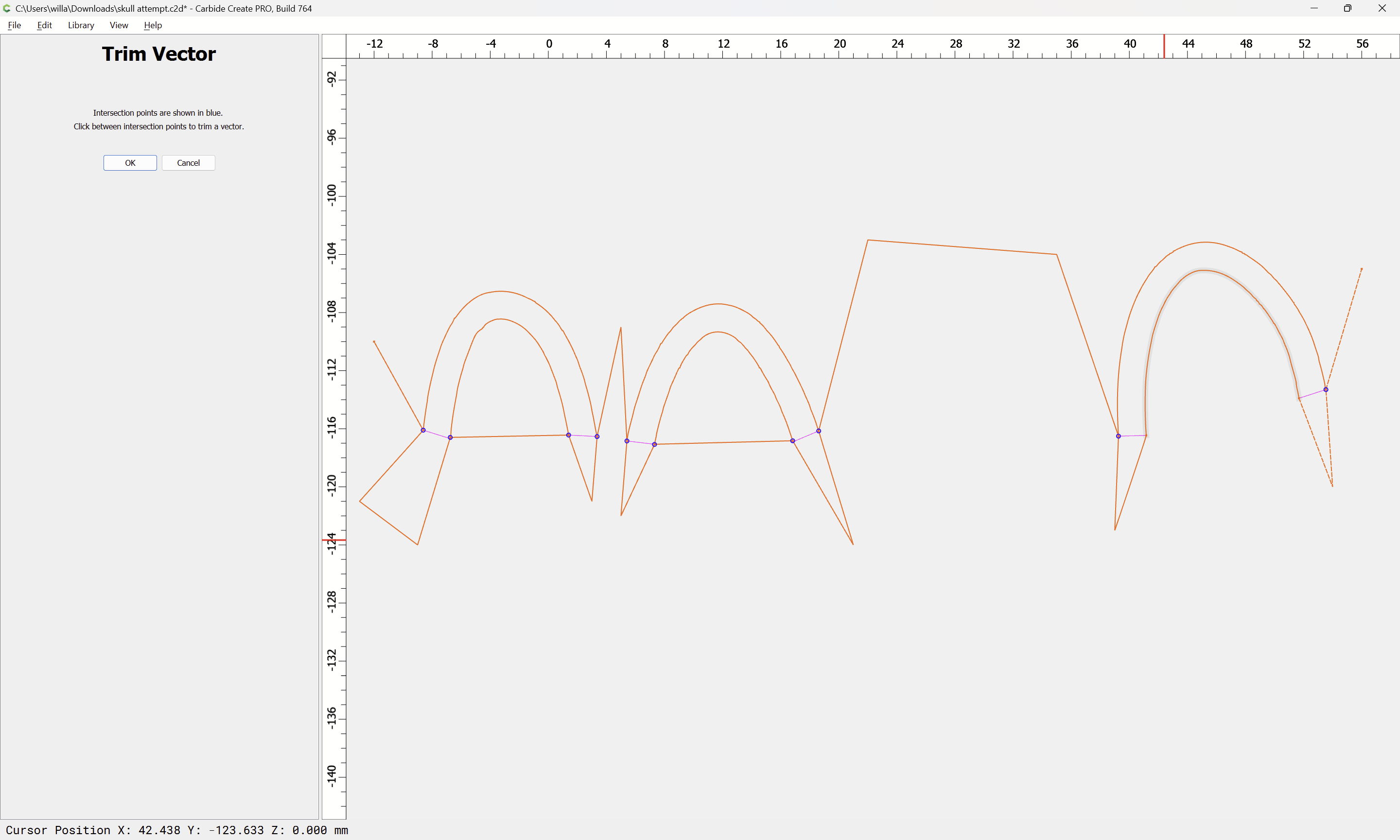 If I make an offset vector end mill width around the outside features to use as a full surround contour. Then contour around each tooth I don’t need vectors for the gums actually. Yup, thanks. I still wish I knew why I can join some vectors and not others.