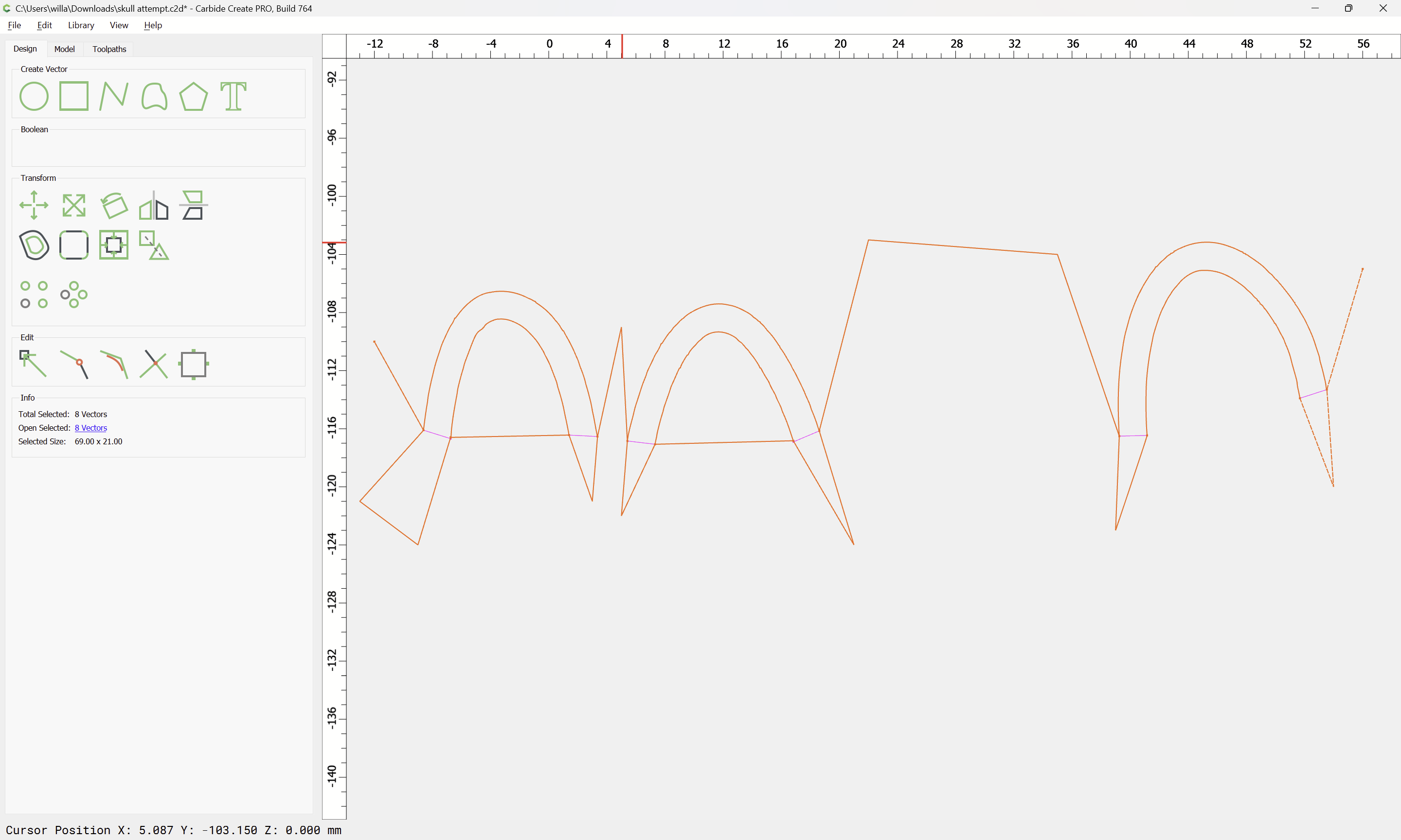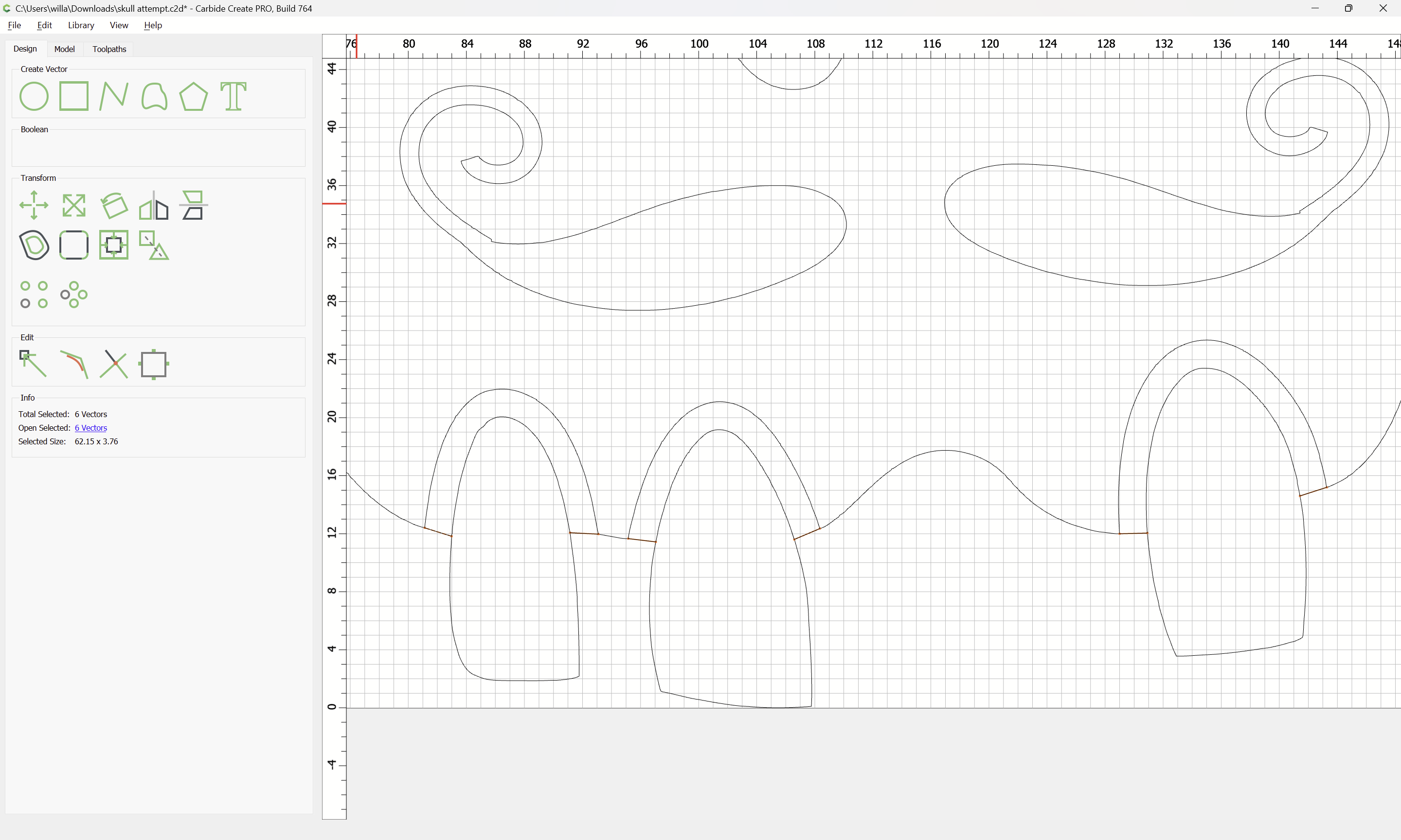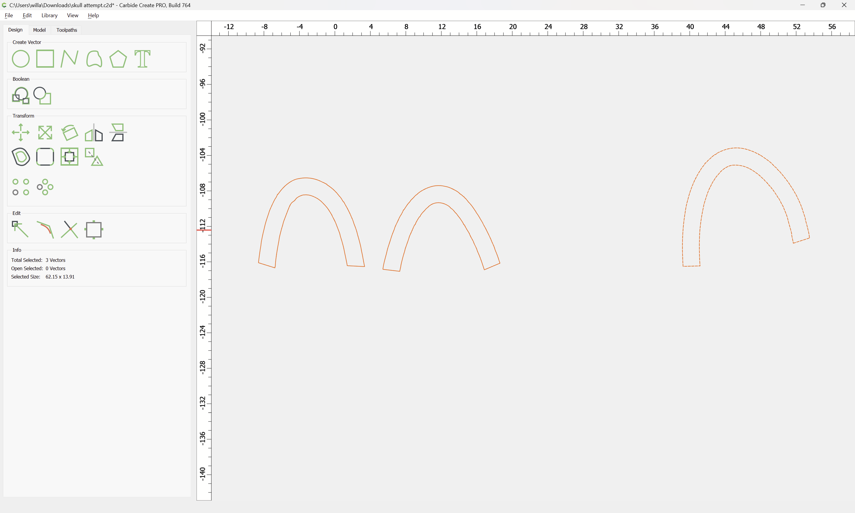 I have drawn in some vectors to be able to carve this simple drawing. I’ve read through every previous discussion on this topic, and updated my carbide create. The “join” and “close vector” functions do not work. What am I missing?