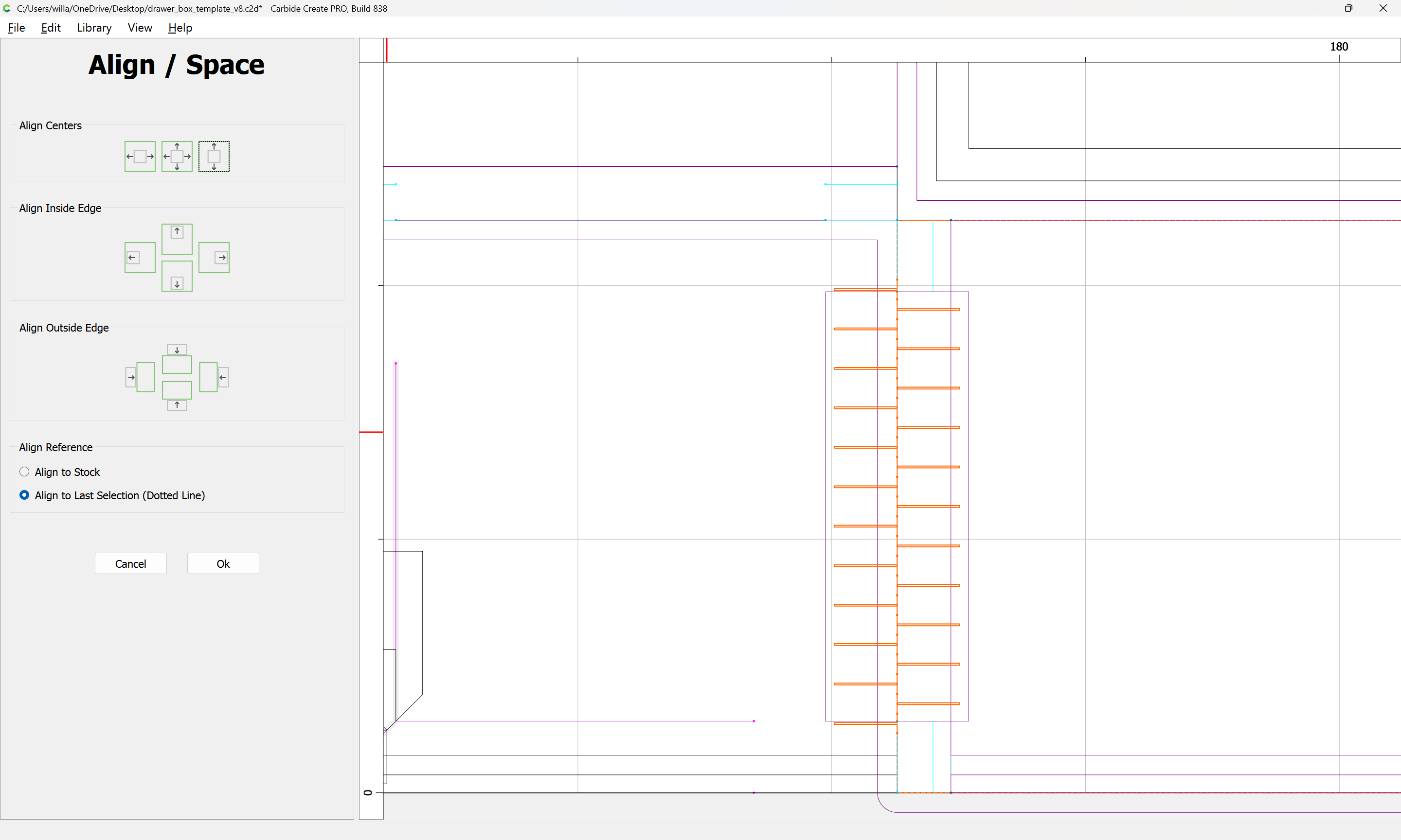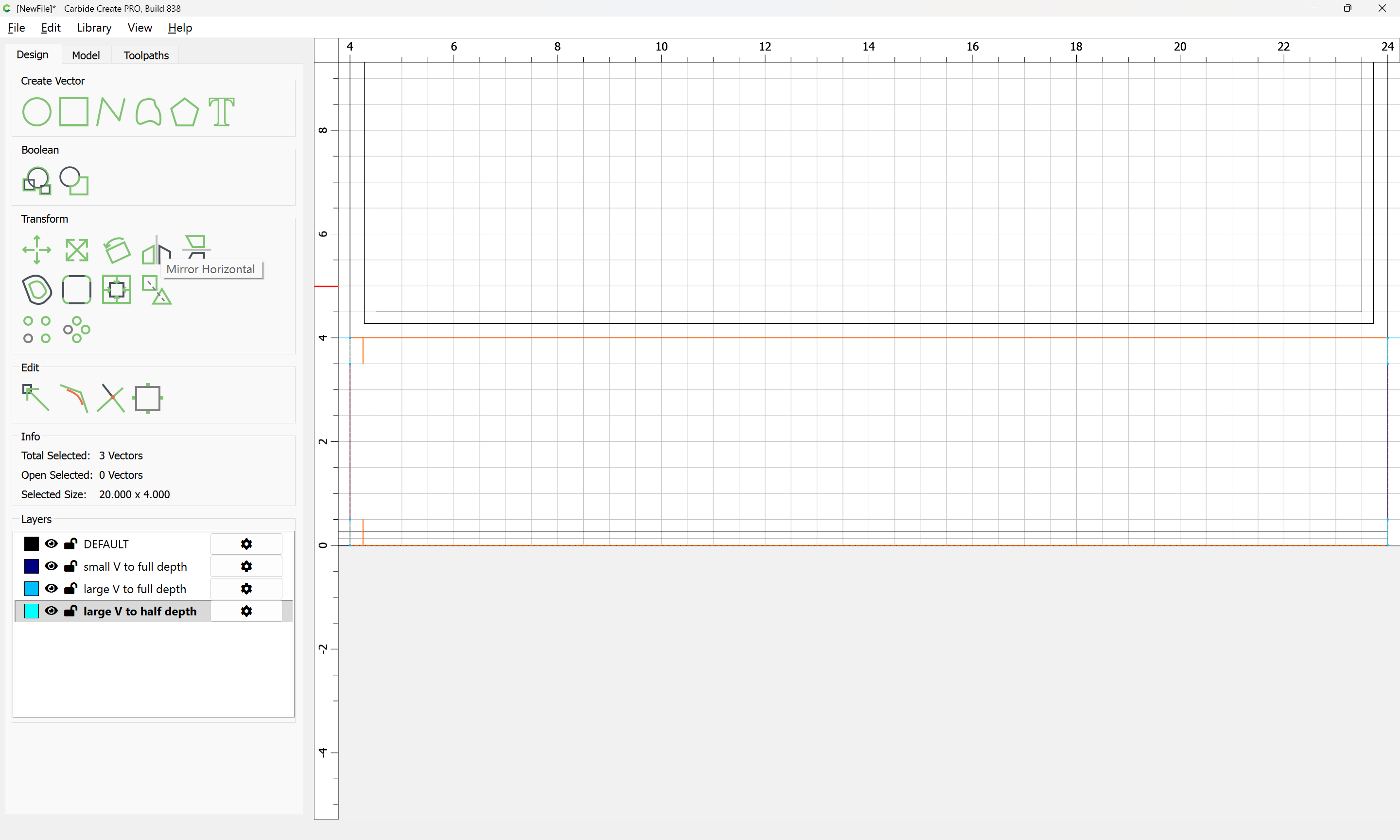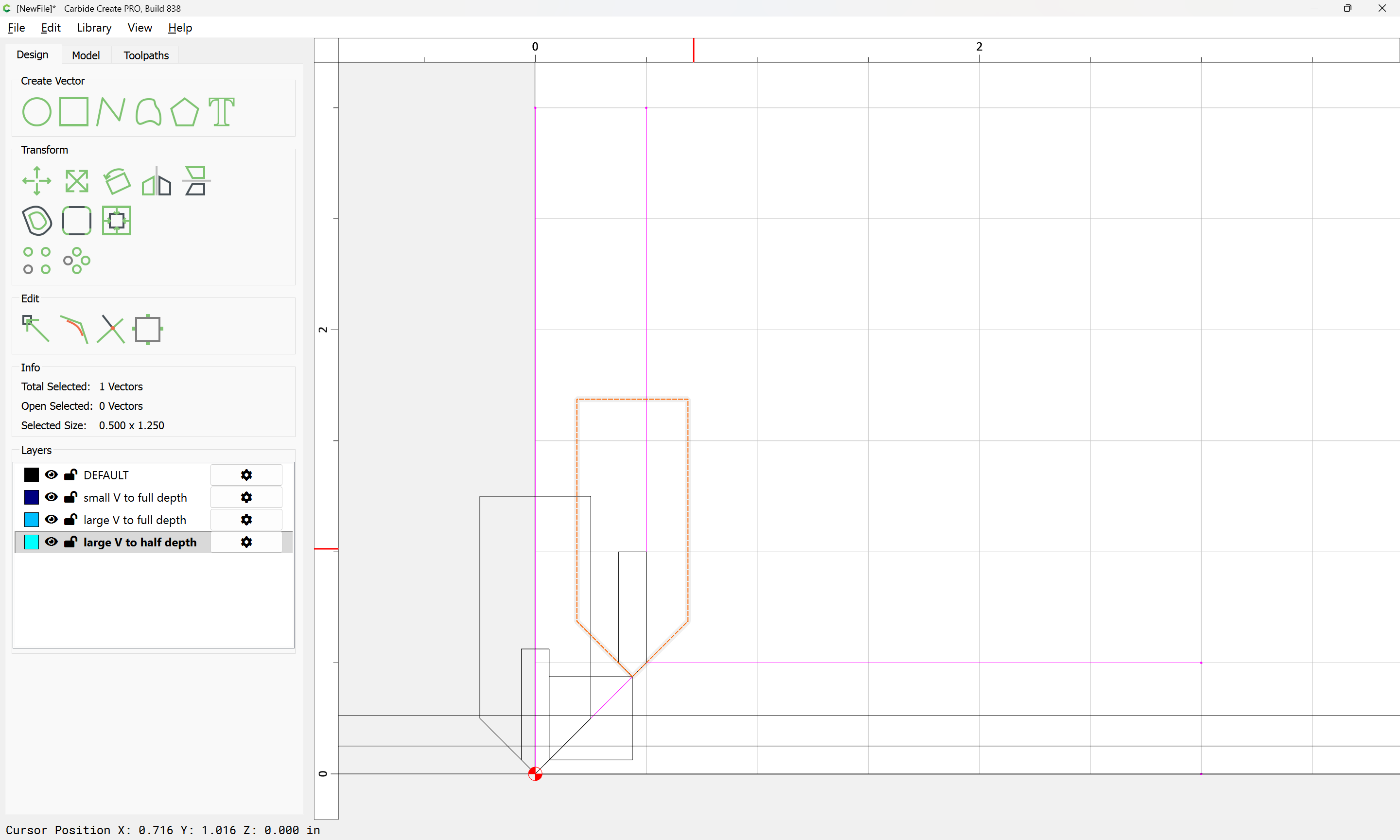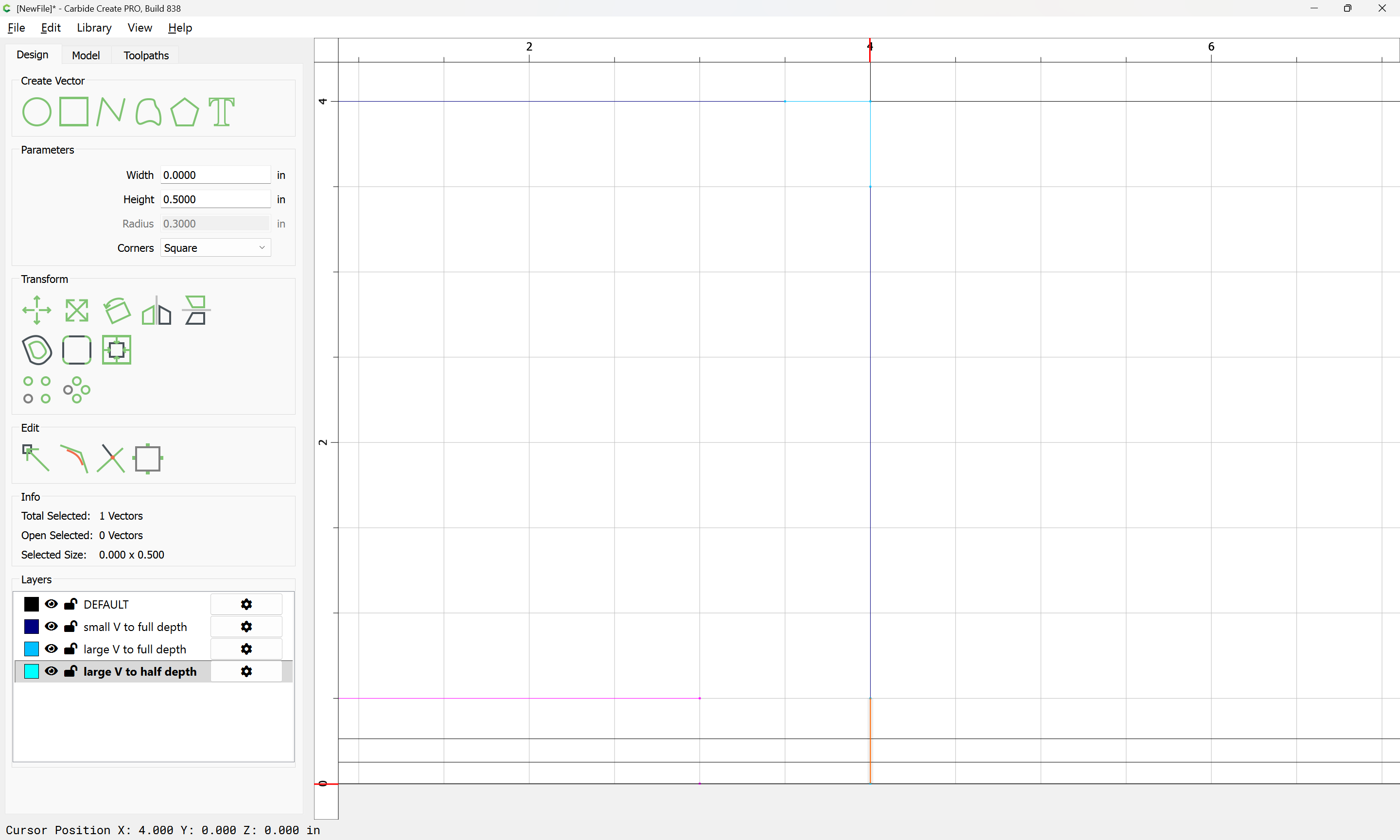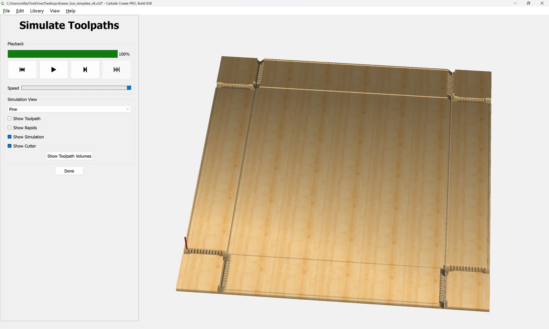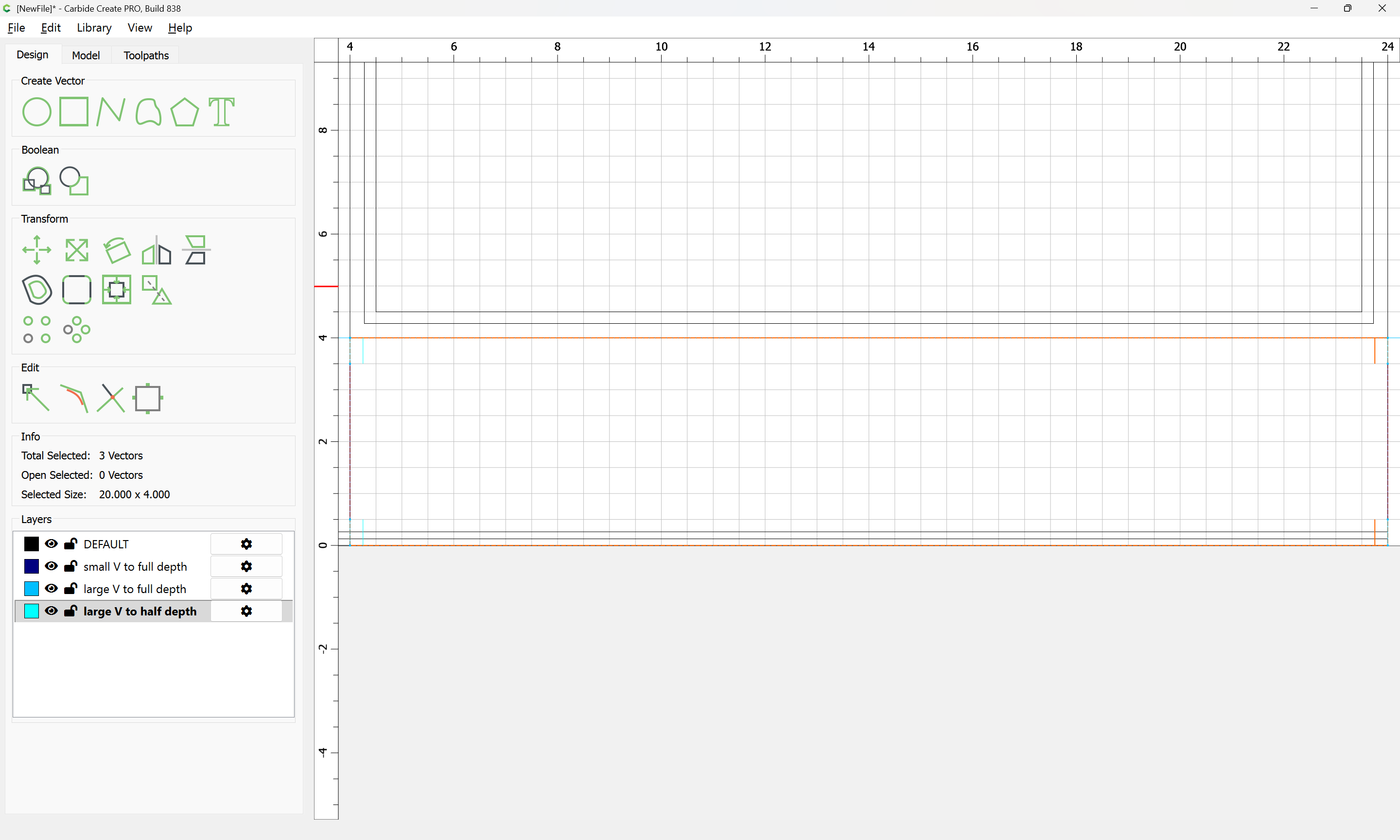 Lastly, the toolpaths will need to be arranged and ordered adjust for optimal material removal — in particular, the small V to full depth toolpath should be cut last and may have its Start Depth set to the bottom of the joinery depth toolpath.