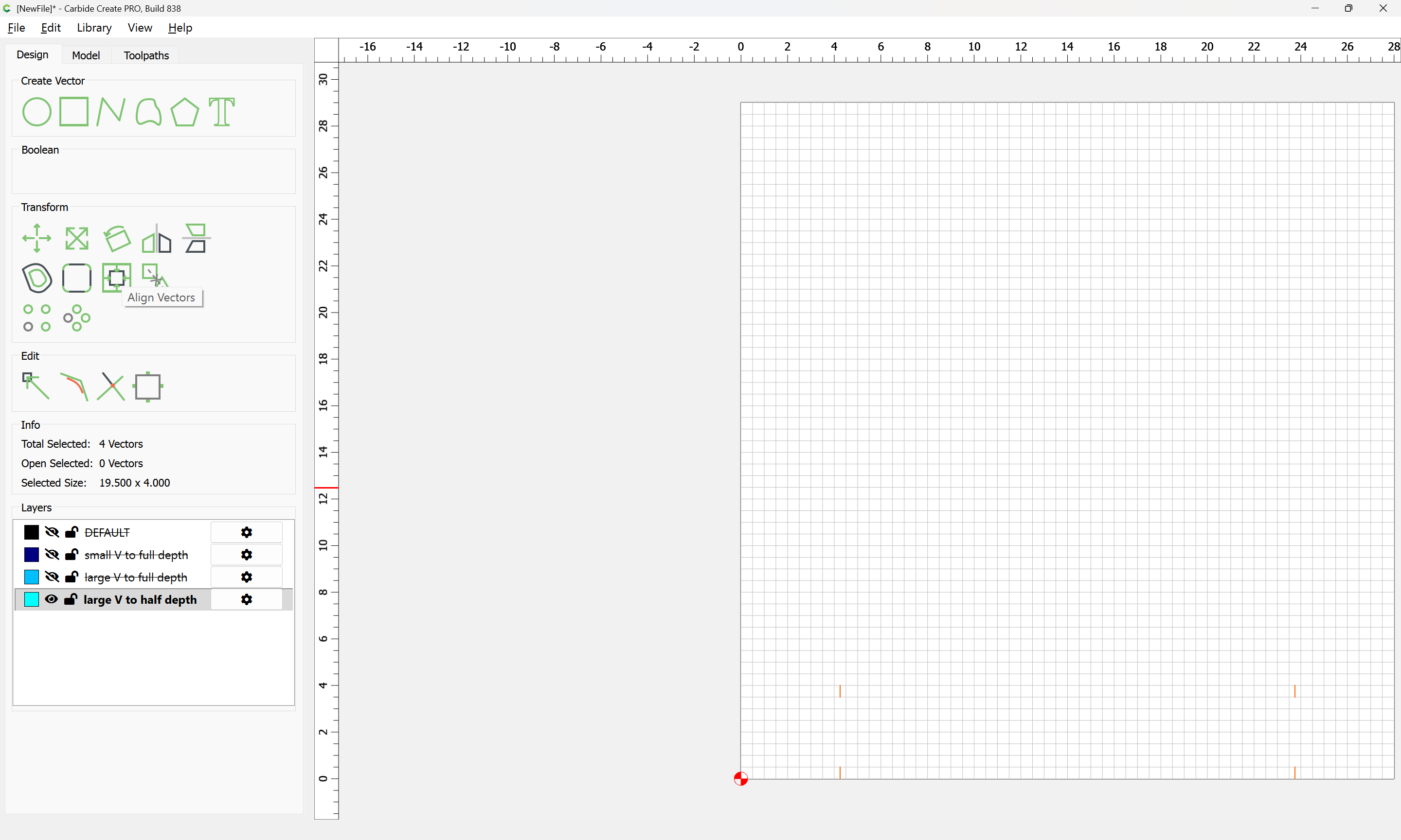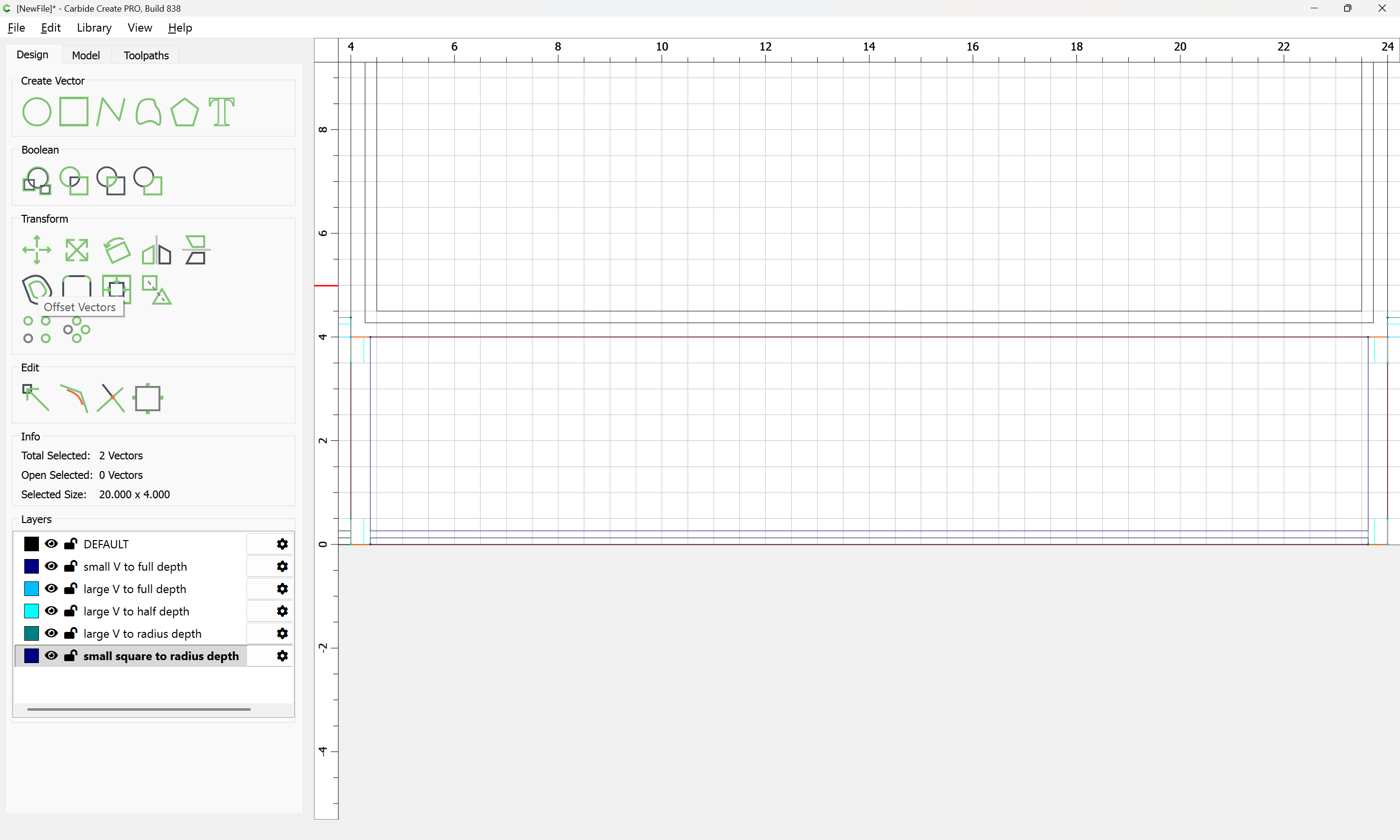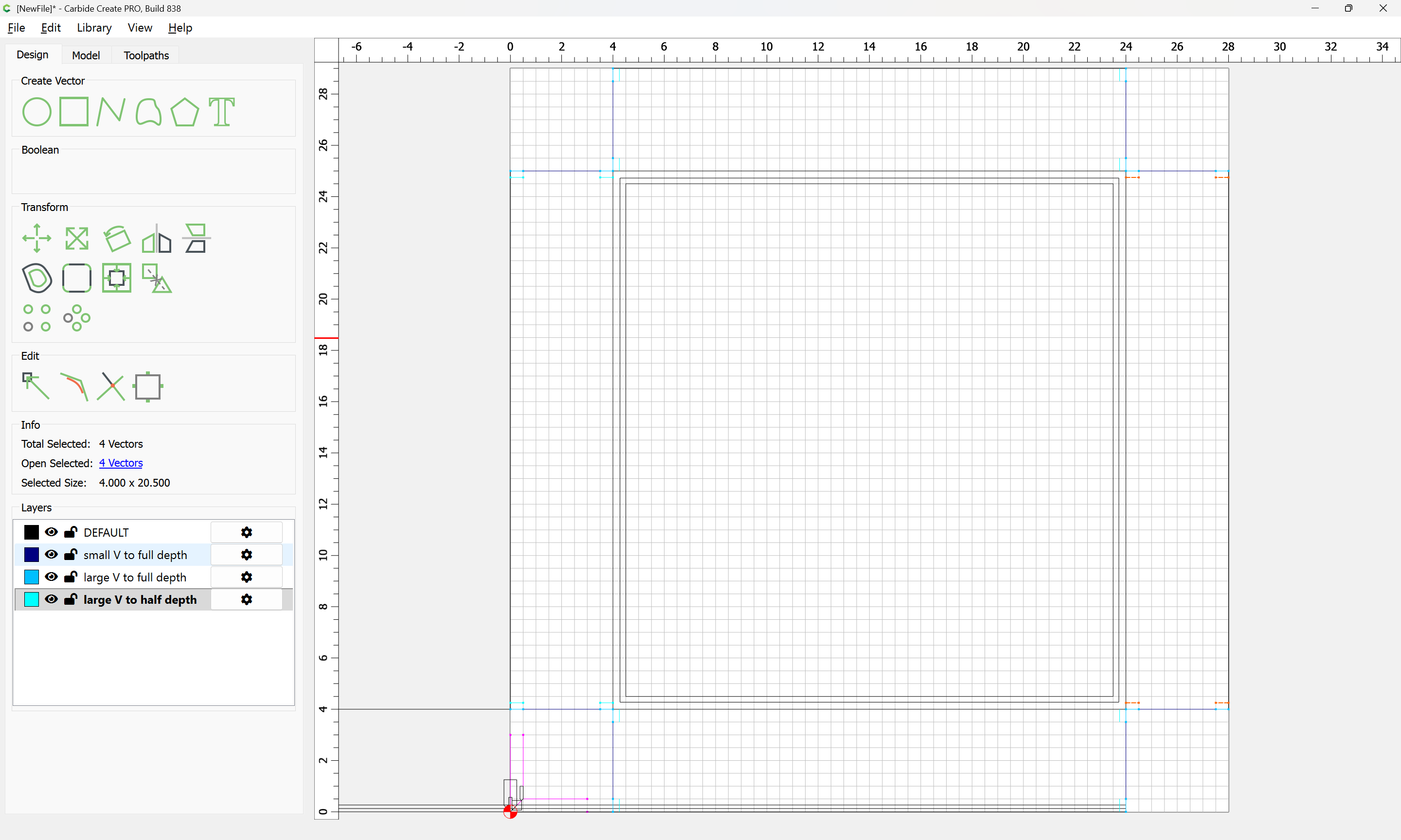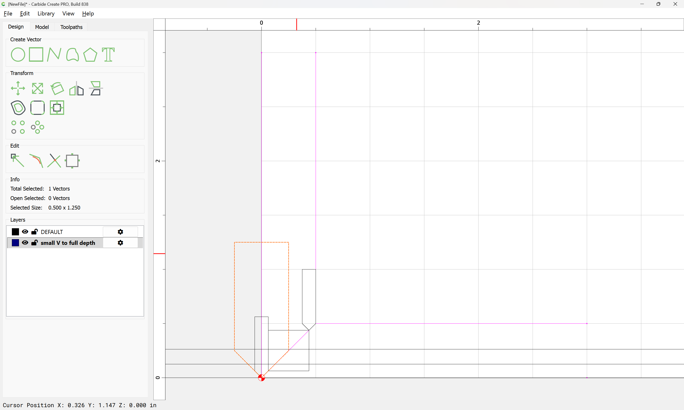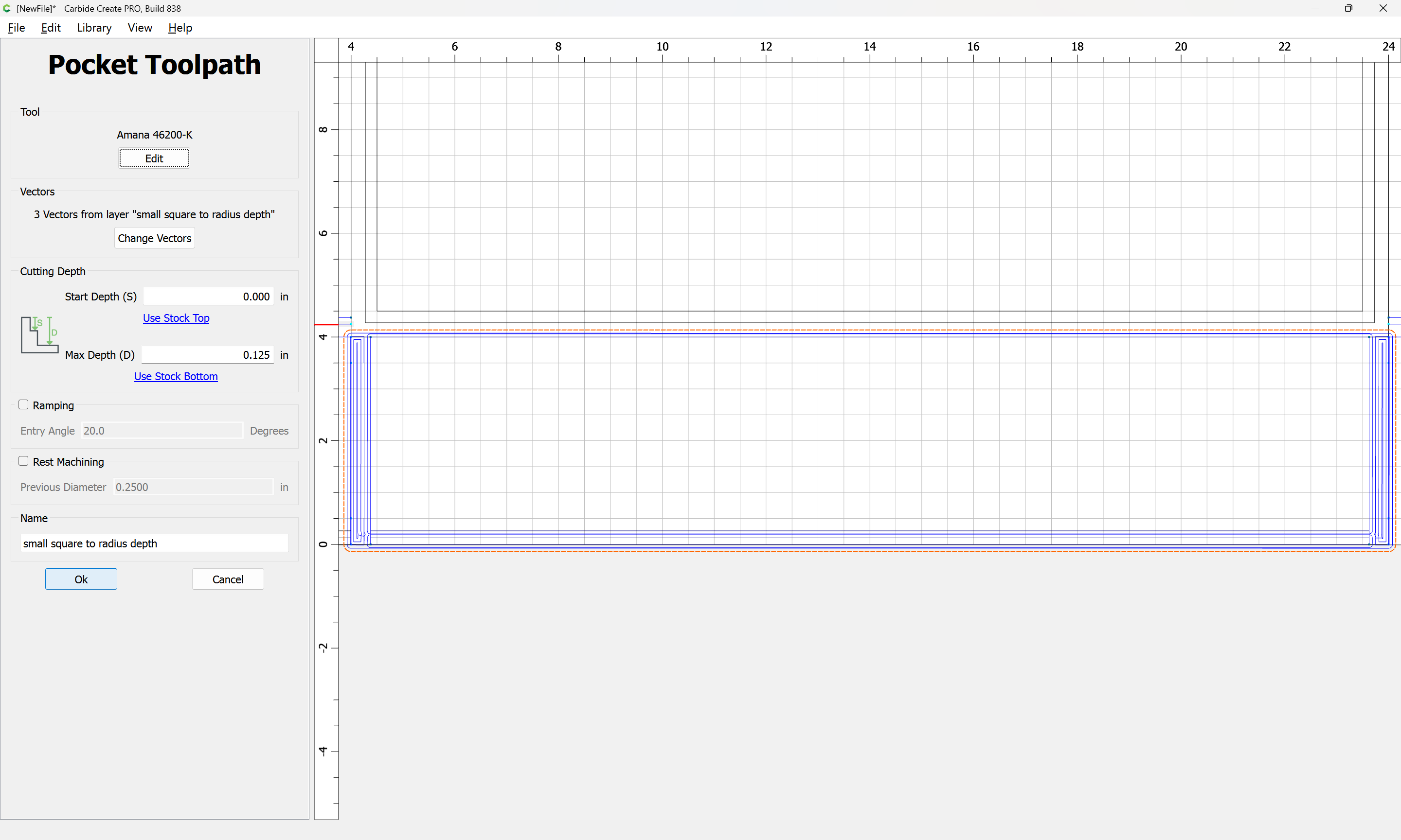 Lastly, the toolpaths will need to be arranged and ordered adjust for optimal material removal — in particular, the small V to full depth toolpath should be cut last and may have its Start Depth set to the bottom of the joinery depth toolpath.