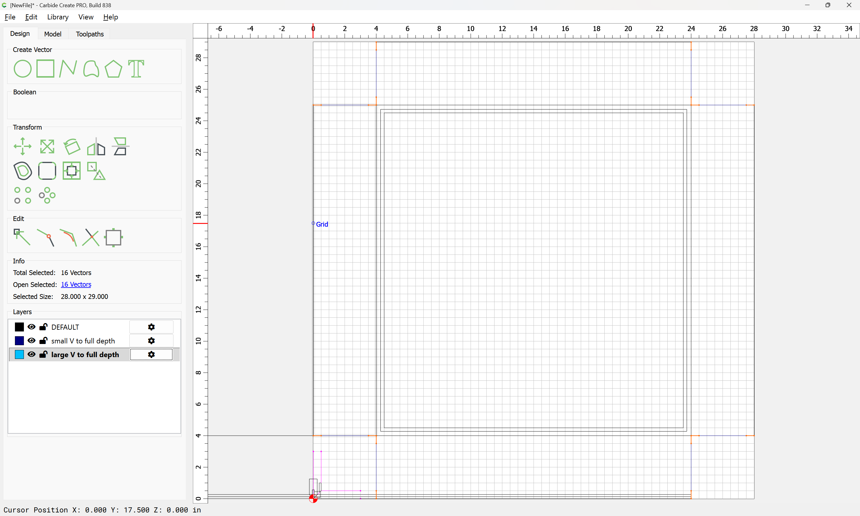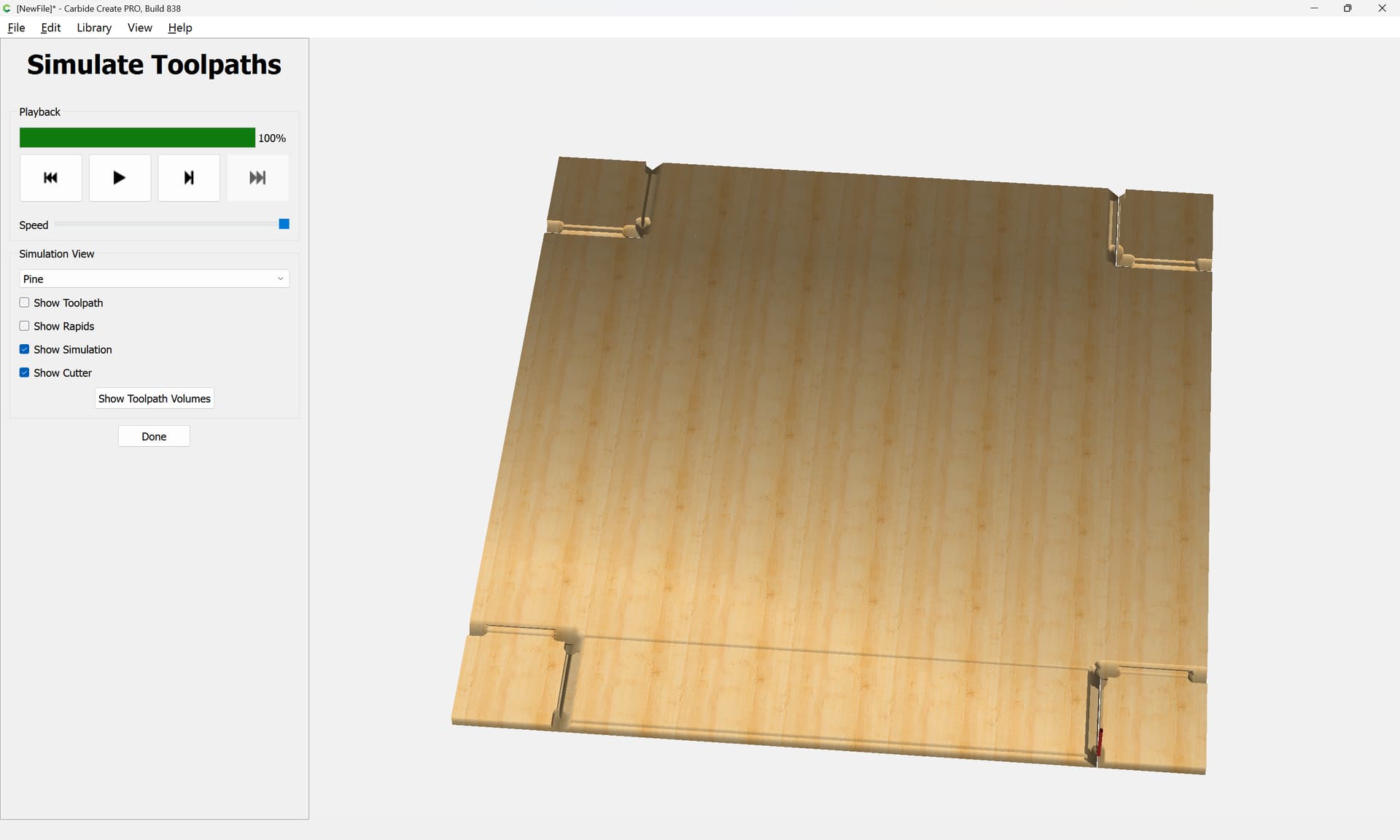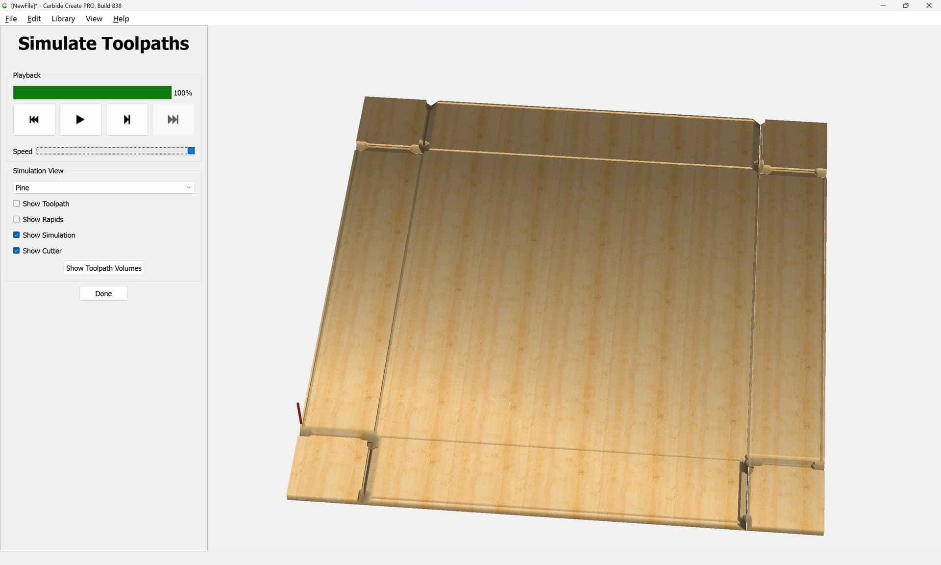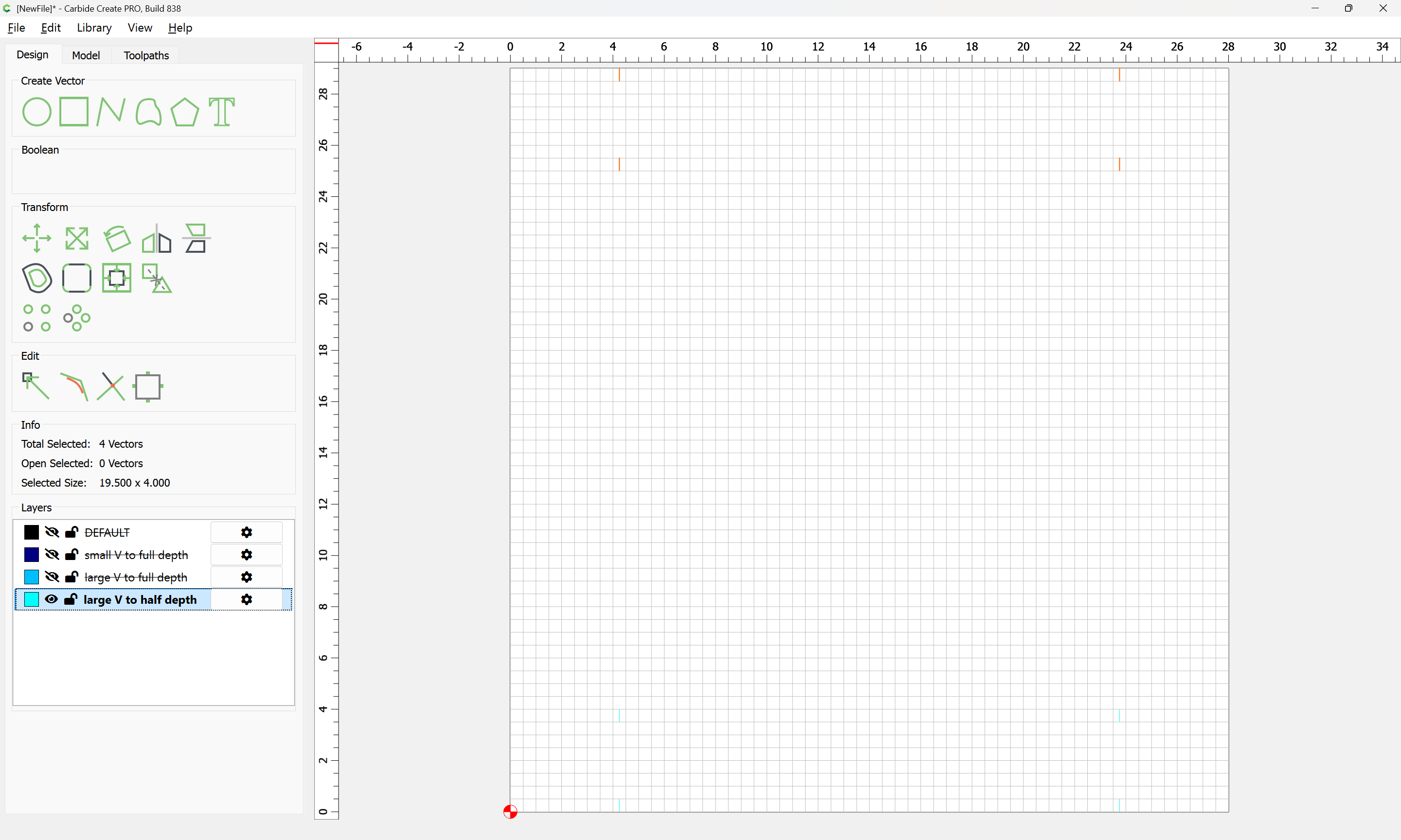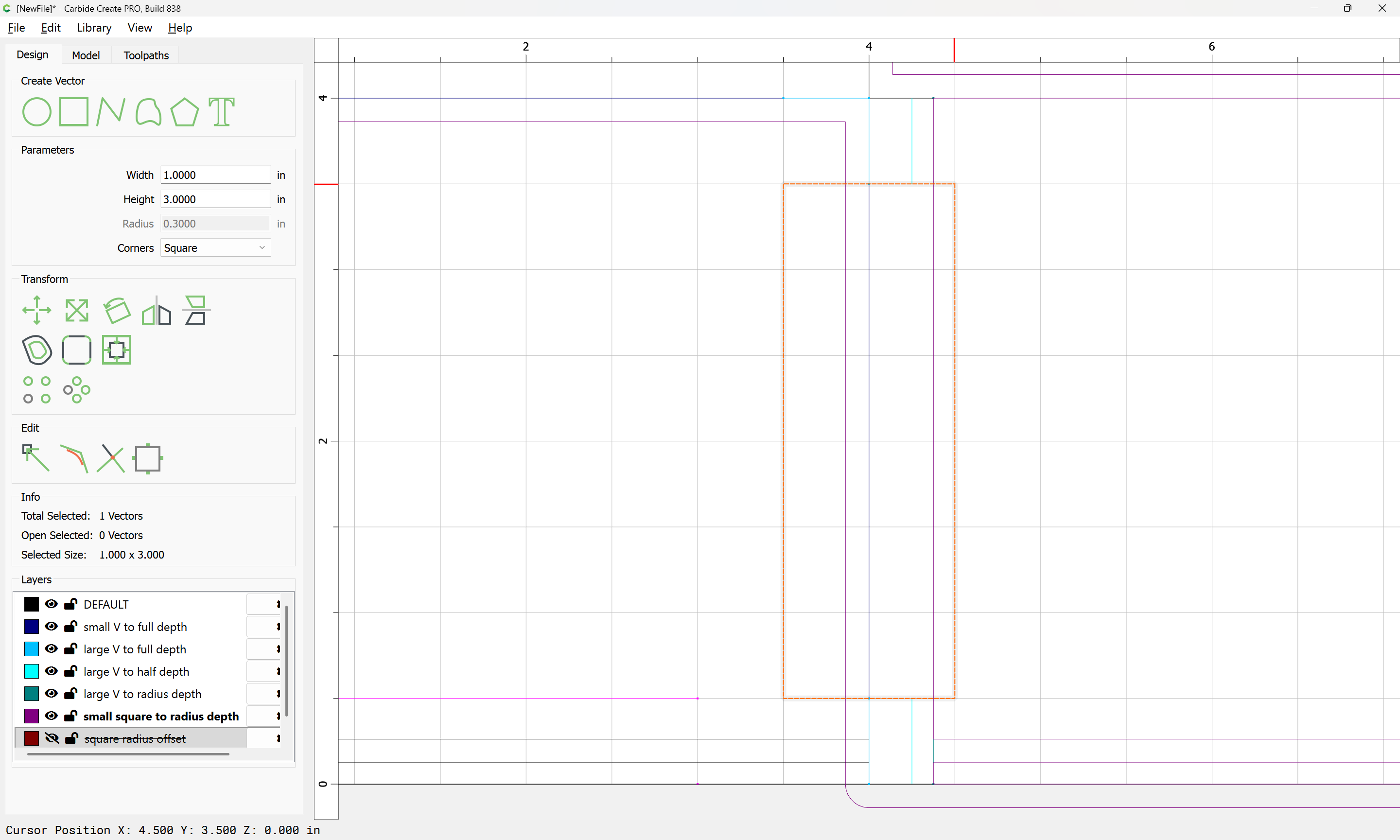 Lastly, the toolpaths will need to be arranged and ordered adjust for optimal material removal — in particular, the small V to full depth toolpath should be cut last and may have its Start Depth set to the bottom of the joinery depth toolpath.