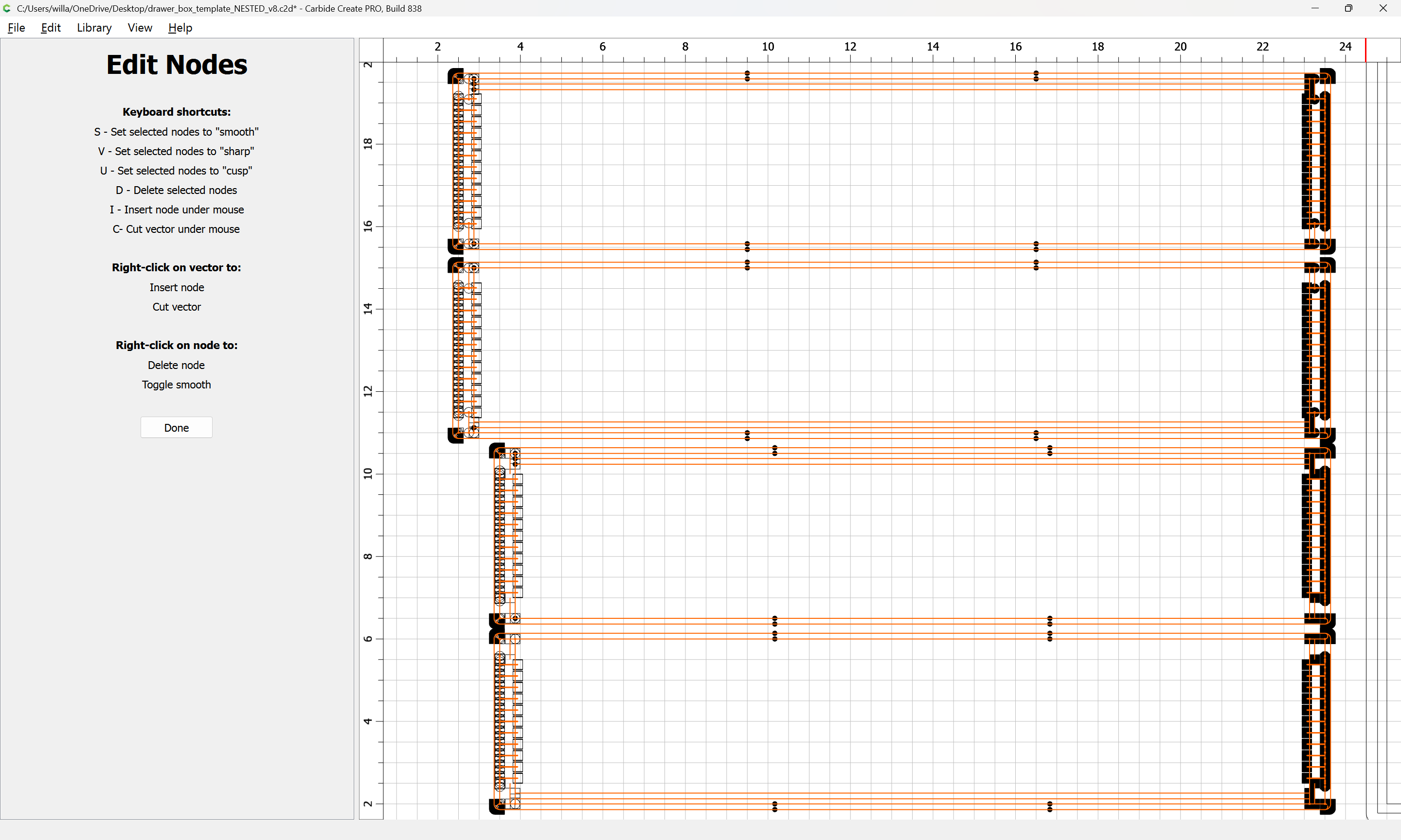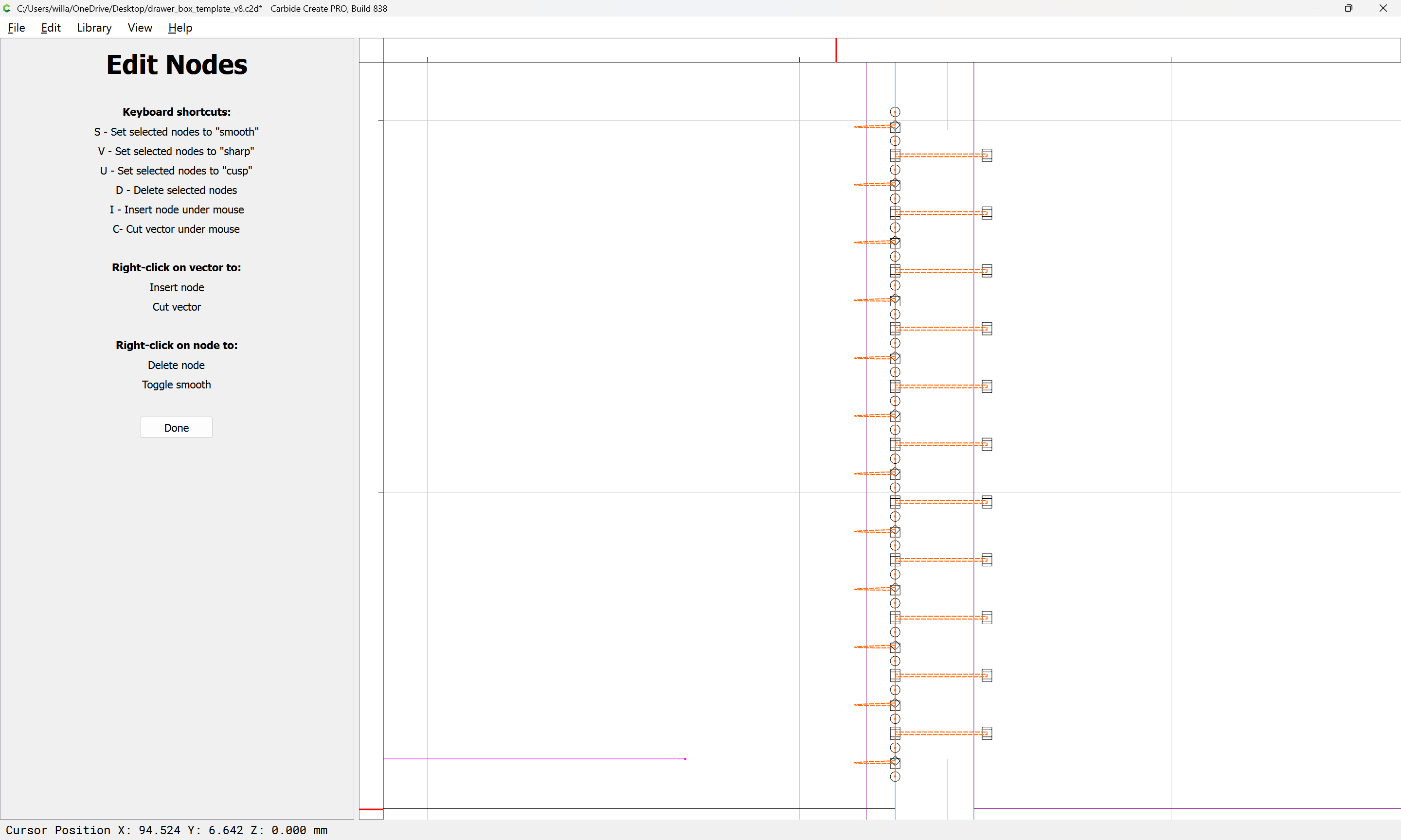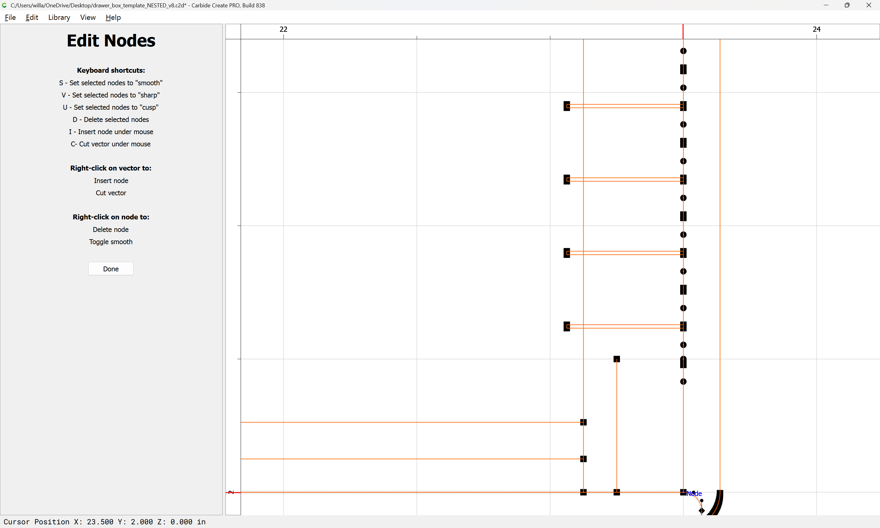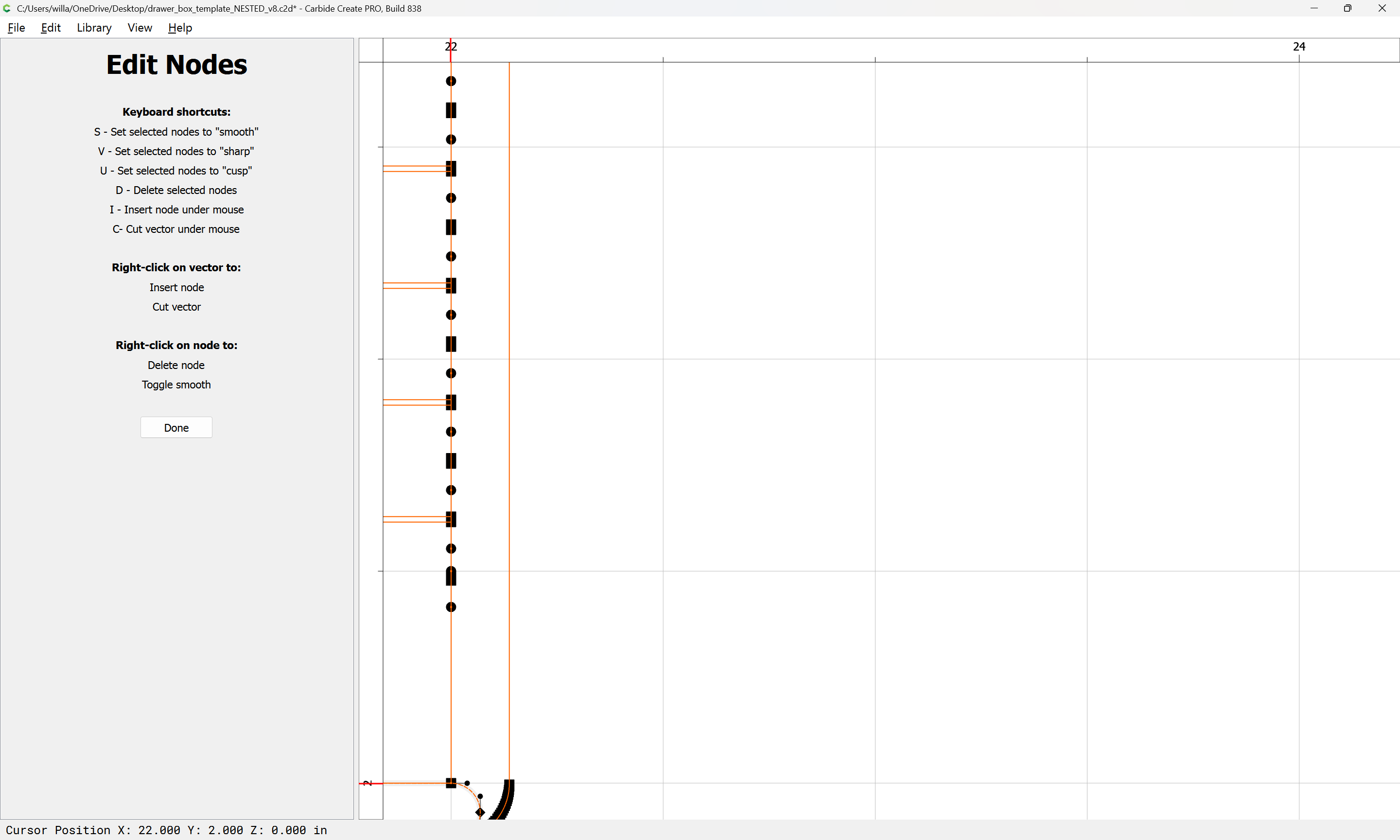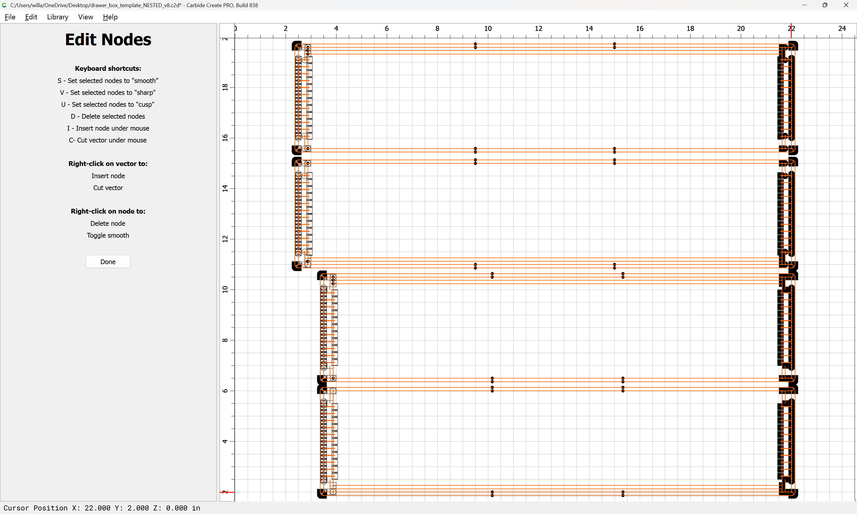 A slightly complex region which will need to be defined is the removal of material above the box joint “fingers” so that it will not be necessary to radius them, or to add dogbones which would remove material weakening the joint.