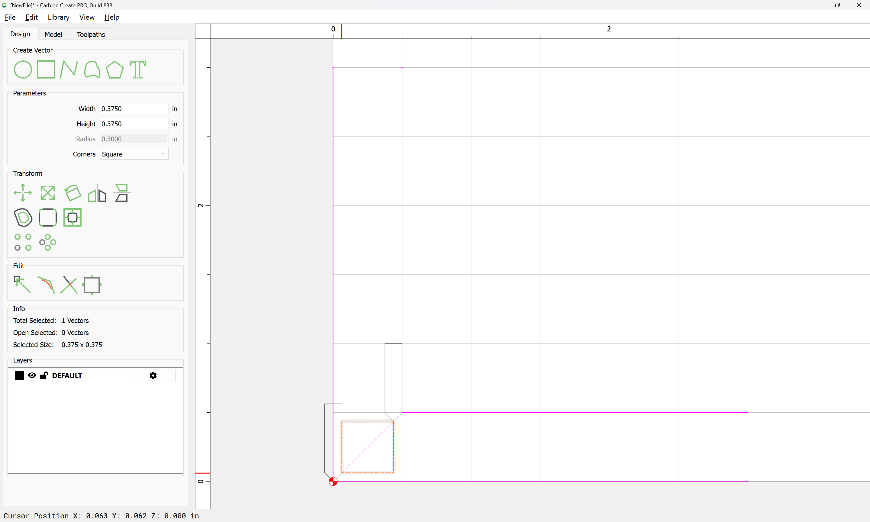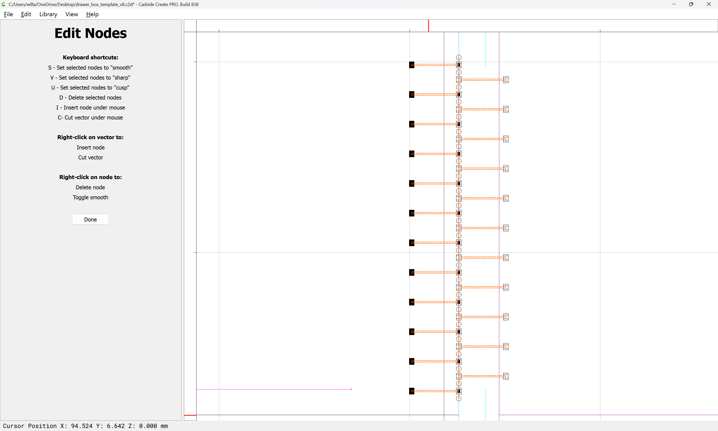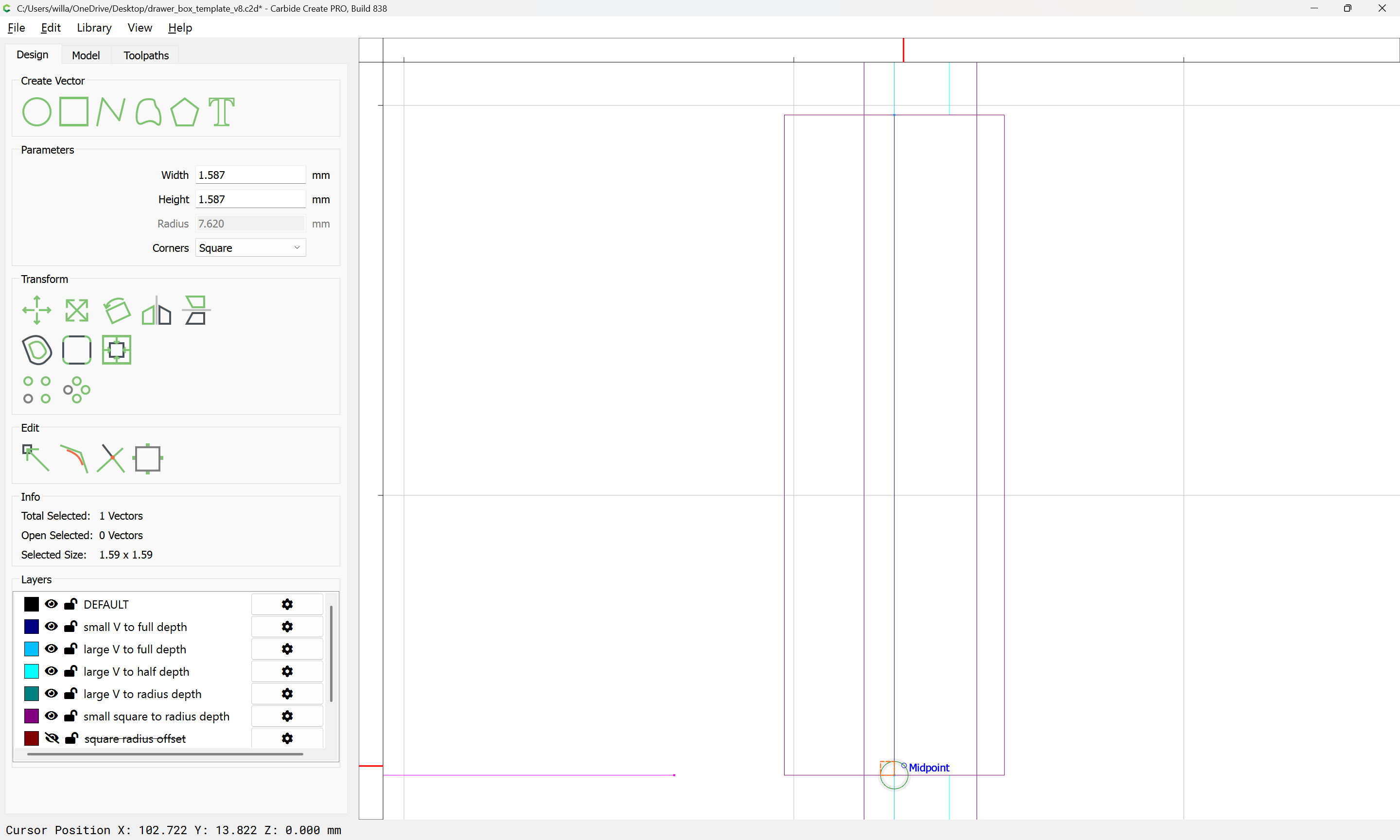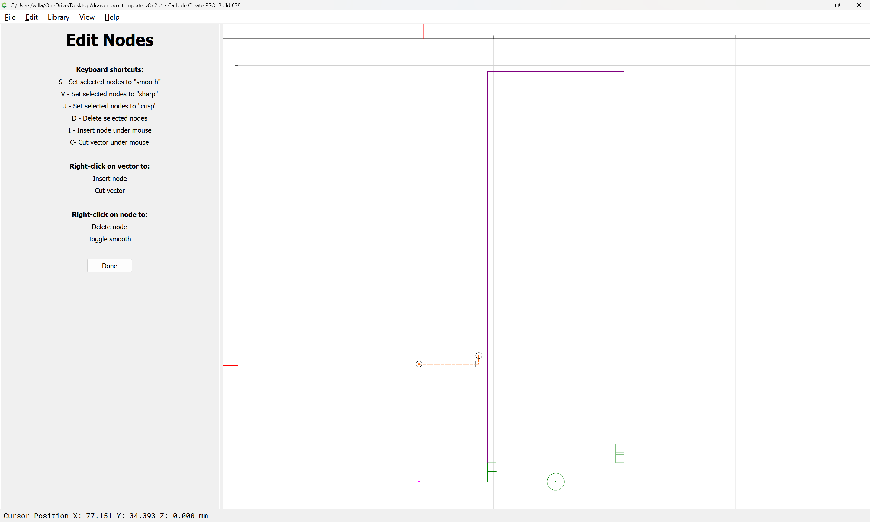 A slightly complex region which will need to be defined is the removal of material above the box joint “fingers” so that it will not be necessary to radius them, or to add dogbones which would remove material weakening the joint.