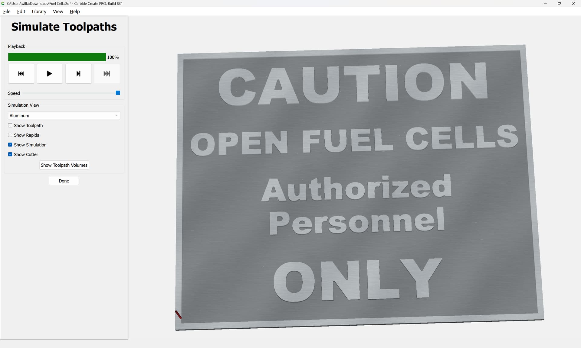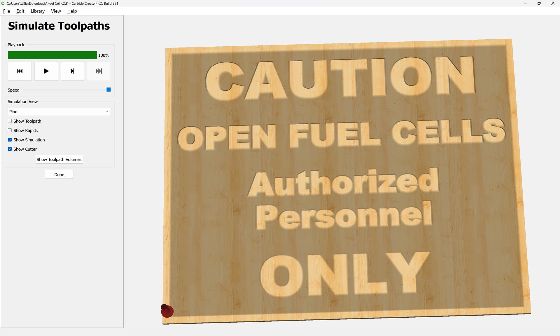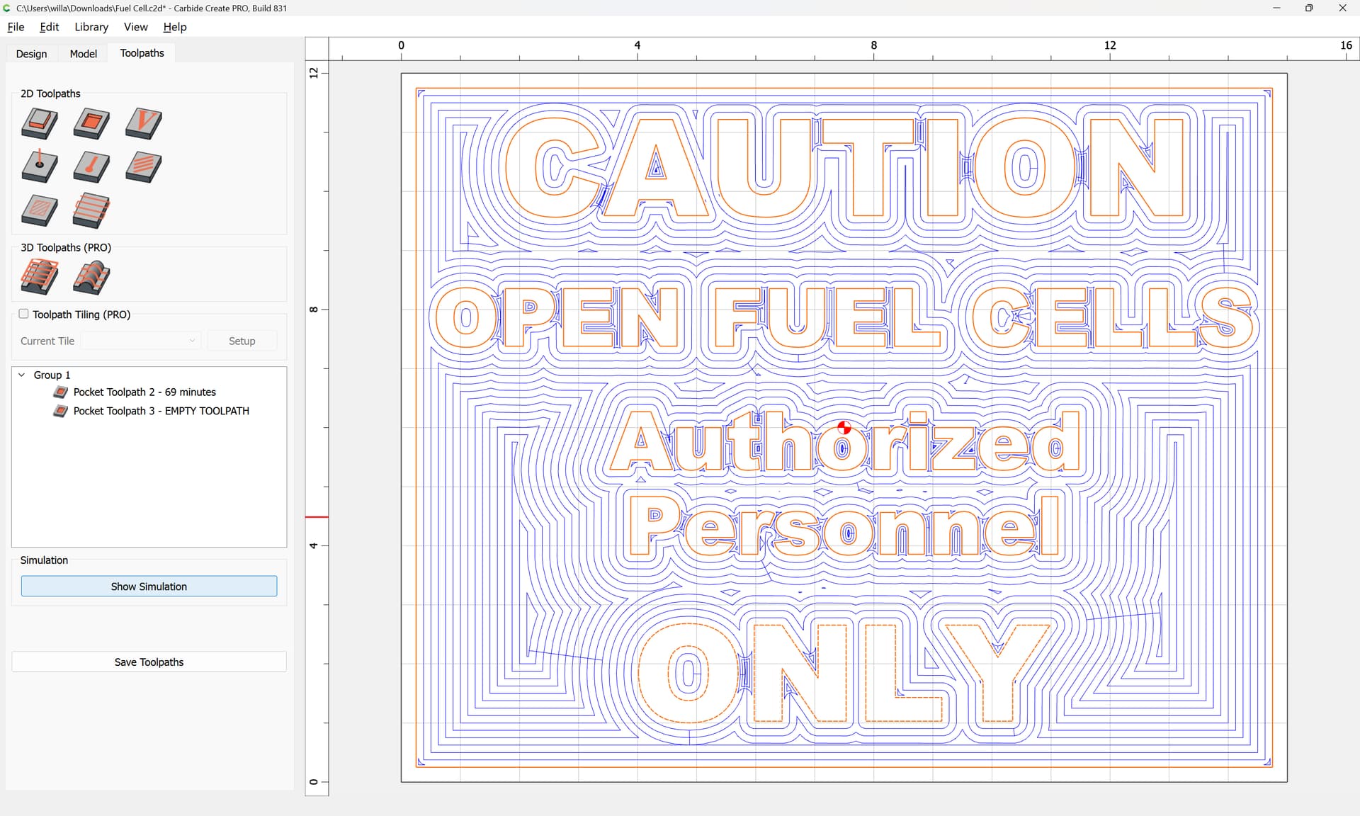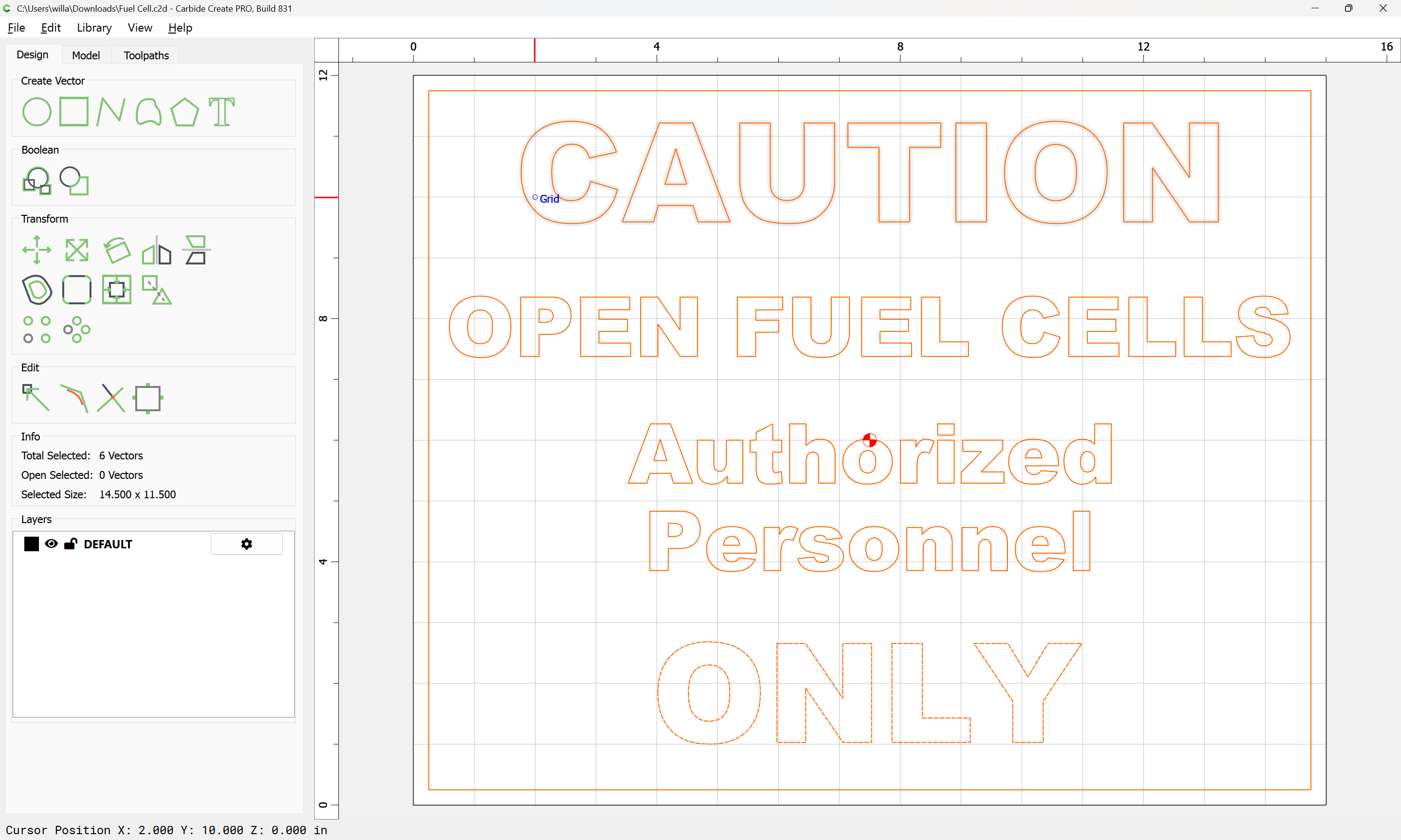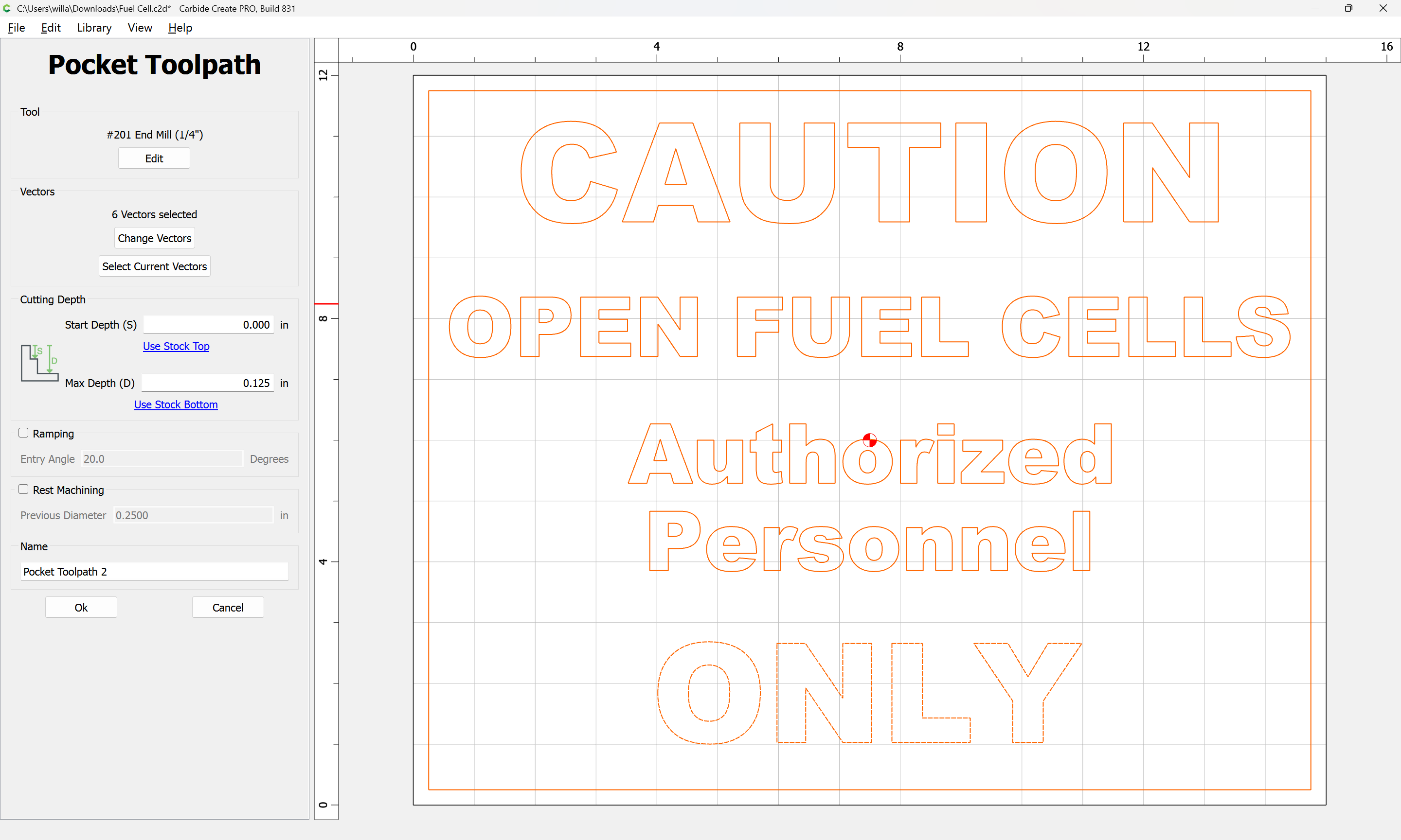 Note that even a 2mm tool is still too small, so you should either make a larger sign, use a different font, or source a yet smaller tool (which may require adjusting the Depth per Pass).
