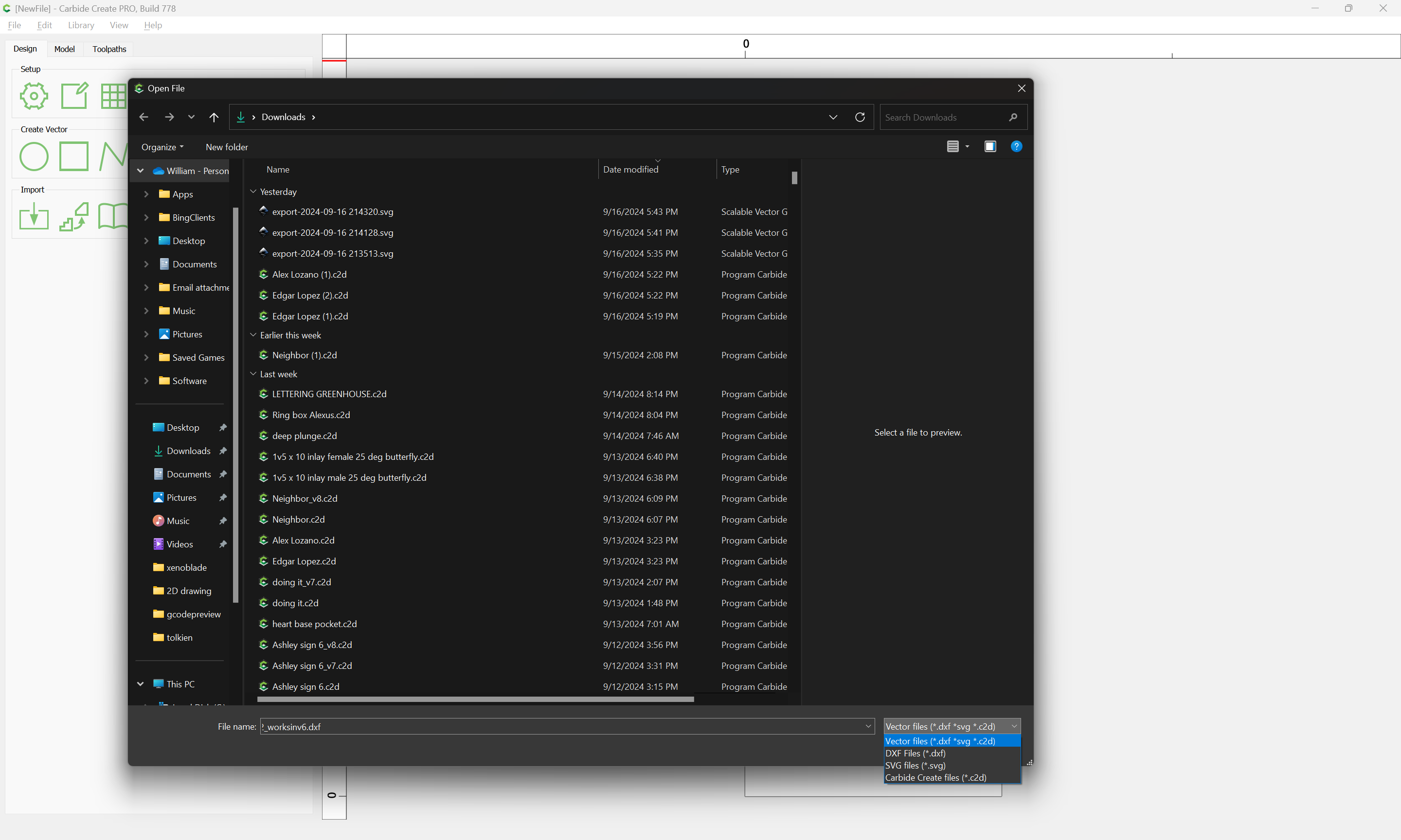 When I search for files, all I get is nothing… It also preloads a file “Shuman’s cutting board” which is a project from a year ago. It does it over and over and over. And I can not find the file I am trying to import. Actually, I can’t even find file I Imported before I downloaded the “pro” account.