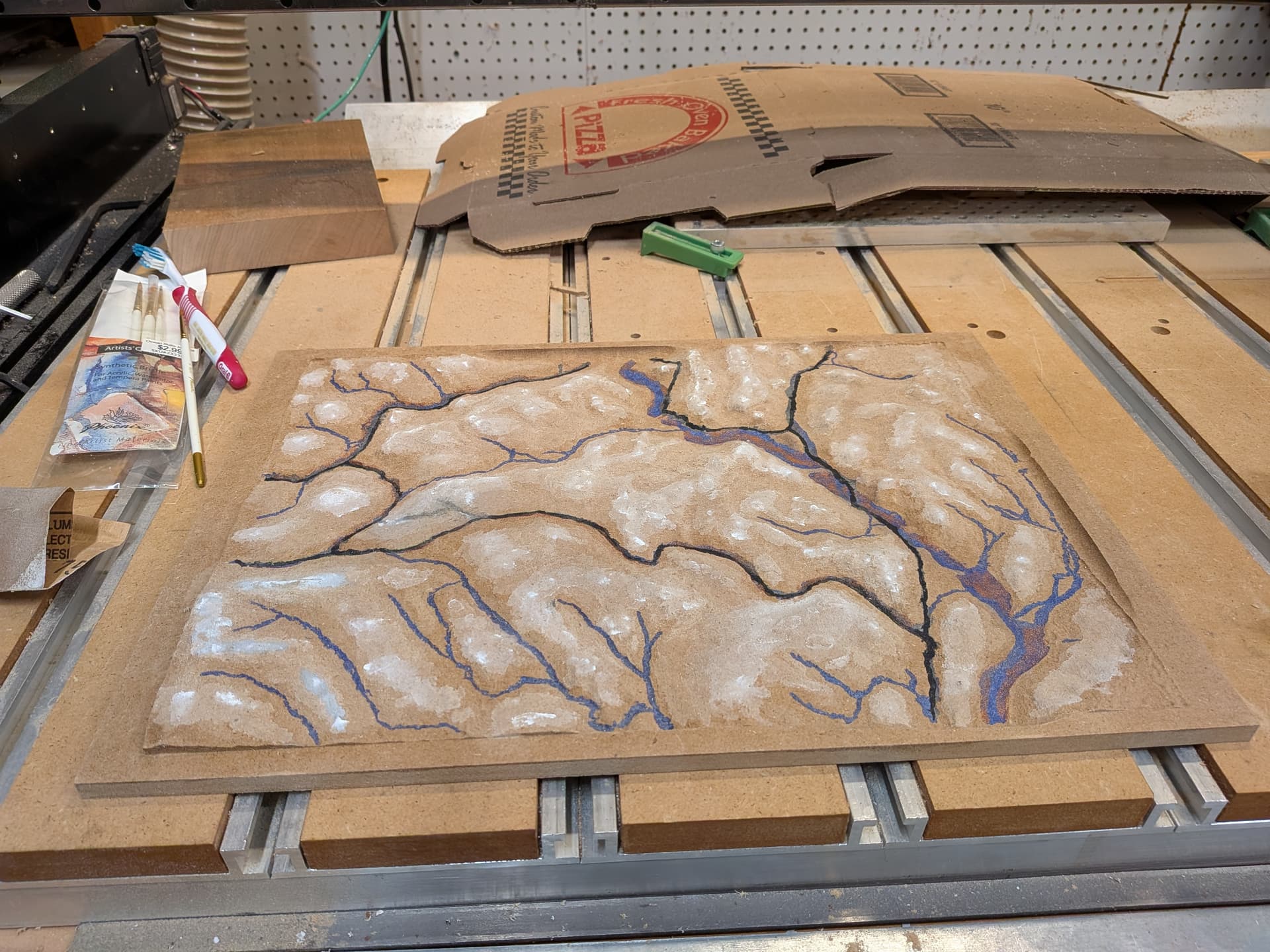 Could one mill to an elevation, paint the revealed terrain then mill the lower elevation. At least get some snowy caps or a tree line.