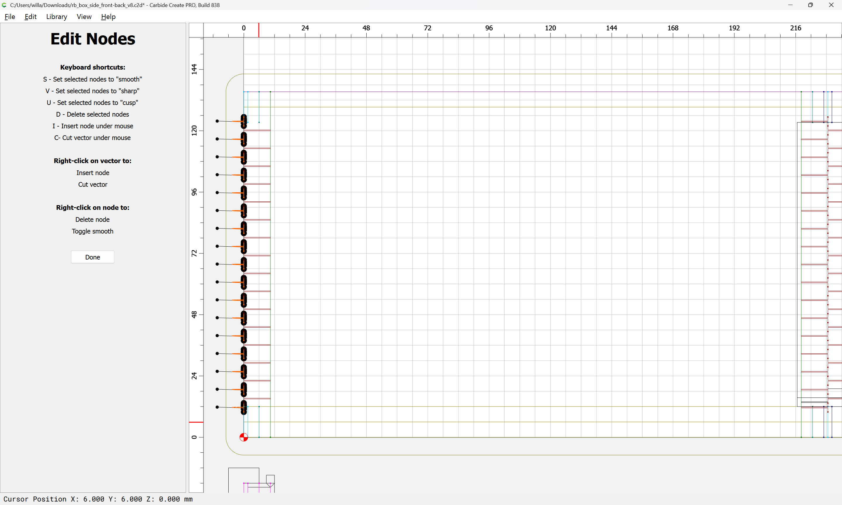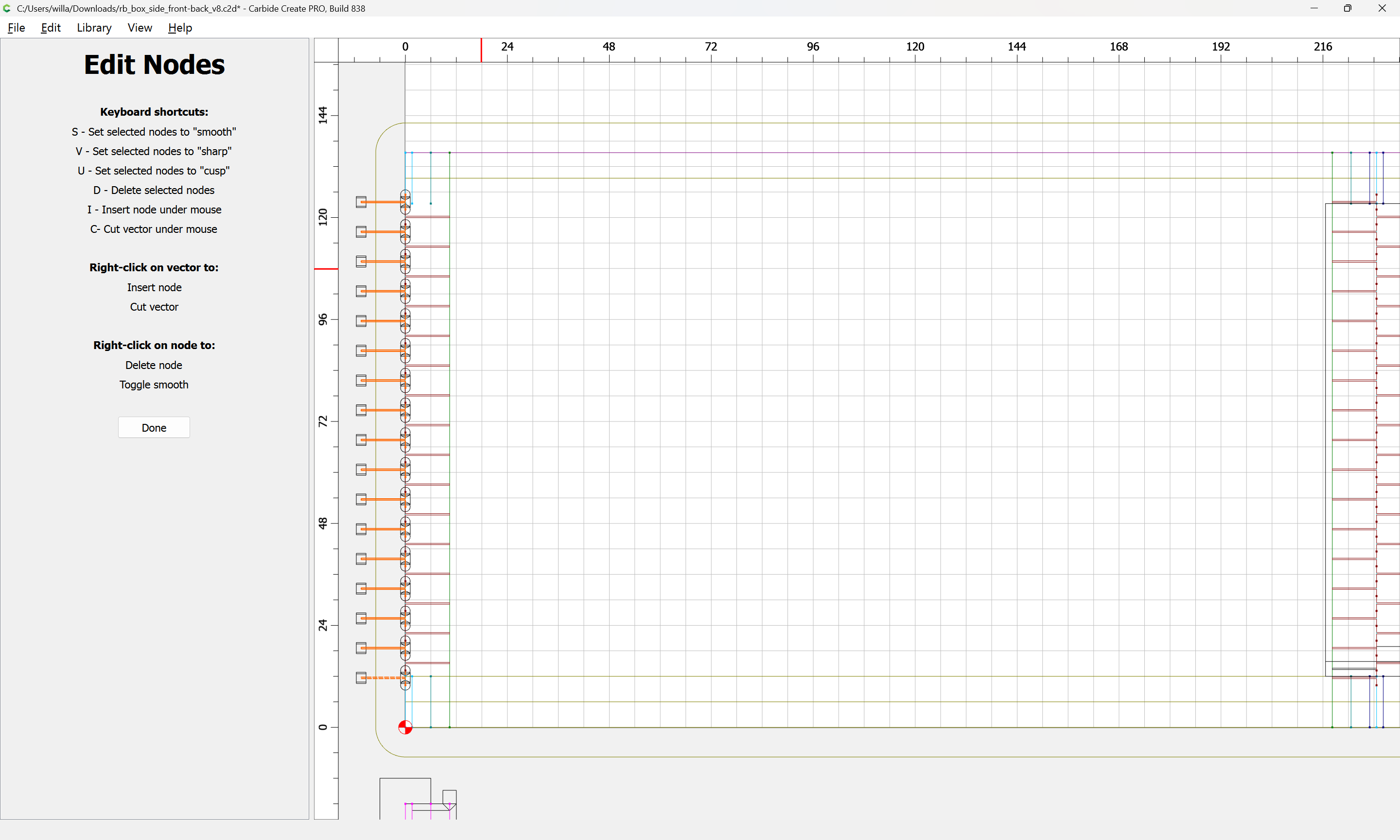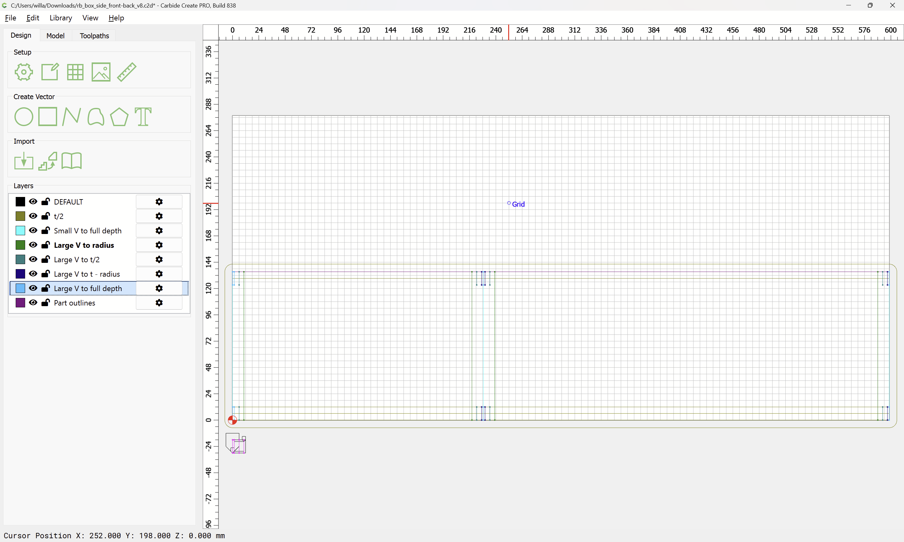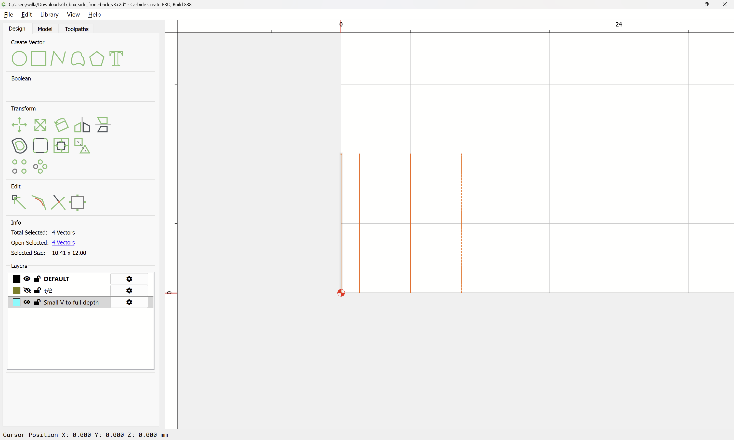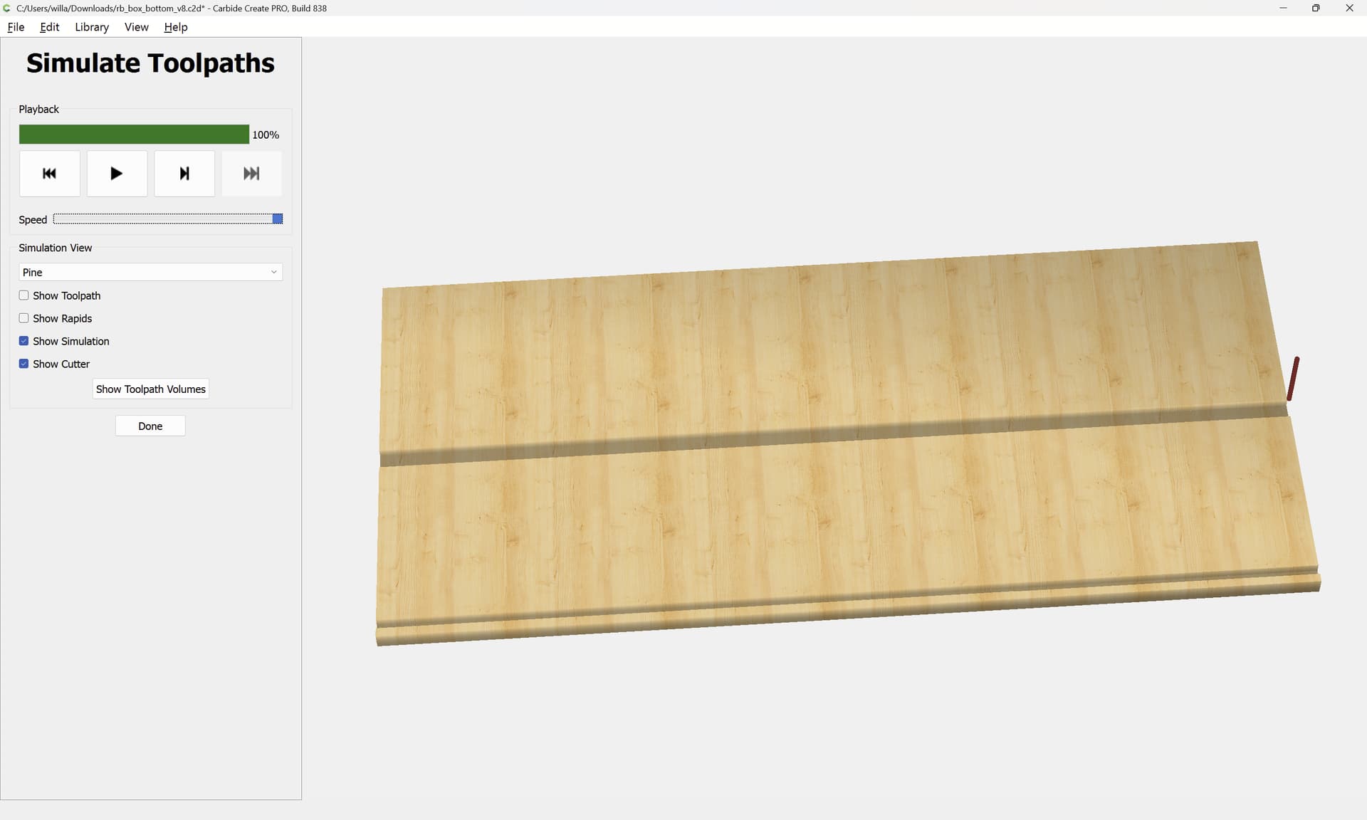 Next would be duplicating these toolpaths to the other end of each part, cutting away the tops of the box joints, arranging the toolpaths in optimal order, and duplicating everything to cut two pairs of parts.