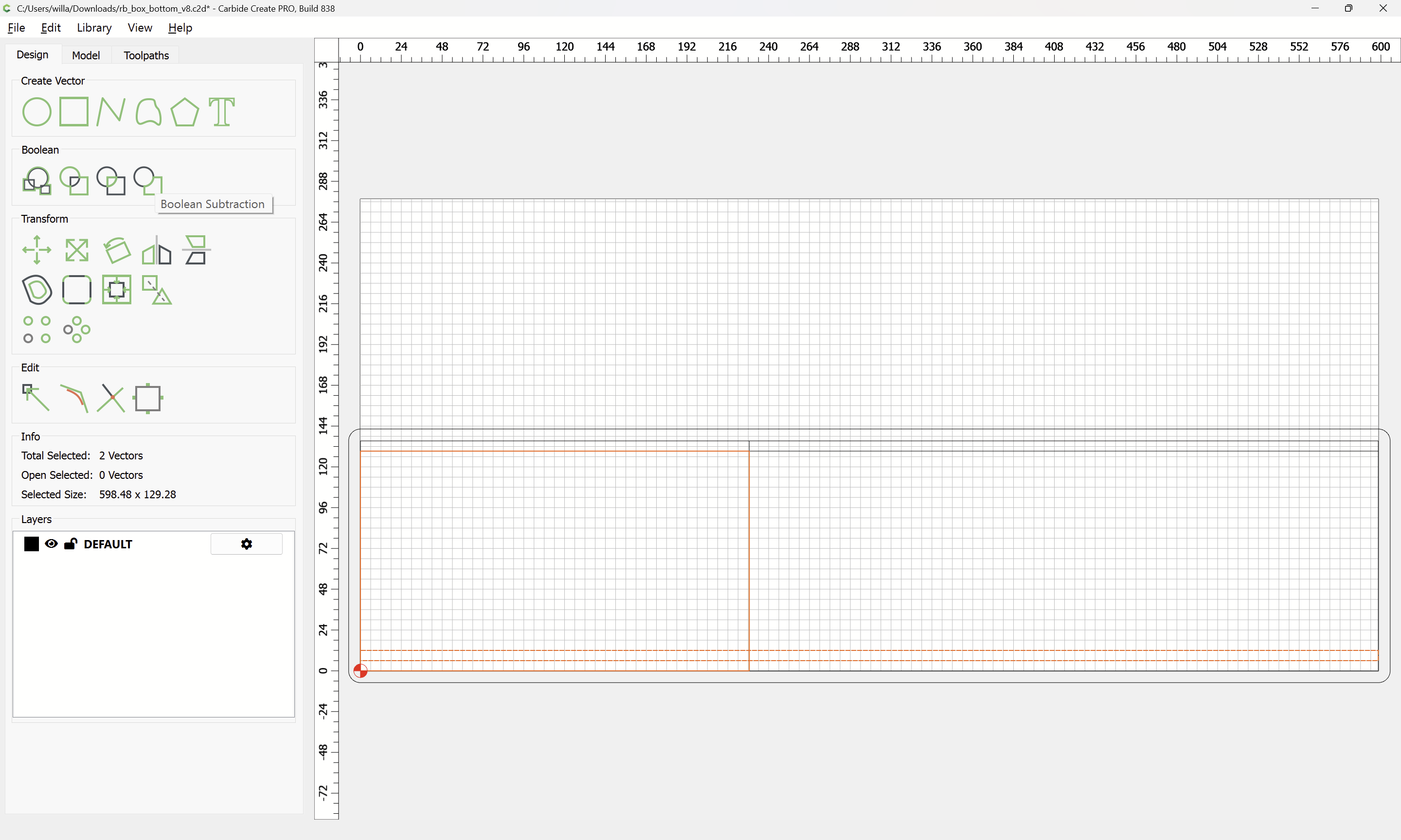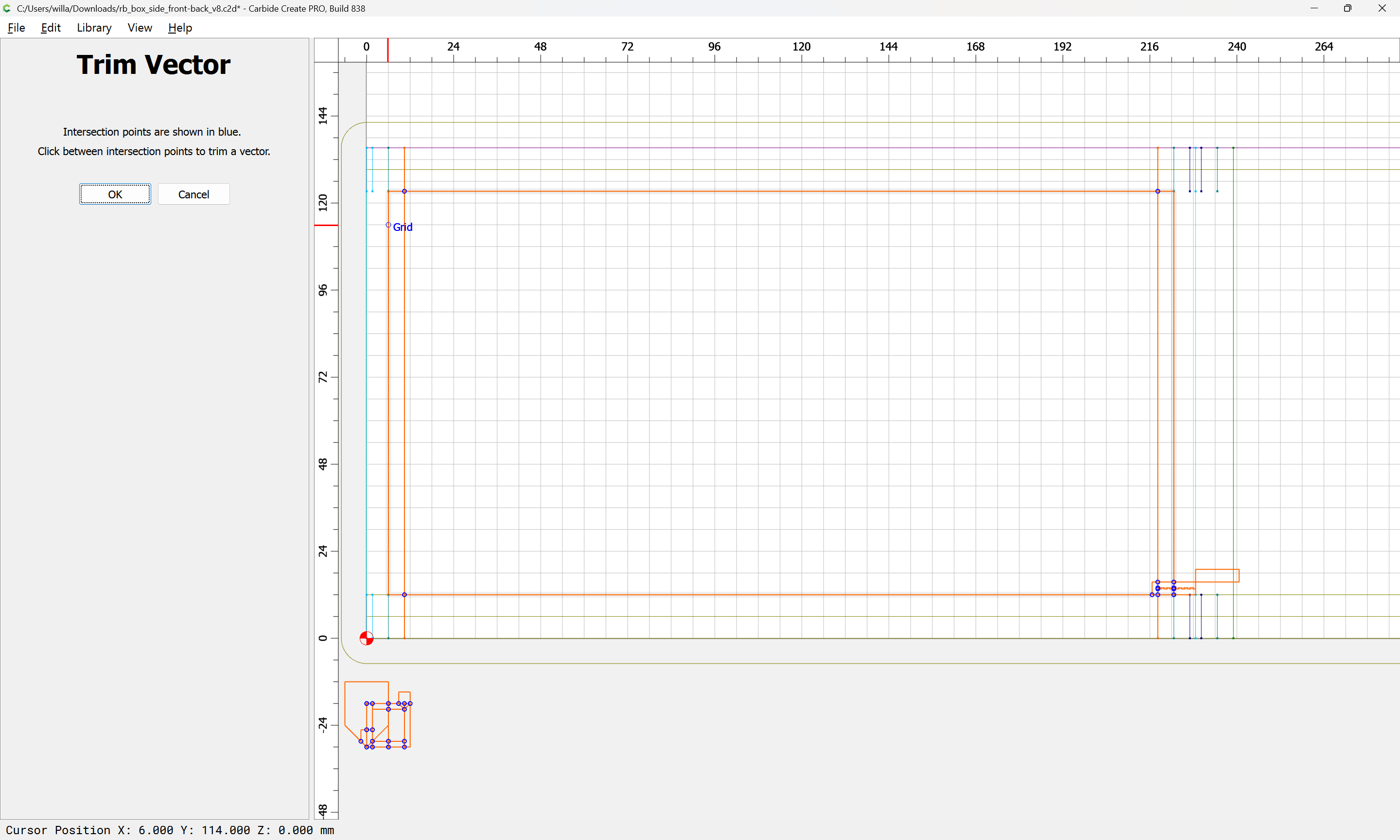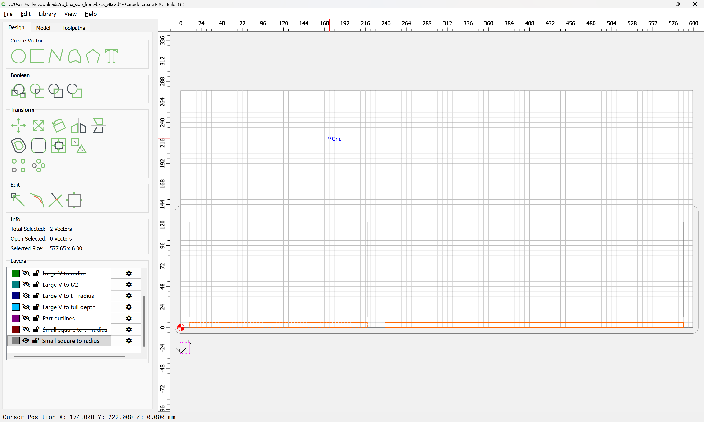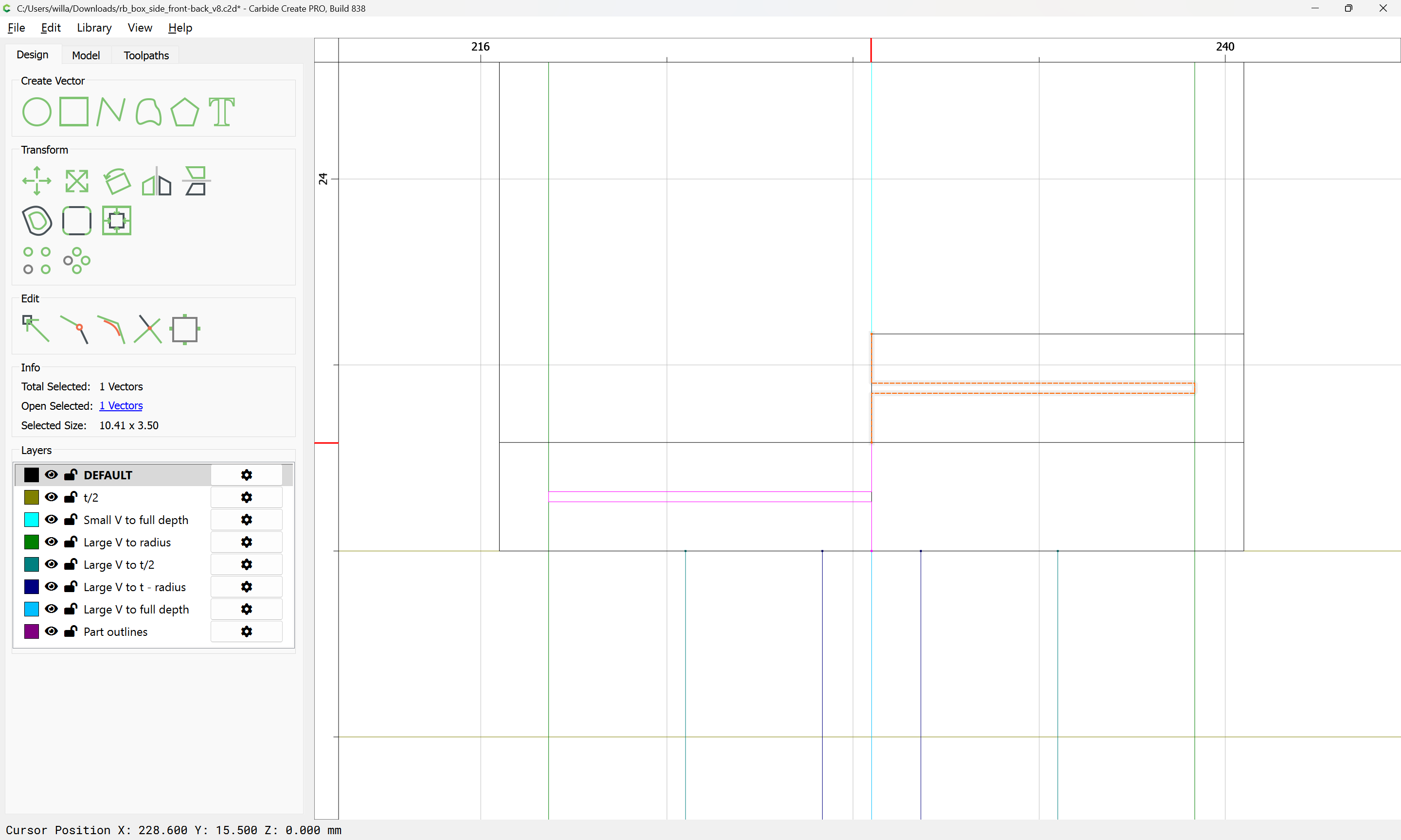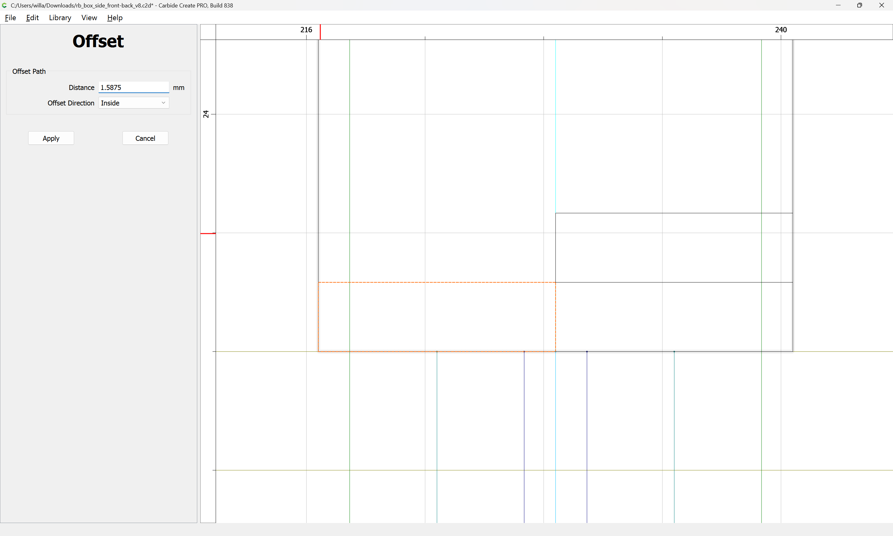 Next would be duplicating these toolpaths to the other end of each part, cutting away the tops of the box joints, arranging the toolpaths in optimal order, and duplicating everything to cut two pairs of parts.