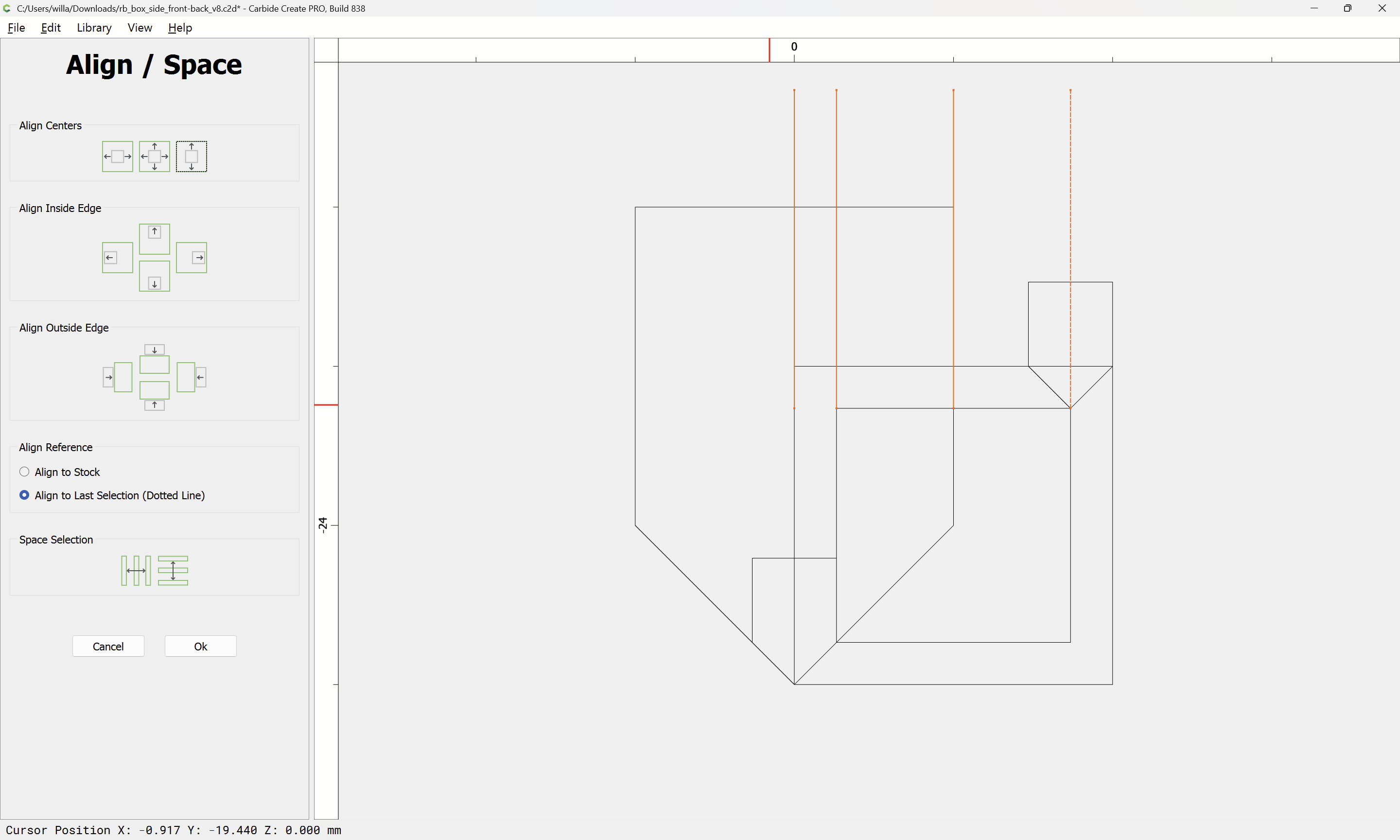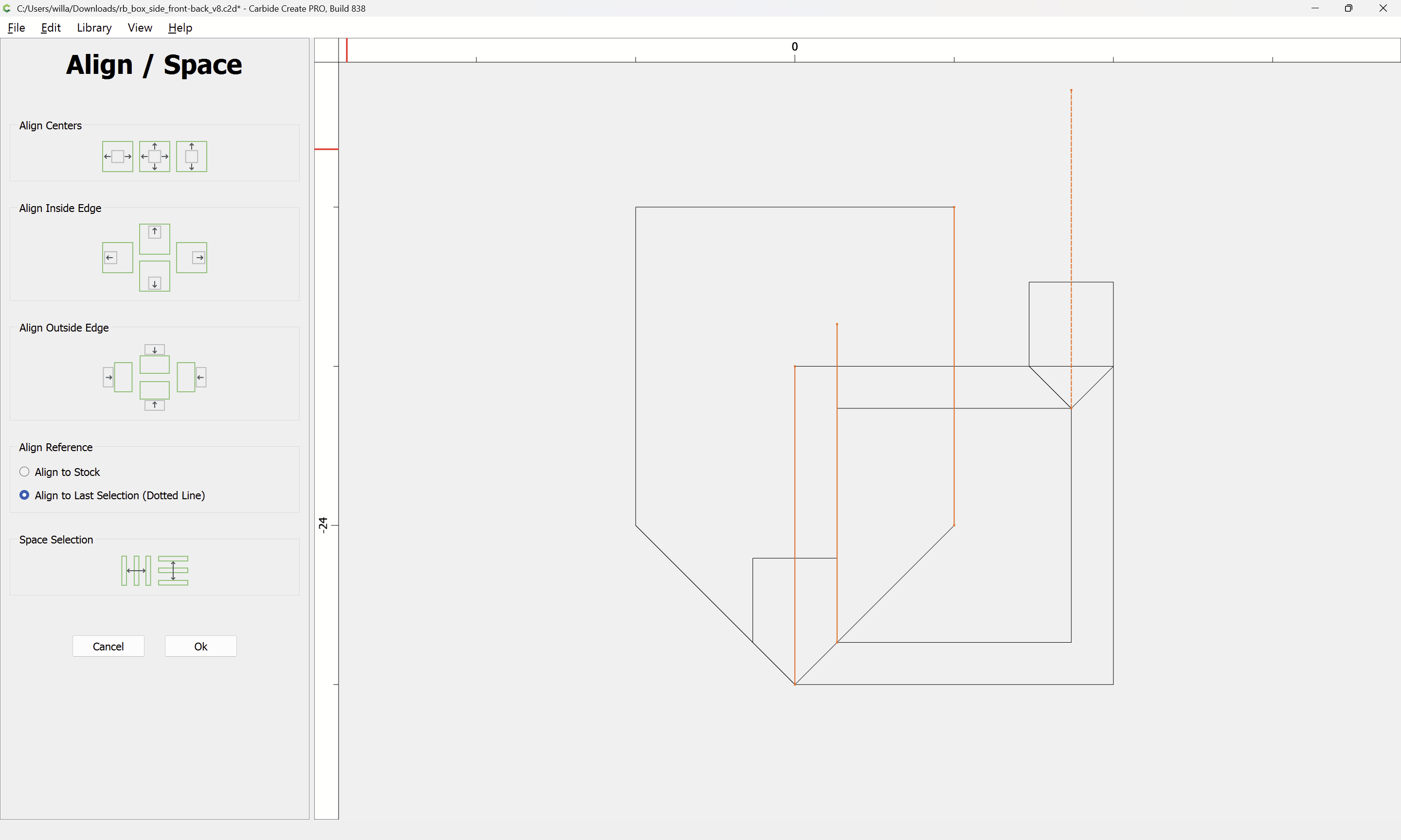 Naturally, it may be set up as a two-sided part and a decorative design for the lid cut on the opposite side, and as noted, the dimensions will need to be adjusted so that the initial cut ensures that the parts are slightly oversized so that fit may be adjusted.