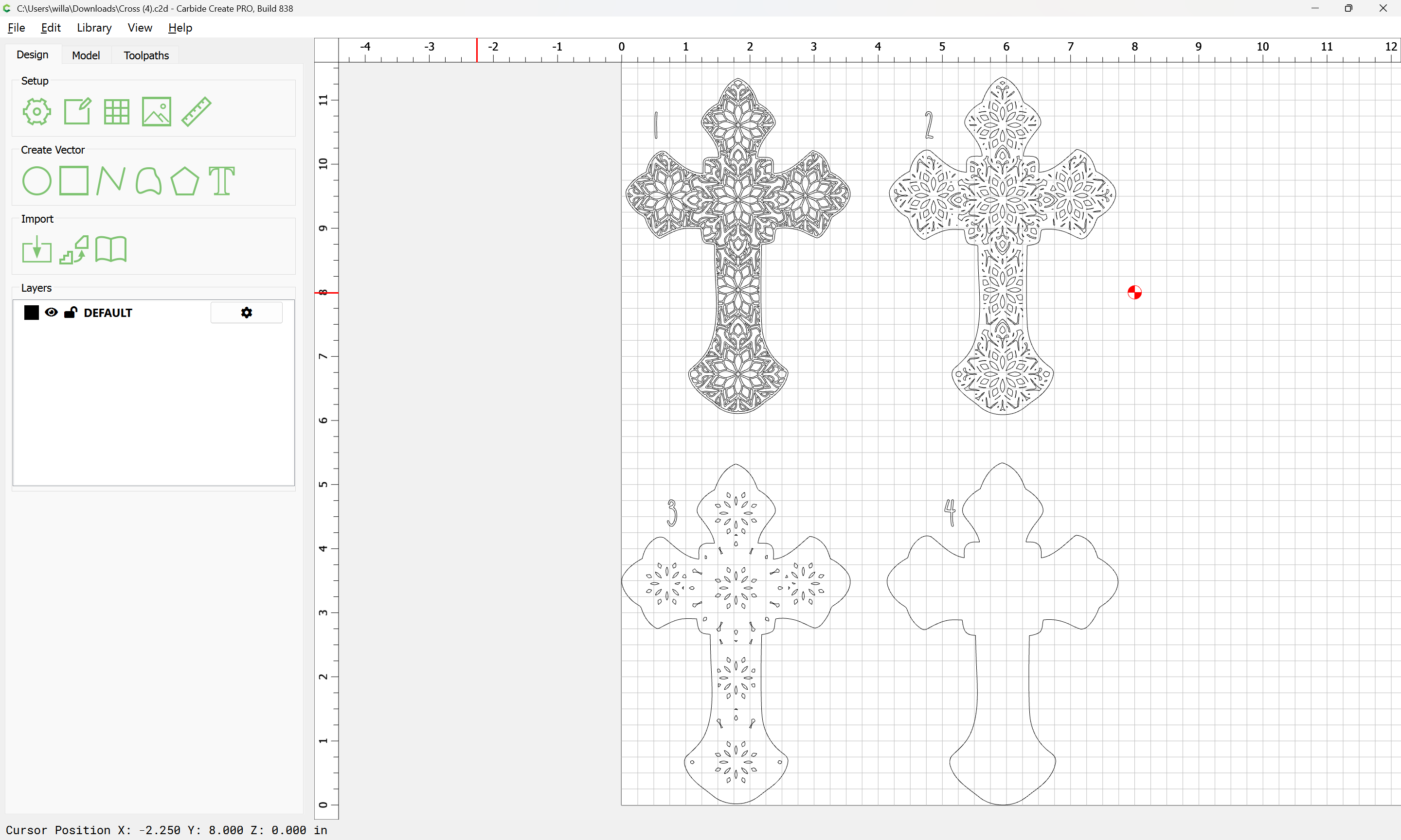 I have a mandala cross I want to cut with a 20-degree vee bit.