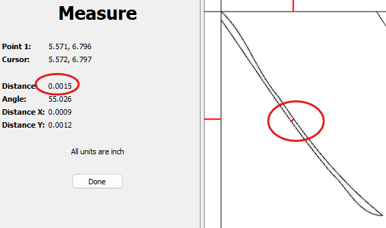 If you’re keeping the vectors on top of the stock, you have to be over 0.044" wide for it to cut through. So to get a 0.001" slot in the bottom of material, You’d have to scale it up about 30x, or about 160" tall.