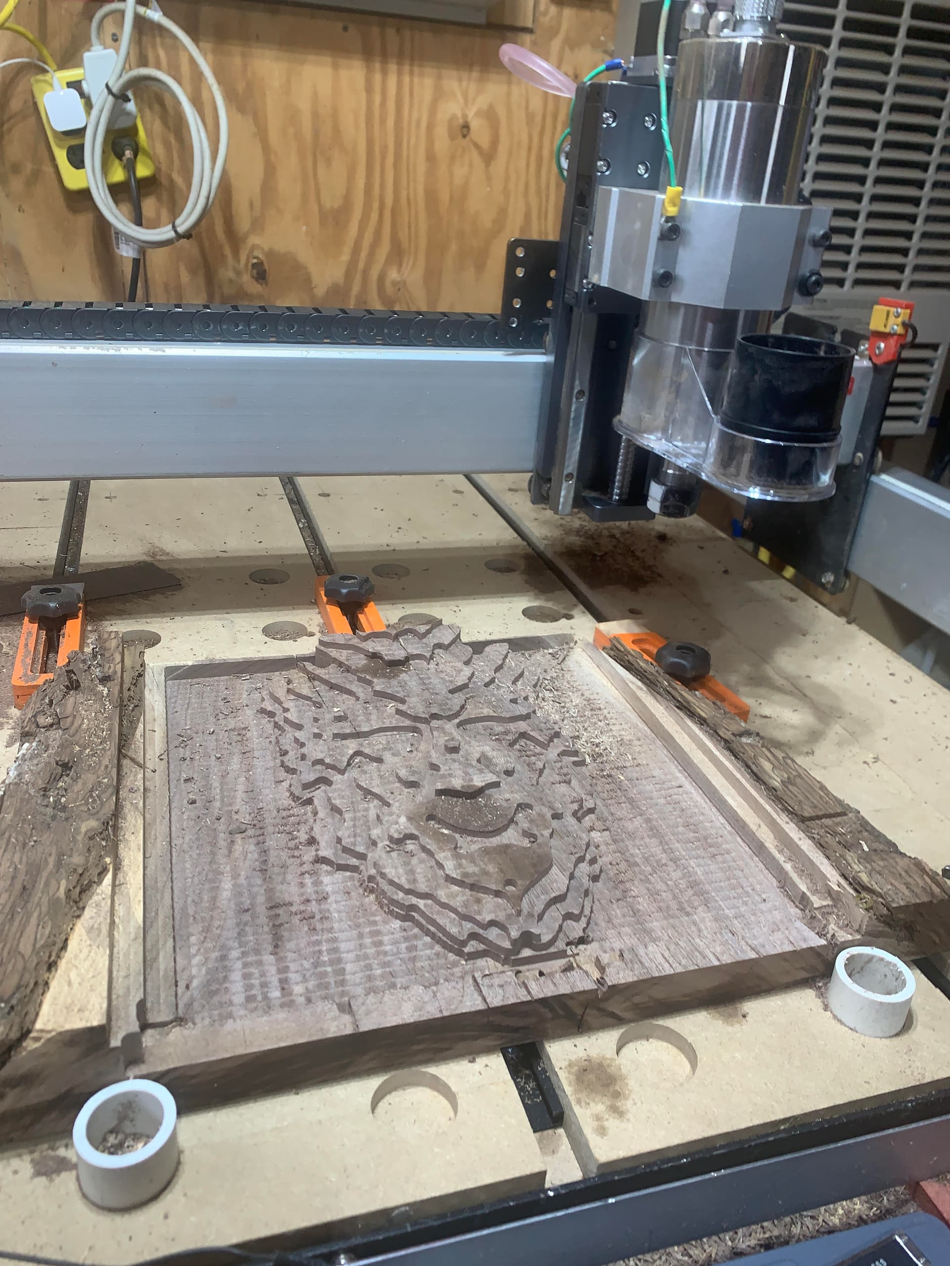I’ve ordered the Kodiak. The Amana looks like a good bit to have in your arsenal but spendy. This has been a real learning curve. I’m embarrassed to say I’ve ruined a few end mills. At first I used a 1/32 for finishing on a shallower prototype piece and ended up smoking the project. I learned the hard way about creating a perimeter pocket for side clearance. Didn’t make my offset wide enough and got 90 minutes into the roughing pass and had to shut it down. I wish there was a way to restart a tool path from a certain time index.