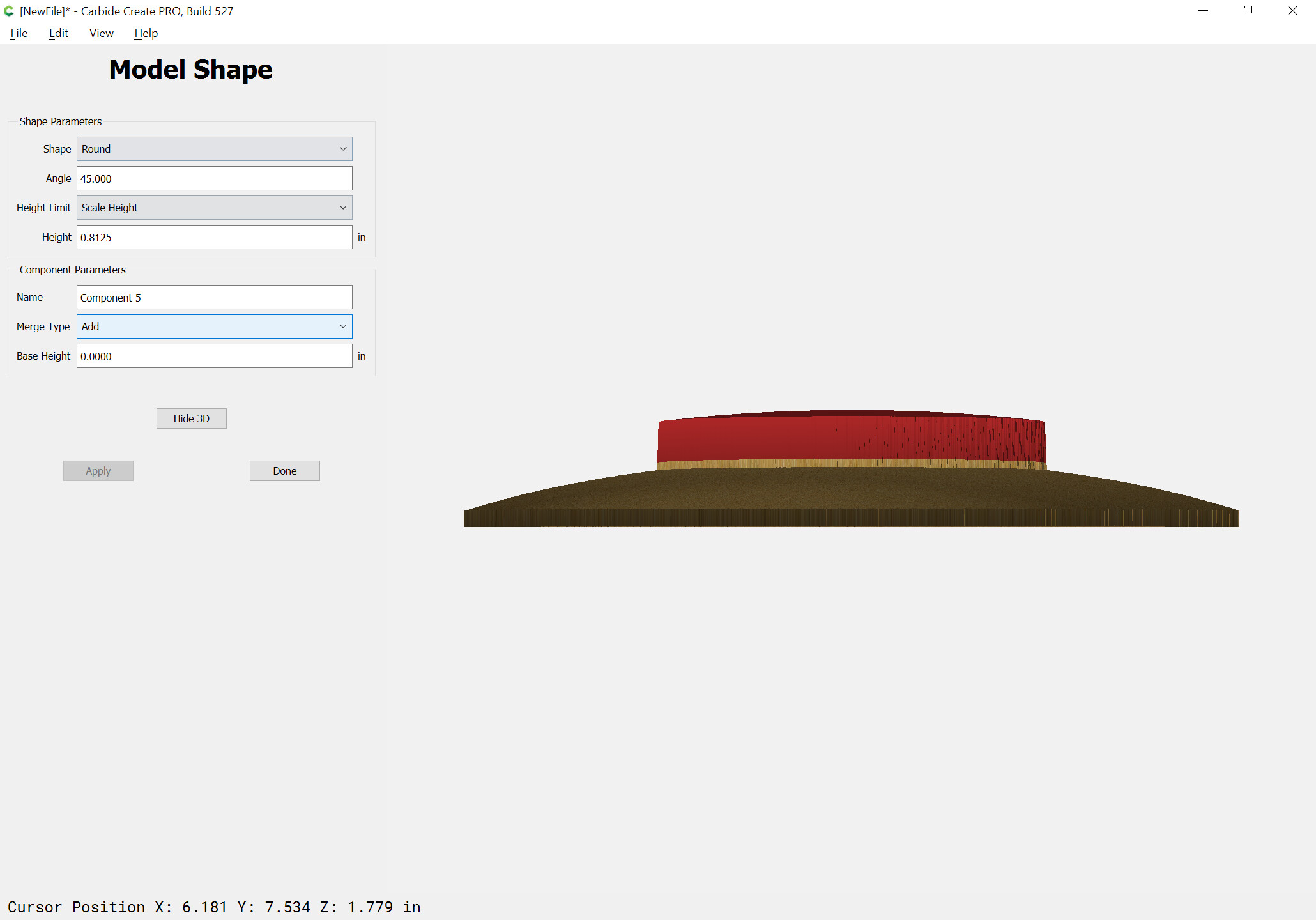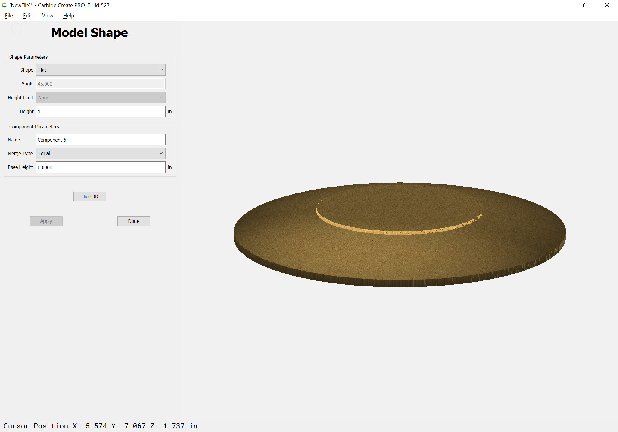I’m trying to put a slope on the bottom of a platter. I want to have .250 flat on top edge sloping from there 3 inches toward center to the edge of the base ring .when I try it in modeling I get a full half circle profile .