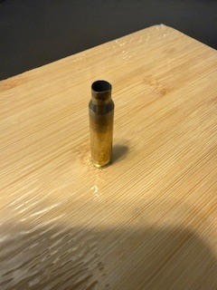 I’m creating a key holder and I have been brainstorming how to attach/secure a .223 casing to my project that would sustain the weight of keys. Below is my project picture and the .223 casing. I reckoned that I could tilt the wood at the top with some 1/4" spacers and clamp it down to allow the tooling to clear out a round pocket which would allow me to insert a dowel or ?? on an angle to hold the shell casing. The hole in the shell is about 0.222", I’m not sure if a dowel that size would be strong enough.? Another thought was to fill the casing with hot glue and attach it with a screw from behind??
