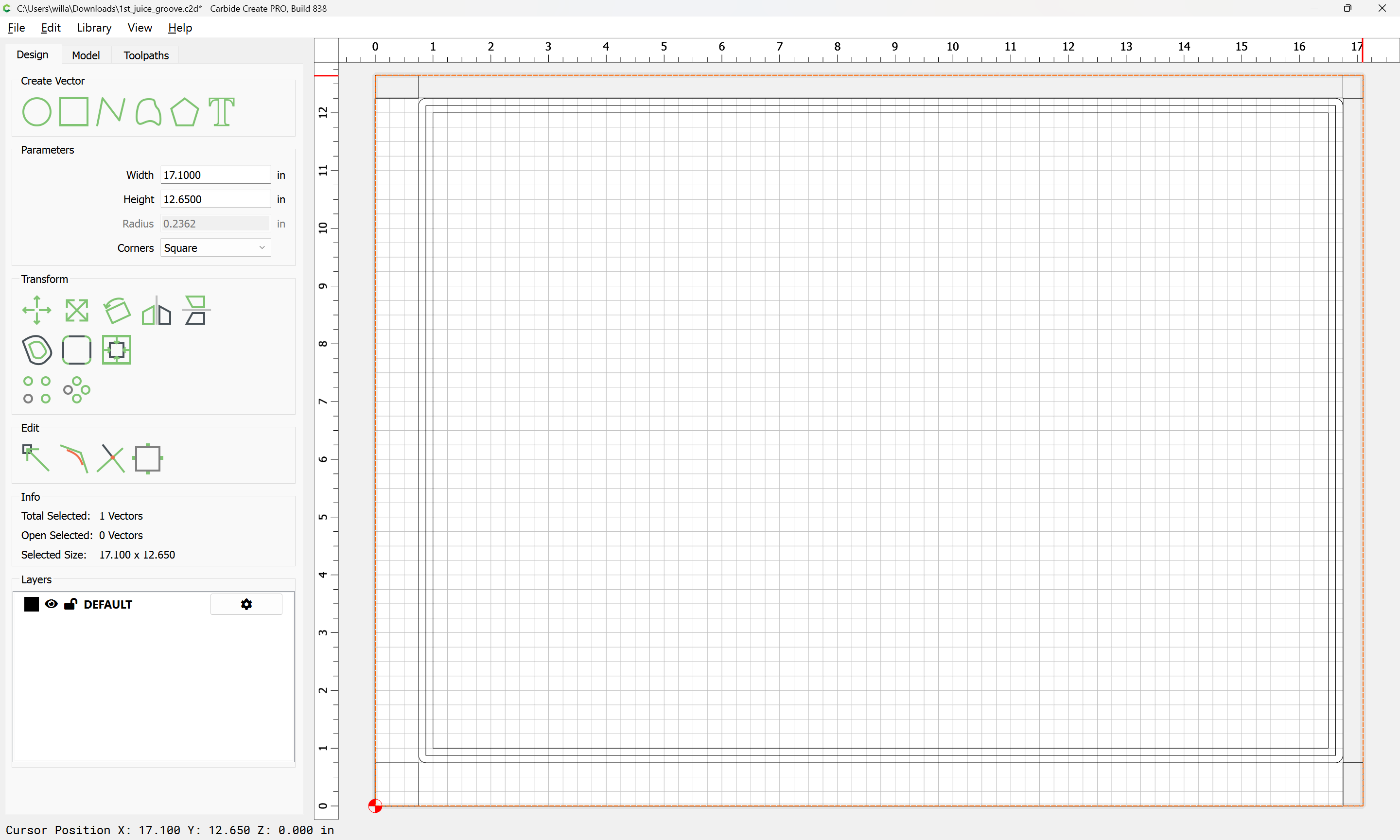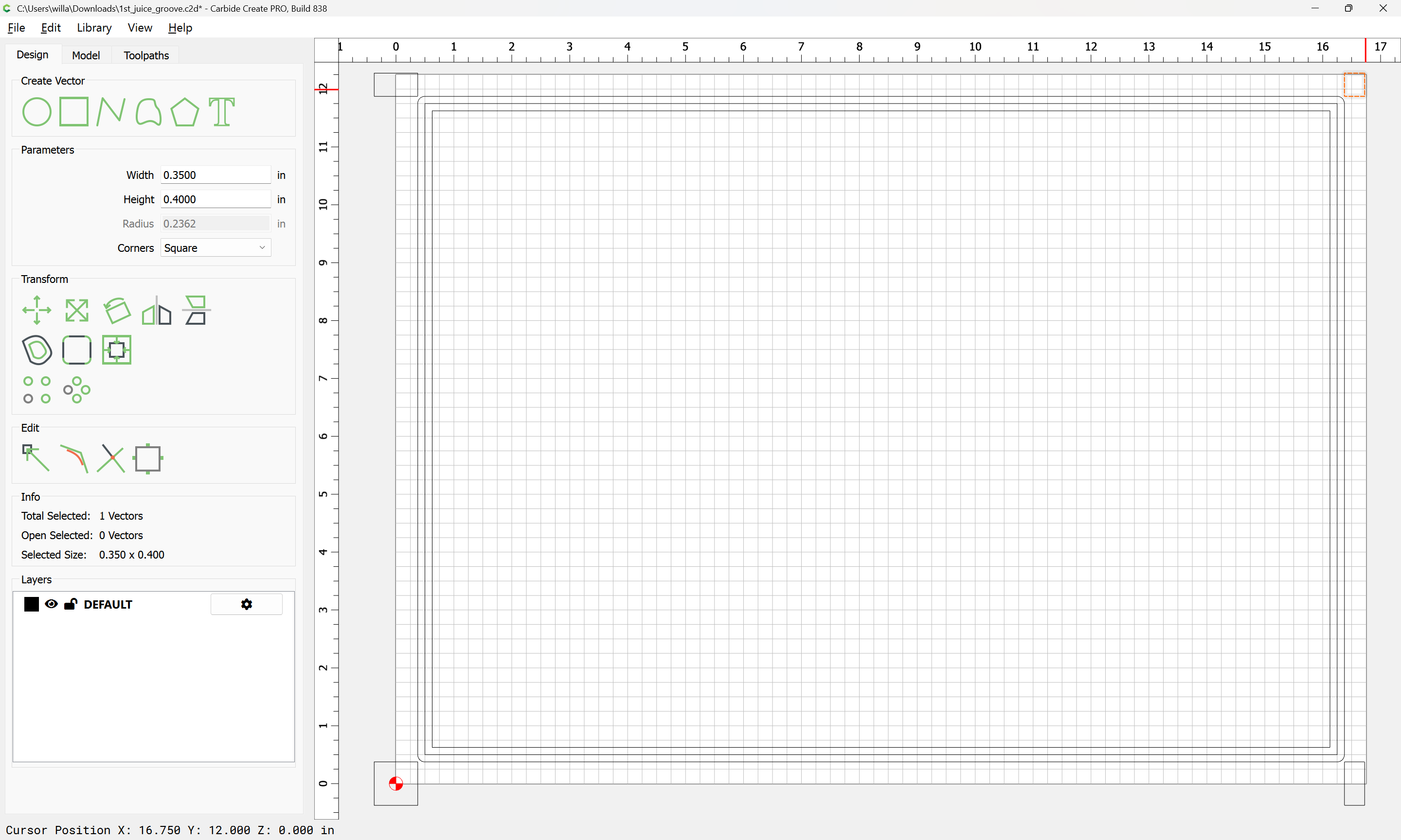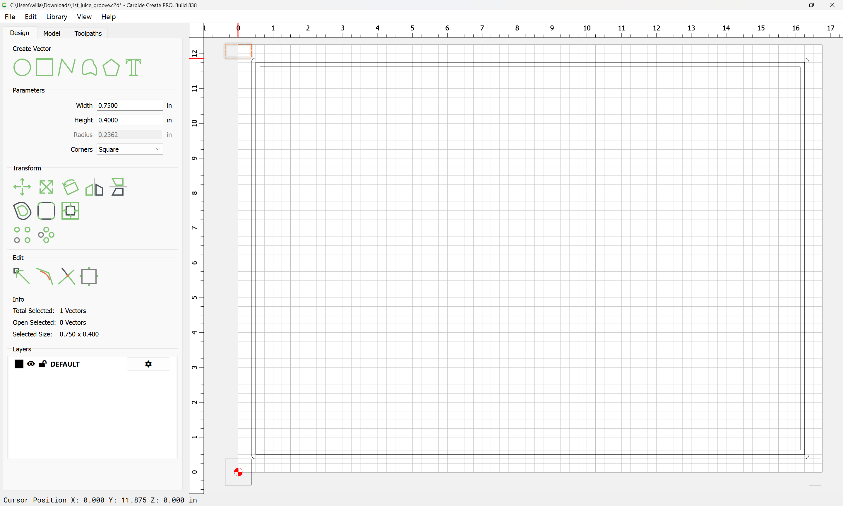 Fortunately, this is scrap wood and not the actual cutting board. I’m a bit befuddled and not sure where I am going 1st_juice_groove.c2d (44 KB)