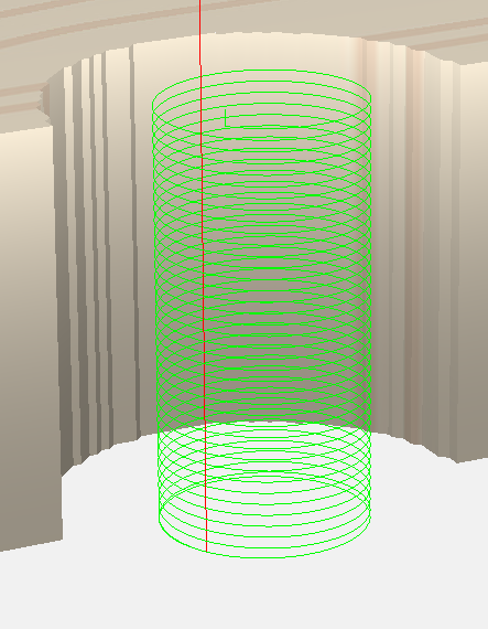 The ramp follows a helical path to the bottom, then a single cleanup pass.