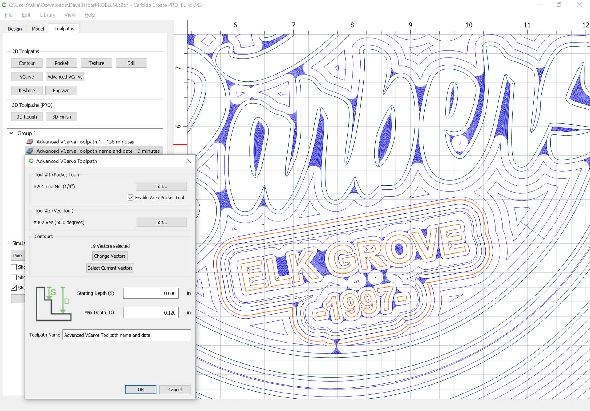 Even changing the text to paths doesn’t alter this, even w/ an Advanced V carving toolpath.