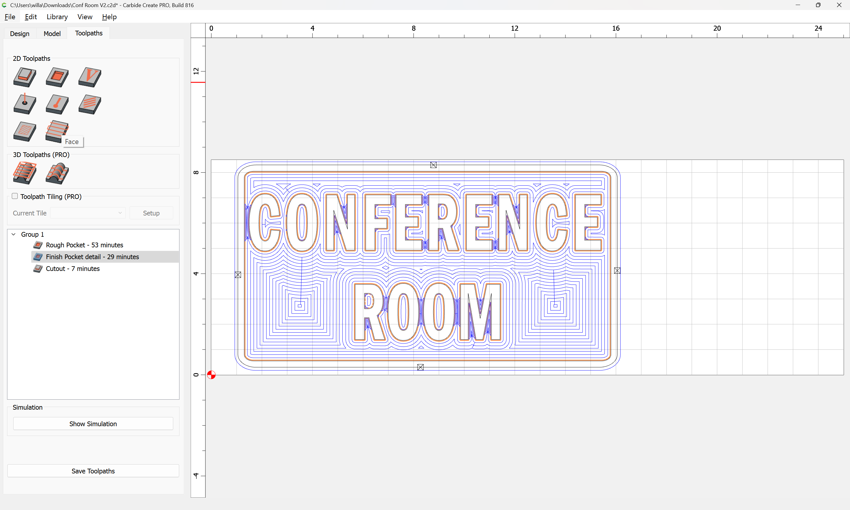 Is there a way to to Rest Machining with a facing toolpath? Conf Room V2.c2d (256 KB)