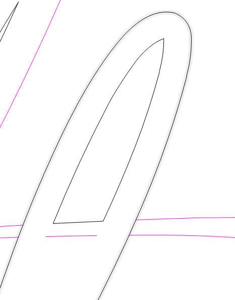 - Zoom in, see that the lower divider line doesn’t touch the interior vector. Select the lower line, use ‘Node Edit’, and drag the left most node so it cross over the vector: