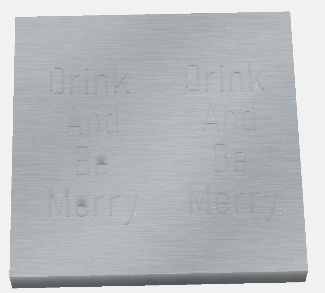 What I would expect is that I can set the Vcarve to a depth of 0.1in and after cutting a pocket of 0.075in deep, looking at just the lettering relative to the surface it is on, the left side and right side would look exactly the same.