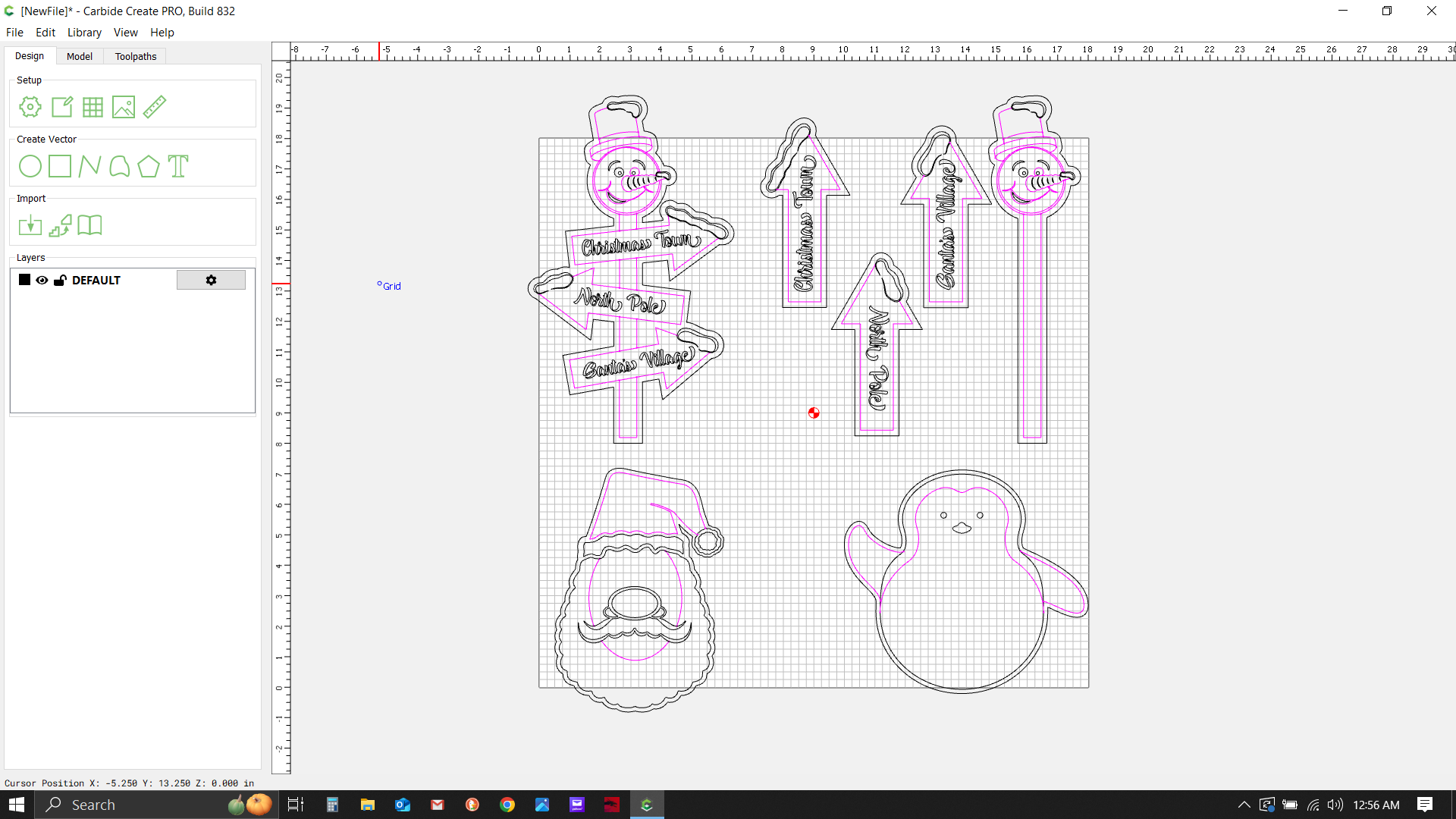 It seems like the Christmas_Directional_Sign_2.svg when downloaded from the elements web site is different from the Christmas_Directional_Sign_2 that is imported using the Library>Show Library link within Carbide Create.