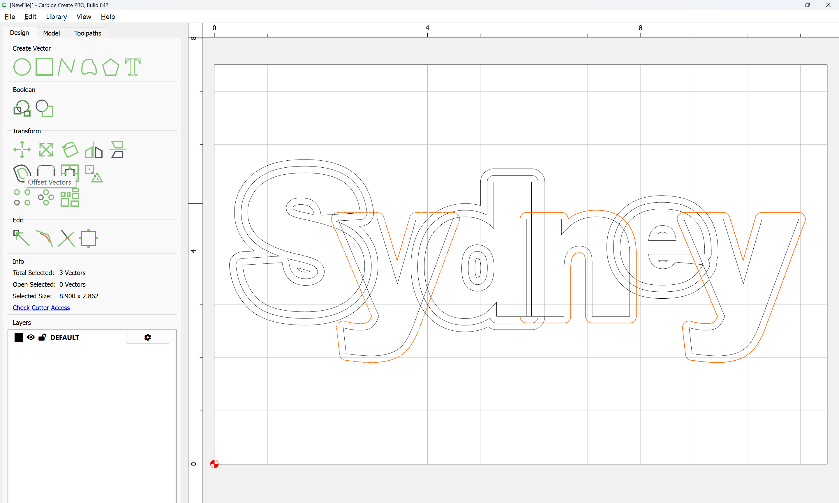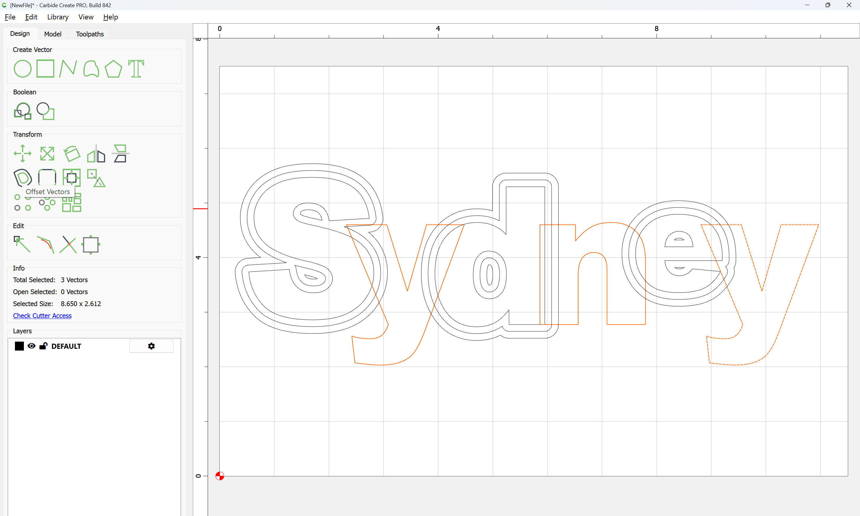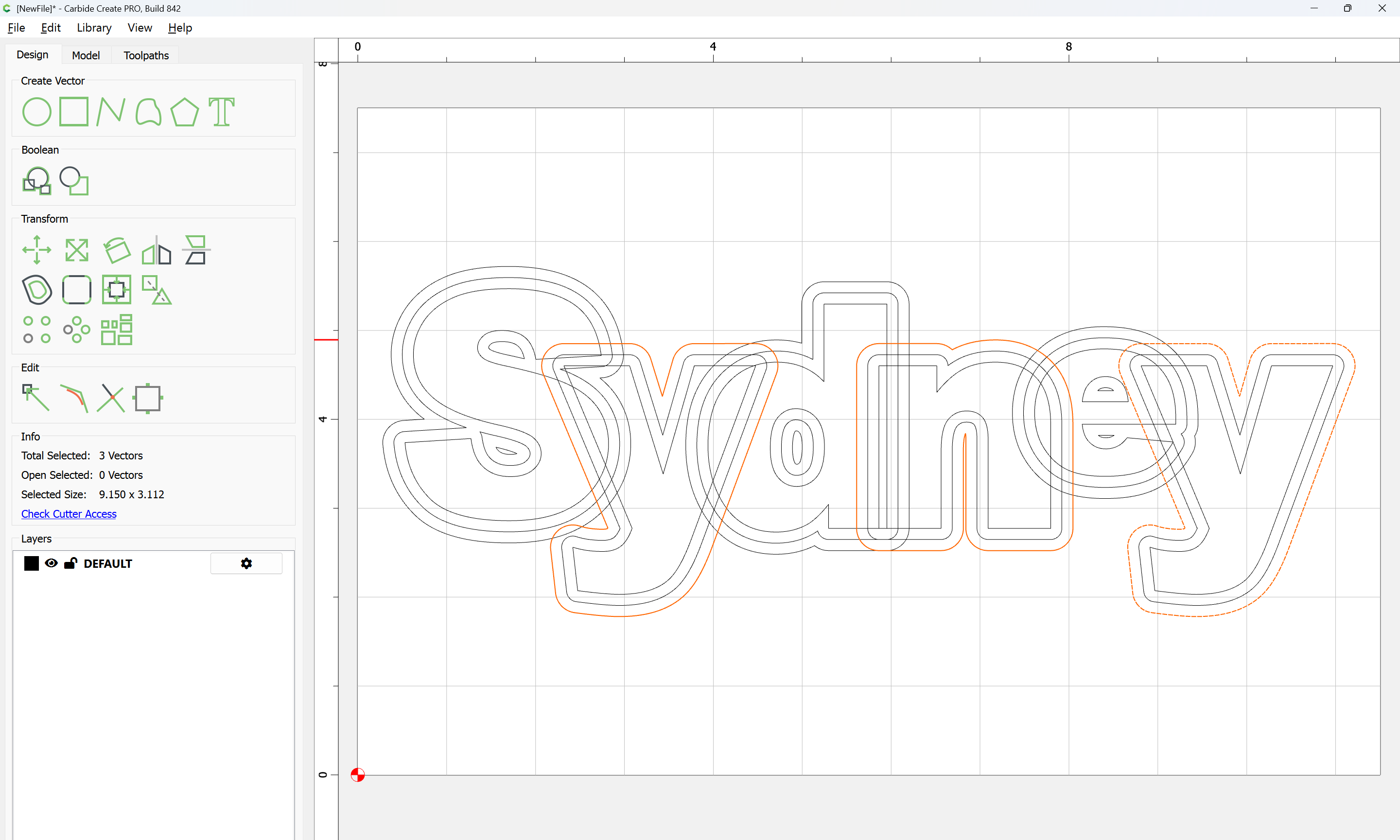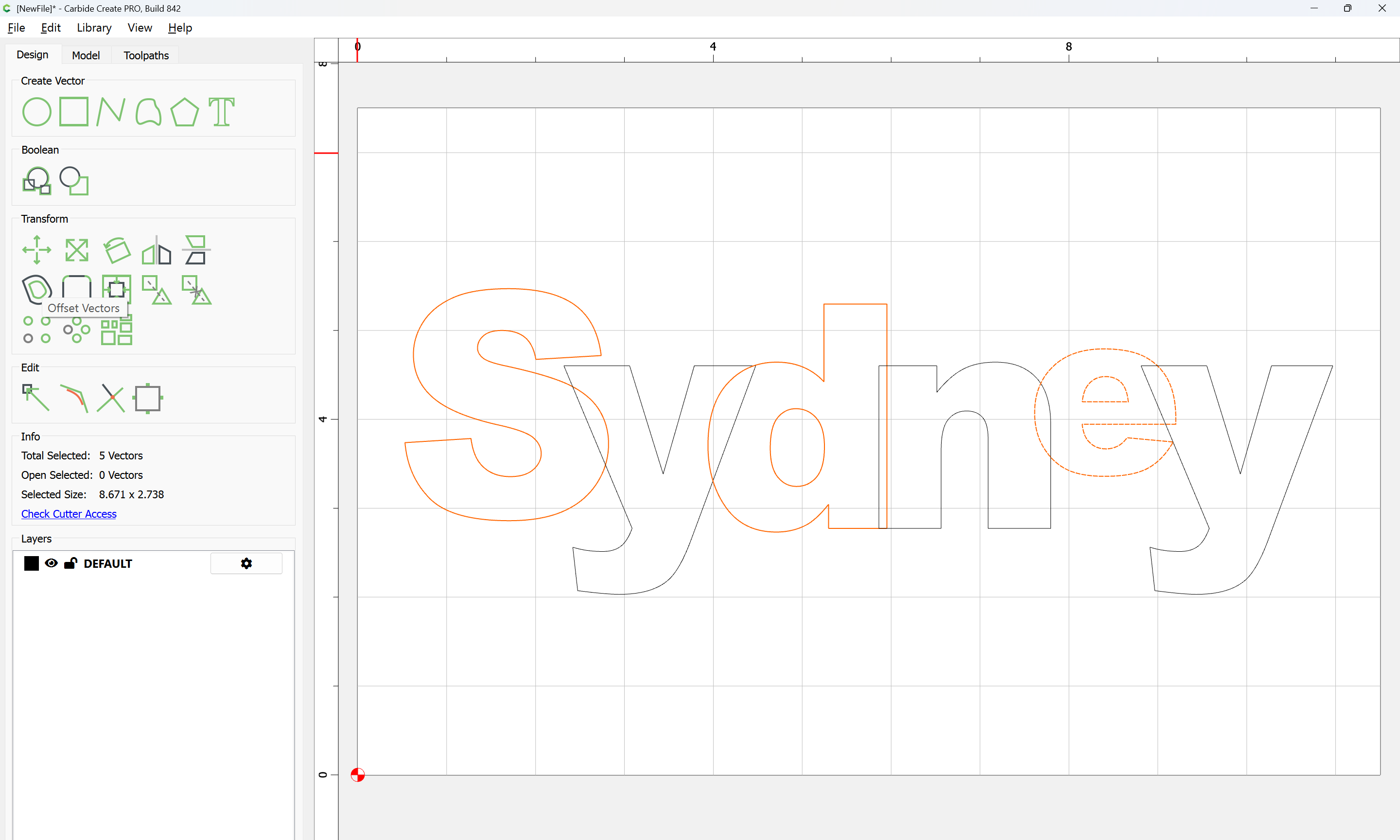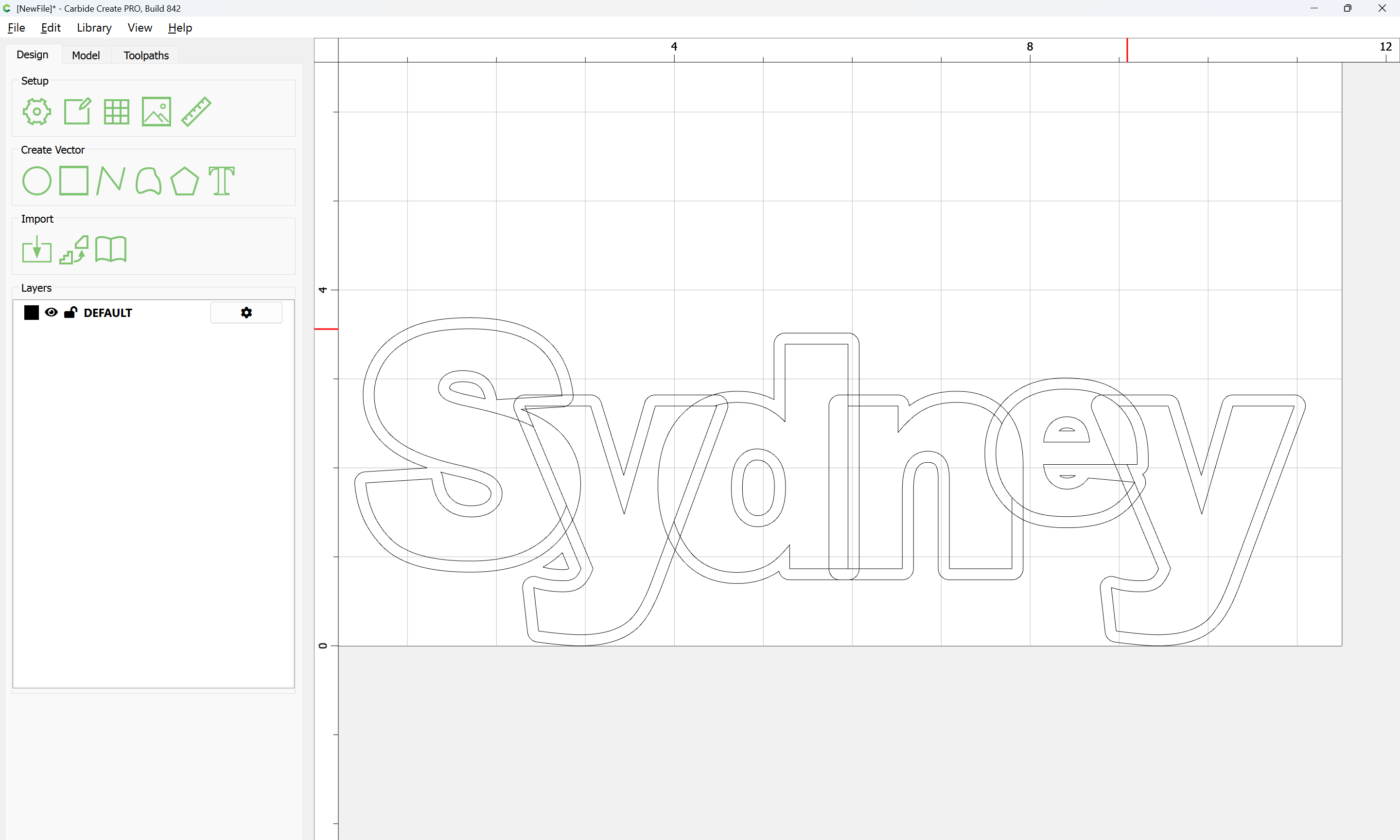 The letterforms may now be spaced out and cut out of a suitable thickness of material with suitable toolpaths — this is left as an exercise for the reader — if any difficulties are encountered, upload the file and we will look into it.