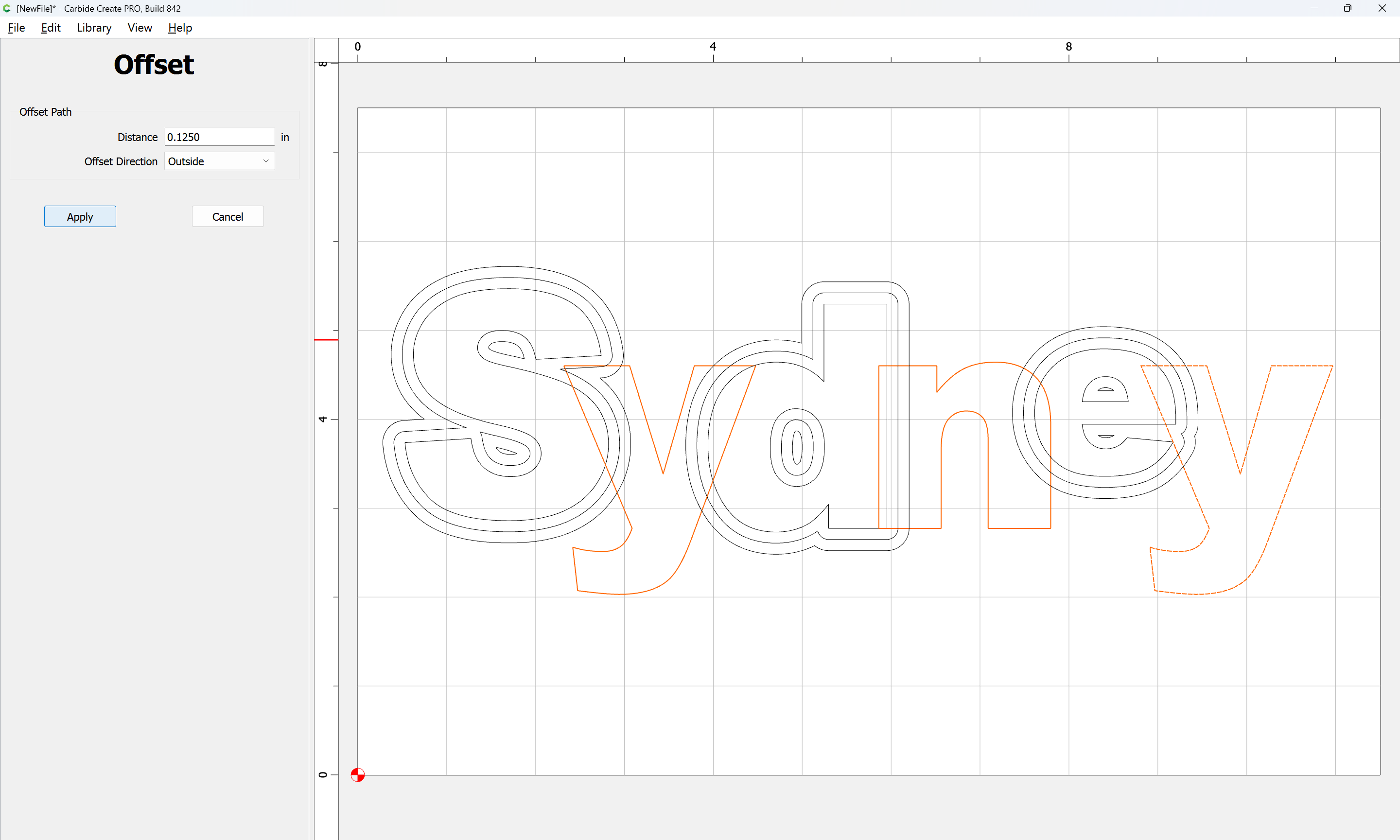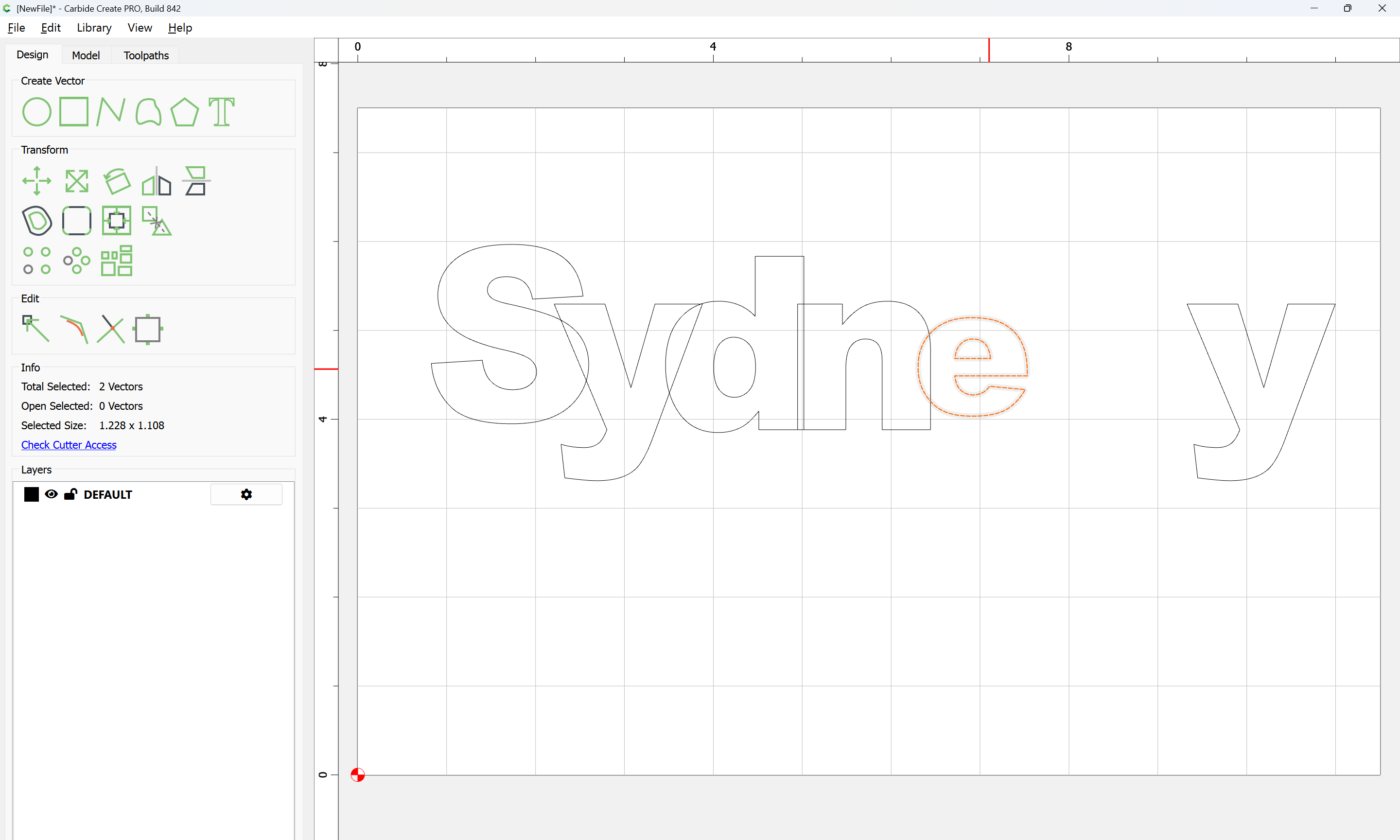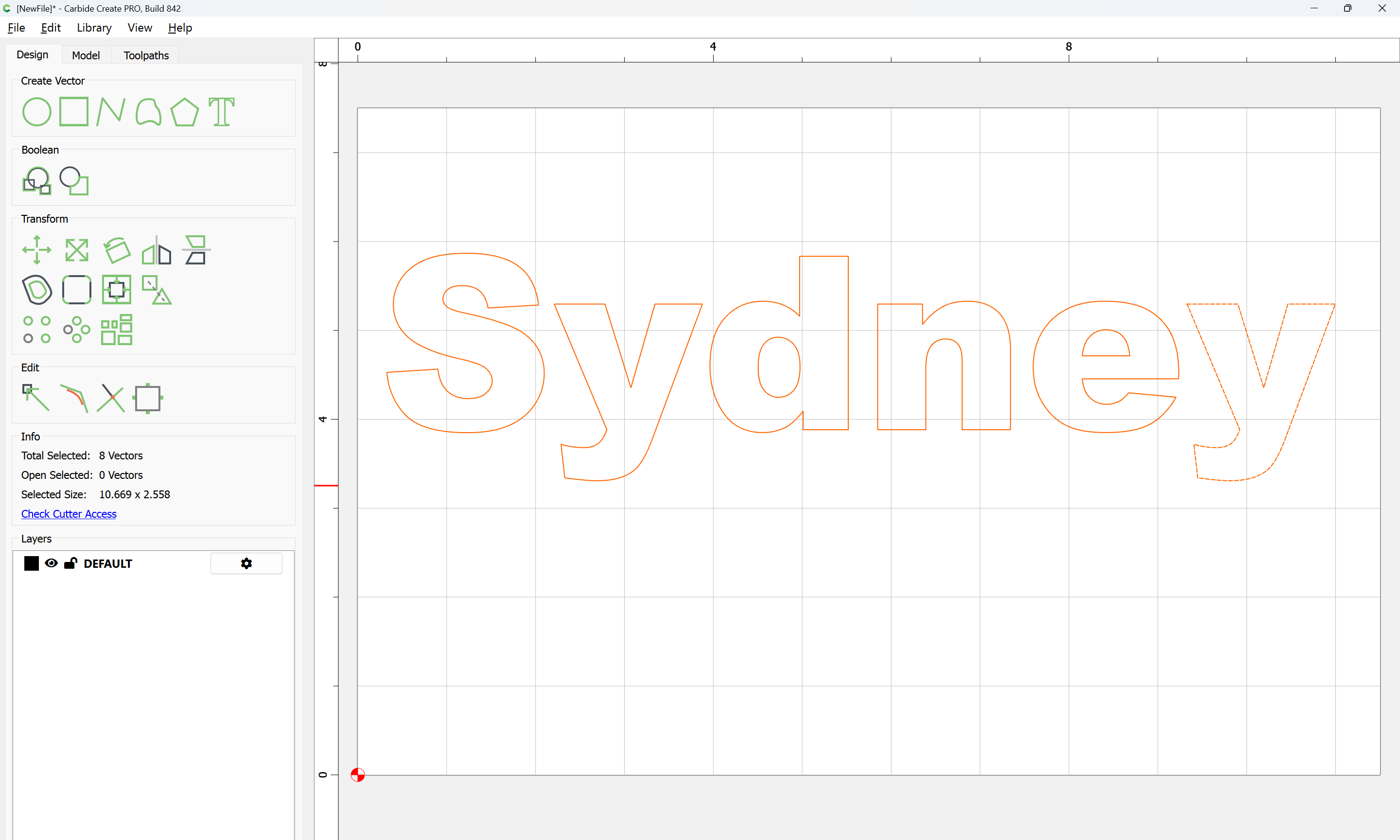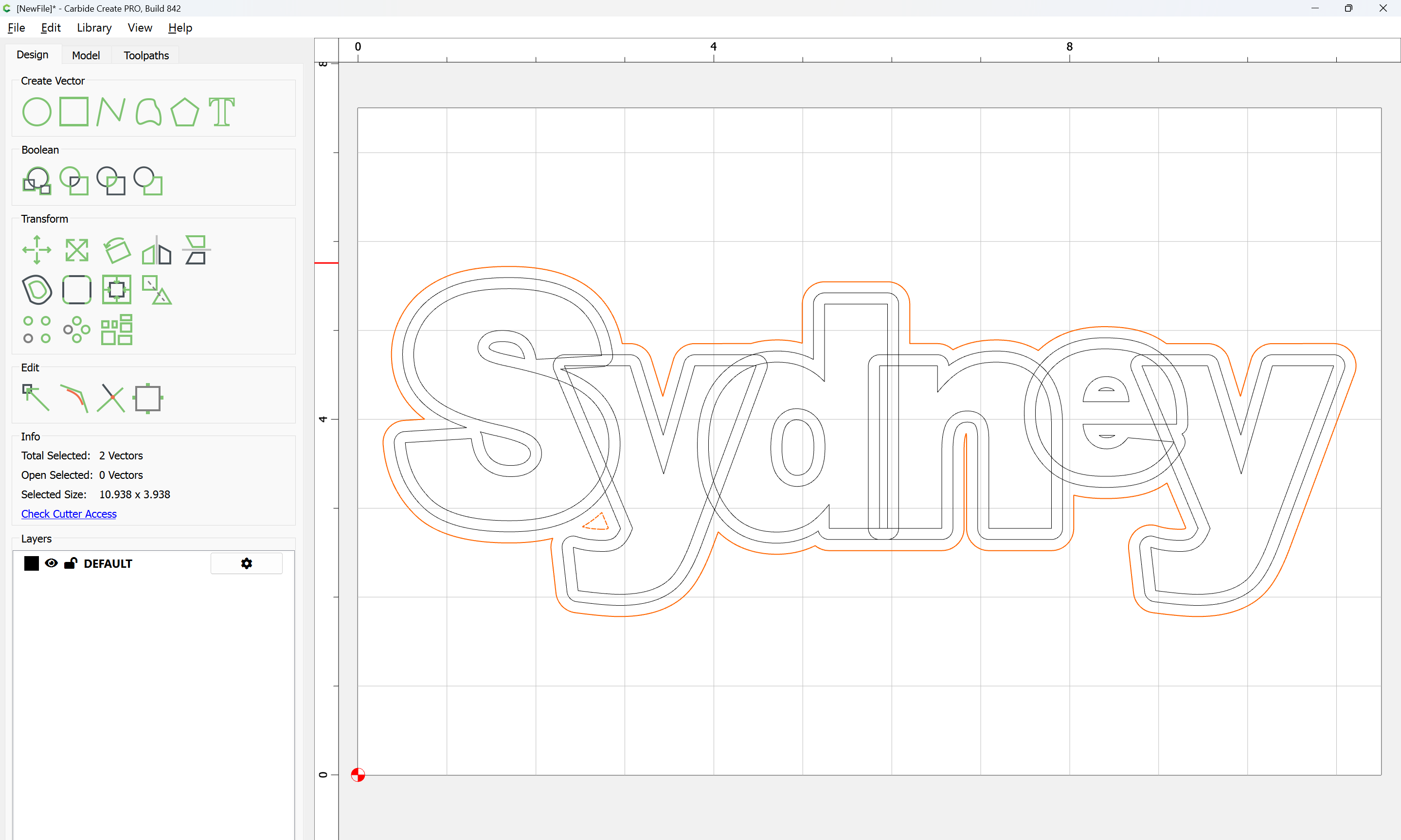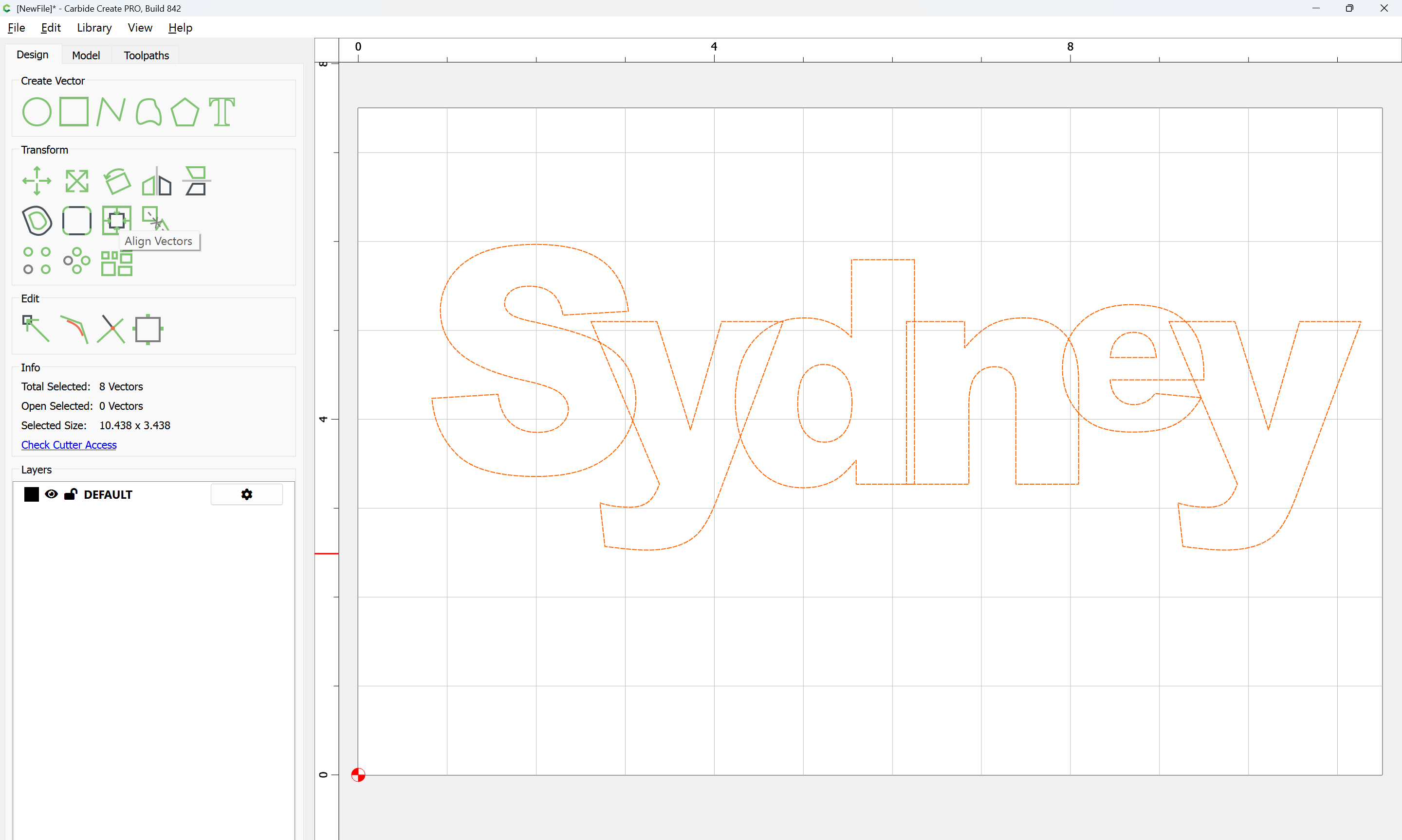 The letterforms may now be spaced out and cut out of a suitable thickness of material with suitable toolpaths — this is left as an exercise for the reader — if any difficulties are encountered, upload the file and we will look into it.