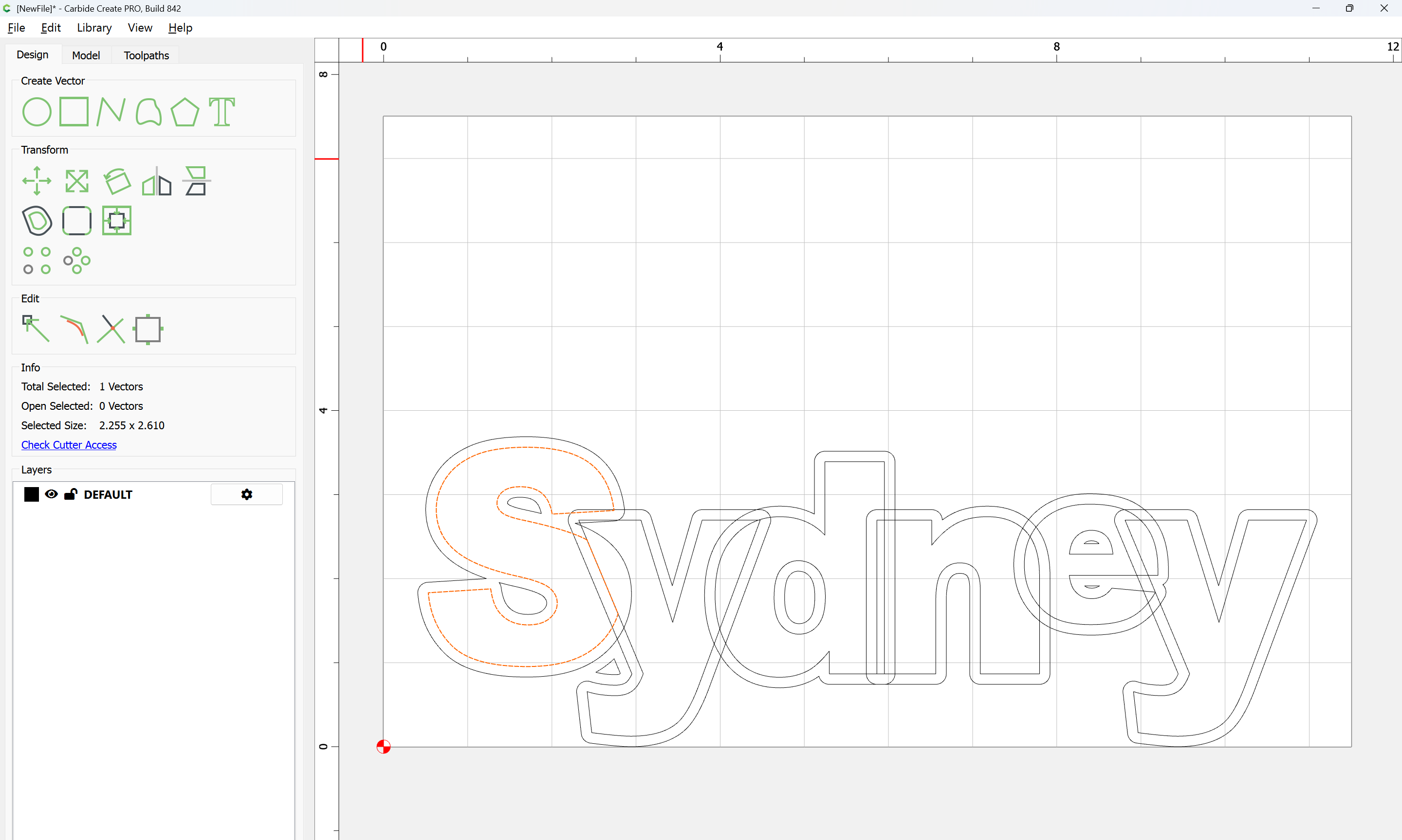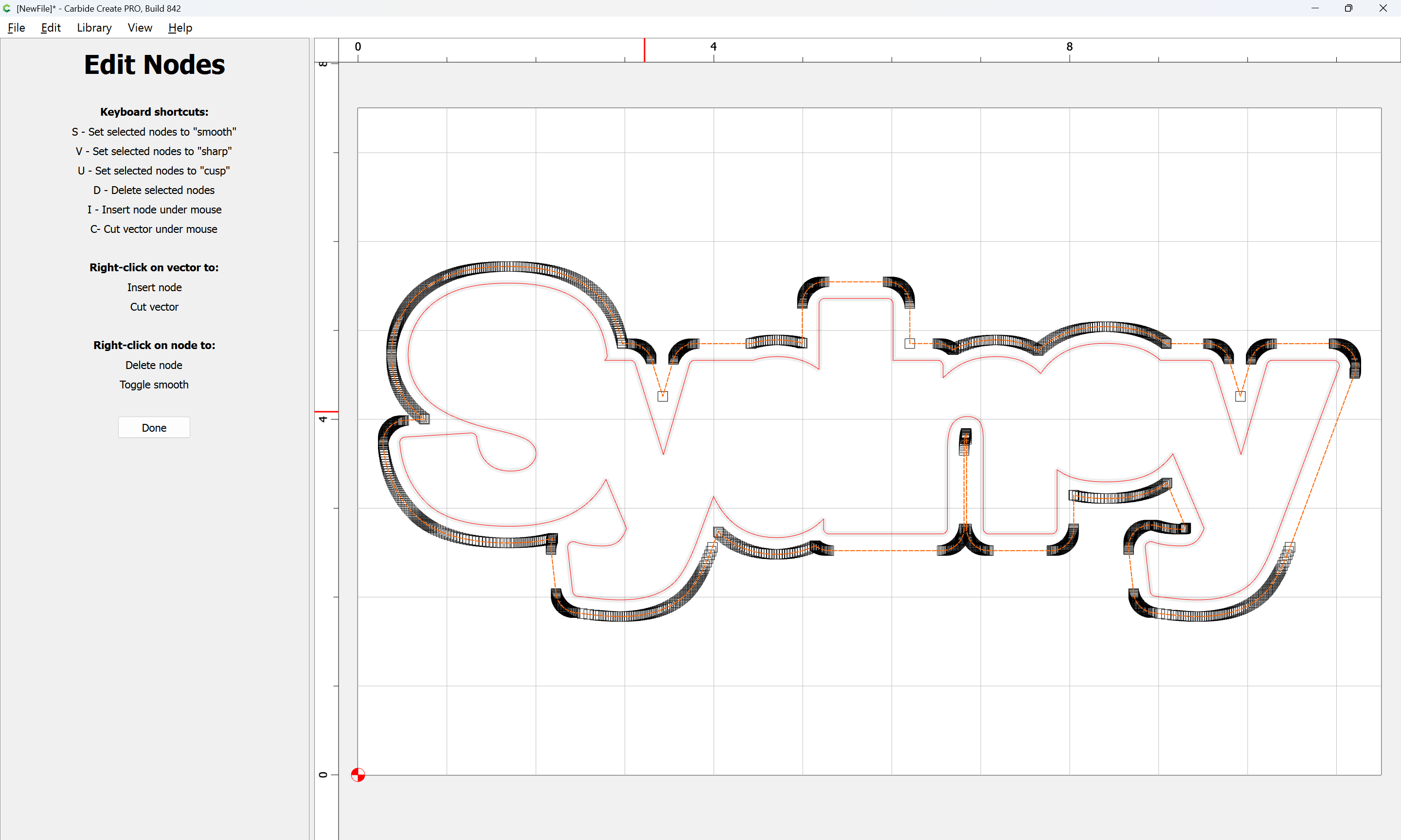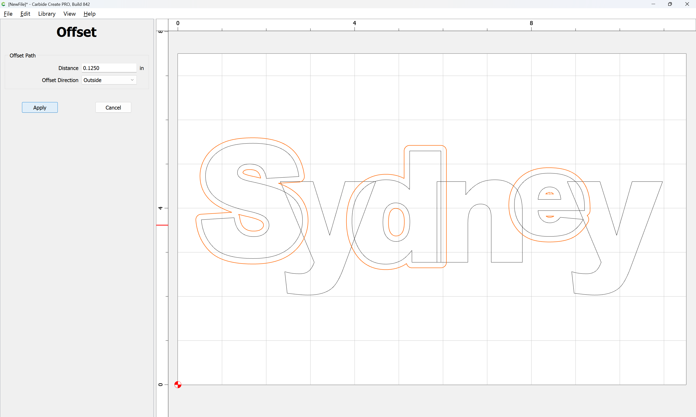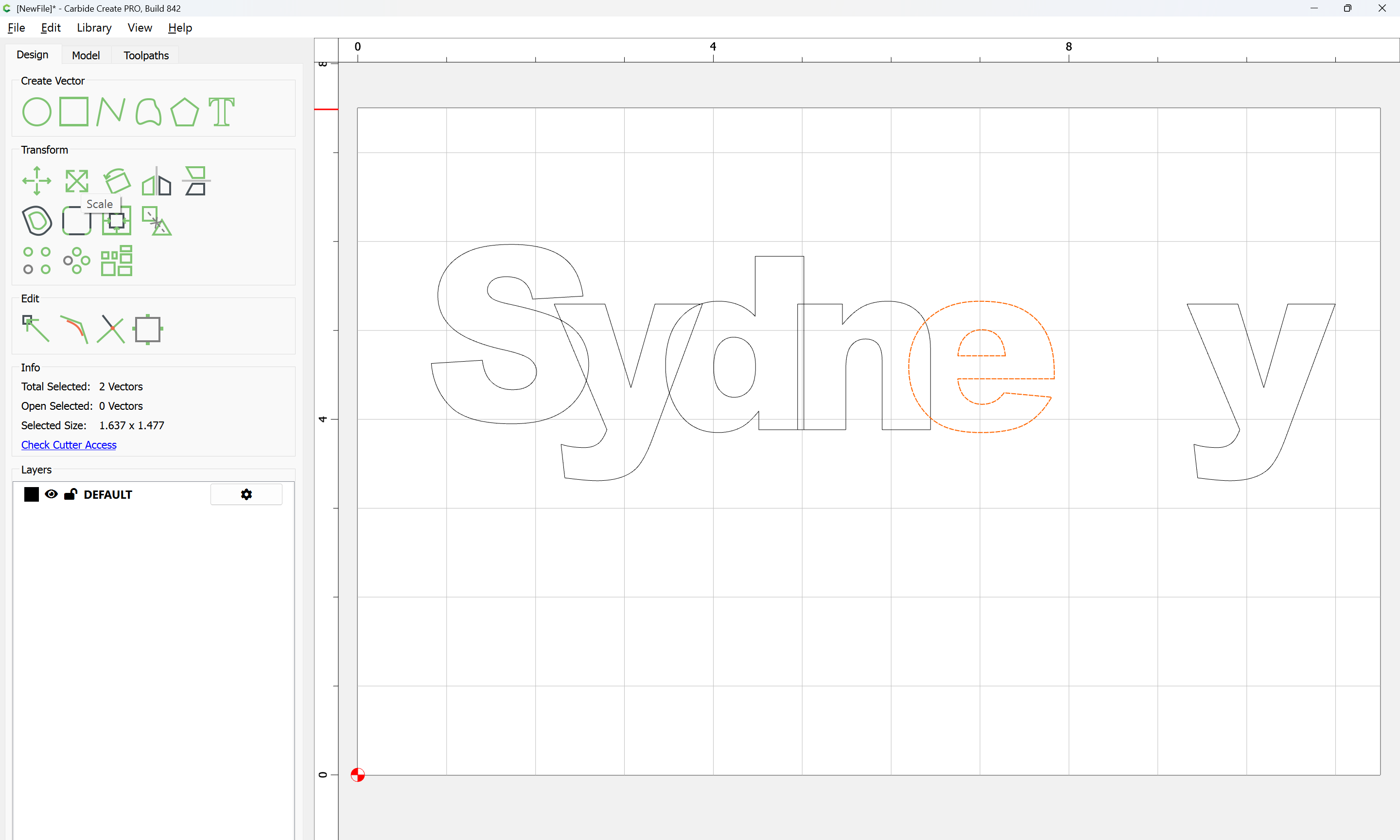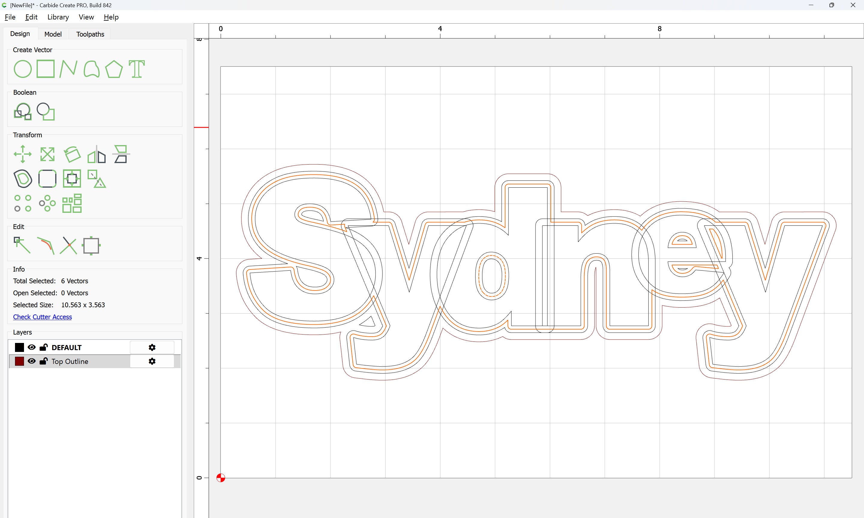 The letterforms may now be spaced out and cut out of a suitable thickness of material with suitable toolpaths — this is left as an exercise for the reader — if any difficulties are encountered, upload the file and we will look into it.
