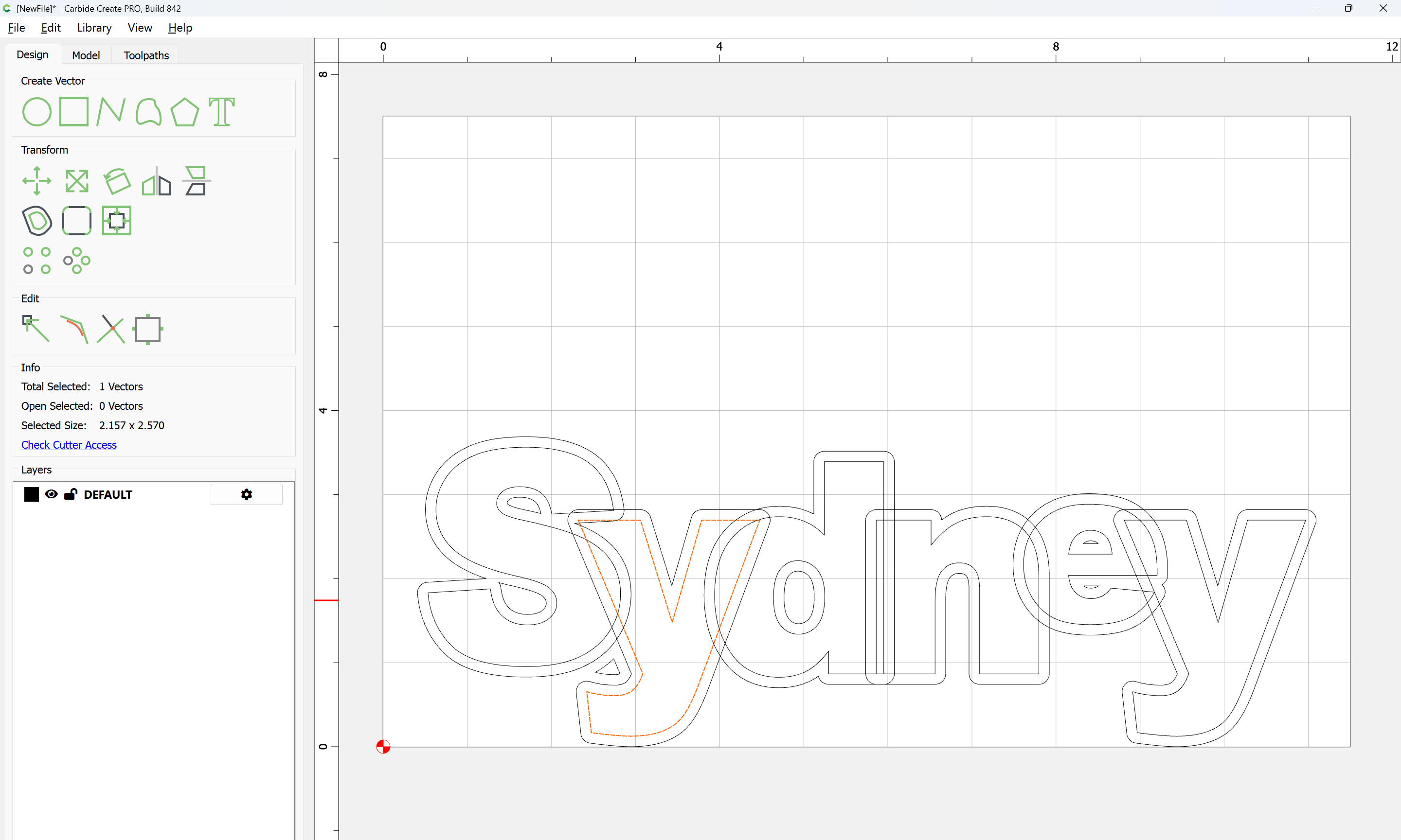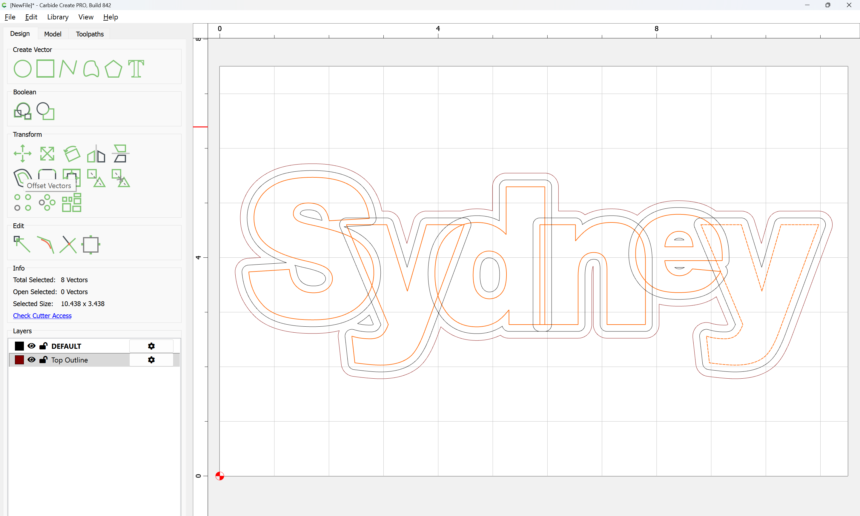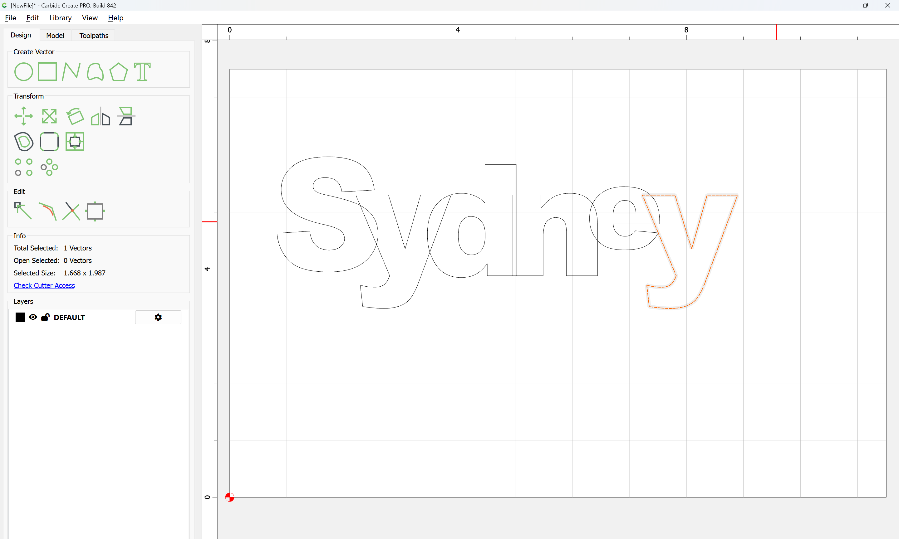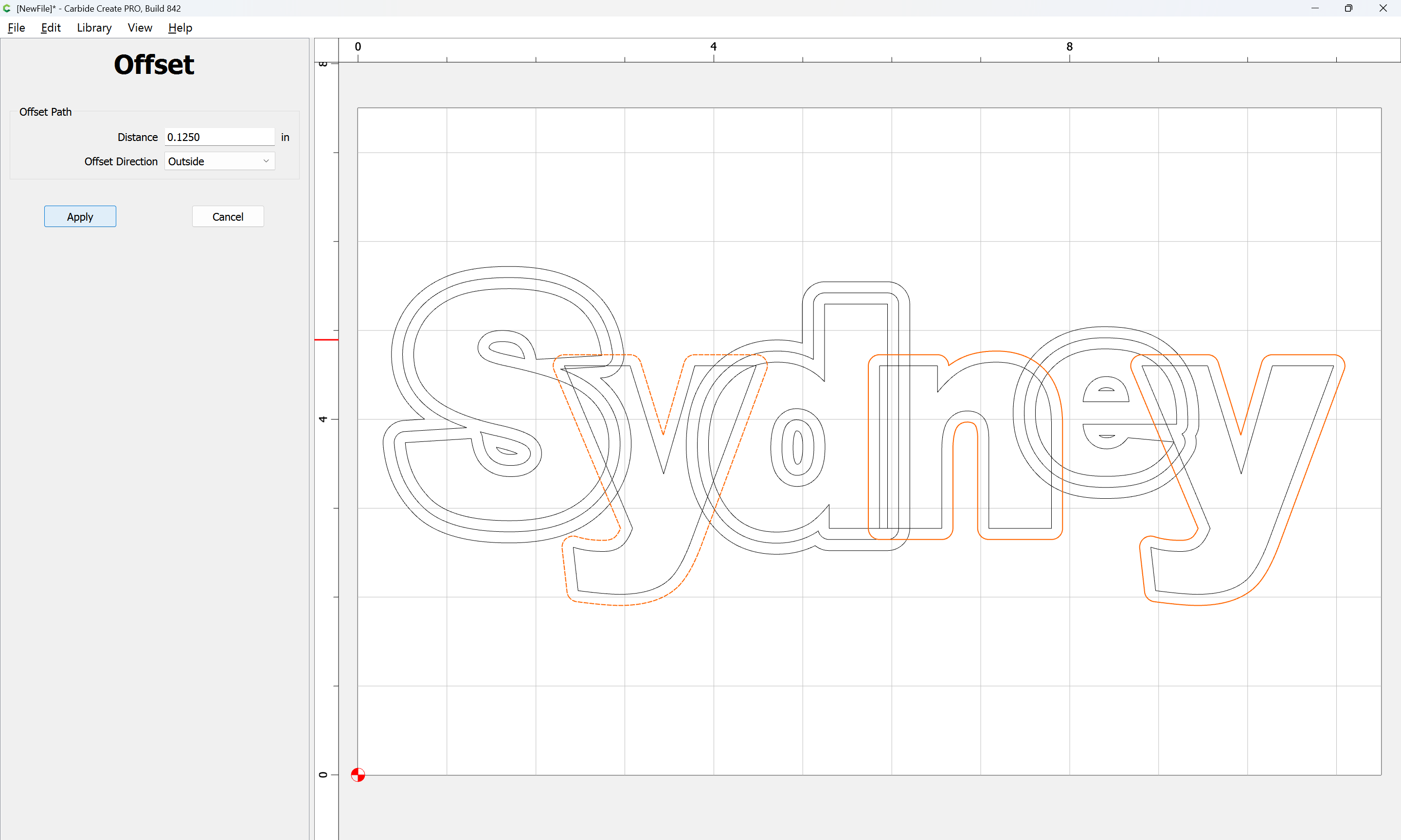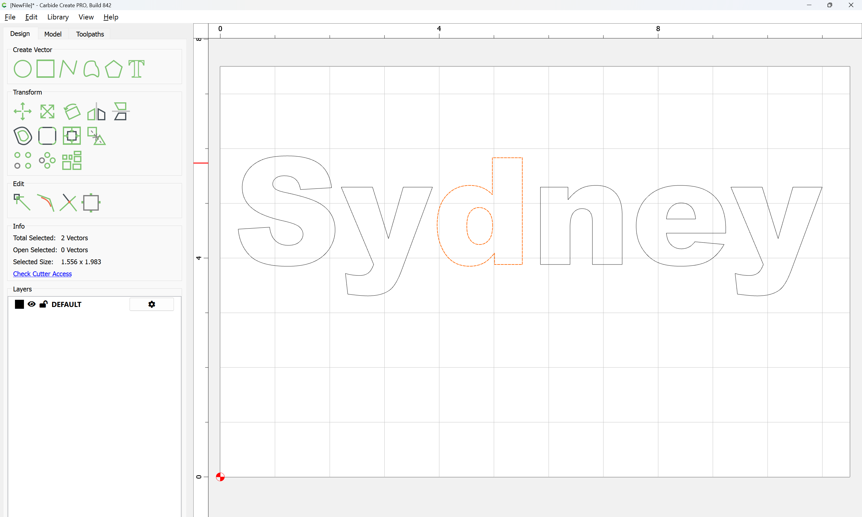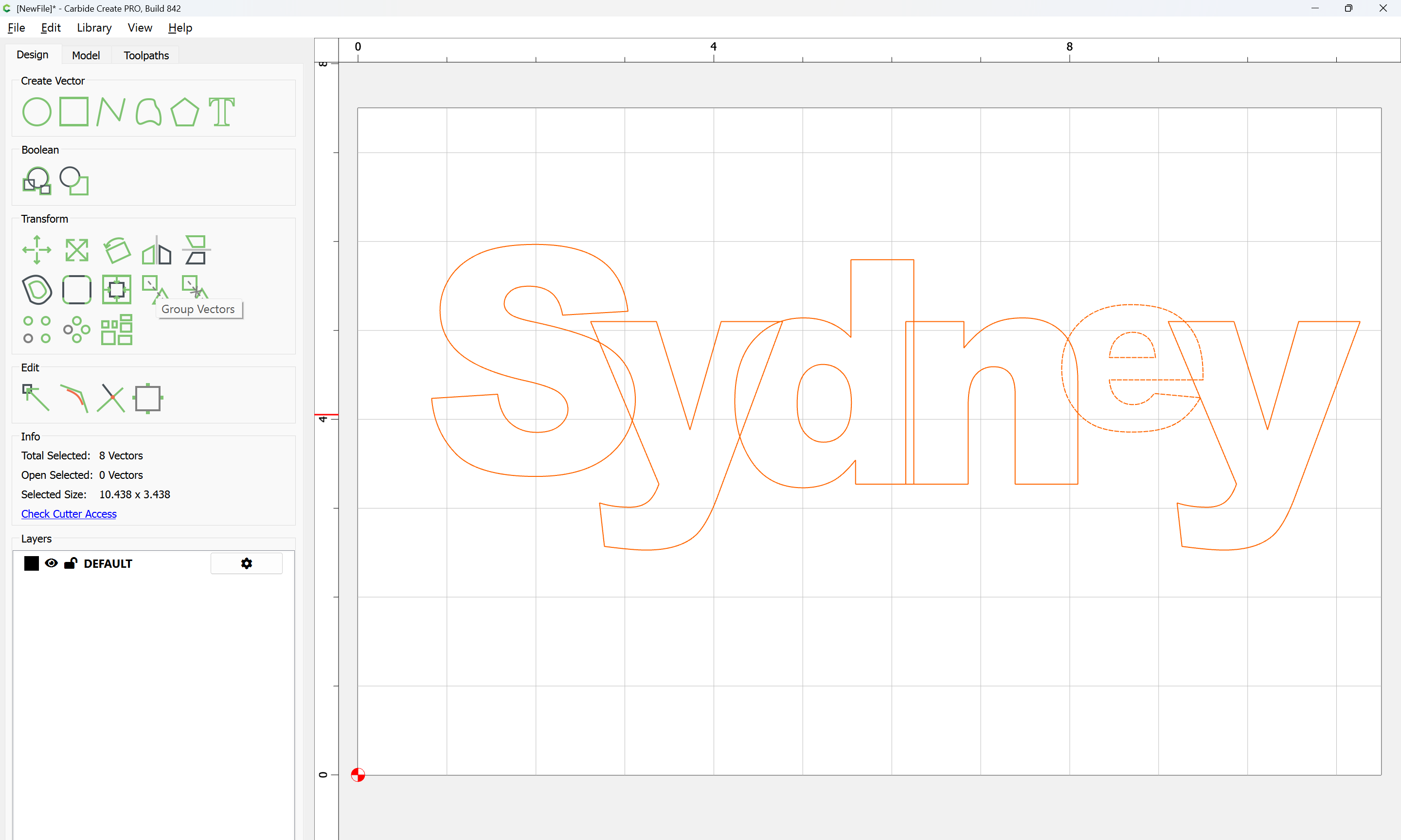 The letterforms may now be spaced out and cut out of a suitable thickness of material with suitable toolpaths — this is left as an exercise for the reader — if any difficulties are encountered, upload the file and we will look into it.