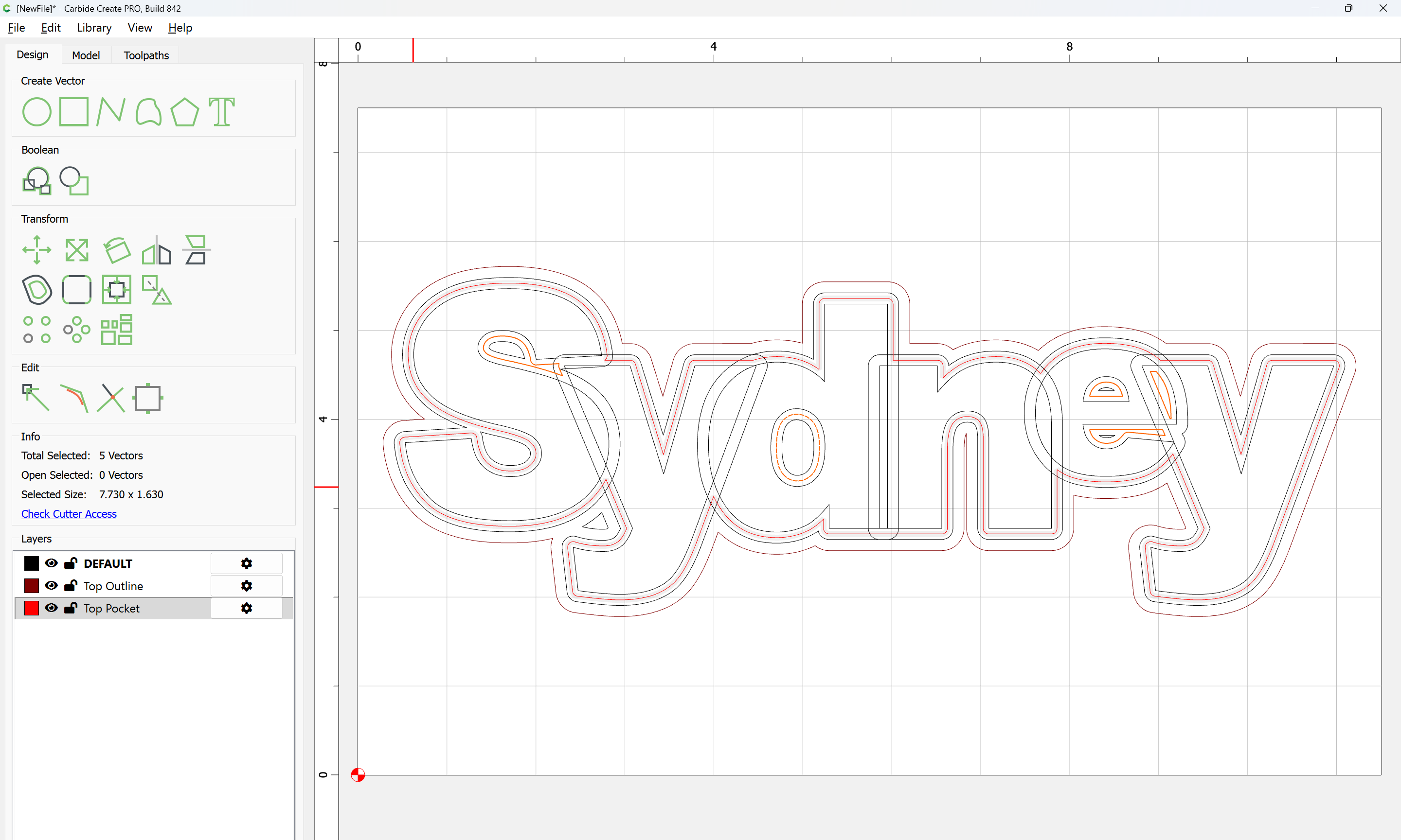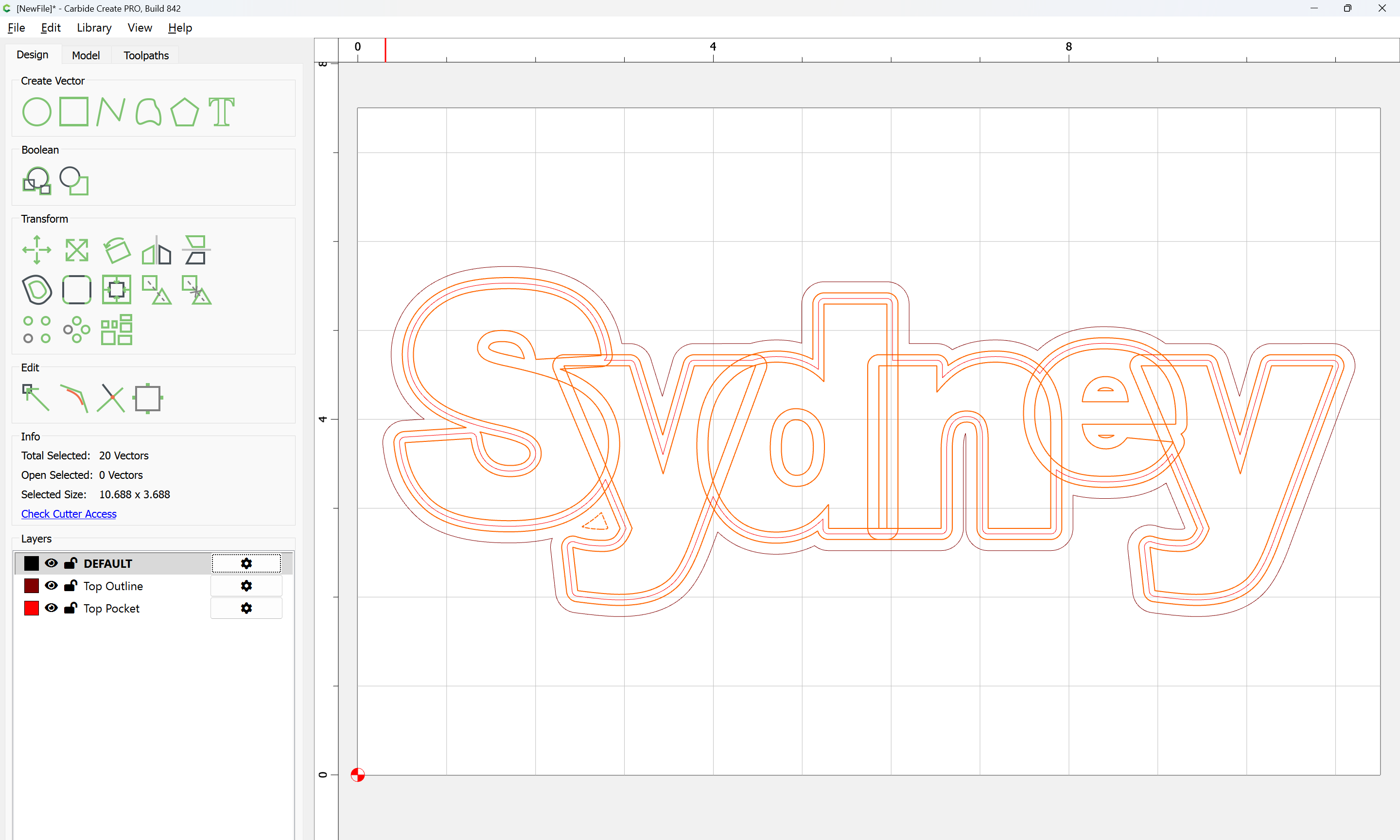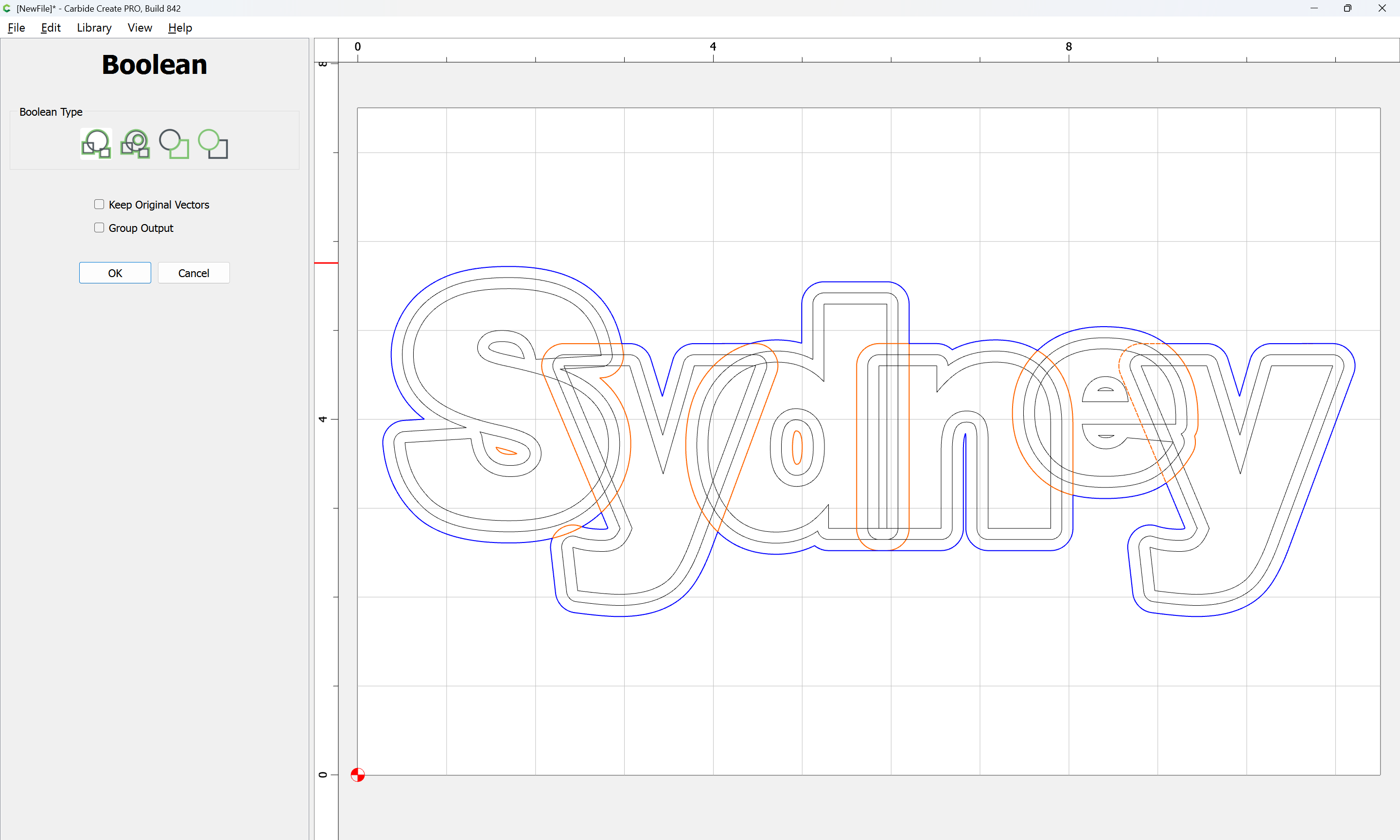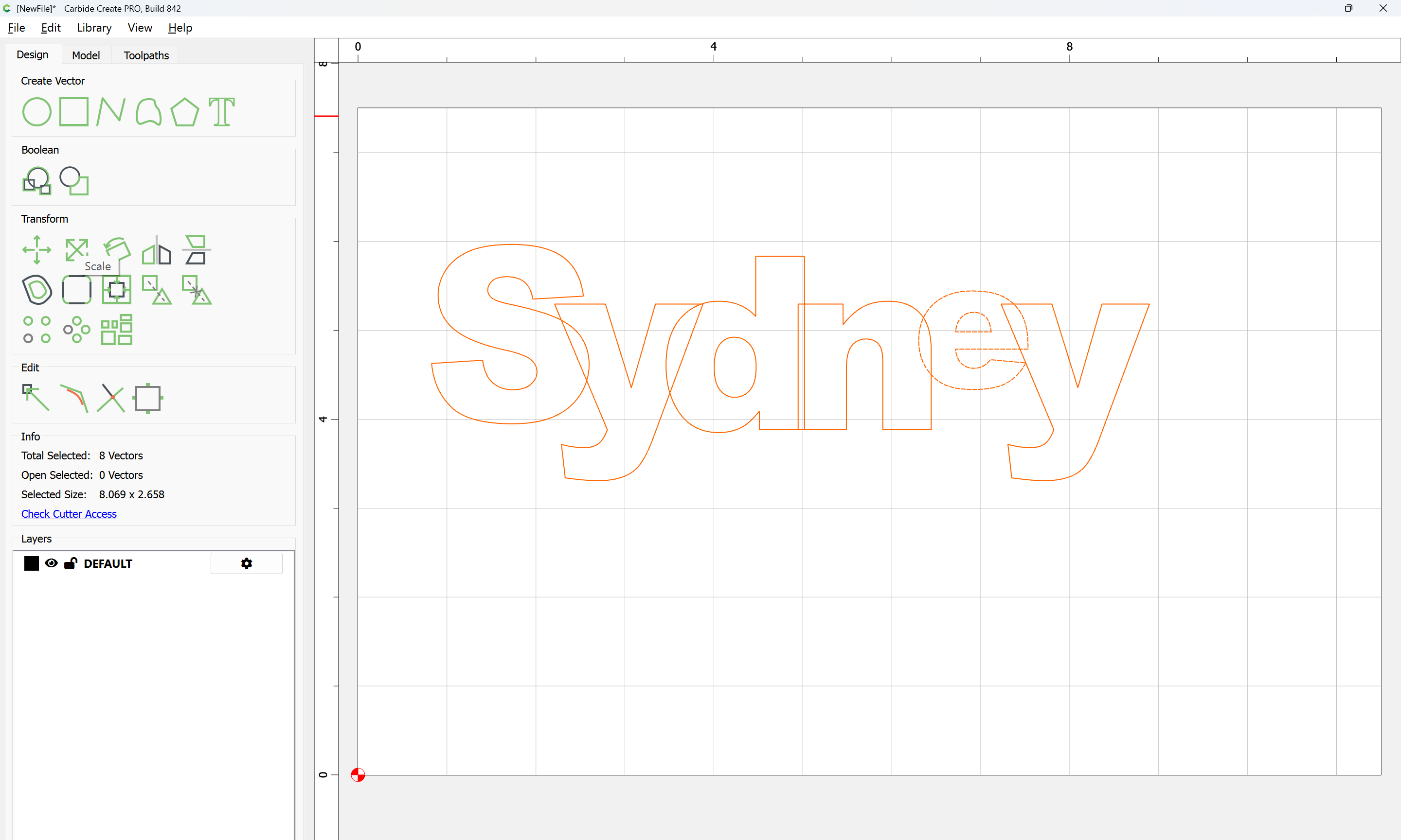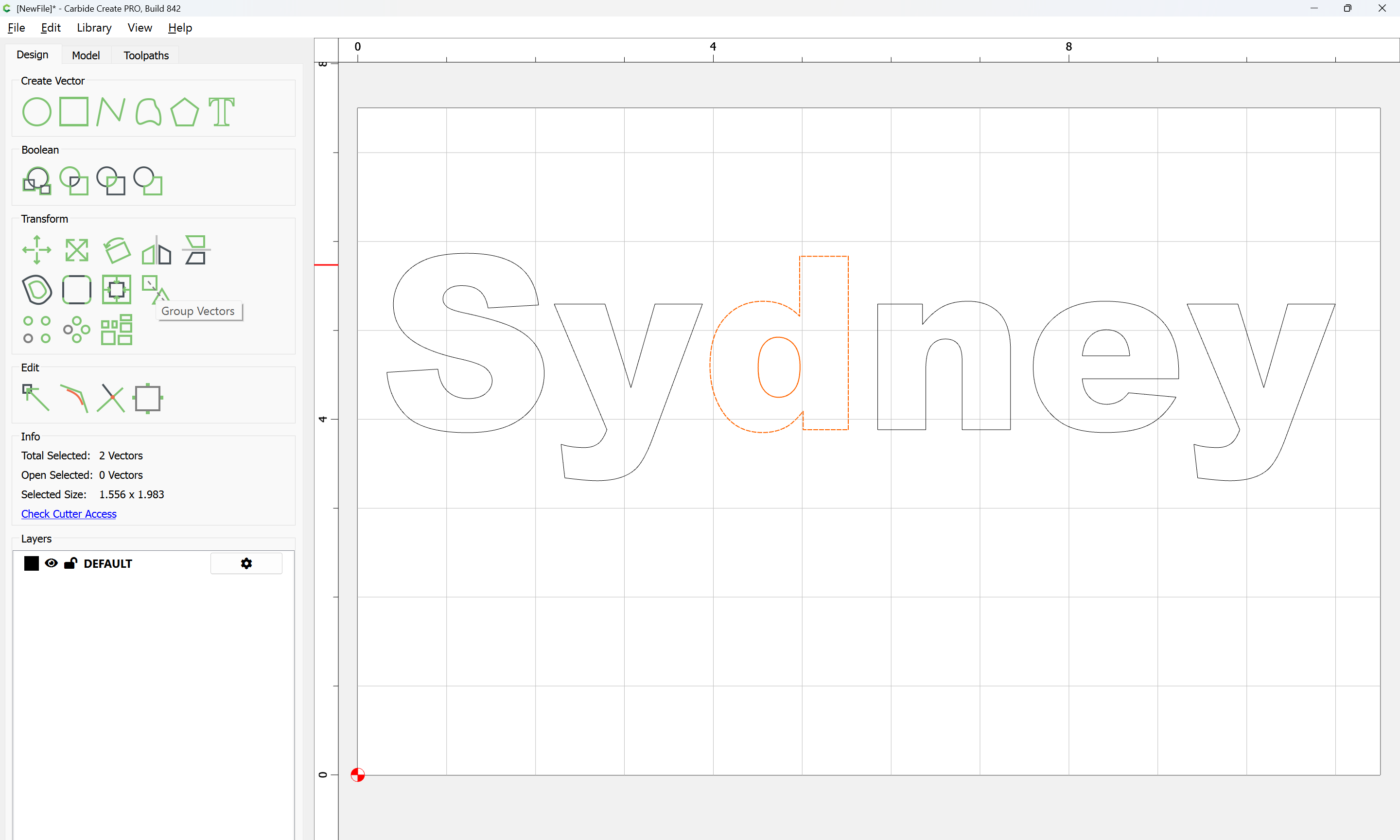 The letterforms may now be spaced out and cut out of a suitable thickness of material with suitable toolpaths — this is left as an exercise for the reader — if any difficulties are encountered, upload the file and we will look into it.