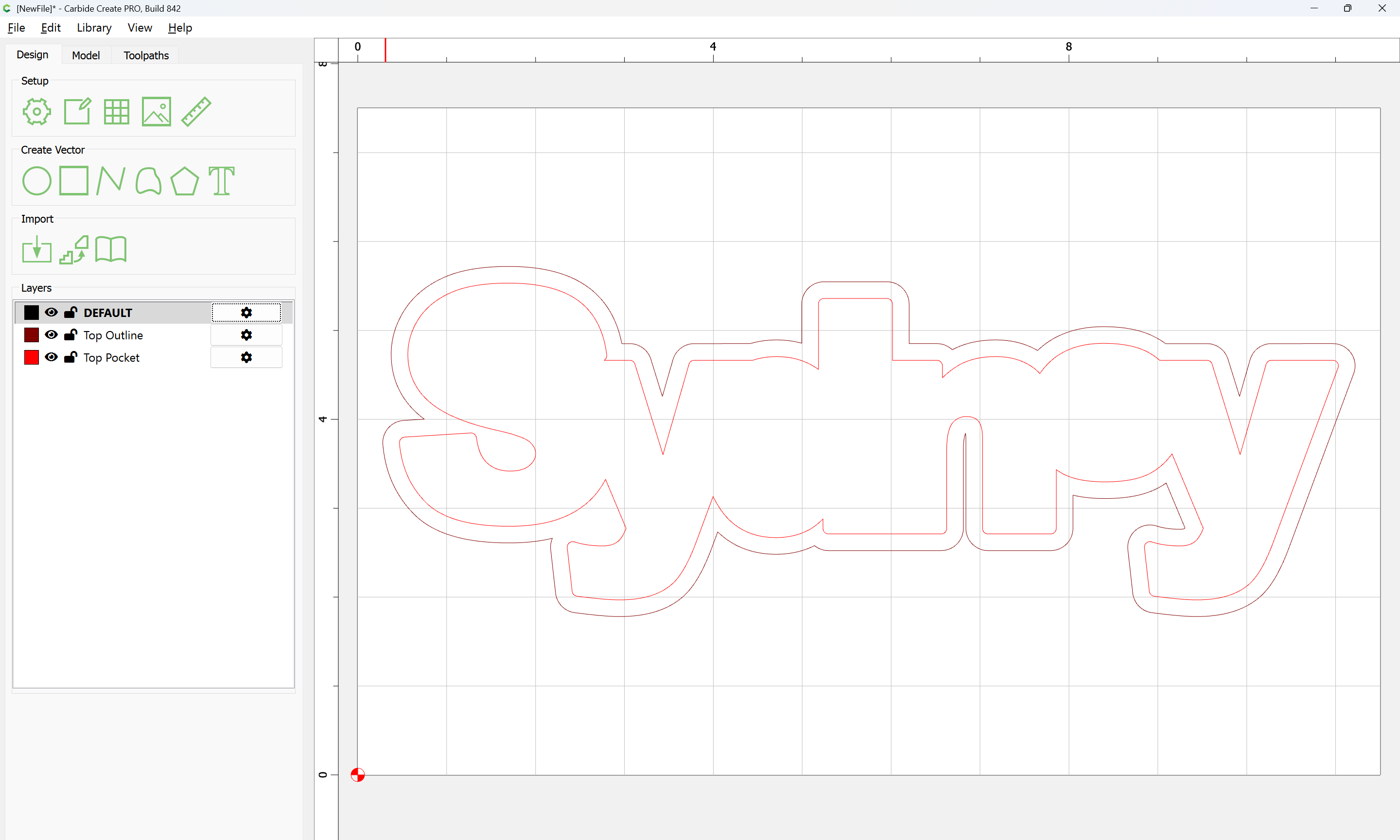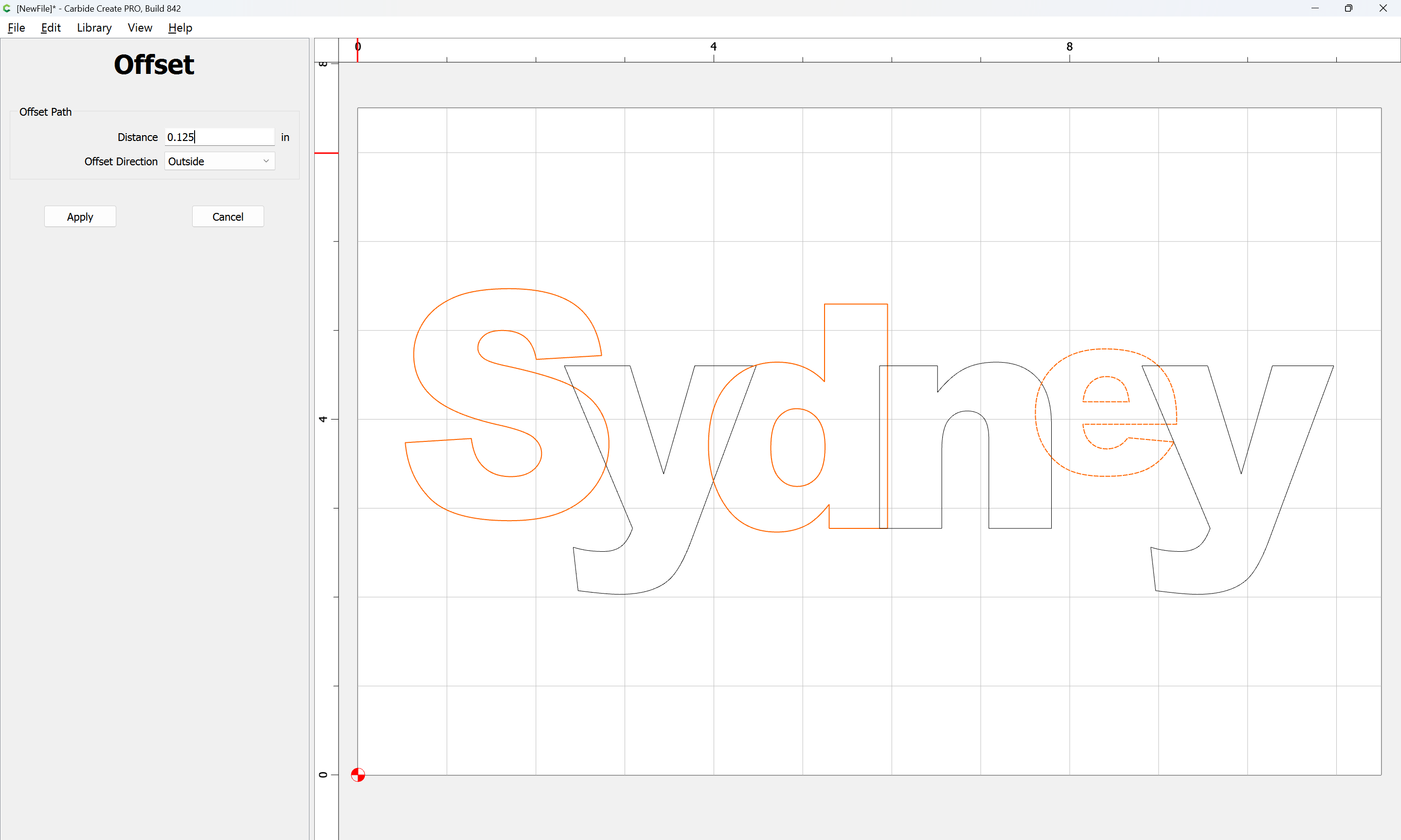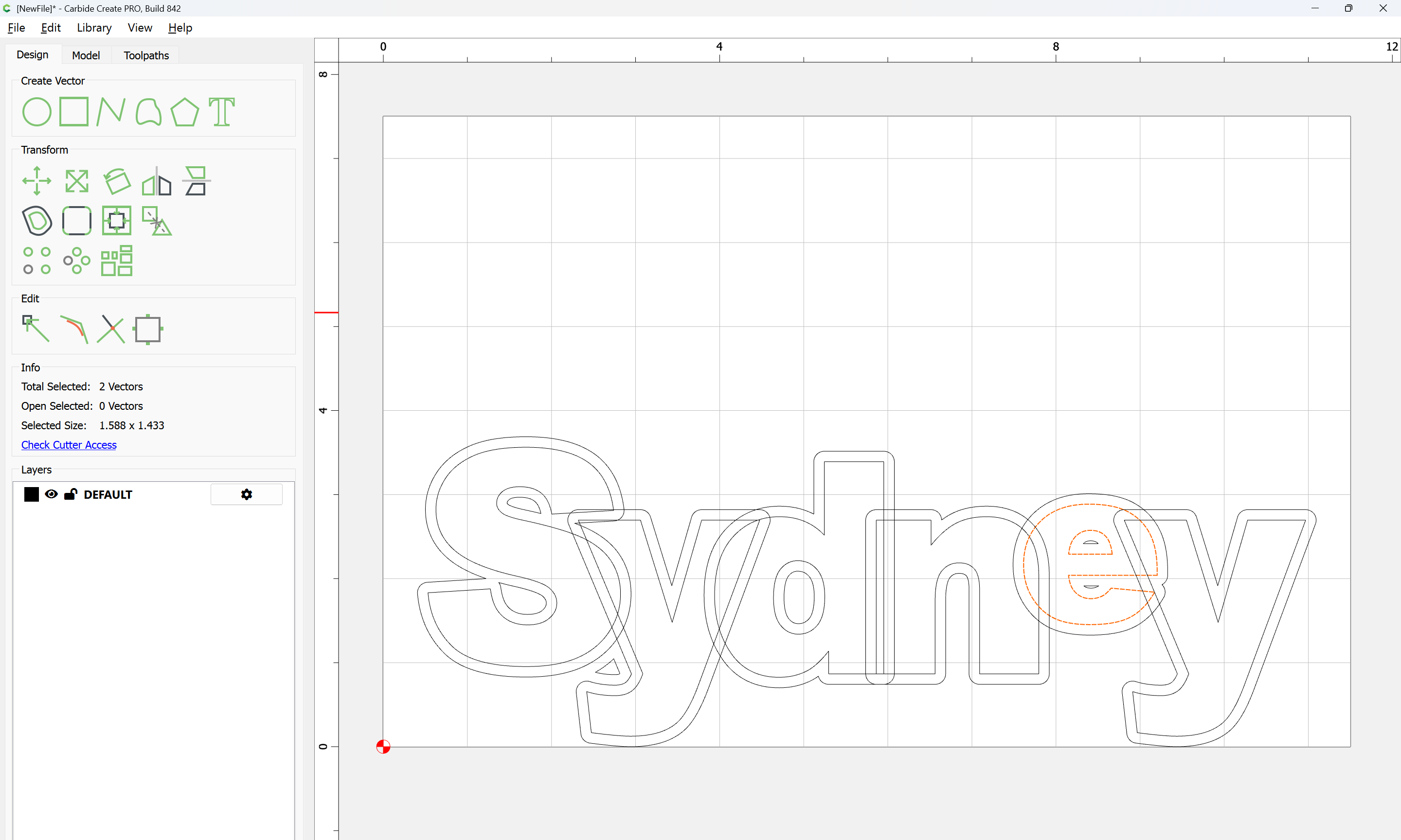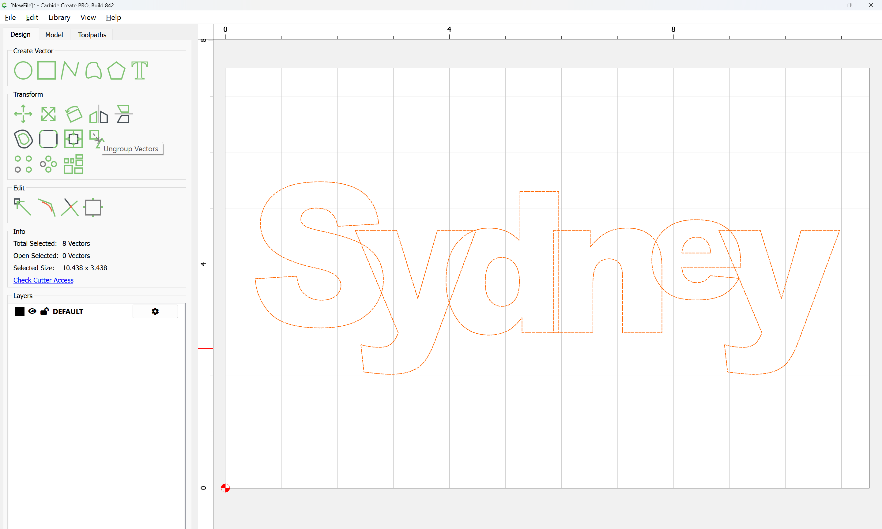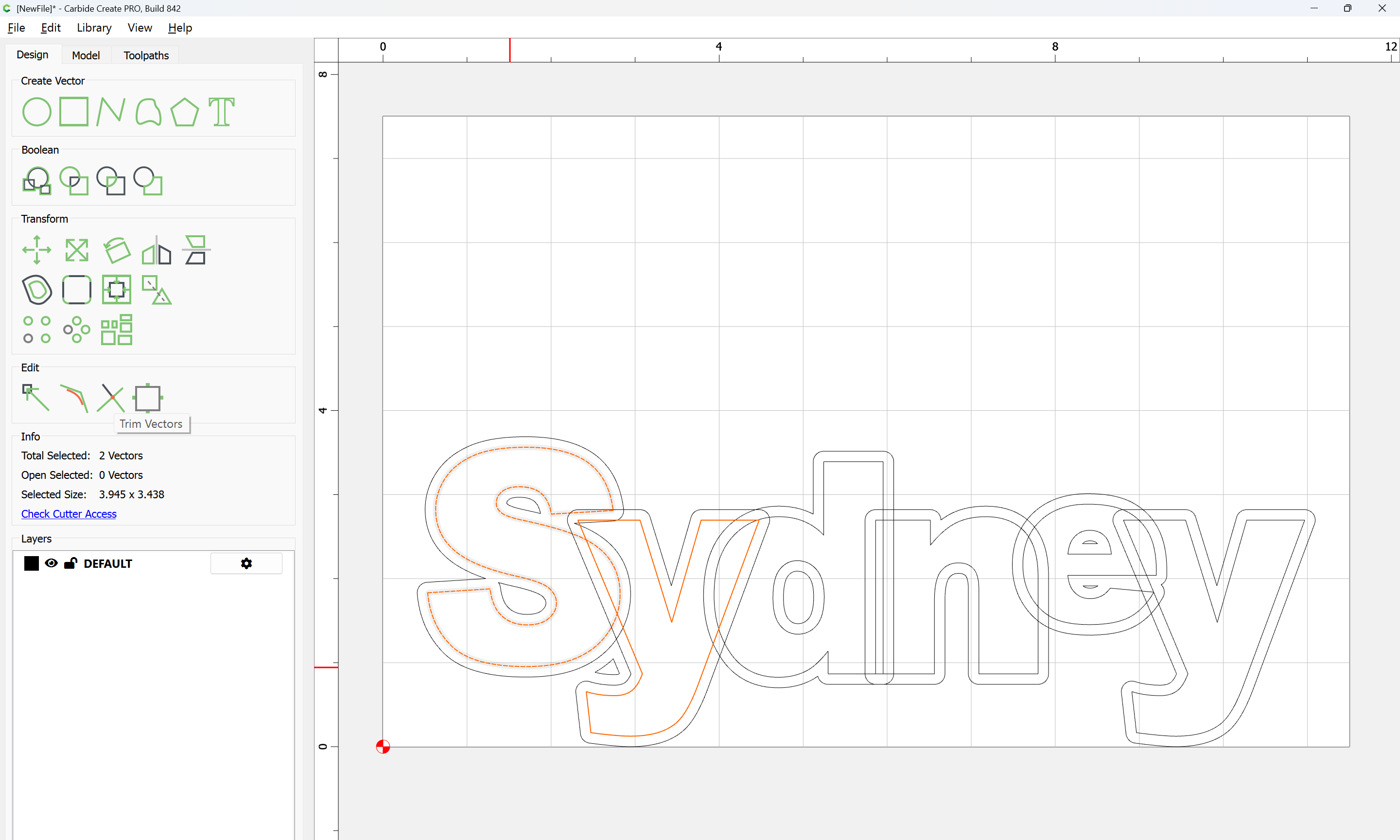 The letterforms may now be spaced out and cut out of a suitable thickness of material with suitable toolpaths — this is left as an exercise for the reader — if any difficulties are encountered, upload the file and we will look into it.